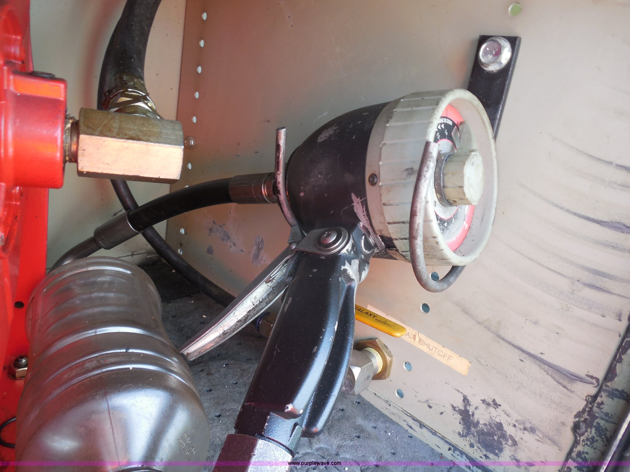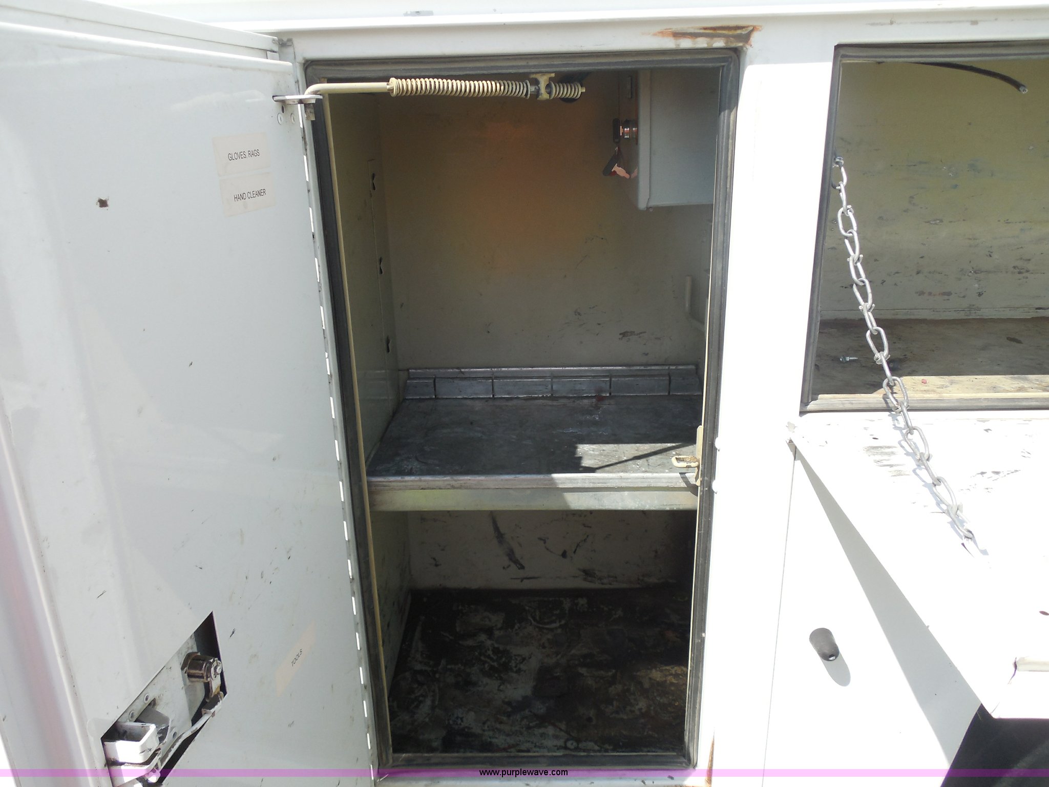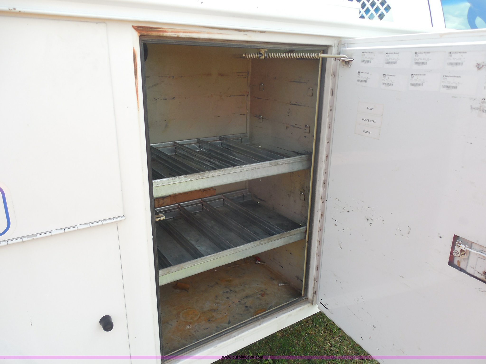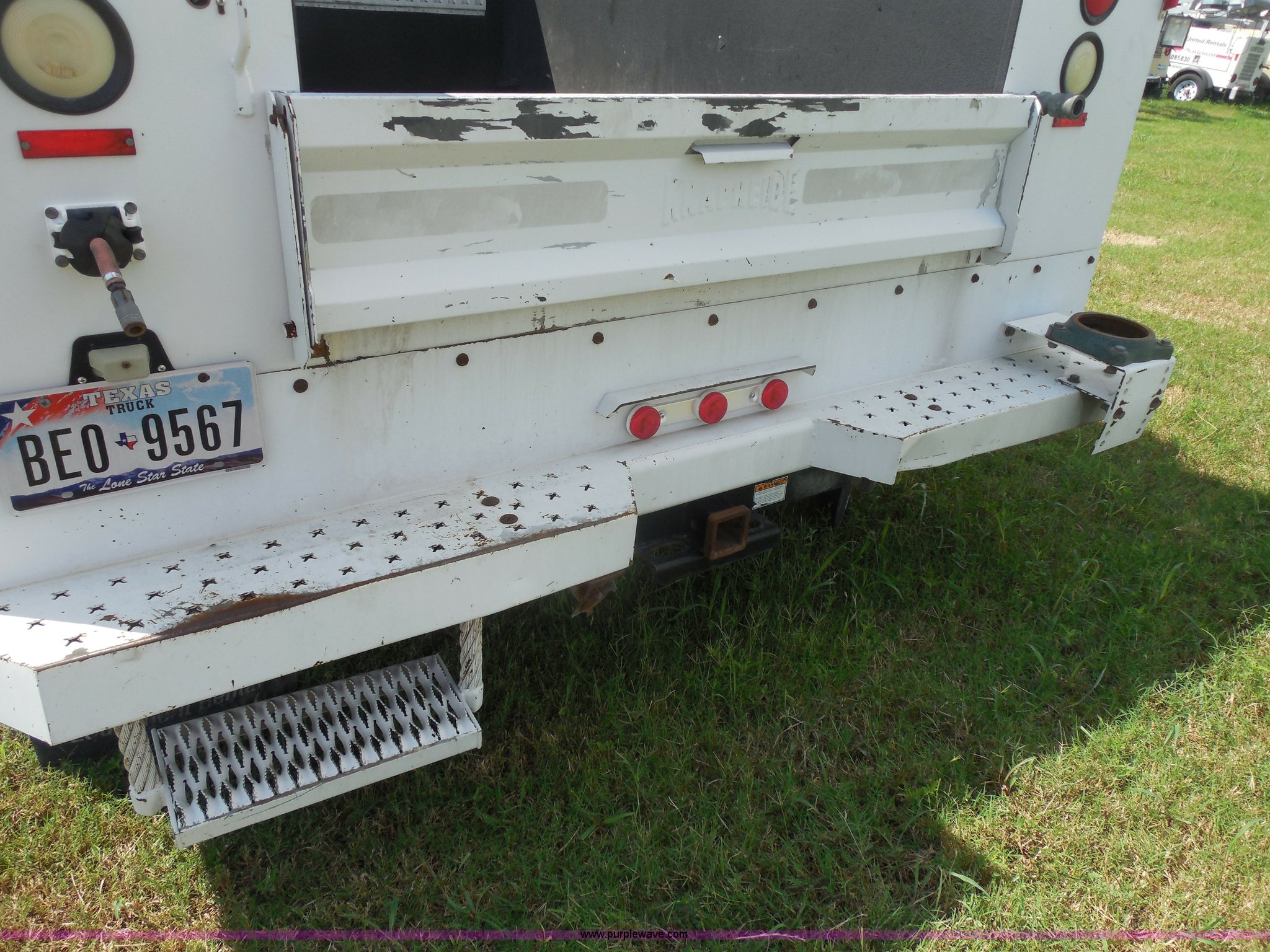 Purple Wave is selling a used Service Truck in Texas. This item is a 2007 Ford F550 service truck with the following: 140,022 actual miles, 6.0L V8 OHV 32V turbo diesel engine, Automatic transmission, AC and heat, Tilt, Cruise, AM/FM/CD, Manual windows and locks, Vinyl interior, Auxiliary control panel, Knapheide utility bed, Model 6132D54J, (3) oil/hydraulic tanks, Graco Fire-Ball air powered pumps, Diaphragm pump for waste oil, Champion air compressor, Model AS2-SH09-CHP, Honda 9 HP gas engine, Dead battery, (3) hose reels, Grease/hydraulic/oil,, Front tow hooks, 225/70R19.5 tires, EIN 671490RA