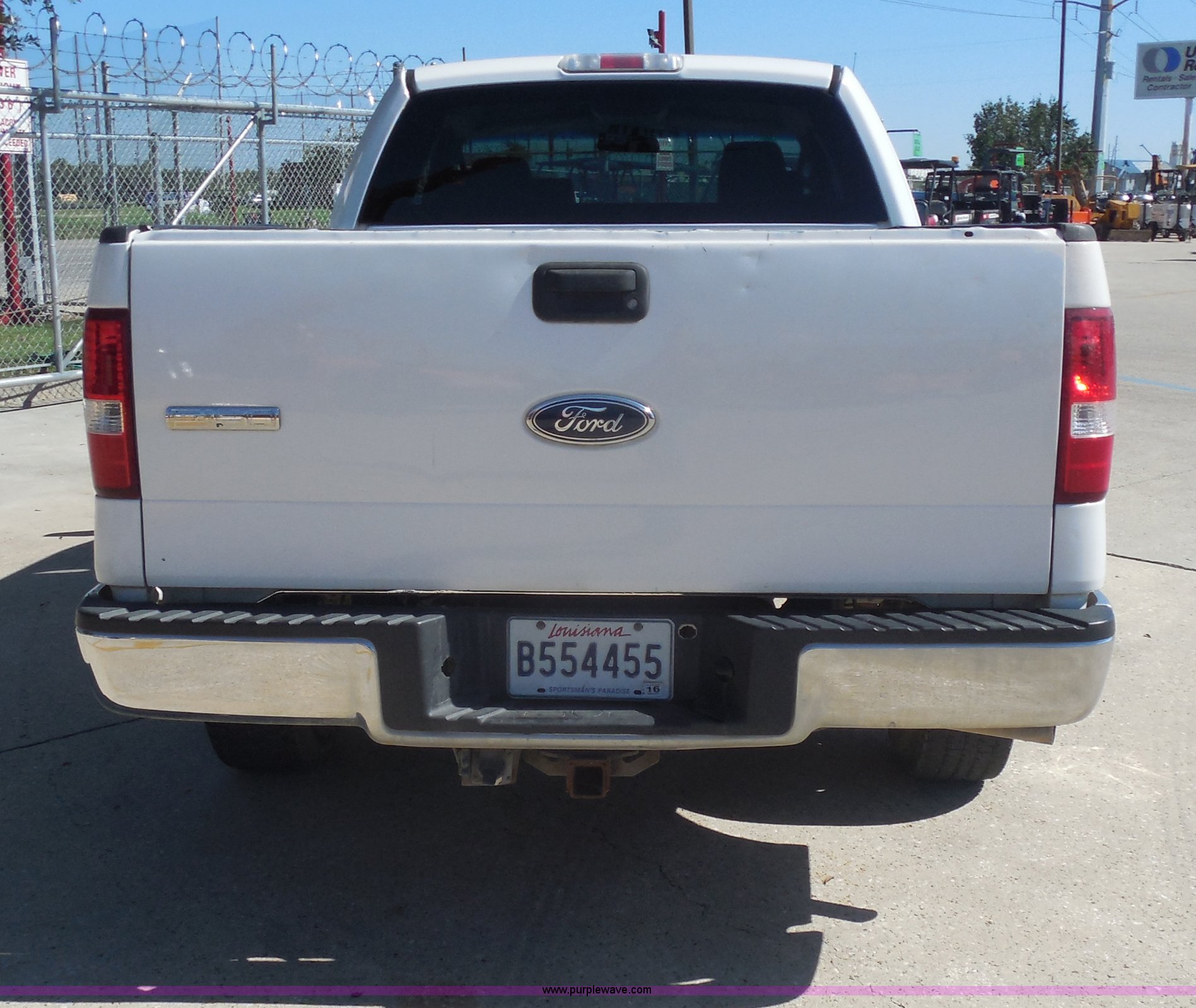 2005 Ford F150 XLT SuperCab pickup truck. 157,250 actual miles, 4.6L V8 SOHC 16V gas engine, Automatic transmission, AC and heat, Tilt, Cruise, AM/FM/CD, Power windows, locks, and mirrors, Cloth interior, Spray-in bed liner, Receiver hitch, Trailer wiring, 245/70R17 tires, Transmission issues First gear inoperable, Interior/exterior cosmetic damage, EIN 578605RA. 1FTRX12W45NB86095. United Rentals - St. Rose. 10385 Airline Hwy. St. Rose, LA 70087