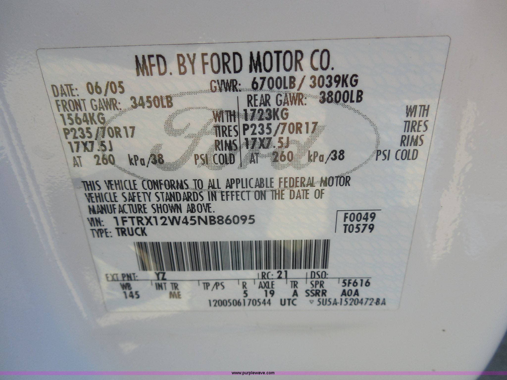 Purple Wave is selling a used Passenger Vehicle in Louisiana. This item is a 2005 Ford F150 XLT SuperCab pickup truck with the following: 157,250 actual miles, 4.6L V8 SOHC 16V gas engine, Automatic transmission, AC and heat, Tilt, Cruise, AM/FM/CD, Power windows, locks, and mirrors, Cloth interior, Spray-in bed liner, Receiver hitch, Trailer wiring, 245/70R17 tires, Transmission issues, First gear inoperable, Interior/exterior cosmetic damage, EIN 578605RA