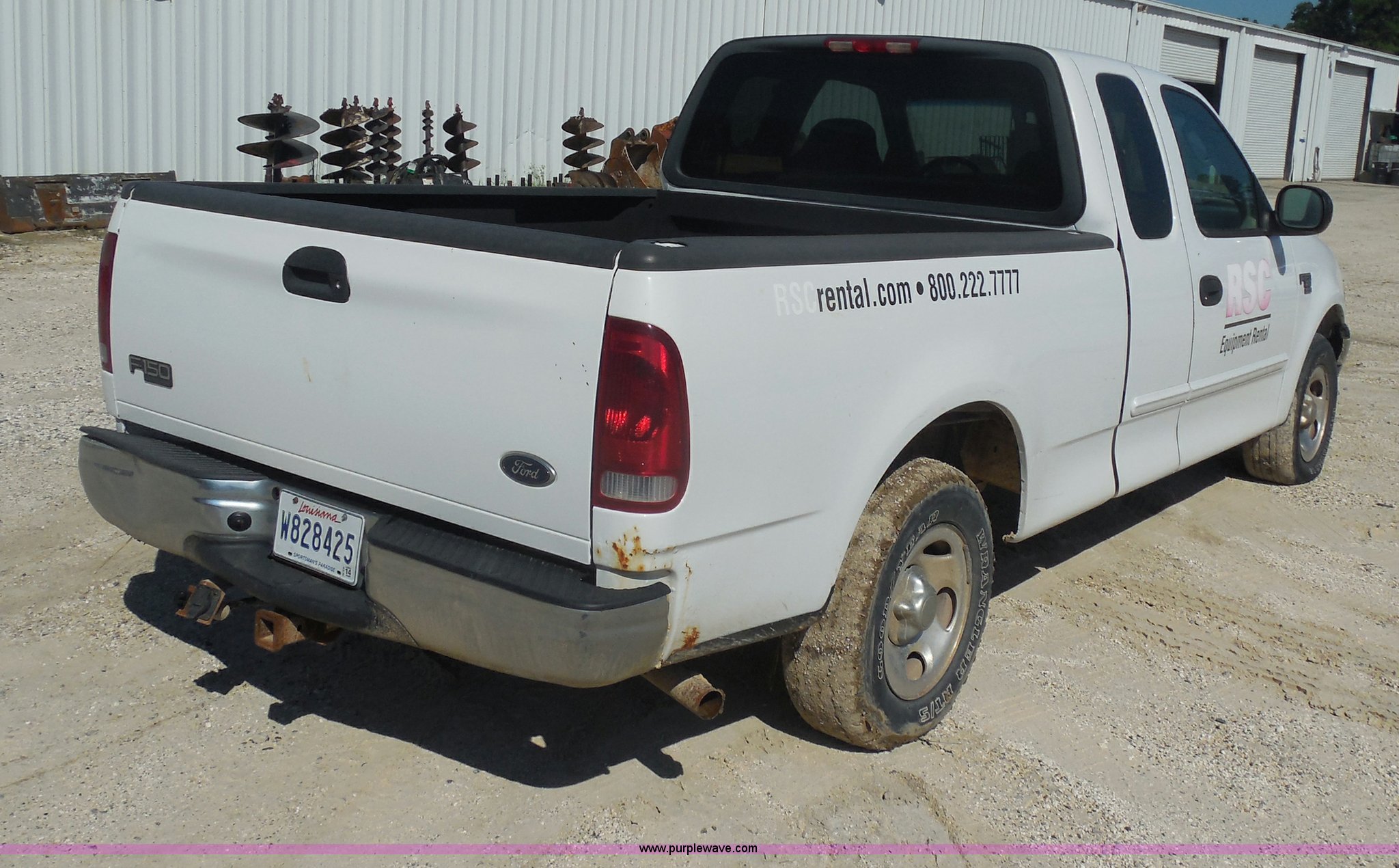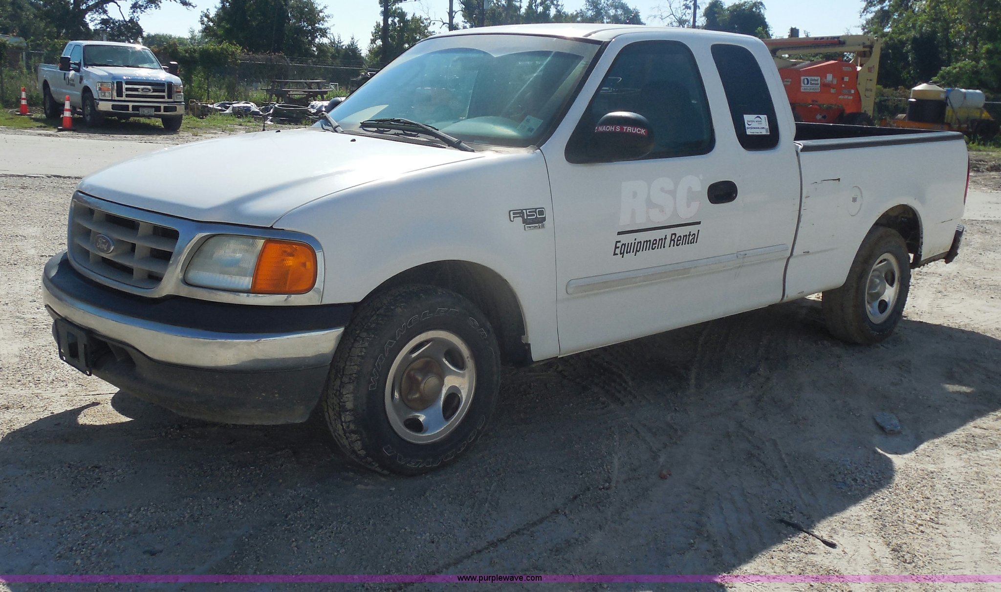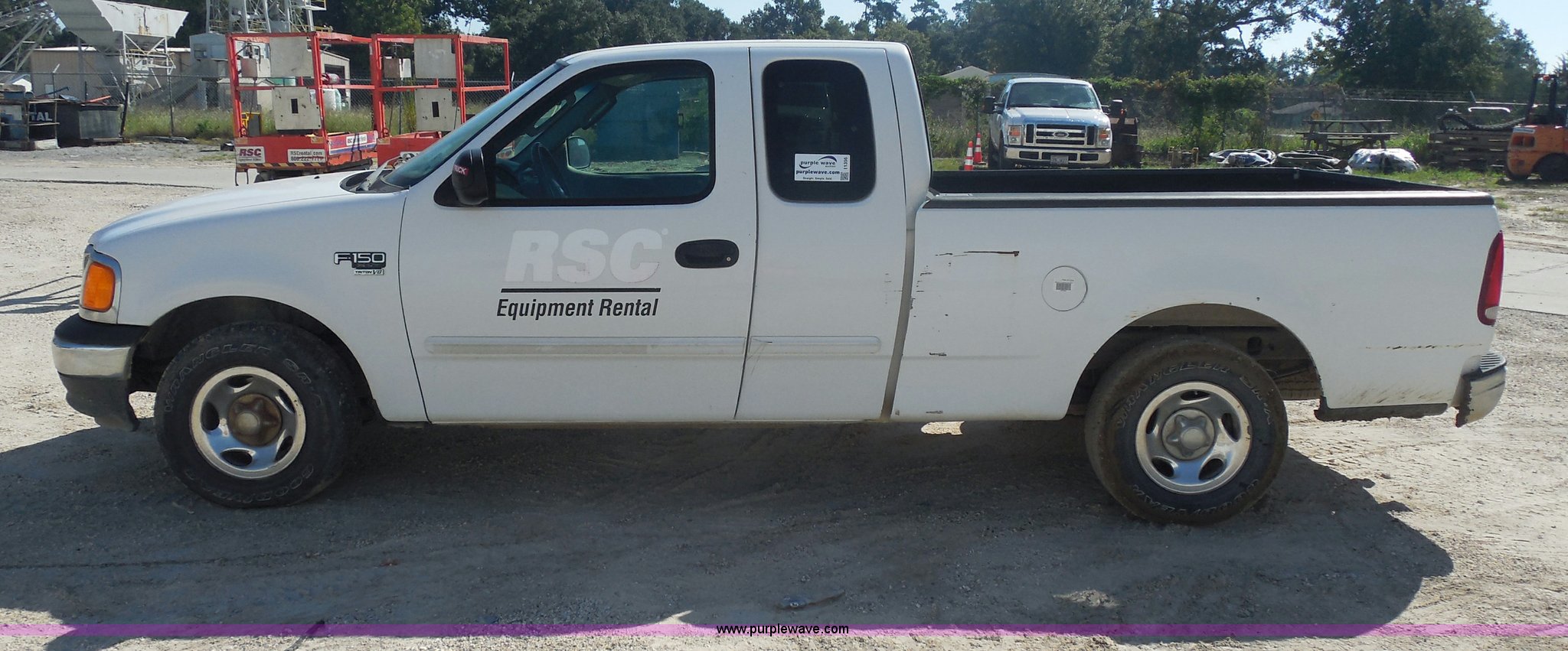 2004 Ford F150 Heritage XL SuperCab pickup truck. 140,100 miles on odometer, 4.6L V8 16V SOHC gas engine, Automatic transmission, AC and heat, Tilt, Cruise, AM/FM/CD, Power windows, locks, and mirrors, Cloth interior, Spray-in bed liner, Receiver hitch, Trailer wiring, P235/70R16 tires, Interior/exterior cosmetic damage, EIN 471524RA. 2FTRX17W14CA00283. United Rentals - Westlake. 3301 Cities Service Hwy. Westlake, LA 70669