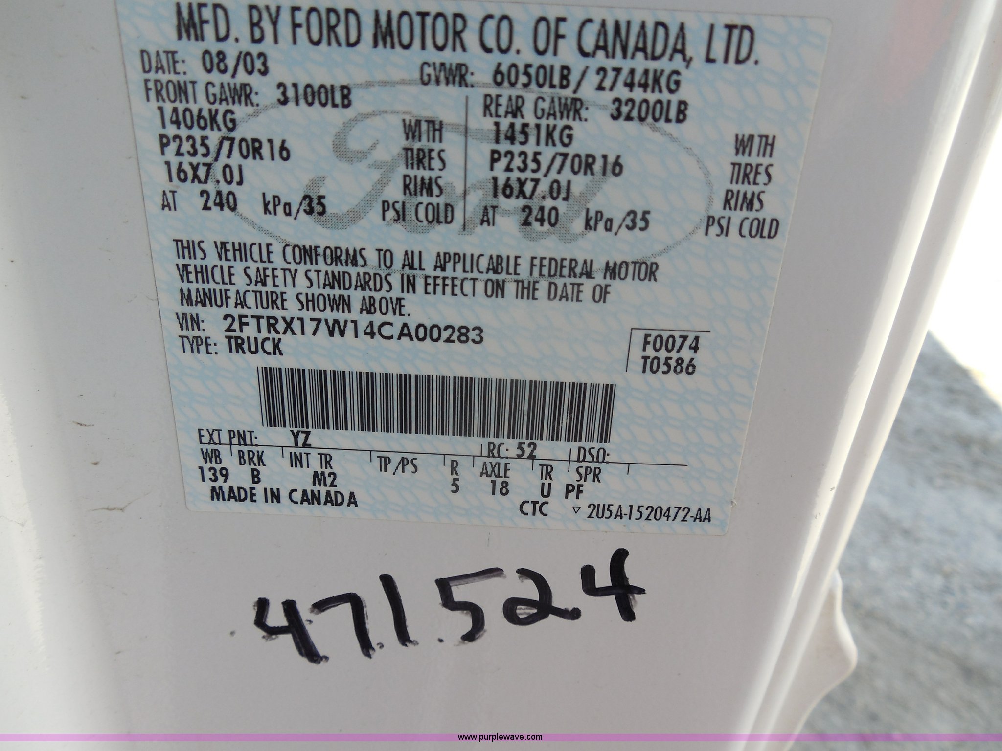 Purple Wave is selling a used Passenger Vehicle in Louisiana. This item is a 2004 Ford F150 Heritage XL SuperCab pickup truck with the following: 140,100 miles on odometer, 4.6L V8 16V SOHC gas engine, Automatic transmission, AC and heat, Tilt, Cruise, AM/FM/CD, Power windows, locks, and mirrors, Cloth interior, Spray-in bed liner, Receiver hitch, Trailer wiring, P235/70R16 tires, Interior/exterior cosmetic damage, EIN 471524RA