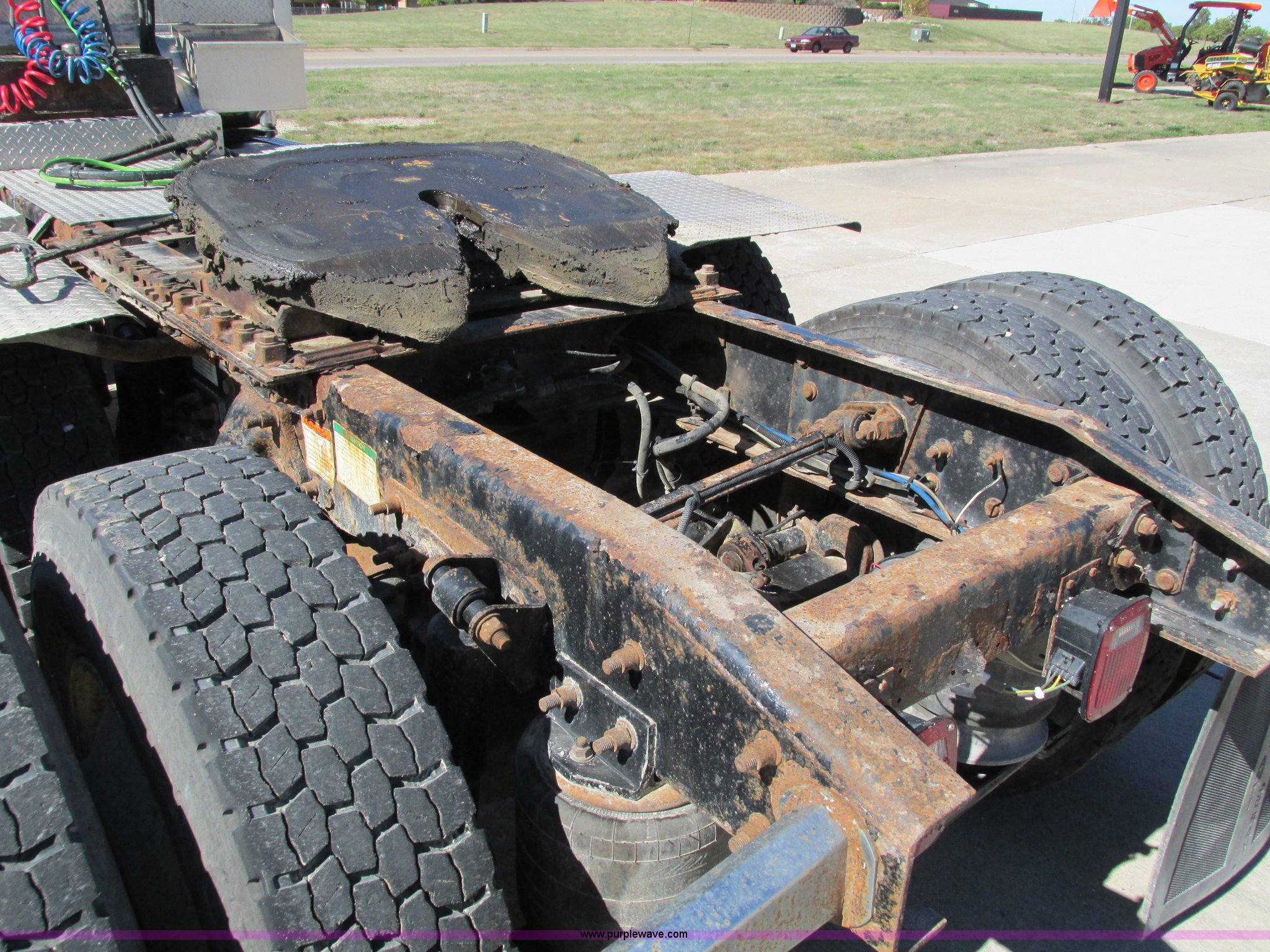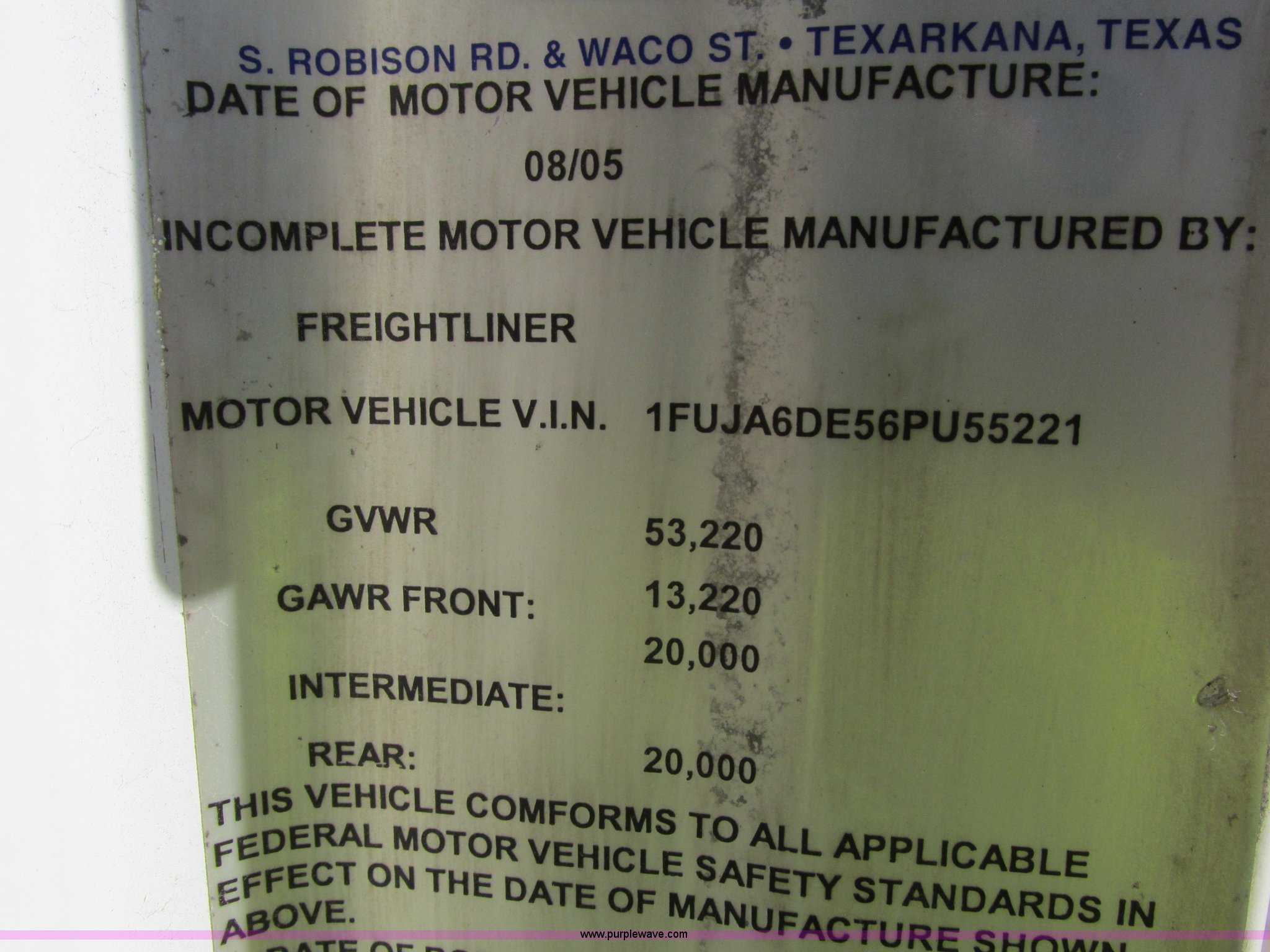 Purple Wave is selling a used Truck Tractor in Iowa. This item is a 2006 Freightliner Columbia CL120ST semi truck with the following: 313,240 miles on odometer, Caterpillar C13 Acert 12.5L L6 diesel engine, Meritor 10 speed manual transmission, Twin screw, AC and heat, Tilt, Cruise, AM/FM/cassette, Passenger daylight door, Telescoping steering wheel, Air suspension seat, Power windows, Heated mirrors, Air ride cab, Cloth driver's seat, 75.5"W x 66"H headache rack, Window, Storage, Chain hanger, Visor, Chrome bumper, Block heater, Air slide fifth wheel, Dual 90 gallon fuel tanks, Dual rear exhaust stacks, Aluminum deck plate, Aluminum half fenders, PTO, Wet kit, Dump valves, Air suspension, Air brakes, Jake brake, Nut wheel covers, Aluminum front wheels, 11R24.5 tires, GVWR 53,220 lbs, FAWR 13,220 lbs, IAWR 20,000 lbs, RAWR 20,000 lbs, Toolbox on driver's side is screwed shut, Toolbox on passenger's side is held closed with a strap, Light bar is partially working, PTO gasket leaks, Clutch fan squeals intermittently when AC is on, EIN 605758RA