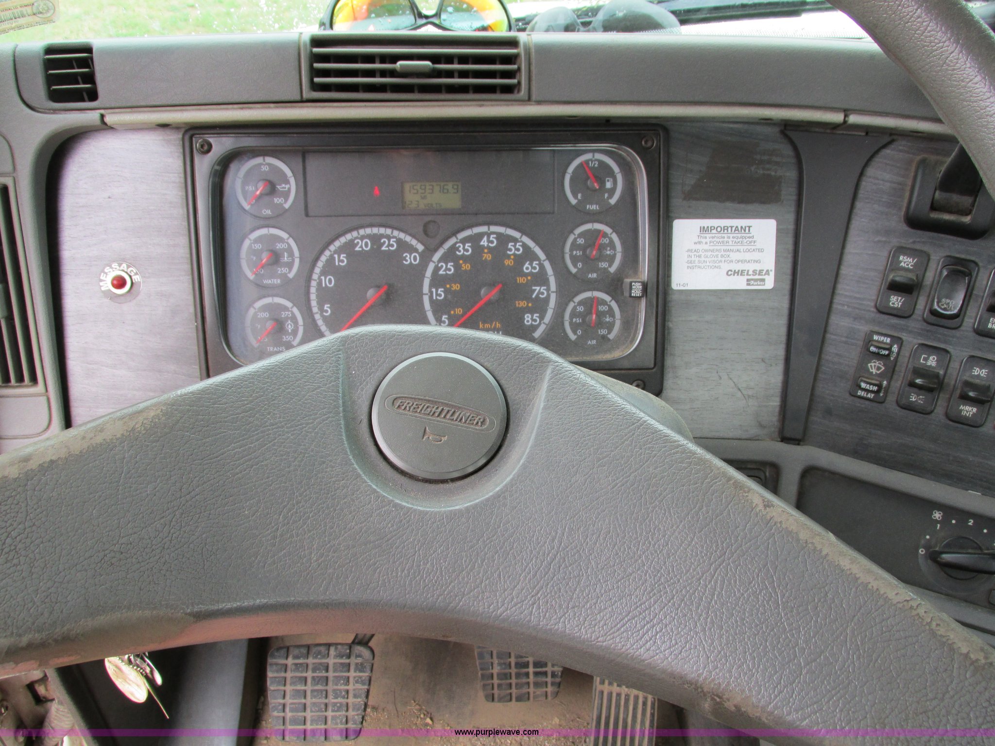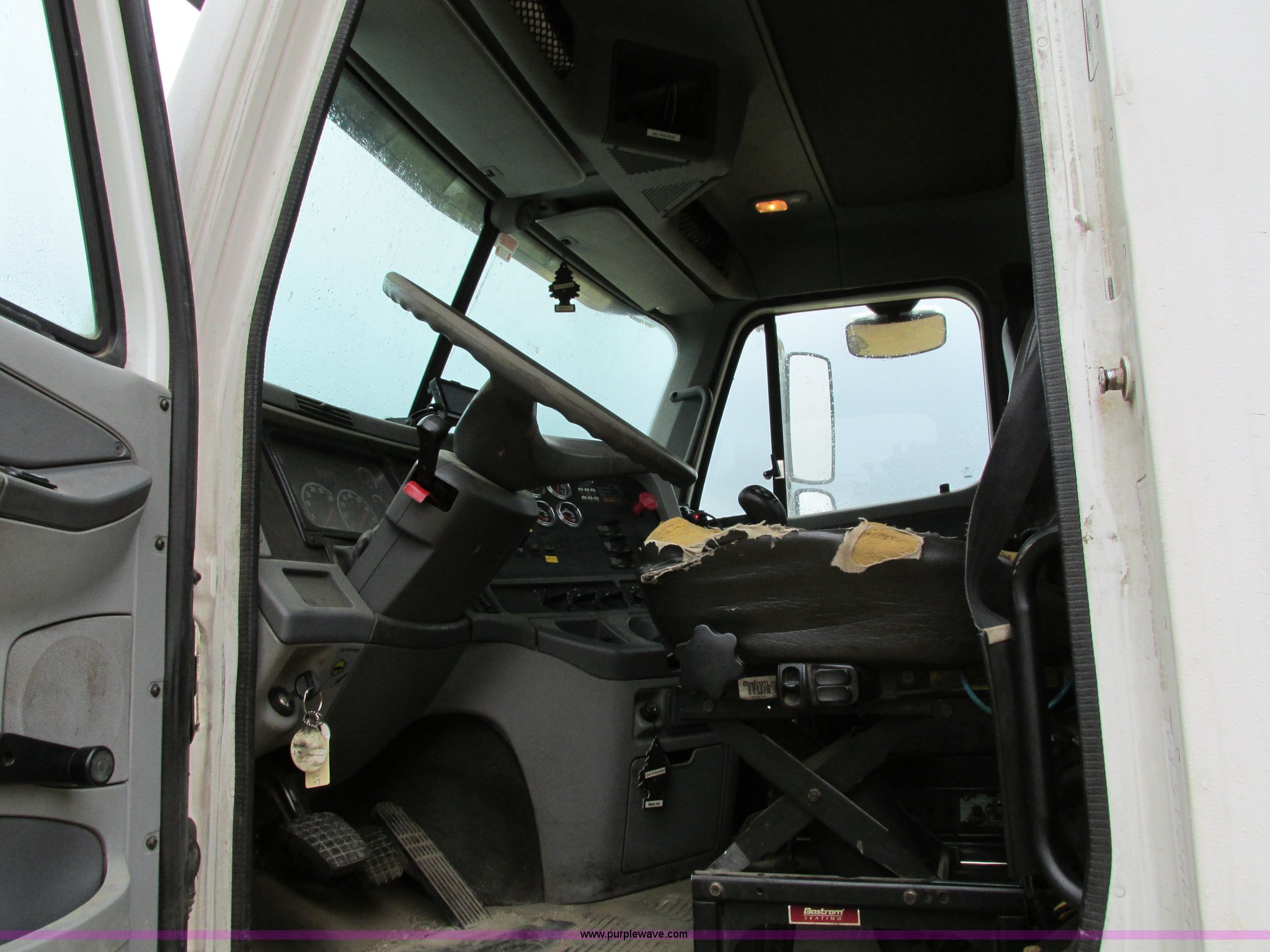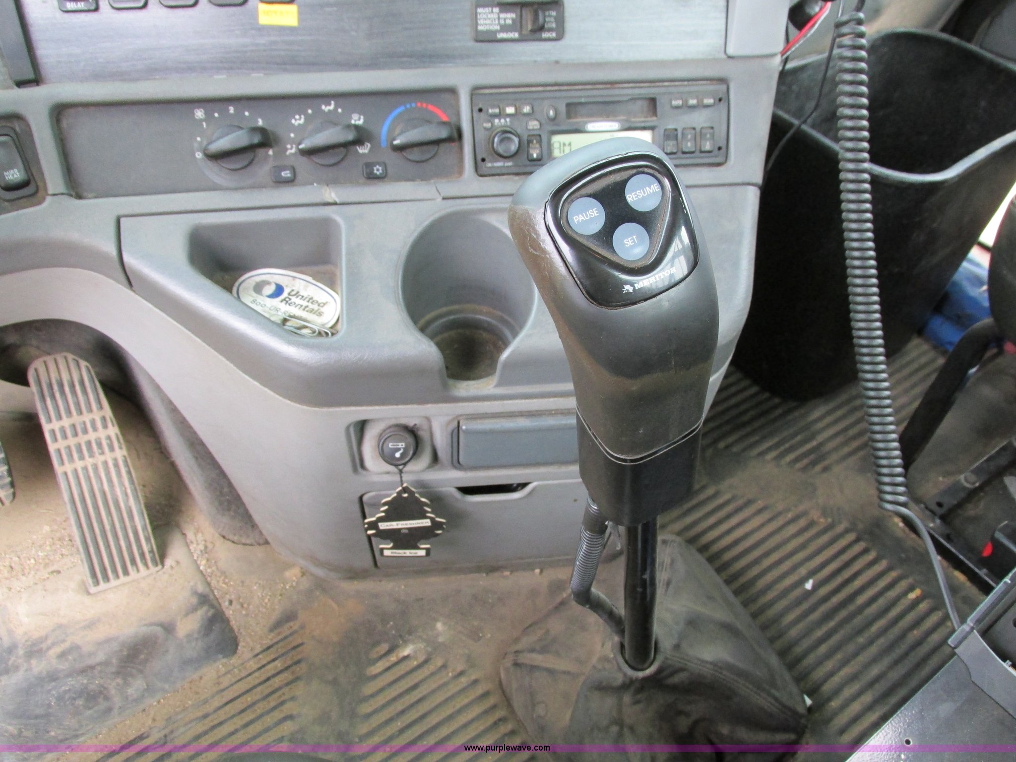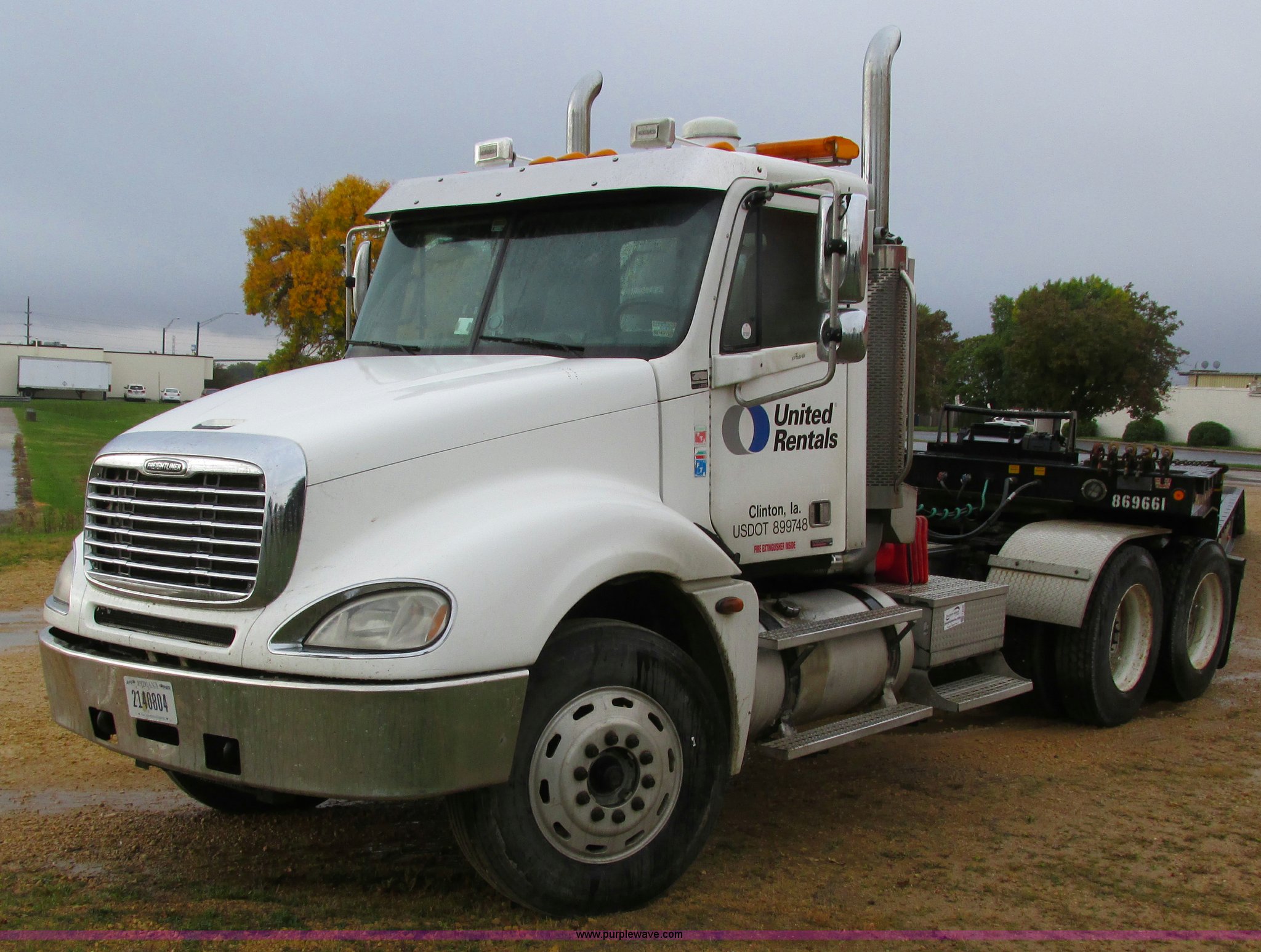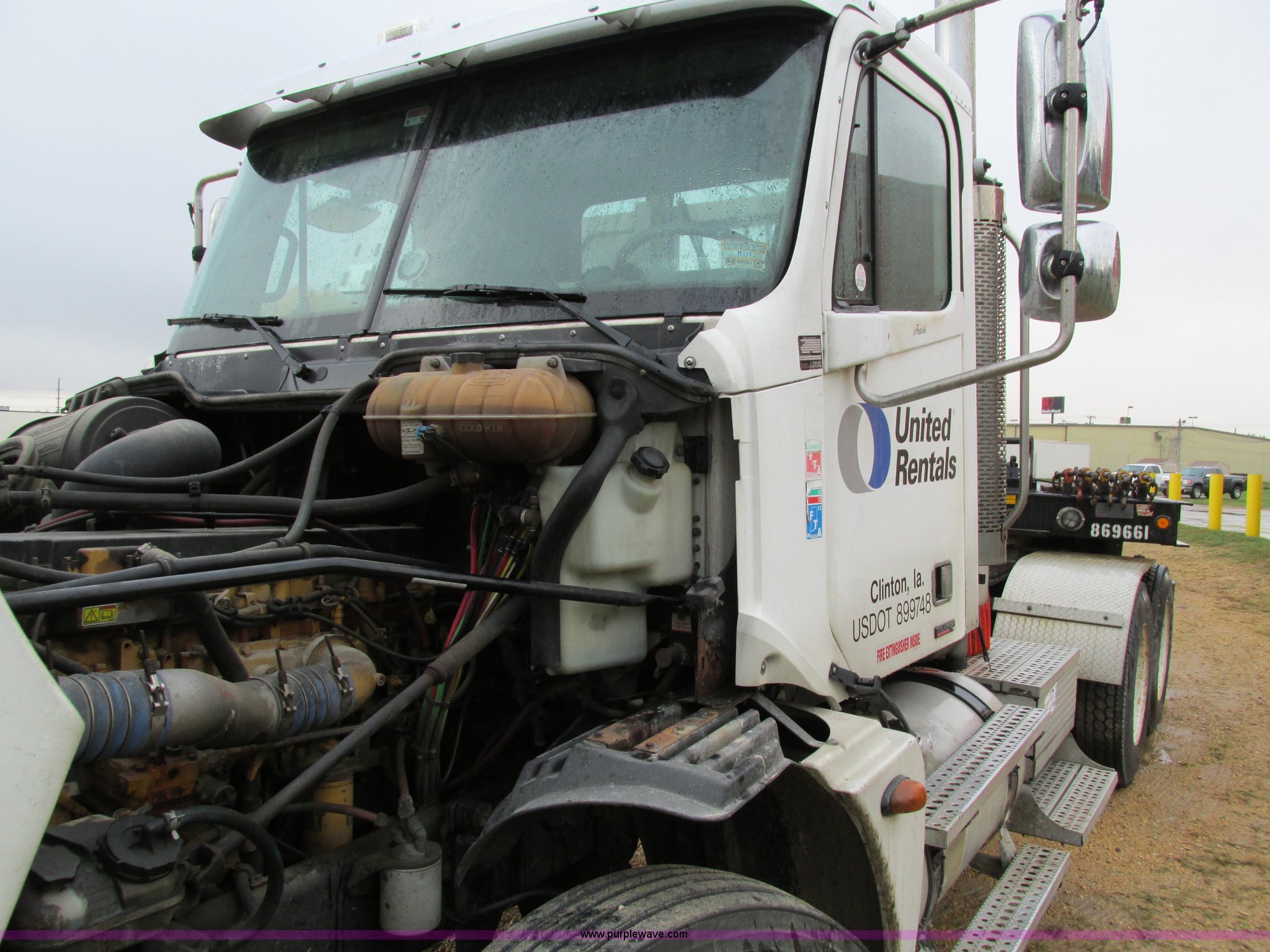 Purple Wave is selling a used Truck Tractor in Iowa. This item is a 2006 Freightliner Columbia 120 semi truck with the following: 158,977 actual miles, Miles may vary, unit is still in use, Caterpillar C13 Acert 12.5L L6 diesel engine, Meritor 10 speed manual transmission, Twin screw, AC and heat, Cruise, AM/FM/cassette, Passenger daylight door, Telescoping steering wheel, Spring suspension seat, Air suspension seat, Power windows, Heated mirrors, Air ride cab, 75.5"W x 66"H headache rack, Window, Storage, Chain hanger, Visor, Light bar, Dual 90 gallon fuel tank, Dual rear exhaust stacks, Aluminum deck plate, Aluminum half fenders, Flip open storage, PTO, Wet kit, Dump valves, Air suspension, Air brakes, Jake brake, Nut wheel covers, Aluminum wheels, 11R24.5 tires, GVWR 53,220 lbs, FAWR 13,220 lbs, IAWR 20,000 lbs, RAWR 20,000 lbs, Chains and binders not included, Cones not included, Loose items in-cab not included, Trailer not included, EIN 594025RA