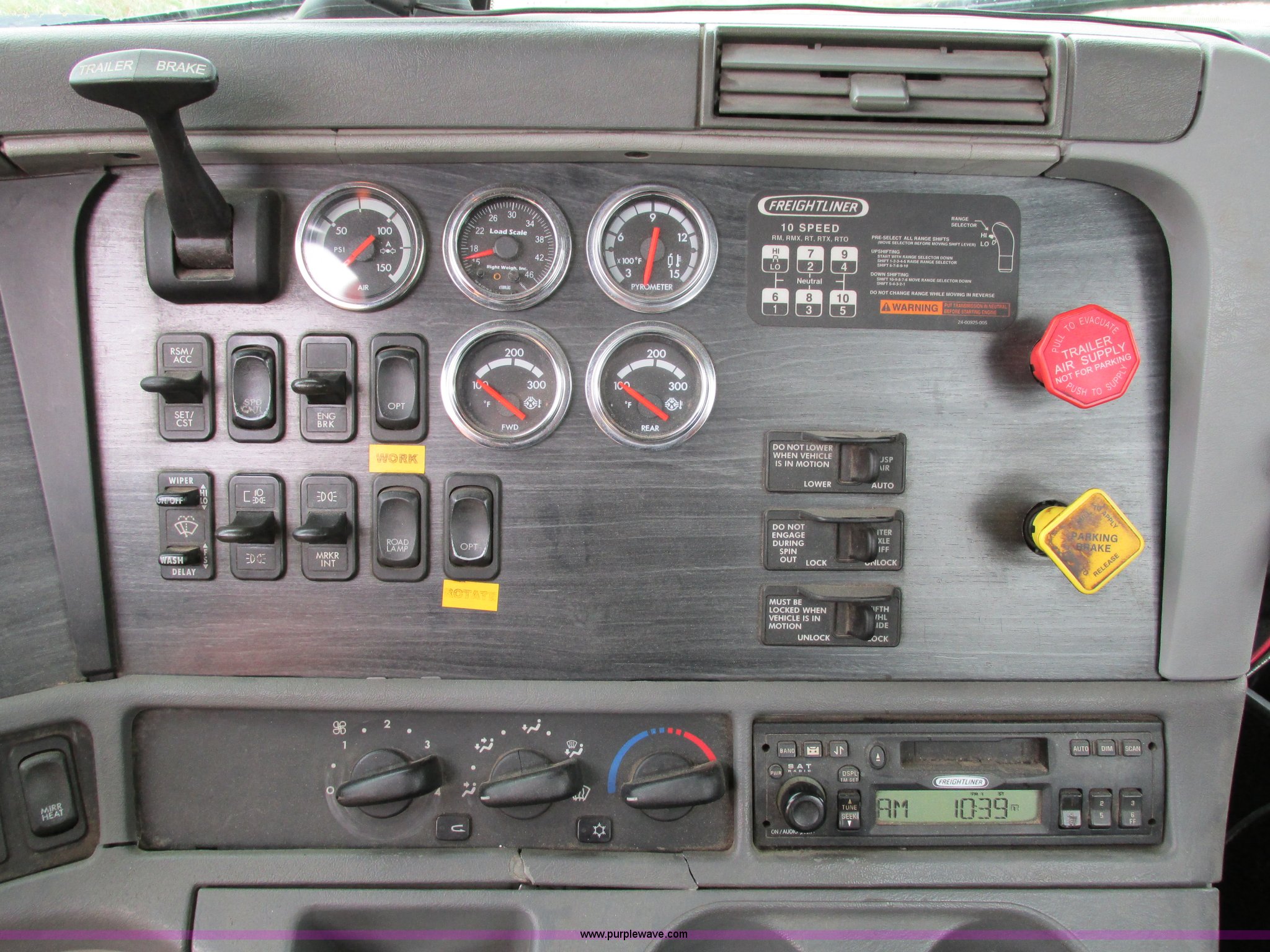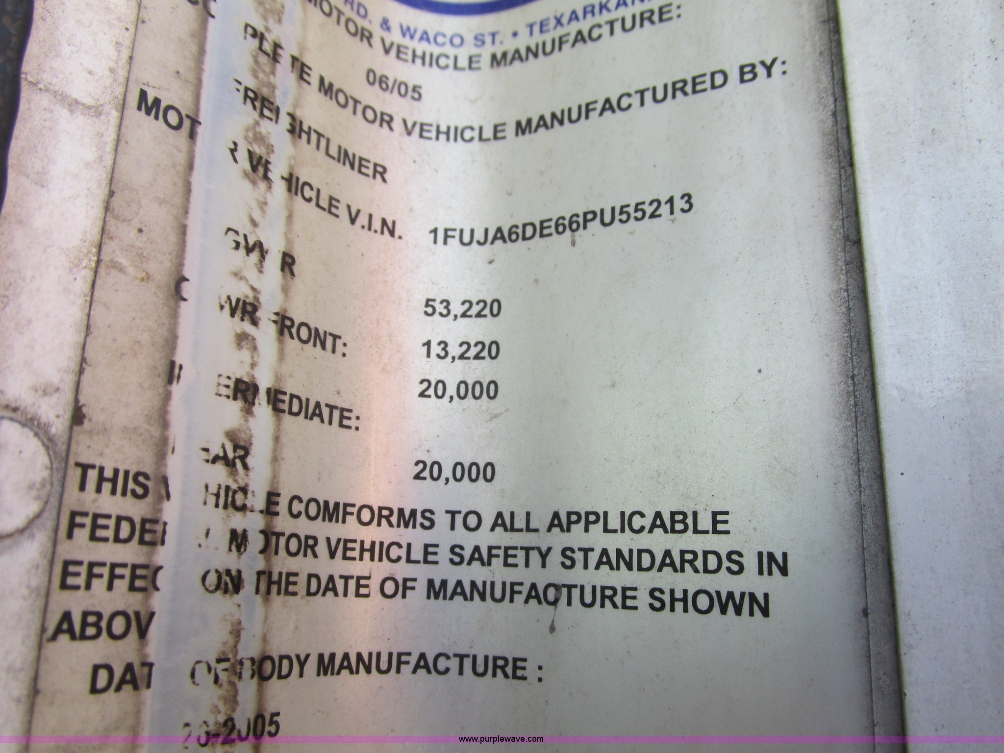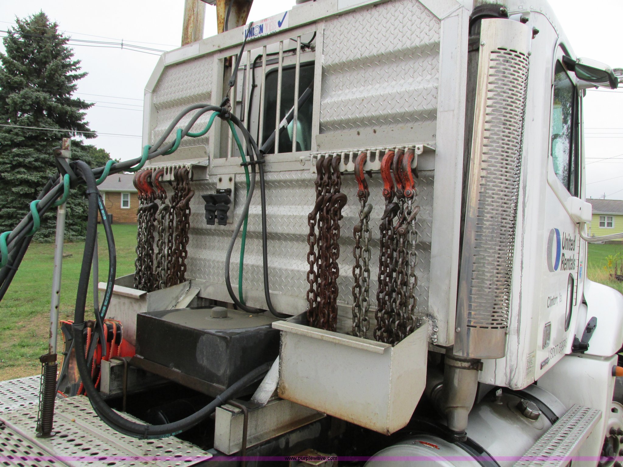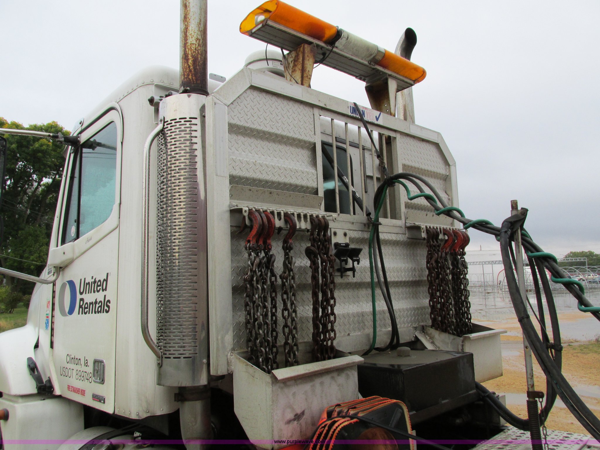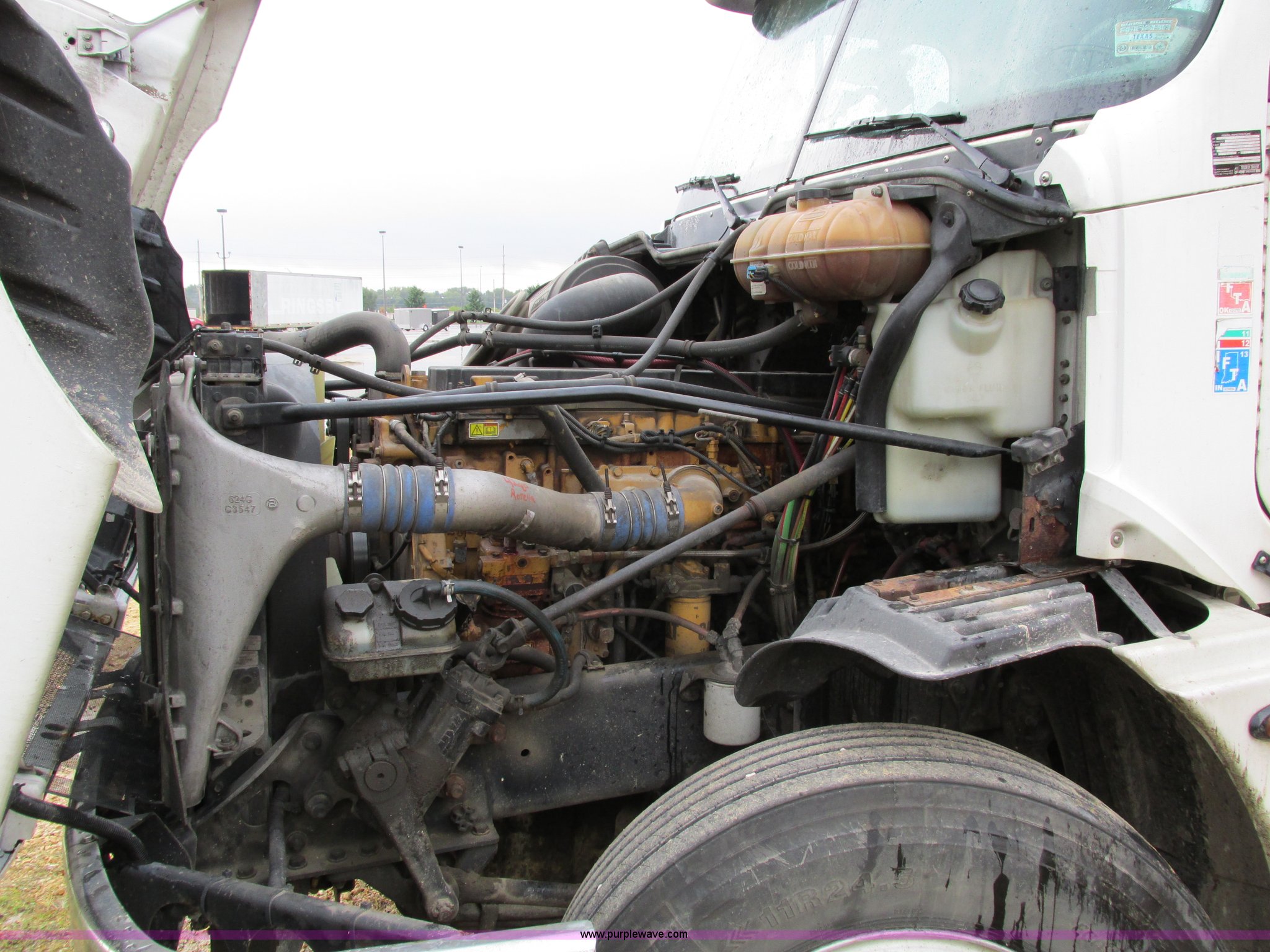 Purple Wave is selling a used Truck Tractor in Iowa. This item is a 2006 Freightliner Columbia 120 semi truck with the following: 158,977 actual miles, Miles may vary, unit is still in use, Caterpillar C13 Acert 12.5L L6 diesel engine, Meritor 10 speed manual transmission, Twin screw, AC and heat, Cruise, AM/FM/cassette, Passenger daylight door, Telescoping steering wheel, Spring suspension seat, Air suspension seat, Power windows, Heated mirrors, Air ride cab, 75.5"W x 66"H headache rack, Window, Storage, Chain hanger, Visor, Light bar, Dual 90 gallon fuel tank, Dual rear exhaust stacks, Aluminum deck plate, Aluminum half fenders, Flip open storage, PTO, Wet kit, Dump valves, Air suspension, Air brakes, Jake brake, Nut wheel covers, Aluminum wheels, 11R24.5 tires, GVWR 53,220 lbs, FAWR 13,220 lbs, IAWR 20,000 lbs, RAWR 20,000 lbs, Chains and binders not included, Cones not included, Loose items in-cab not included, Trailer not included, EIN 594025RA