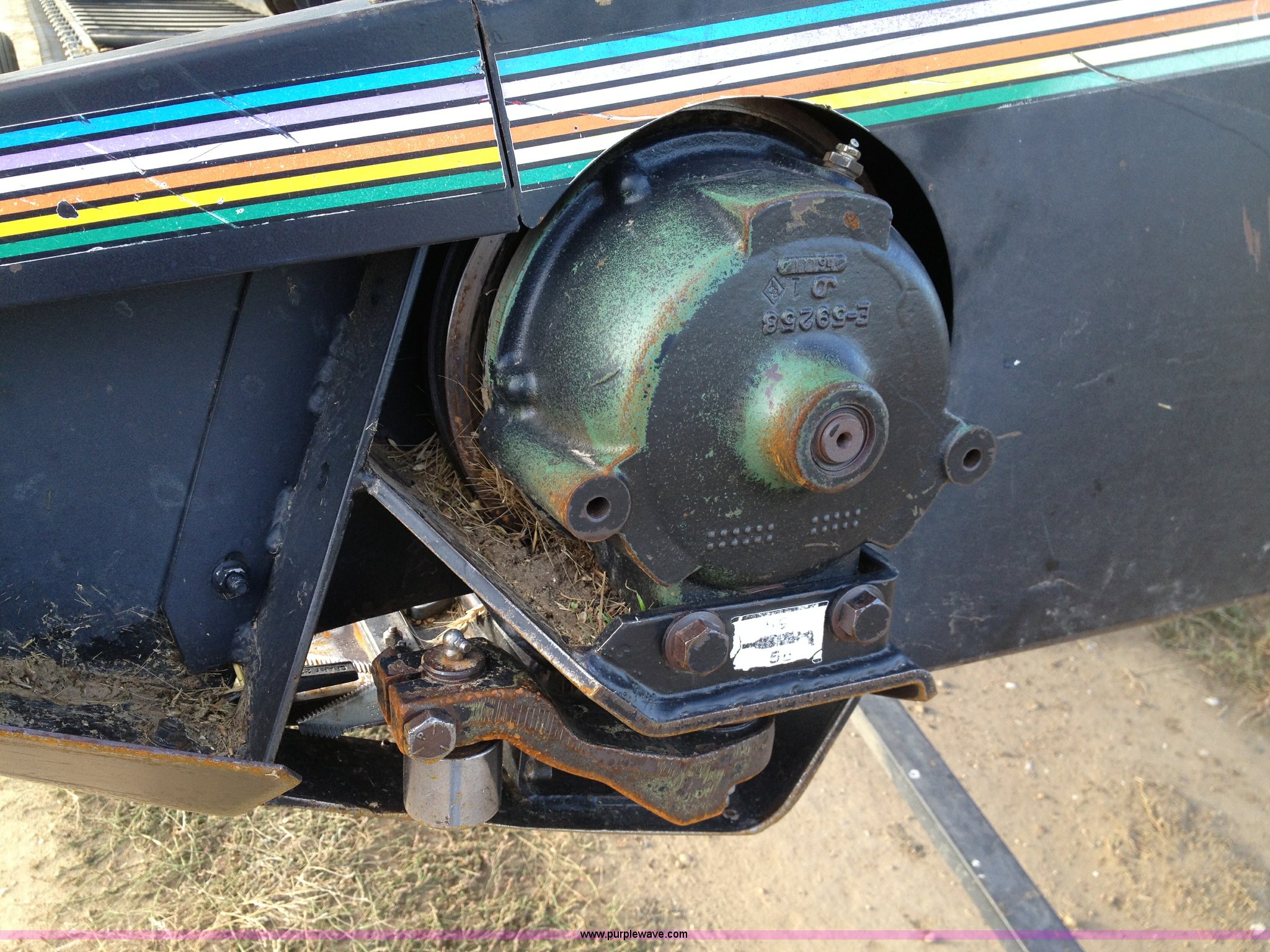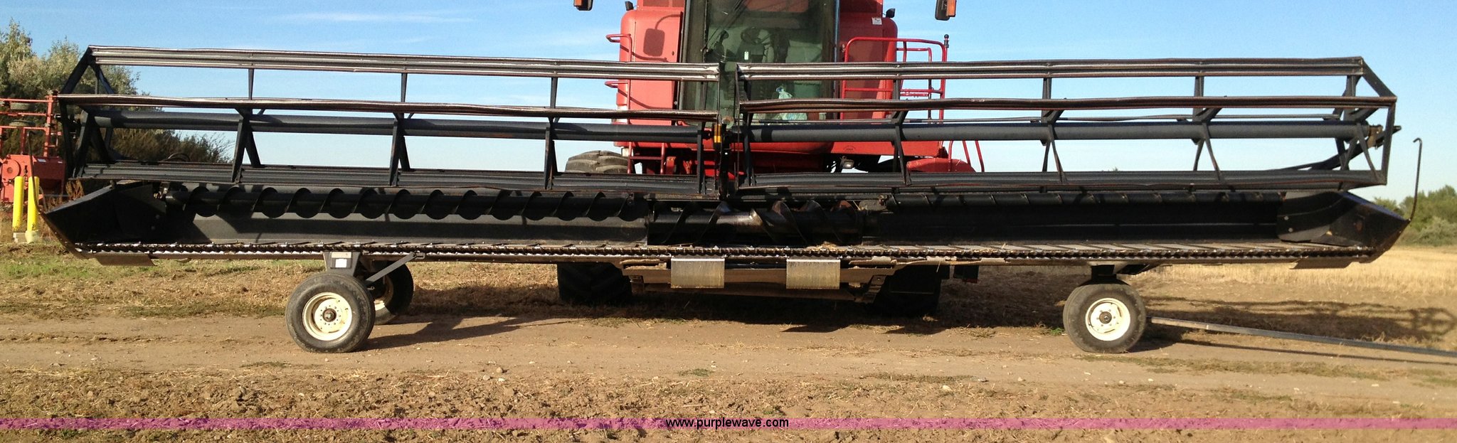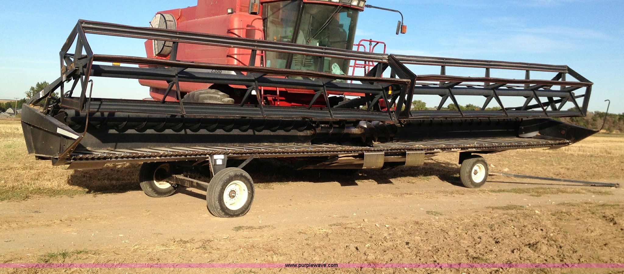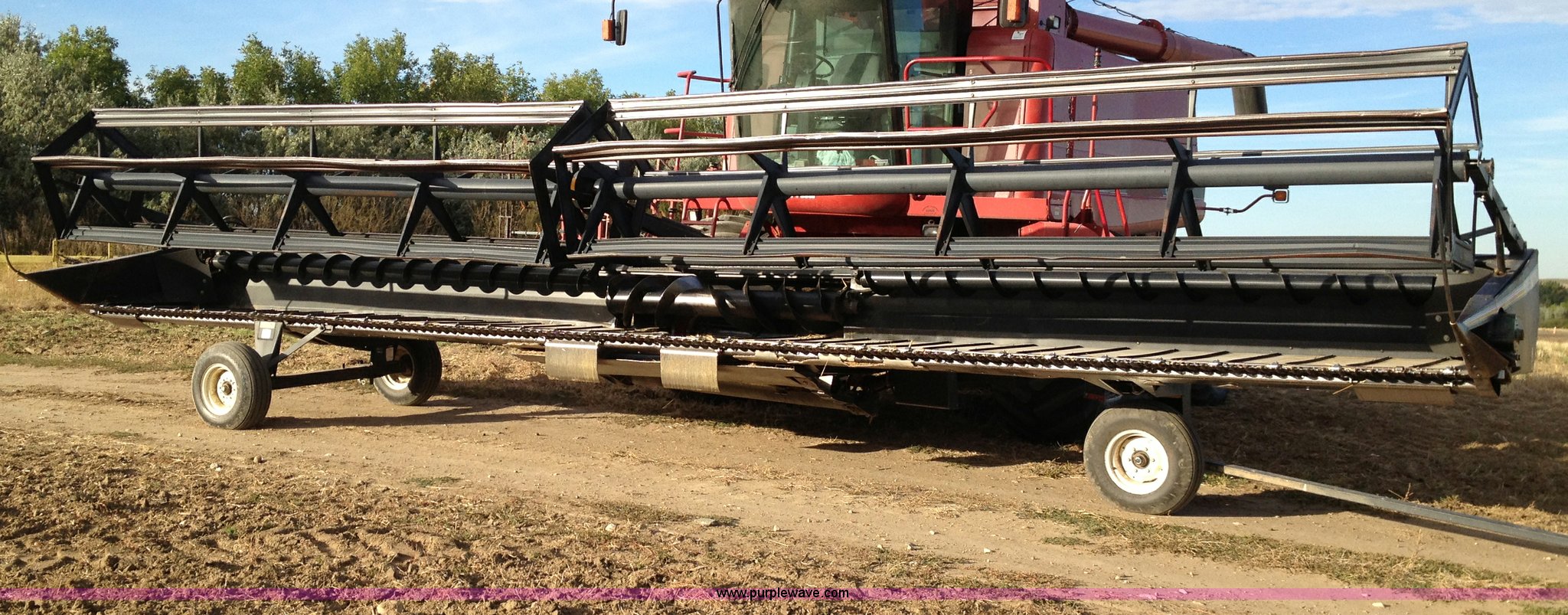 Purple Wave is selling a used Platform or Stripper Head in North Dakota. This item is a 1997 MacDon 960 36' draper head with the following: Crary cutting knives and guards, Case IH adapter plate, Firestone 9.5L-14 tires, Serial 102960