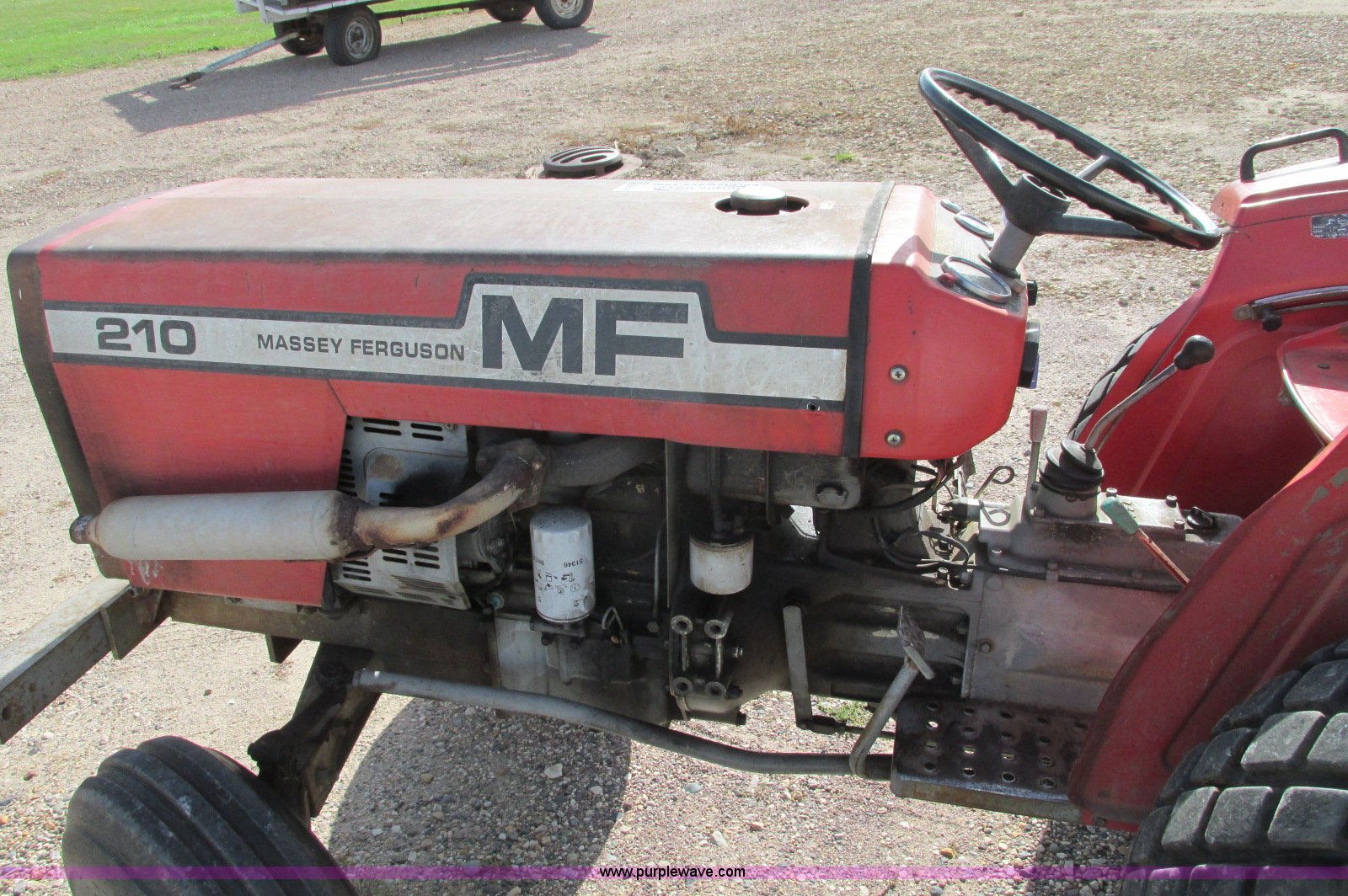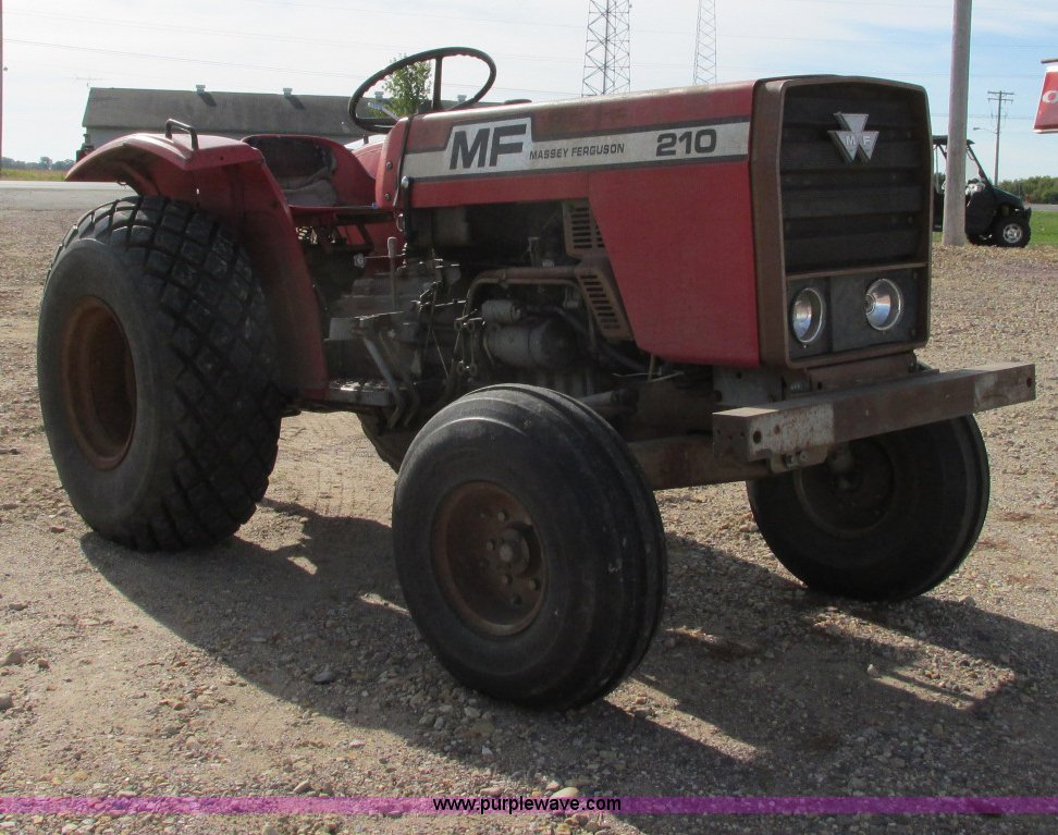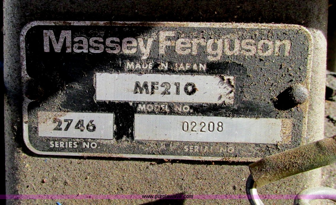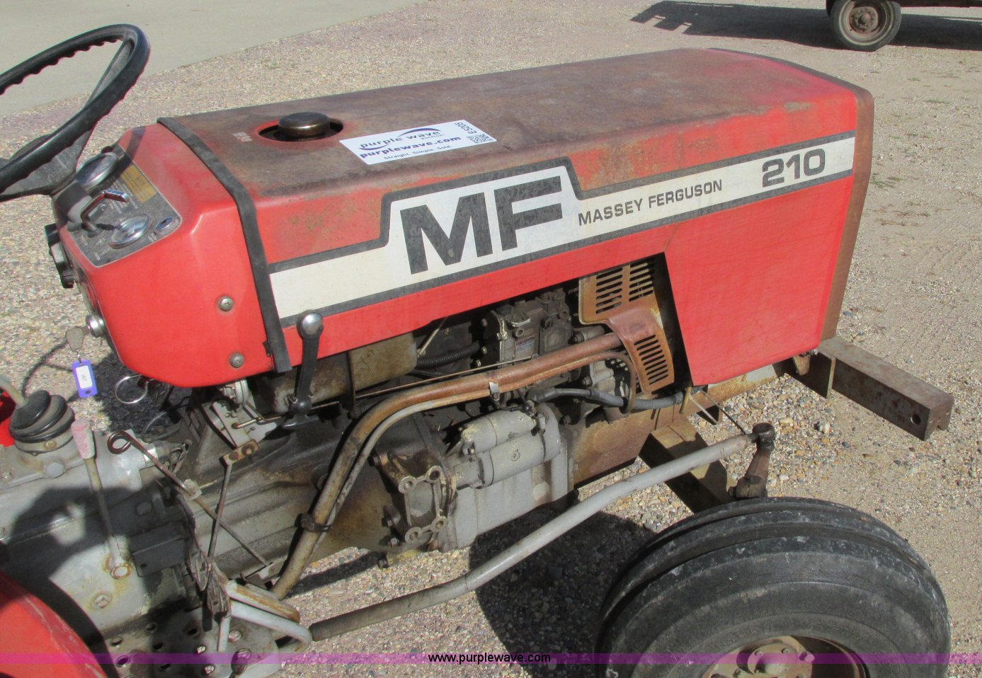 Purple Wave is selling a used Tractor in Minnesota. This item is a 1980 Massey-Ferguson 210 tractor with the following: 2,569 hours on meter, Toyosha 1.3L two cylinder diesel engine, 25 HP, 2,500 RPM, 12F-3R gears, 540 PTO, Three point, 7.50-10 front tires, 13.6-16 rear turf tires, 2,764 lbs. base operating weight, Paint faded, Lights missing, Surface rust, Serial 02208