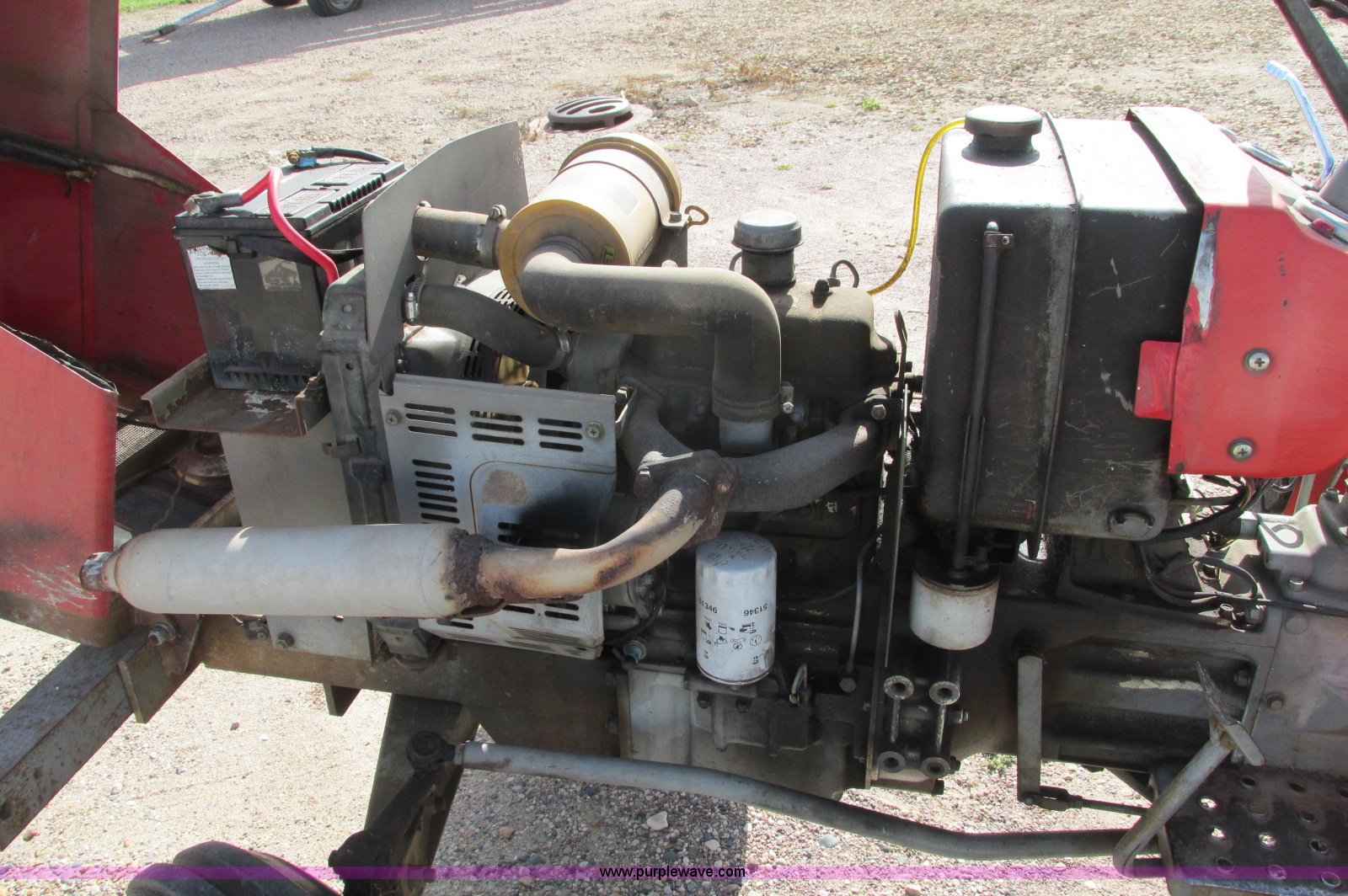 1980 Massey-Ferguson 210 tractor. 2,569 hours on meter, Toyosha 1.3L two cylinder diesel engine 25 HP, 2,500 RPM, 12F-3R gears, 540 PTO, Three point, 7.50-10 front tires, 13.6-16 rear turf tires, 2,764 lbs. base operating weight, Paint faded, Lights missing, Surface rust, Serial 02208. 230 Jefferson Ave East. Gaylord, MN 55334