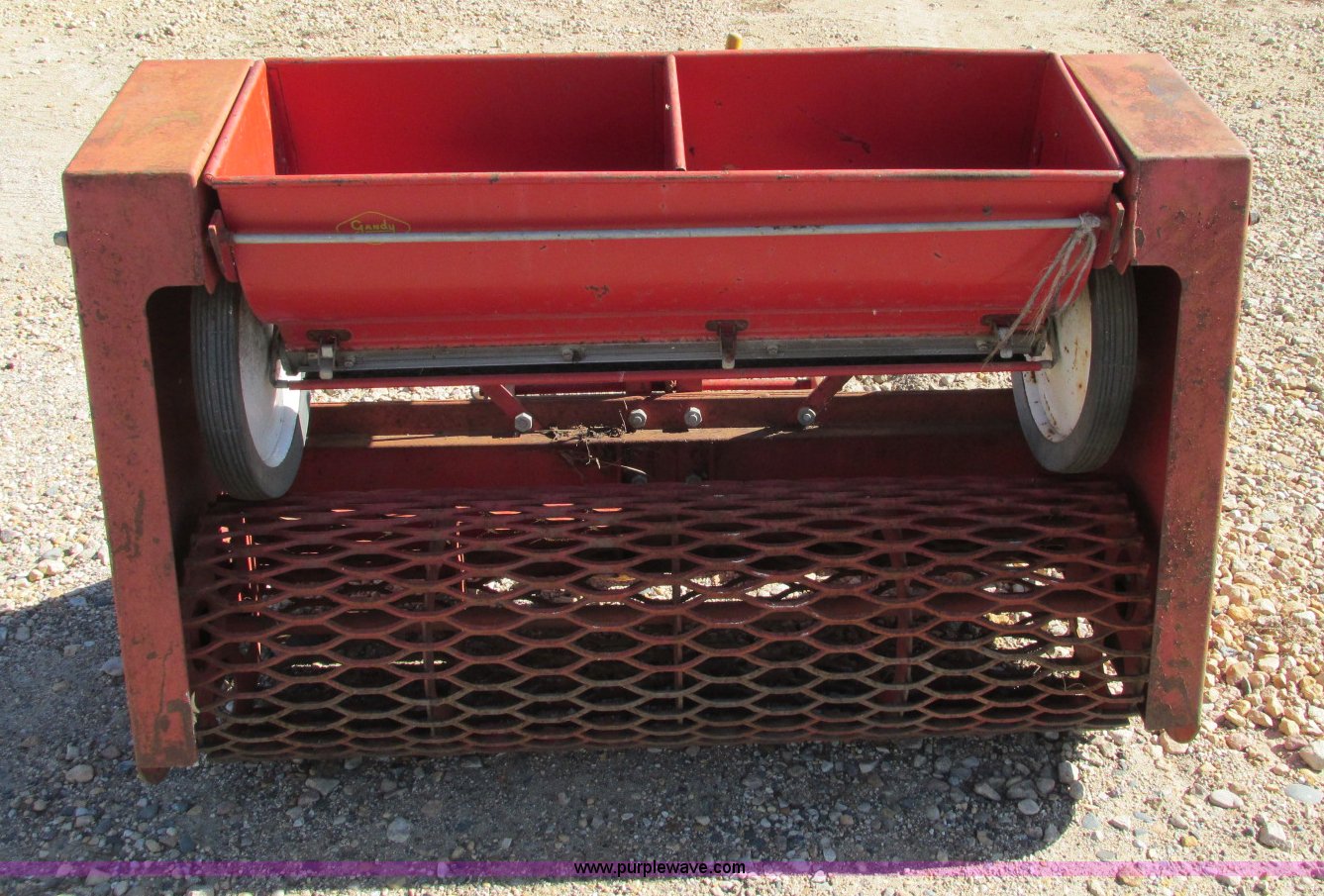 Purple Wave is selling a used Lawn and Garden in Minnesota. This item is a Gandy Landscaper 4 overseeder with the following: 46"W, Twin seed hoppers, Manual seed drop settings, Dethatching teeth, Three point