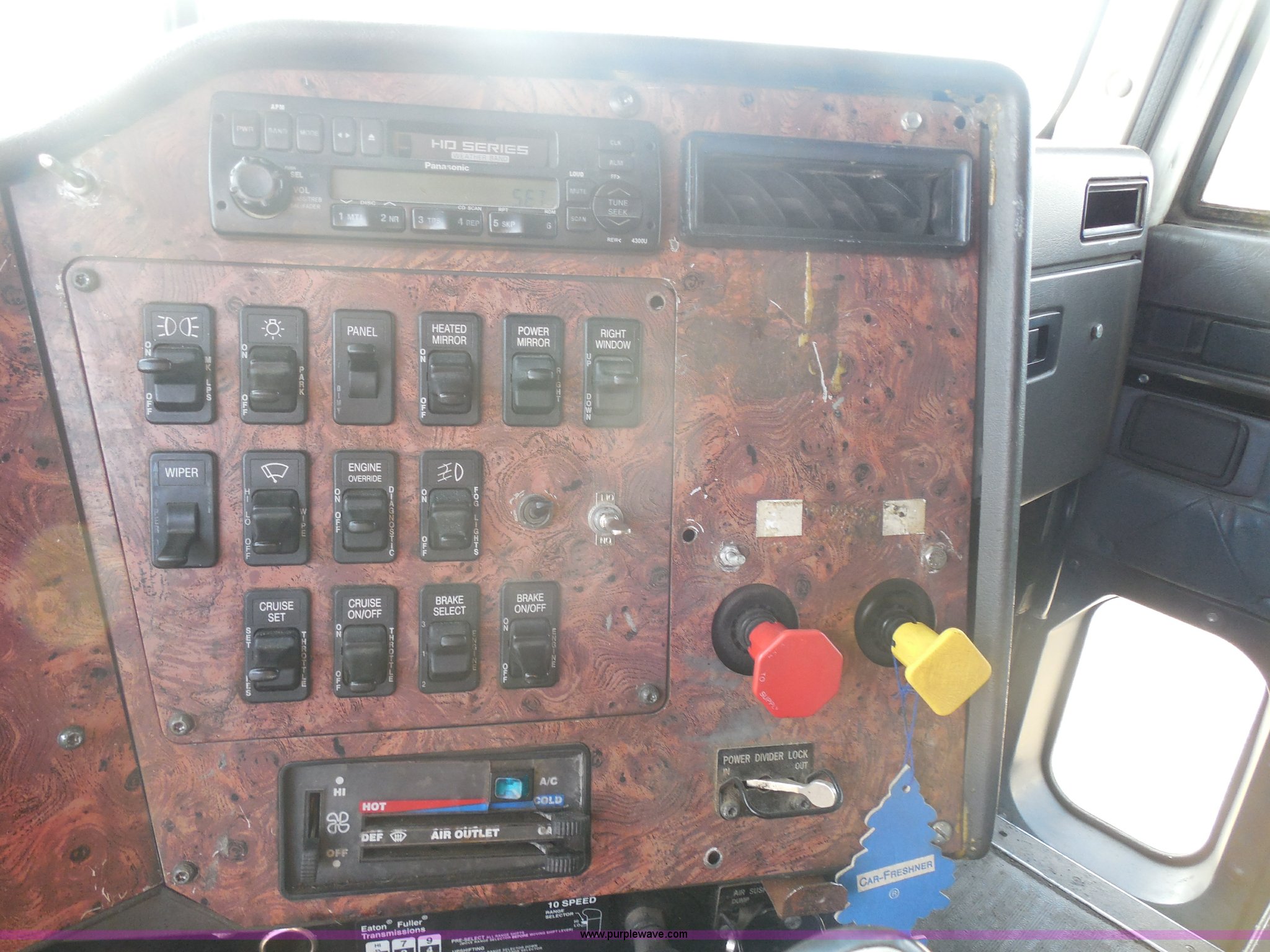 Purple Wave is selling a used Truck Tractor in Minnesota. This item is a 1999 International 9400 semi truck with the following: 279,121 miles on odometer, Detroit Diesel 12.7L L6 diesel engine, Eaton Fuller 10 speed manual transmission, AC and heat, Cruise, AM/FM, Passenger daylight door, Power windows and mirrors, Heated mirrors, Single sleeper, No mattress, Storage, Visor, Dual fuel tanks, Single exhaust stack, Dump valves, Air suspension, Air brakes, 295/75R22.5 tires, GVWR 52,000 lbs, FAWR 12,000 lbs, IAWR 20,000 lbs, RAWR 20,000 lbs, Cosmetic damage, Left fender damaged, Paint faded, Check engine light on
