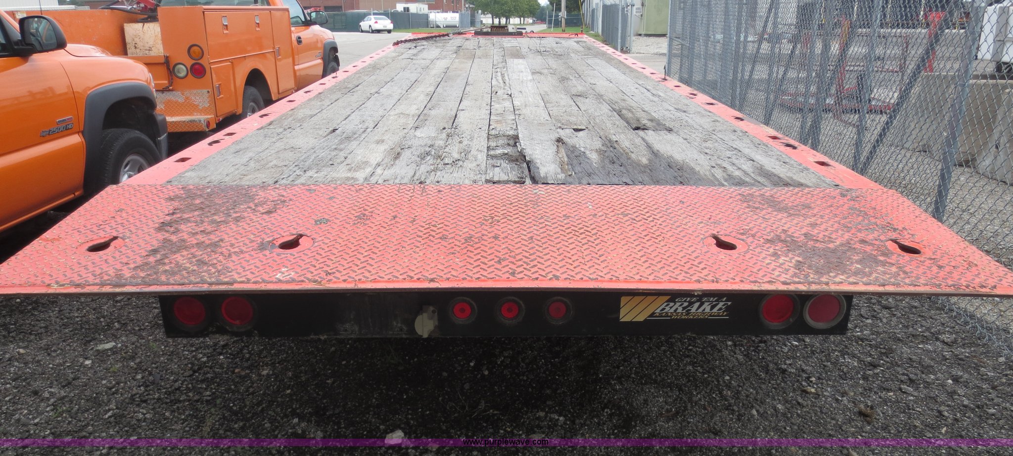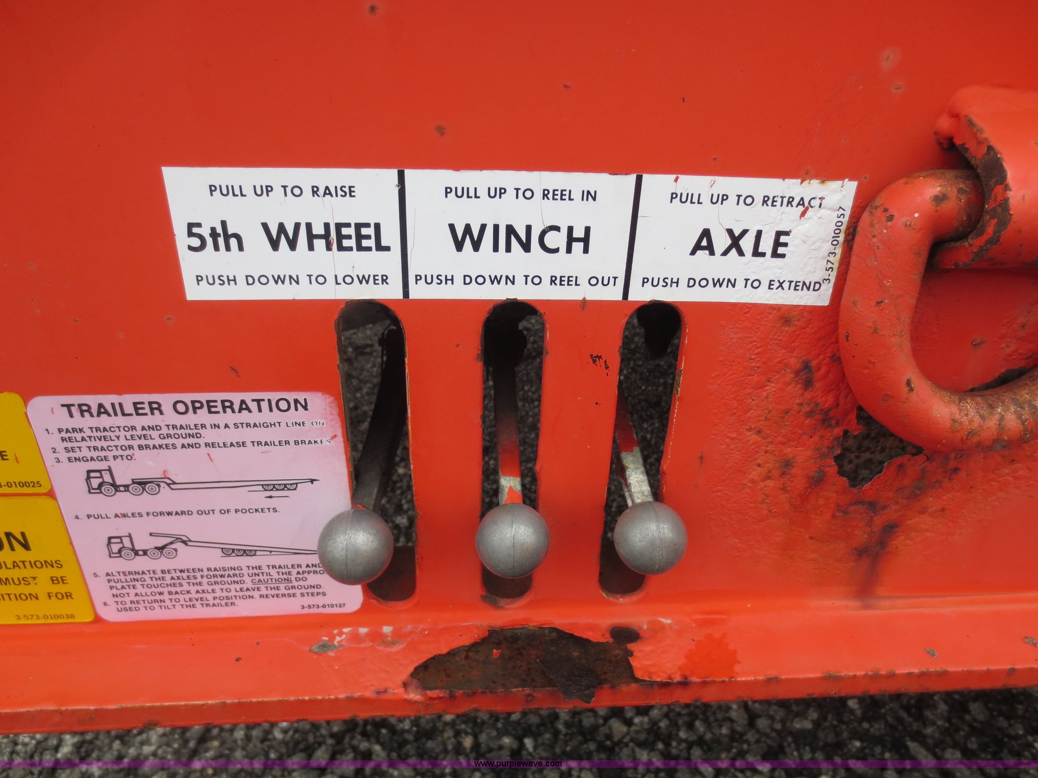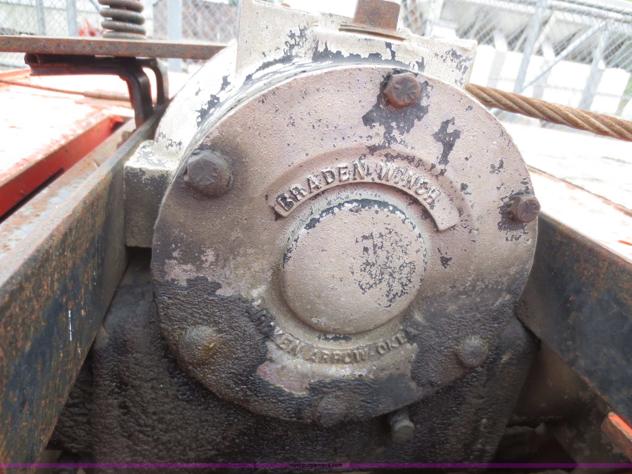 Purple Wave is selling a used Equip. Trailer in Kansas. This item is a 1996 Landoll 345-31 trailer with the following: 25'7"L x 102"W deck, 29" dove tail, 20 ton capacity, Tilt deck, Braden winch, 12,000 lbs capacity, 1/2" cable, Three valve hydraulic operation, Fifth wheel up/down, Winch in/out, Axle retract/extend, D-ring tie downs, Spring suspension, Air brakes, 10R17.5 tires, Tubes under deck rusted through, KDOT ID 777-4065