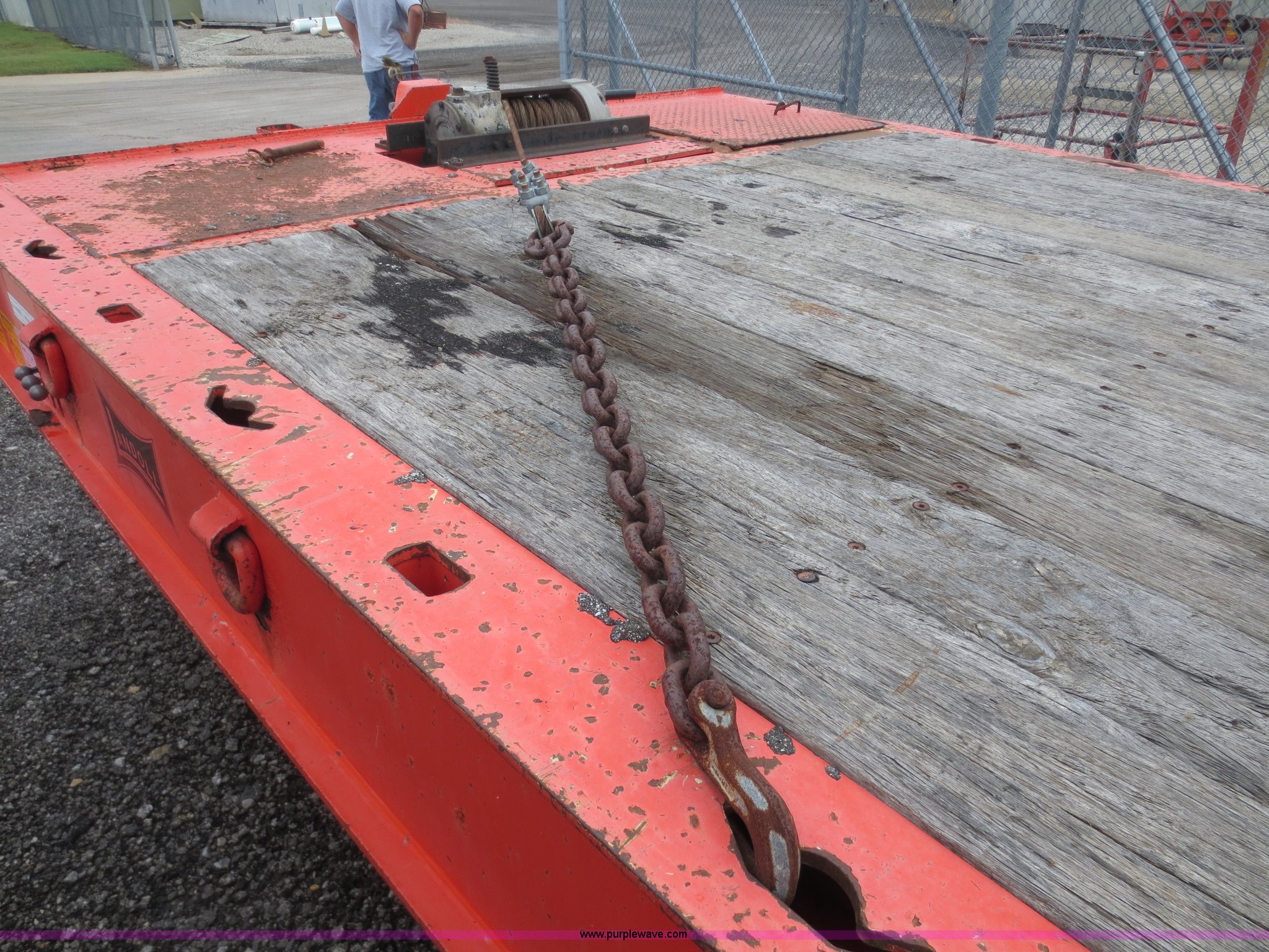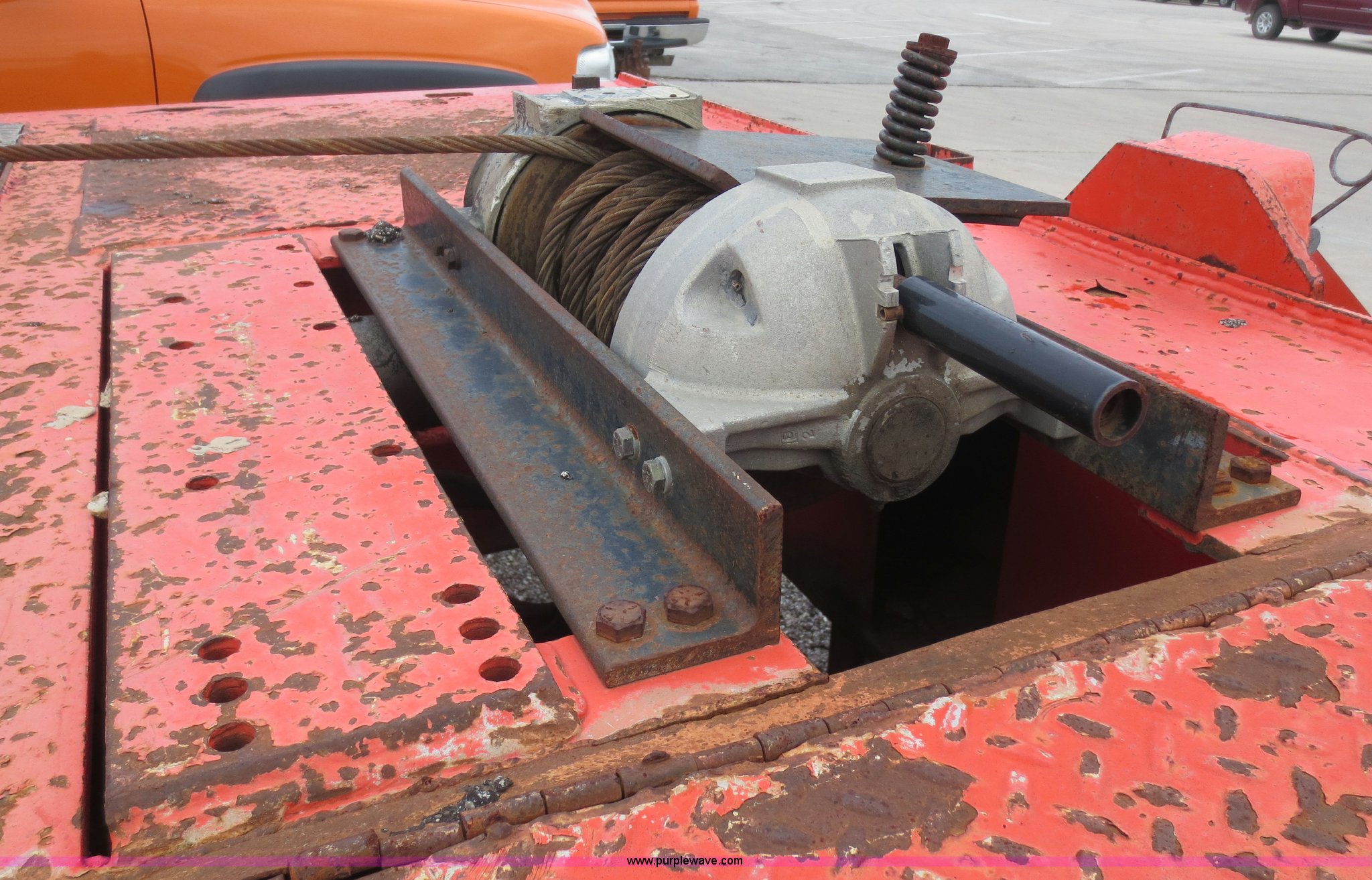 1996 Landoll 345-31 trailer. 25'7"L x 102"W deck, 29" dove tail, 20 ton capacity, Tilt deck, Braden winch 12,000 lbs capacity, 1/2" cable, Three valve hydraulic operation Fifth wheel up/down, Winch in/out, Axle retract/extend, D-ring tie downs, Spring suspension, Air brakes, 10R17.5 tires, Tubes under deck rusted through, KDOT ID 777-4065. 1LH345JH8T1008136. KDOT - Chanute. 411 W 14th. Chanute, KS 66720