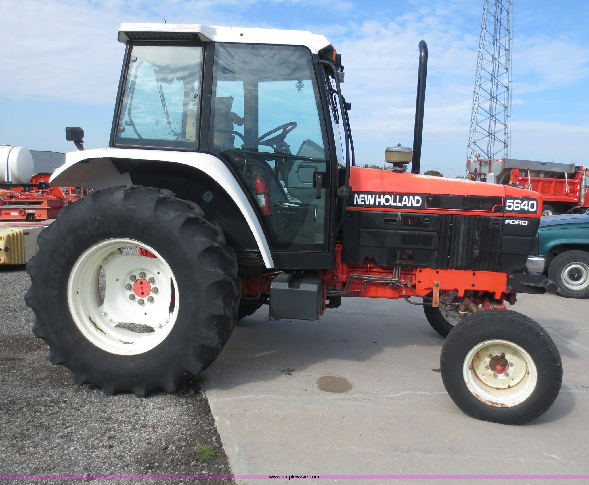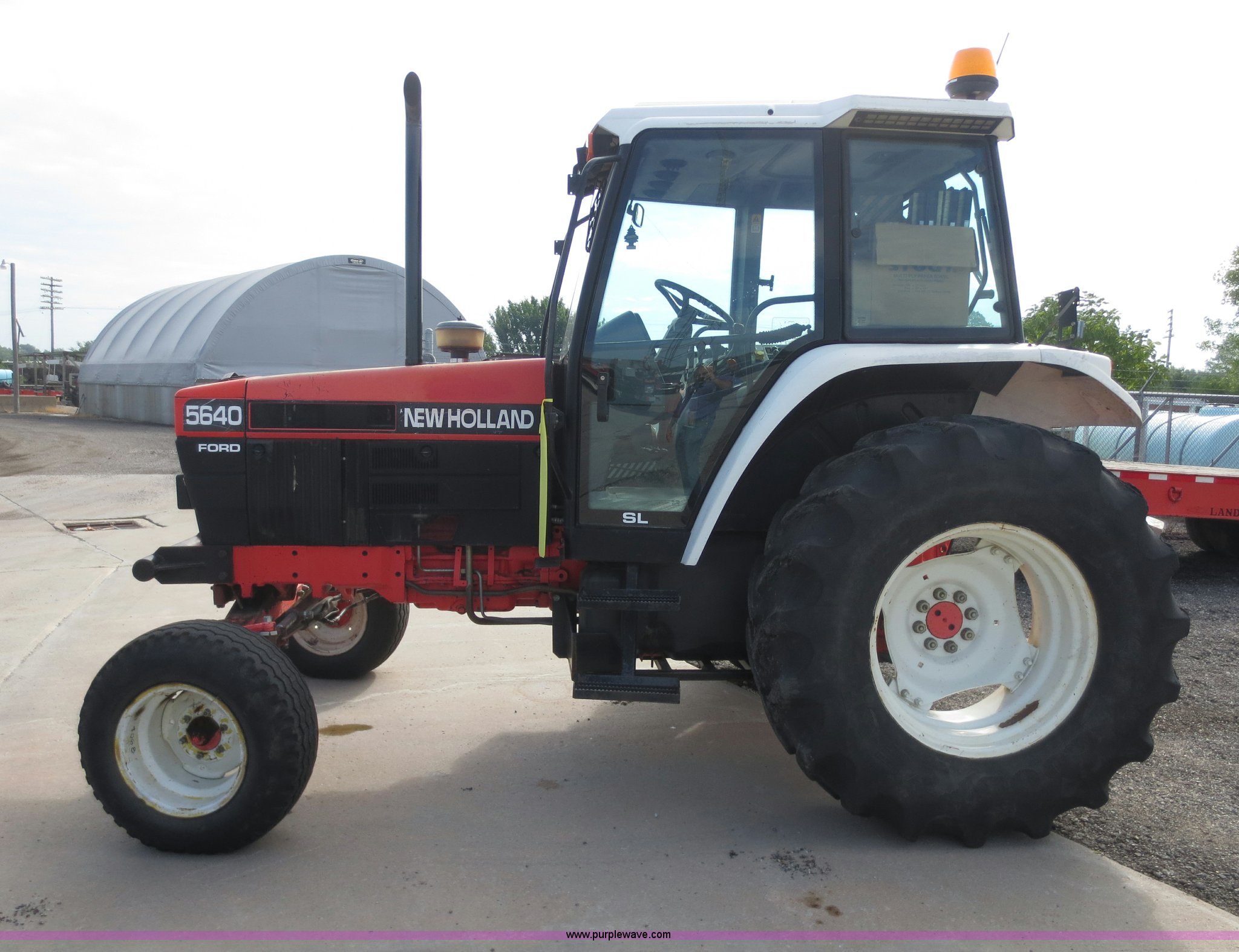 Purple Wave is selling a used Tractor in Kansas. This item is a 1998 New Holland 5640SL tractor with the following: 1,154 hours on meter, Ford 4.4L four cylinder diesel engine, Synchroshift transmission, 12F-12R gears, Differential lock, AC and heat, AM/FM/cassette, Spring suspension seat, Tilt steering wheel, Three point, Arms not installed, Auxiliary outlet, 540 PTO, 66 PTO HP, (4) rear hydraulic remotes, Wheel weights, 94" wheelbase, 16" front tires, 18.4-30 rear tires, Alamo 2500D hydraulic sickle mower, 10'W, Hydraulic side mount operation, Serial 9817556, KDOT ID 981-7556, Oil leak at crank case plug, Tie rod loose, PTO knob not working, Serial 087854B, KDOT ID 351-4068