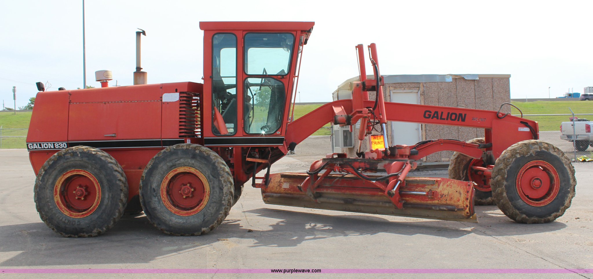 Purple Wave is selling a used Motor Grader in Kansas. This item is a 1997 Galion 830B motor grader with the following: 3,351 hours on meter, Cummins 56D102-1 5.9L six cylinder diesel engine, 152 HP, Serial 45415576, Funk powershift transmission, 6F-3R gears, Transmission is bad, Four wheel drive, EROPS, AC and heat, Spring suspension seat, Front and rear work lights, 14'L moldboard, Tip control, Side shift, 14.00-24 tires, Wiring issues, Serial G380020U202930, KDOT ID 305-1017