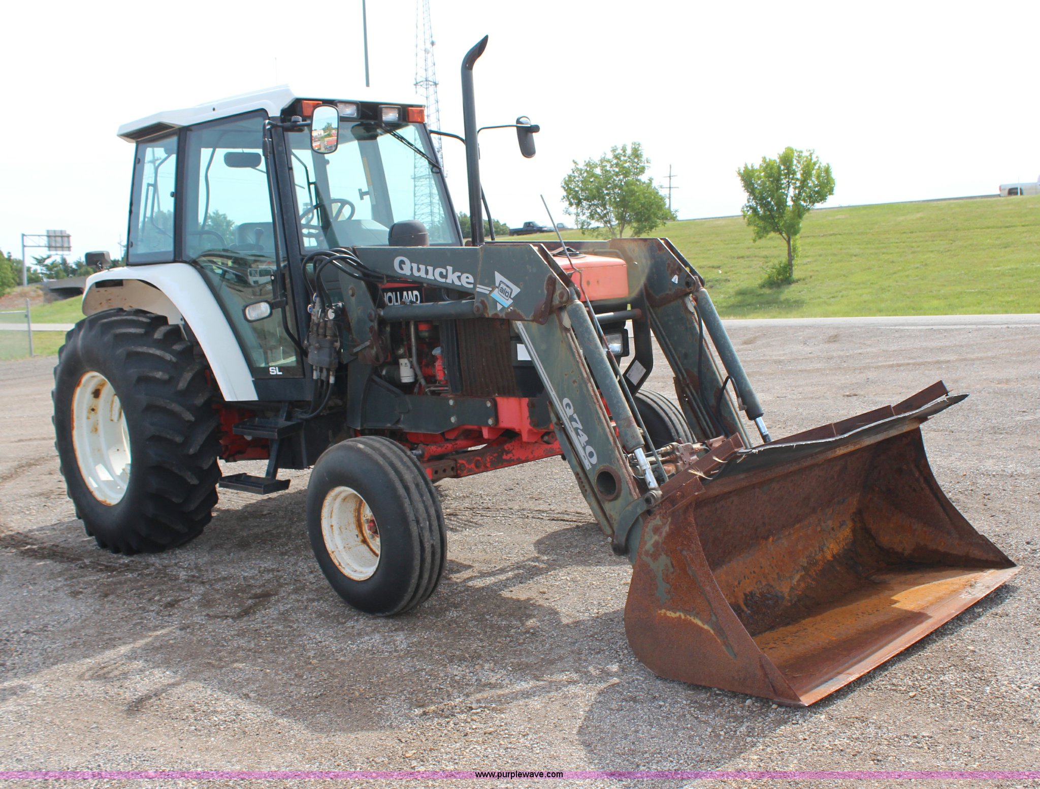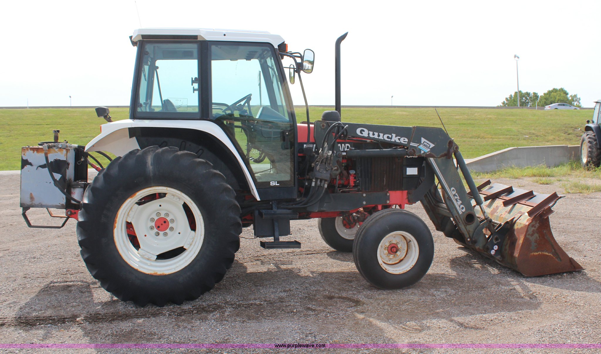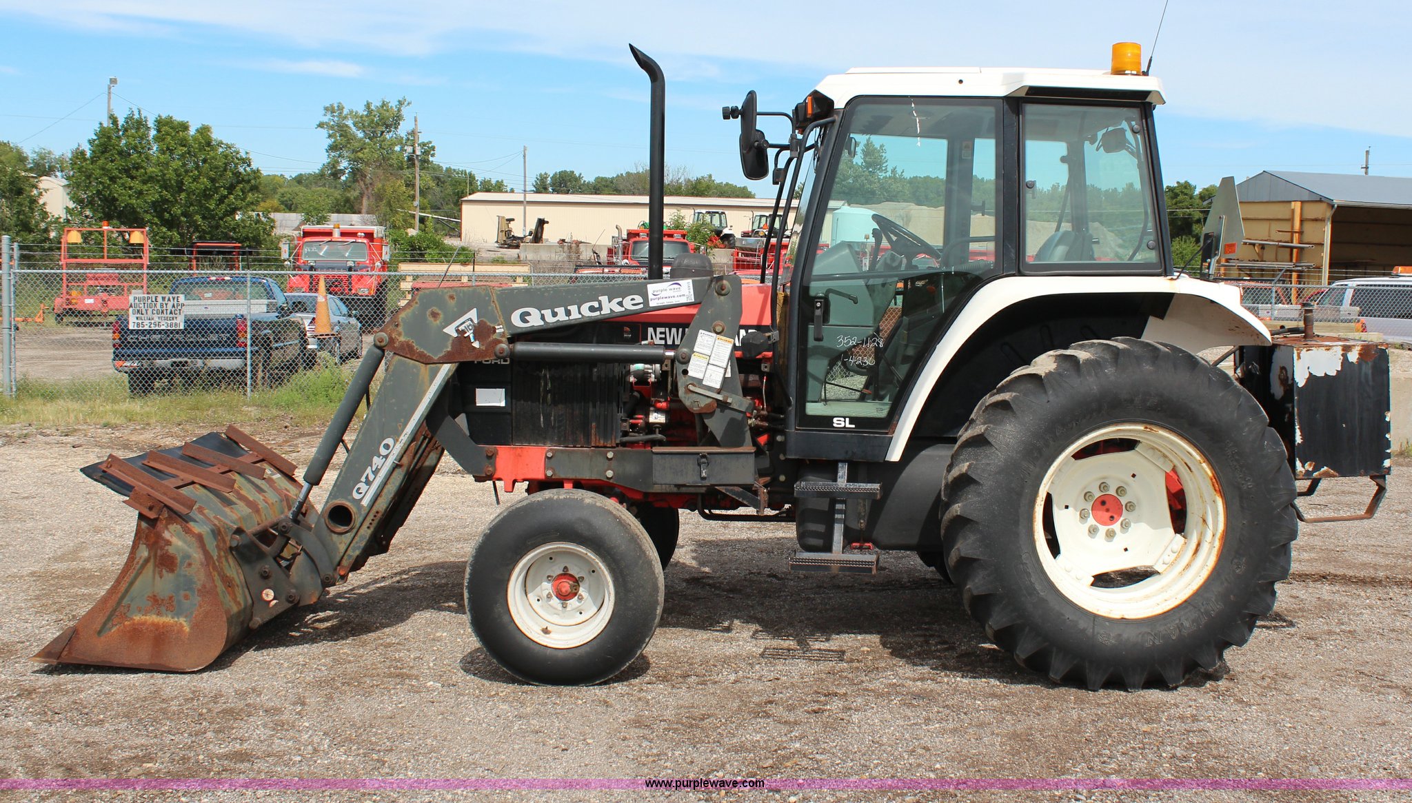 Purple Wave is selling a used Tractor in Kansas. This item is a 1998 Ford New Holland 6640SL tractor with the following: 3,503 hours on meter, Ford 5.0L four cylinder diesel engine, Synchroshift transmission, 12F-12R gears, AC and heat, AM/FM/cassette, Spring suspension seat, Tilt steering wheel, Quicke loader, 6'W bucket, Manual quick attach, Joystick loader control, Three point, Draw bar, 540/1000 PTO, 76 PTO HP, (4) rear hydraulic remotes, 94" wheelbase, 10.00-16 front tires, 18.4-30 rear tires, Auxiliary hydraulic tank and PTO pump, MB 7'W broom attachment, Paint faded and scratched, Severe rust, Fuel leaks, Dead batteries, Serial 087462B, KDOT ID 352-1128