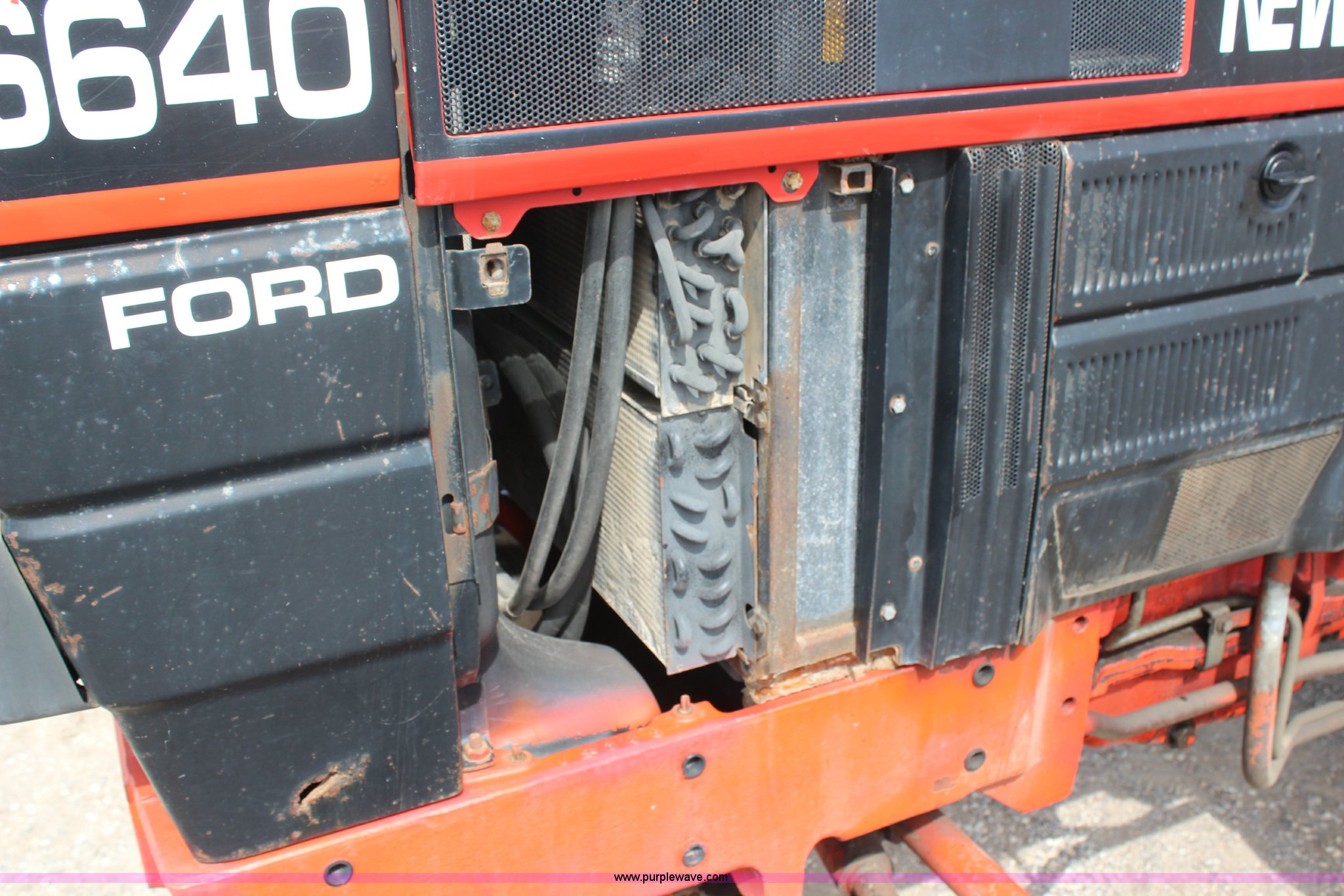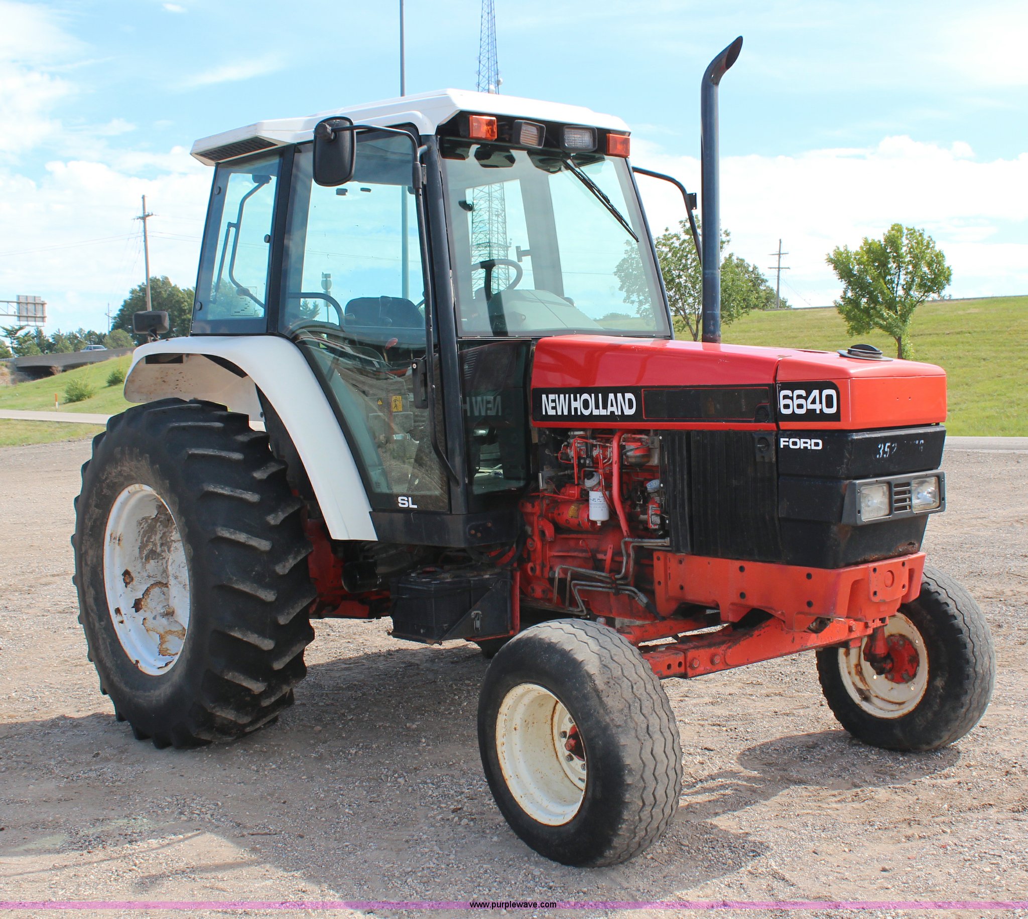 Purple Wave is selling a used Tractor in Kansas. This item is a 1996 Ford New Holland 6640SL tractor with the following: 4,589 hours on meter, Ford 5.0L four cylinder diesel engine, Synchroshift transmission, 12F-12R gears, AC and heat, AM/FM/cassette, Spring suspension seat, Tilt steering wheel, Three point, Arms not installed, Draw bar, 540/1000 PTO, 76 PTO HP, (4) rear hydraulic remotes, 94" wheelbase, Strobe light, 11L-16 front tires, 18.4-30 rear tires, One side cover missing, Paint faded and scratched, Severe rust, Dead batteries, Serial 021194B, KDOT ID 352-1076