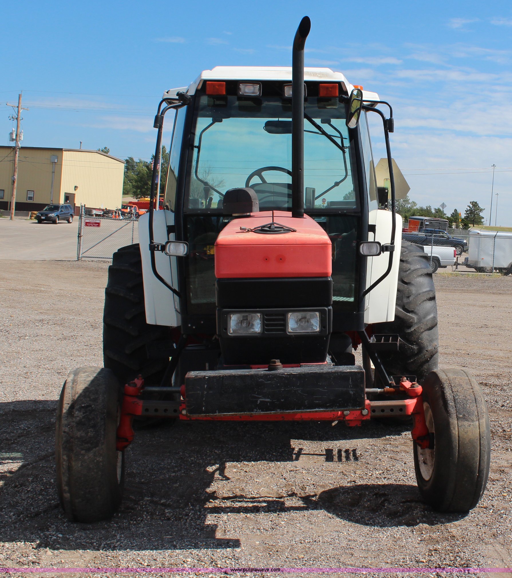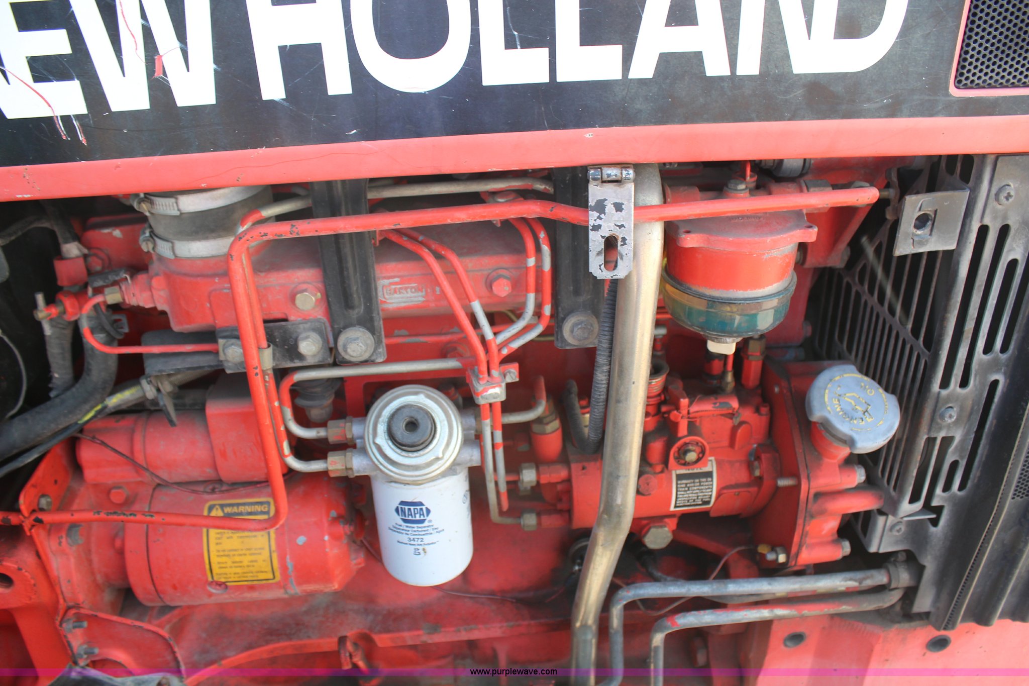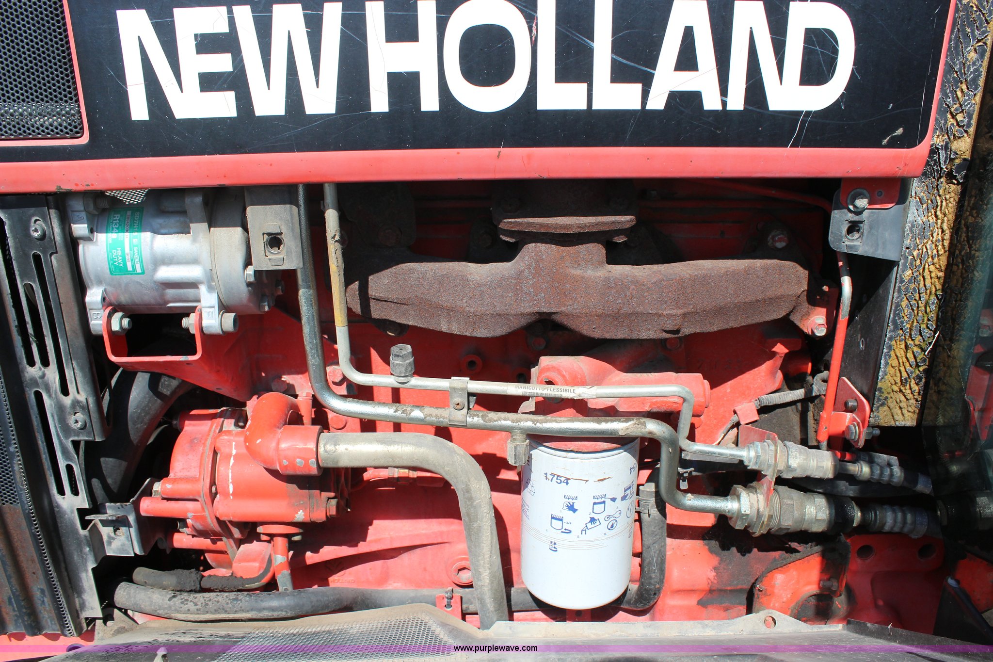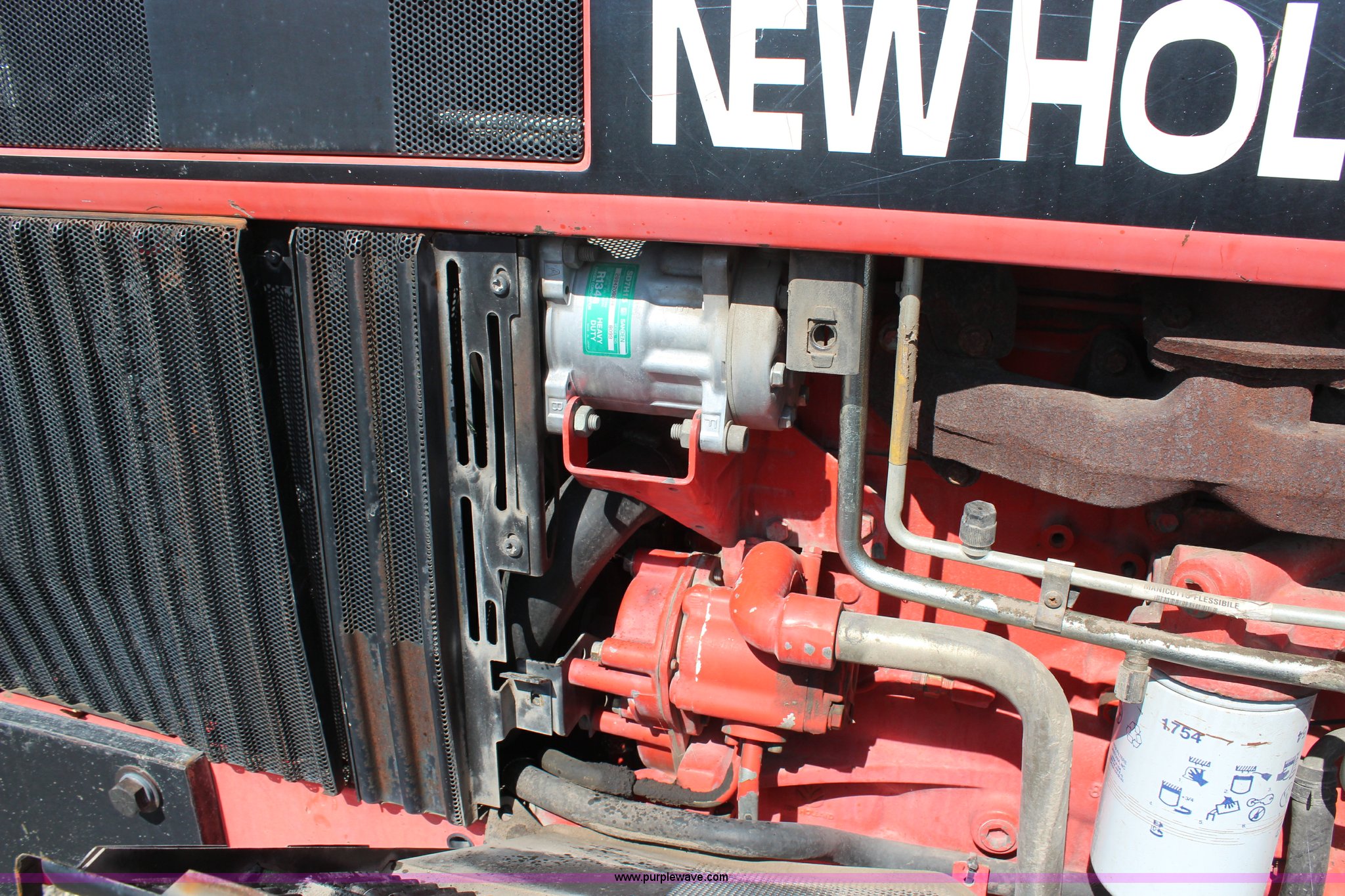 Purple Wave is selling a used Tractor in Kansas. This item is a 1997 Ford New Holland 6640SL tractor with the following: 5,448 hours on meter, Ford 5.0L four cylinder diesel engine, Synchroshift transmission, 12F-12R gears, AC and heat, AM/FM/cassette, Spring suspension seat, Tilt steering wheel, Three point, Arms missing, Draw bar, 540/1000 PTO, 76 PTO HP, (4) rear hydraulic remotes, 94" wheelbase, Strobe light, 10.00-16 front tires, 18.4-30 rear tires, Paint faded and scratched, Flat right rear tire, Serial 087440B, KDOT ID 352-1157