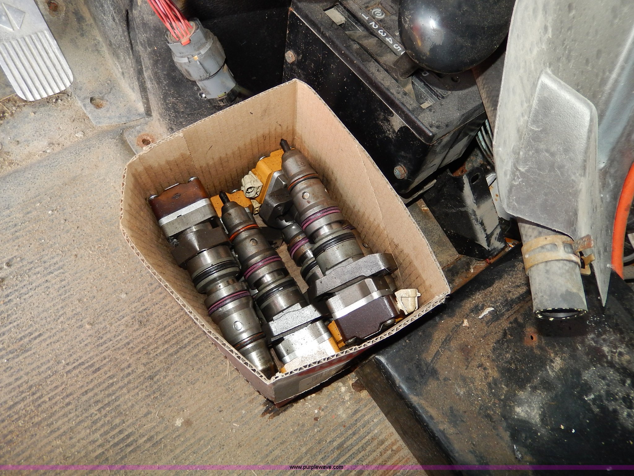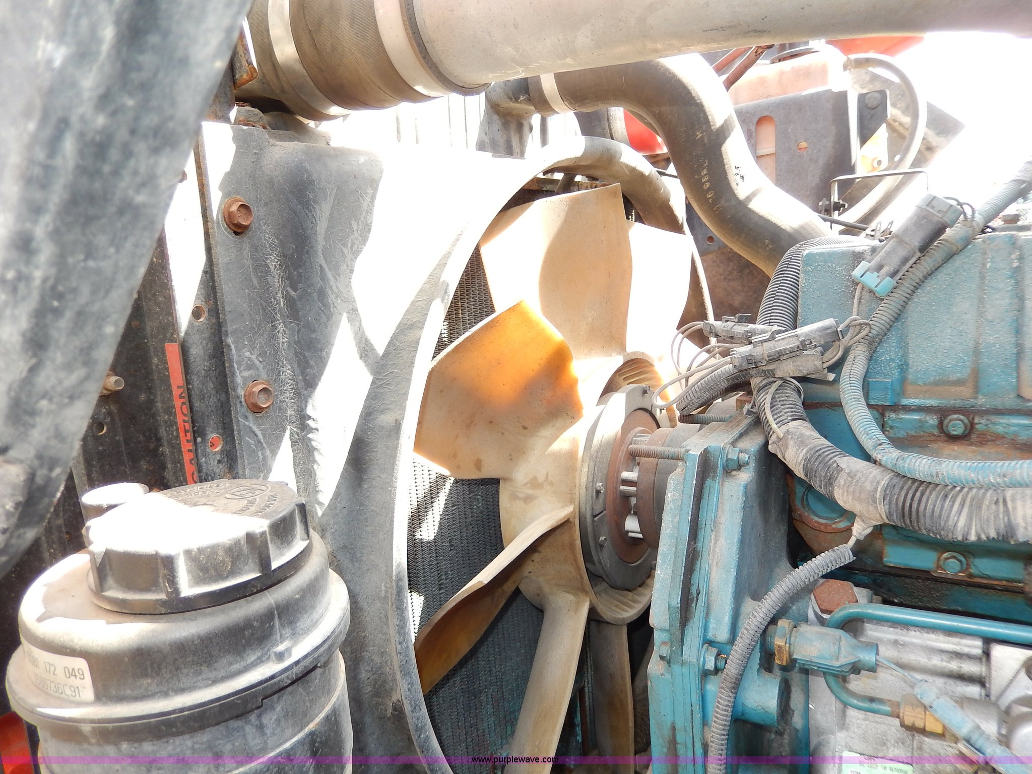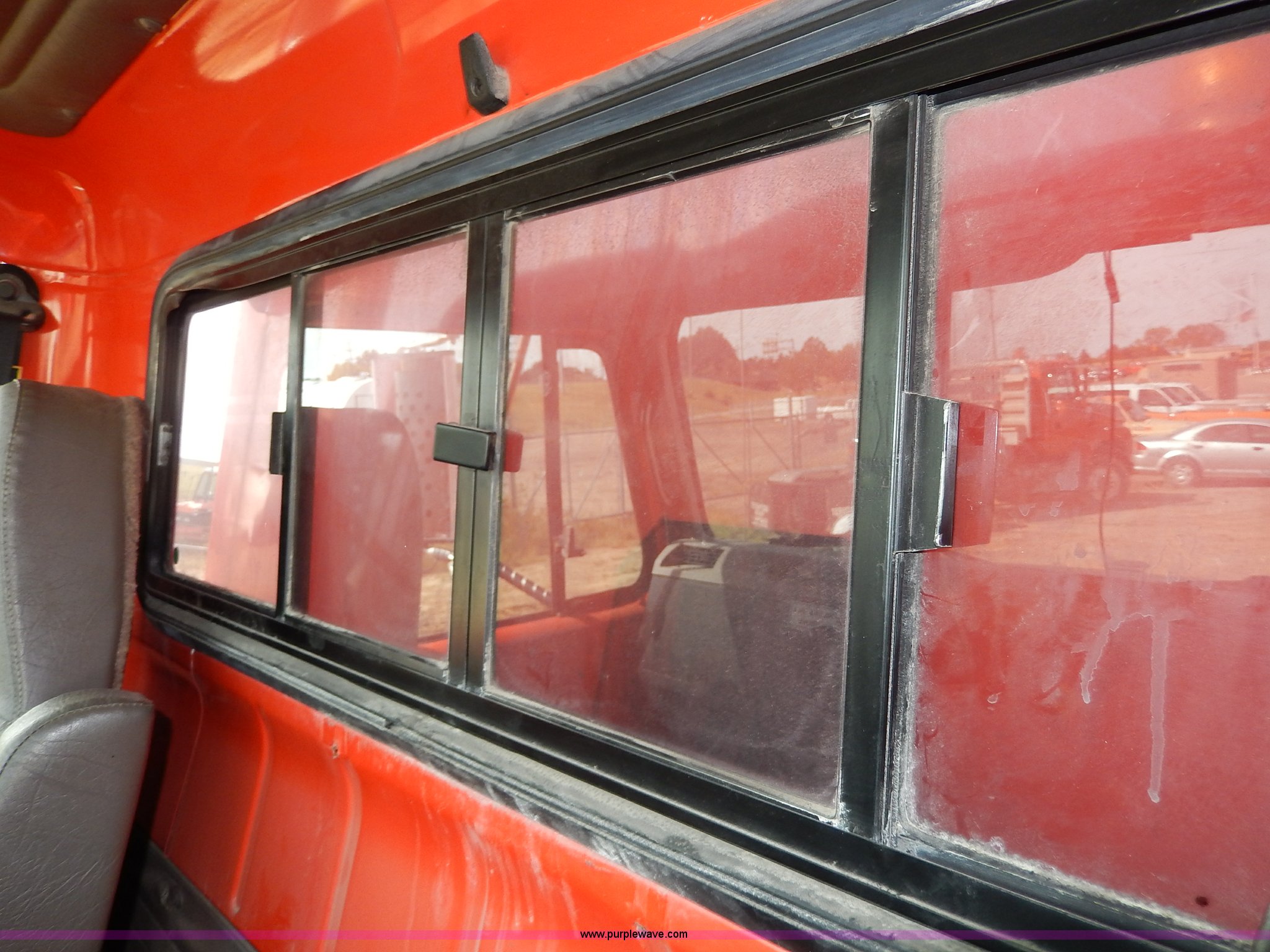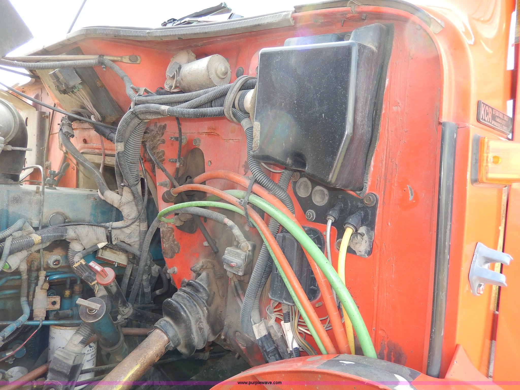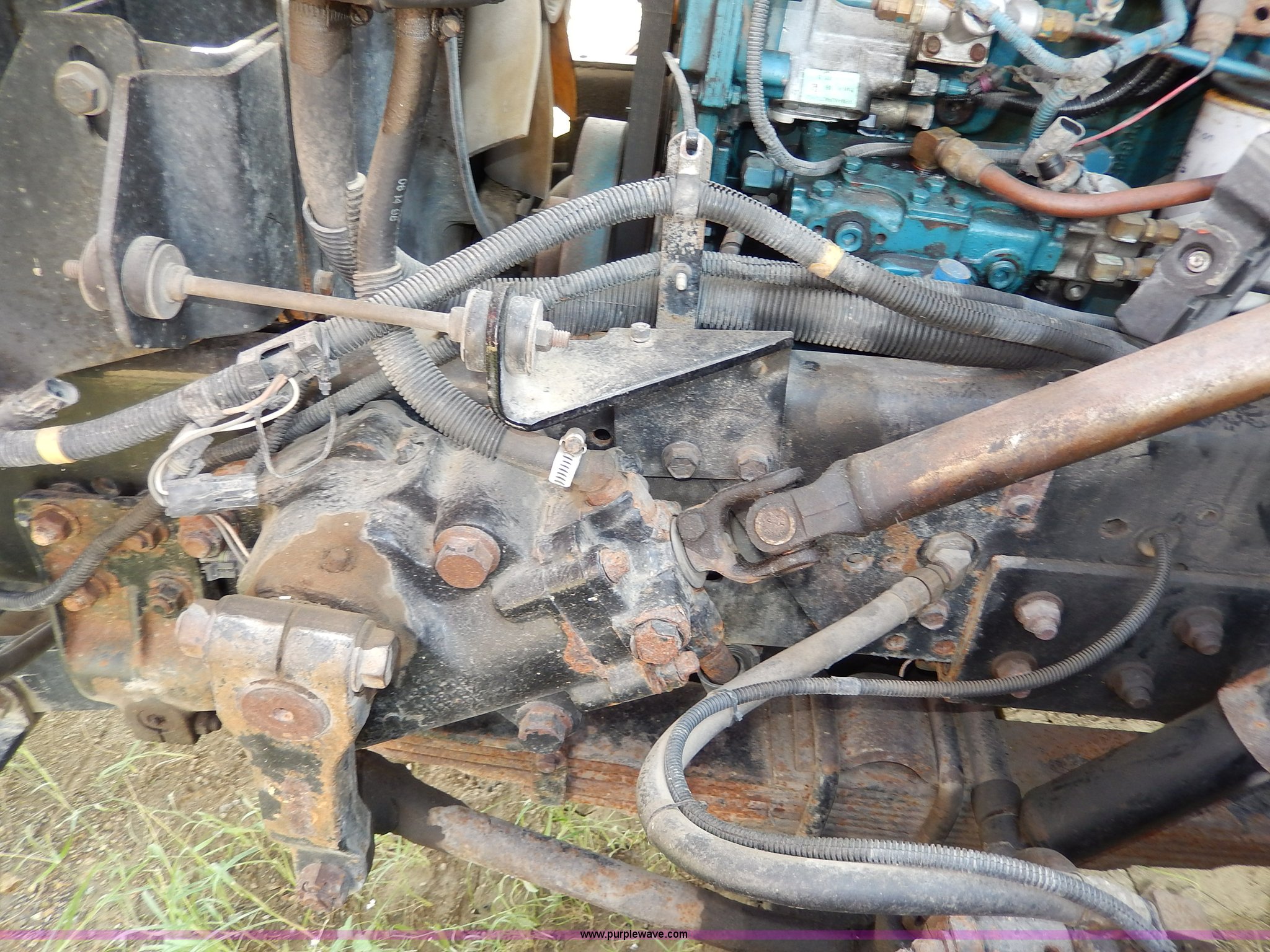 Purple Wave is selling a used Construction Dump Truck in Kansas. This item is a 1999 International 4900 dump truck with the following: 150,301 miles on odometer, 7,653 hours on meter, International DT530E 8.7L L6 diesel engine, Engine is bad, Allison MD3060-CR automatic transmission, Power divider lock, AC and heat, Cruise, AM/FM, Air suspension seat, Heated mirrors, Force spreader controls, 13' x 8' bed, 11' plow, Included in bed, Block heater, Trailer wiring, Toolboxes, Pintle hitch, Rear hydraulics, Single rear exhaust stack, 70 gallon fuel tank, Air brakes, 275/80R22.5 tires, Paint faded and scratched, Driver side exterior door handle missing, No keys, KDOT ID 264-1058