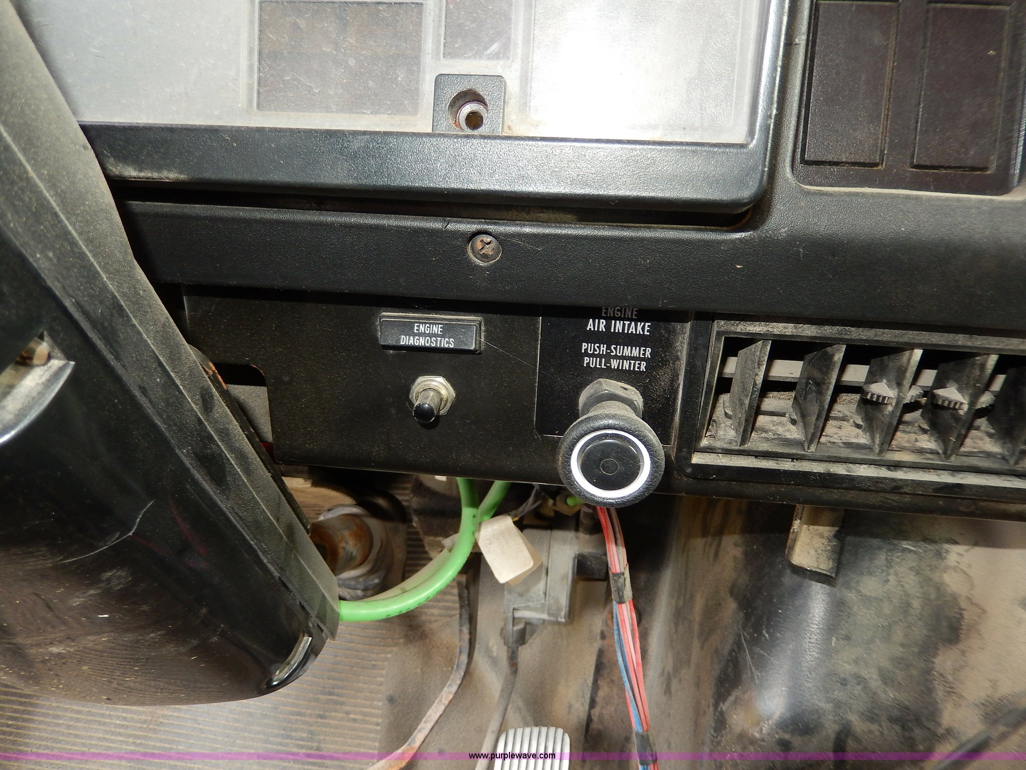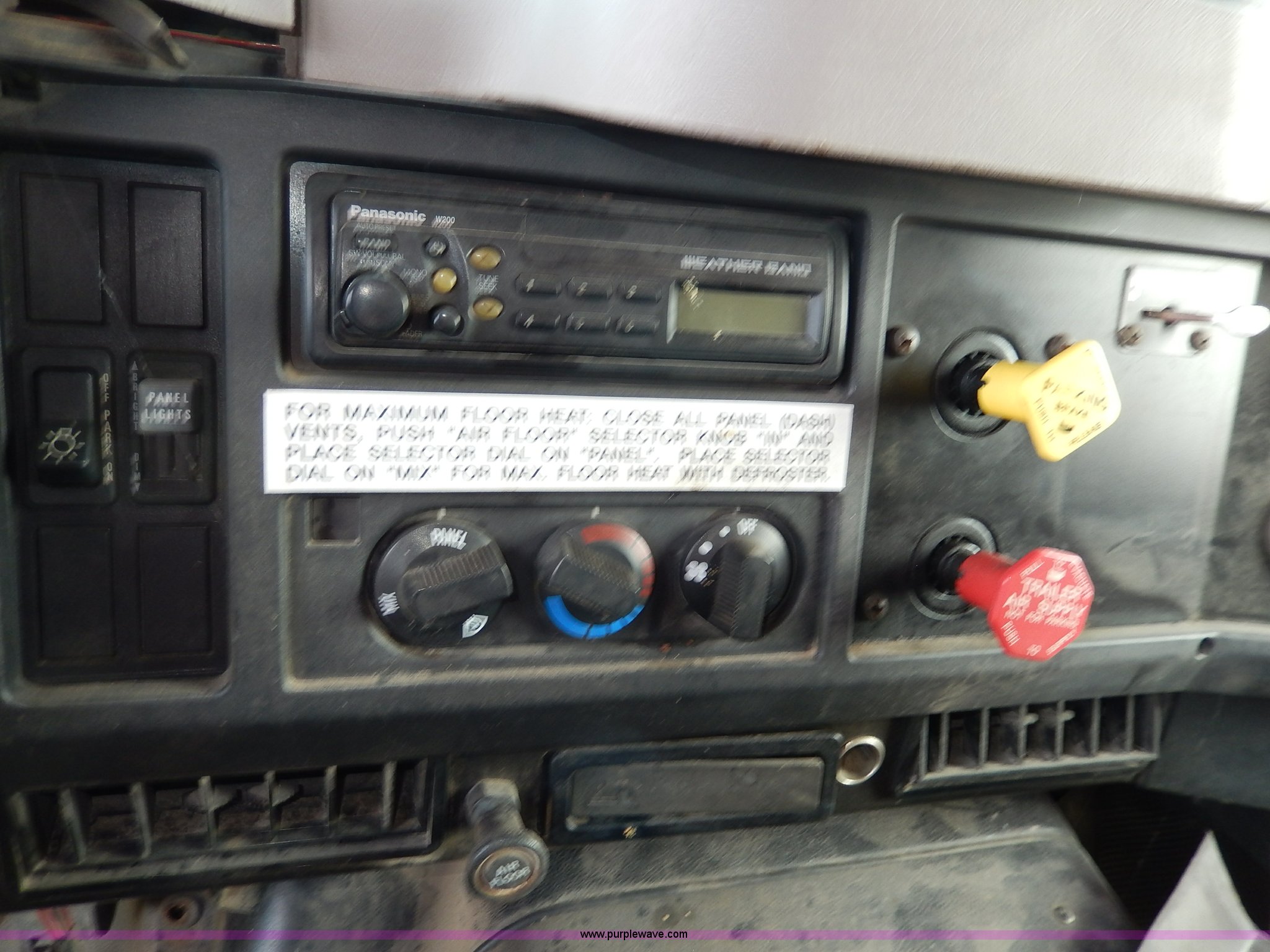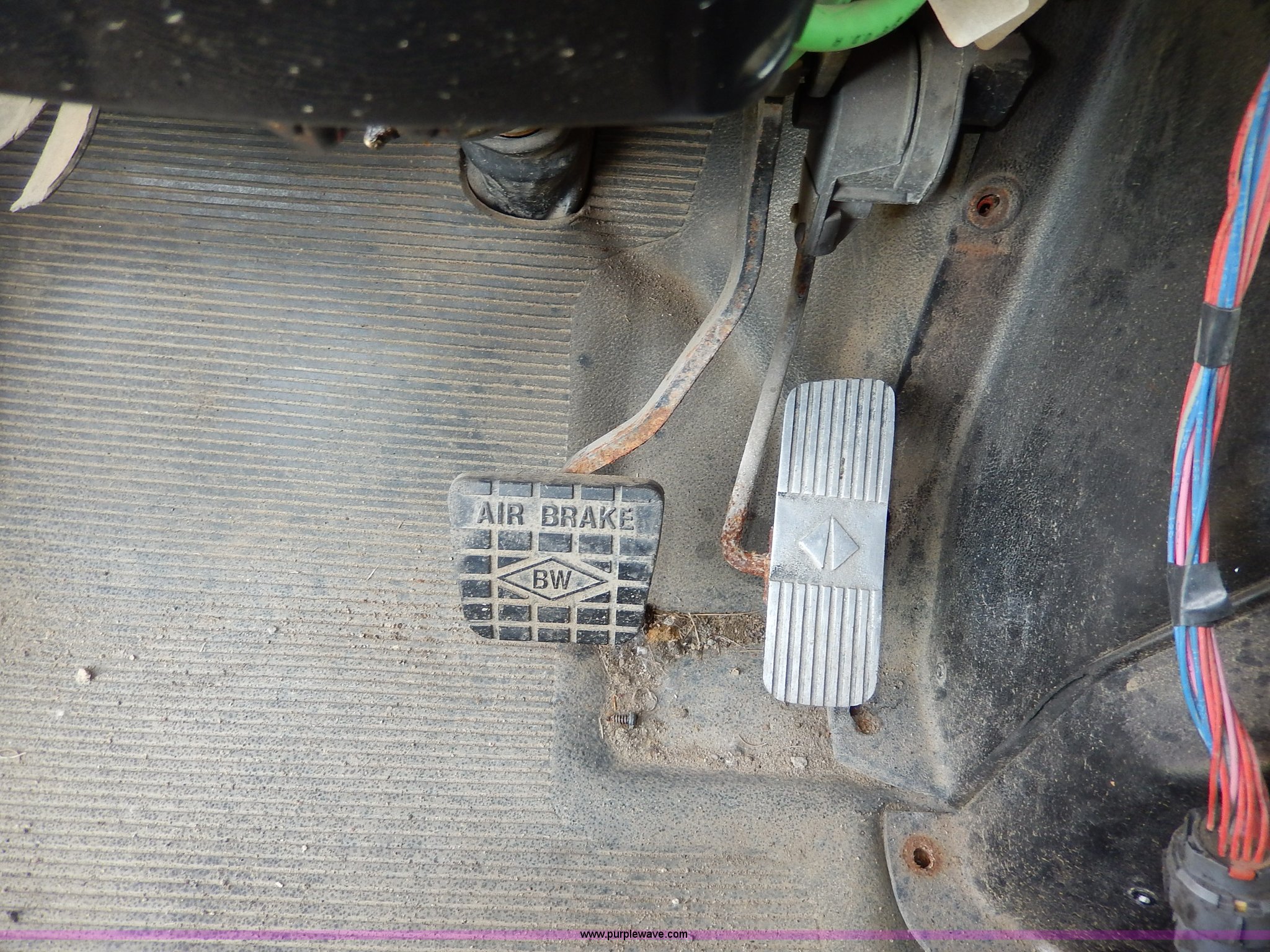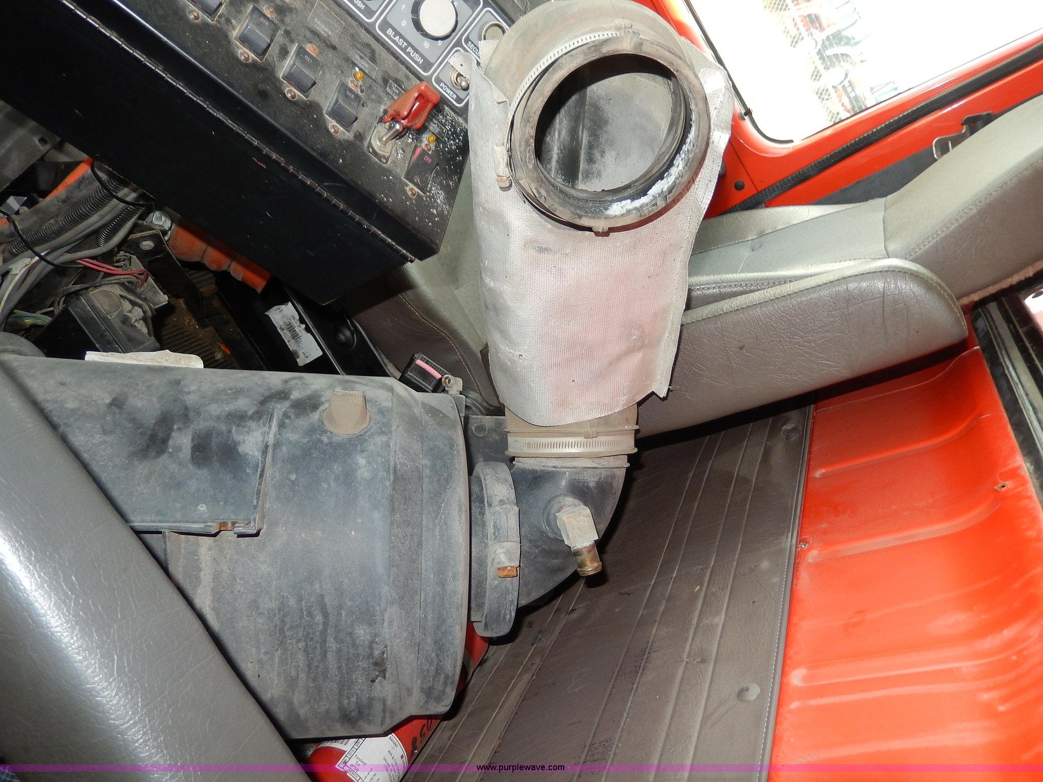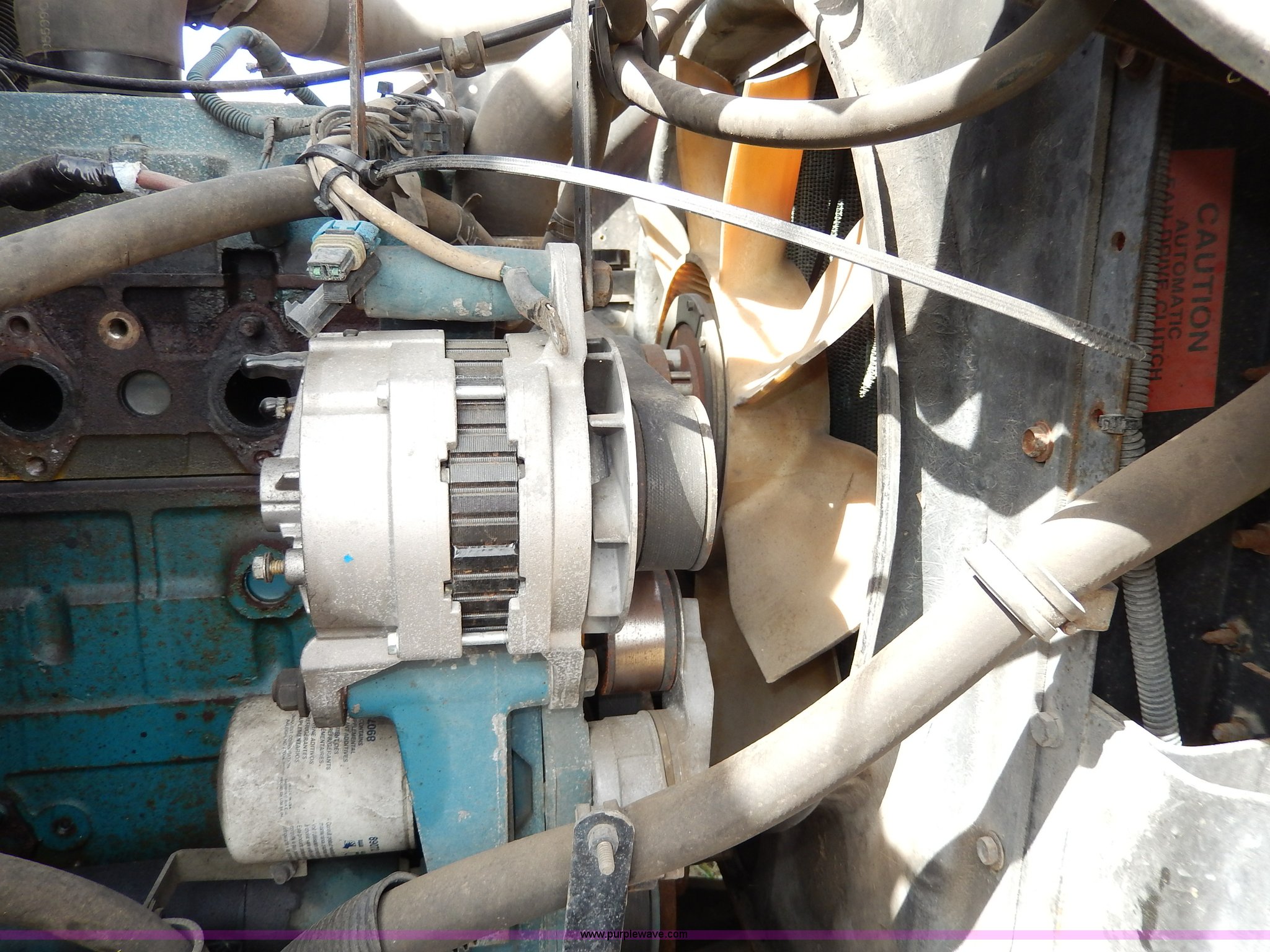 Purple Wave is selling a used Construction Dump Truck in Kansas. This item is a 1999 International 4900 dump truck with the following: 150,301 miles on odometer, 7,653 hours on meter, International DT530E 8.7L L6 diesel engine, Engine is bad, Allison MD3060-CR automatic transmission, Power divider lock, AC and heat, Cruise, AM/FM, Air suspension seat, Heated mirrors, Force spreader controls, 13' x 8' bed, 11' plow, Included in bed, Block heater, Trailer wiring, Toolboxes, Pintle hitch, Rear hydraulics, Single rear exhaust stack, 70 gallon fuel tank, Air brakes, 275/80R22.5 tires, Paint faded and scratched, Driver side exterior door handle missing, No keys, KDOT ID 264-1058