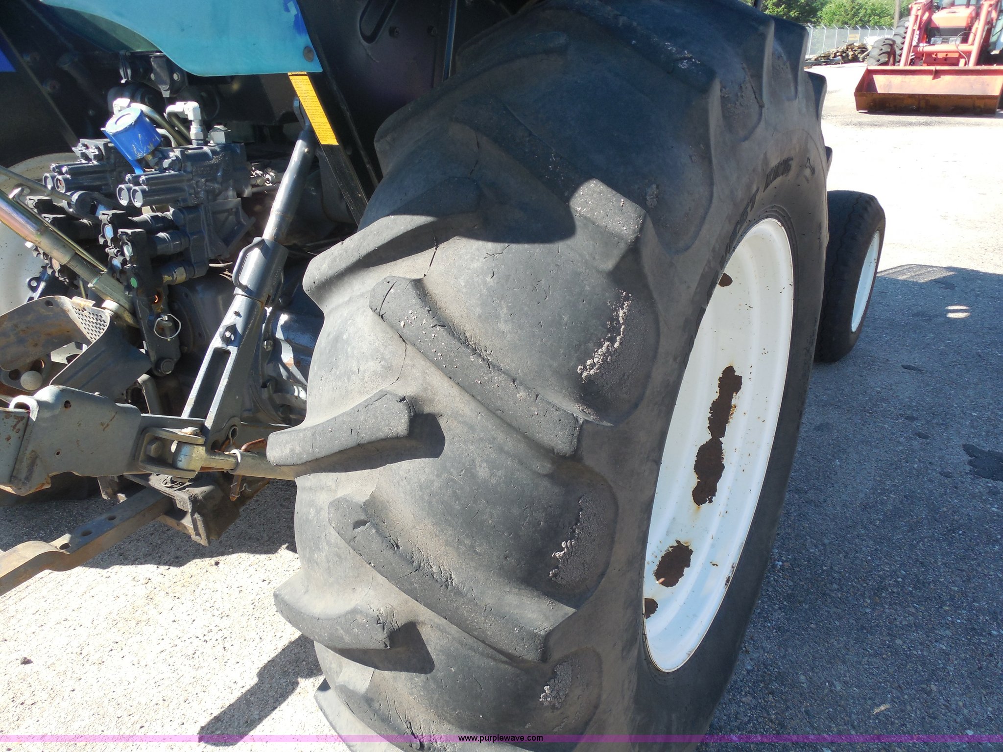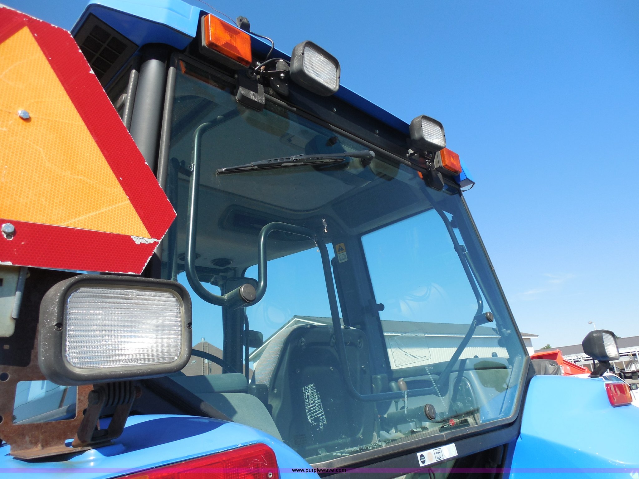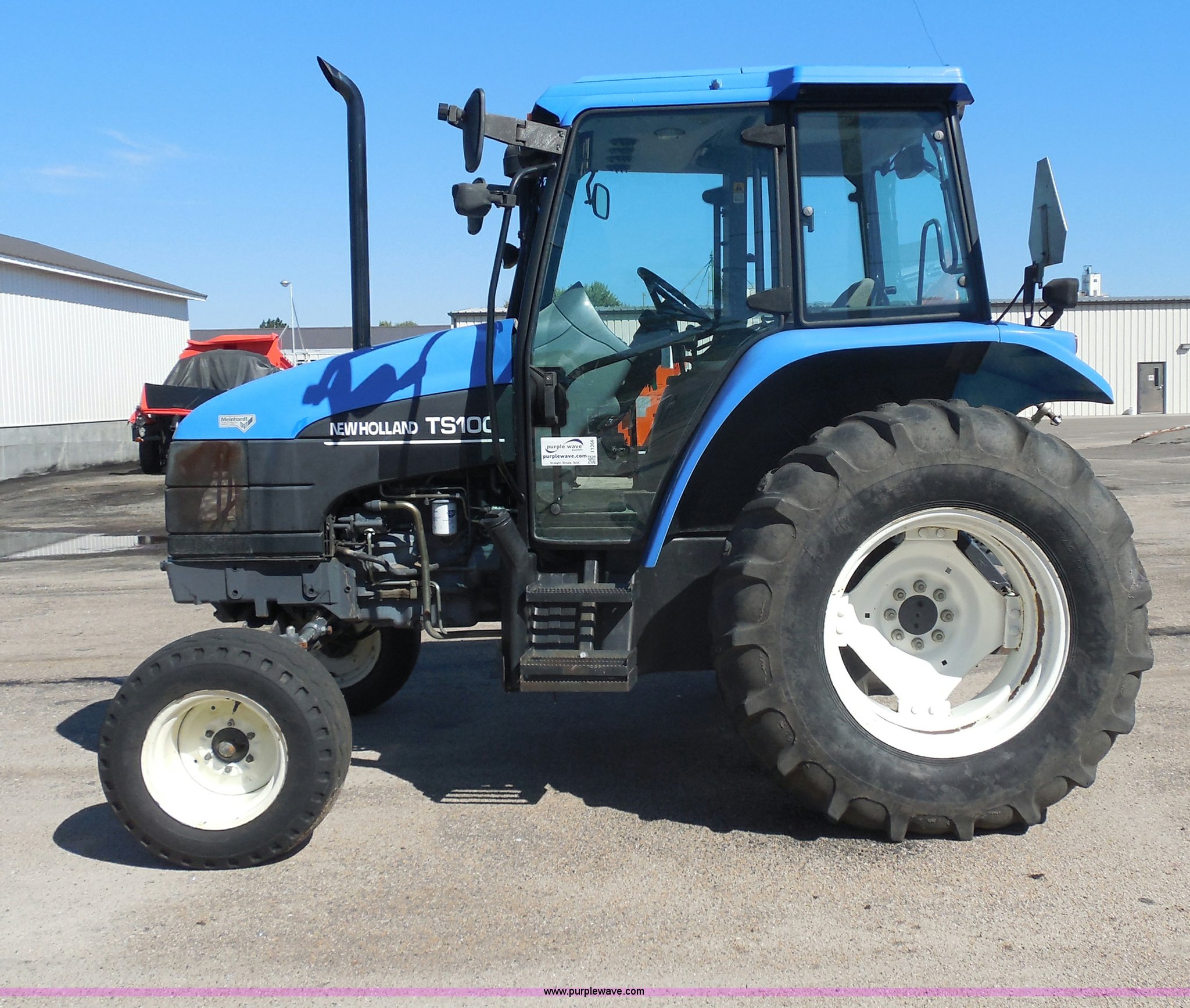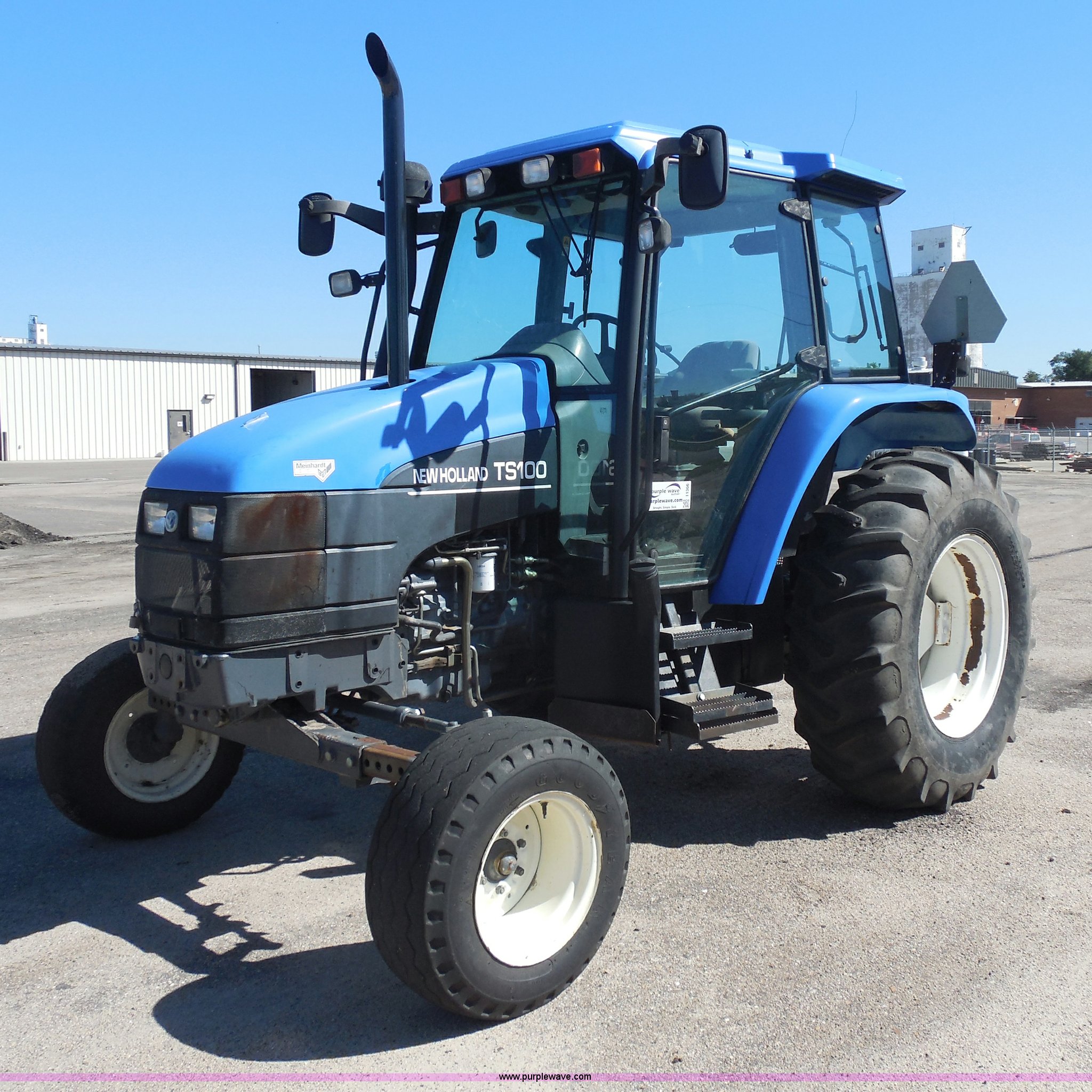 Purple Wave is selling a used Tractor in Kansas. This item is a 2001 Ford TS100 tractor with the following: 4,889 hours on meter, Genesis 5.0L four cylinder diesel engine, Turbocharger, 100 HP, Synchroshift transmission, 12F/12R, AC and heat, 540 PTO, 80 PTO HP, Three point, Draw bar, (4) rear hydraulic remotes, Electrical plugs, Seven and four way, 11L-16SL front tires, 18.4-30 rear tires, Paint faded and scratched, Non-operational rear cab lights, Serial 174197B, KDOT ID 352-3051