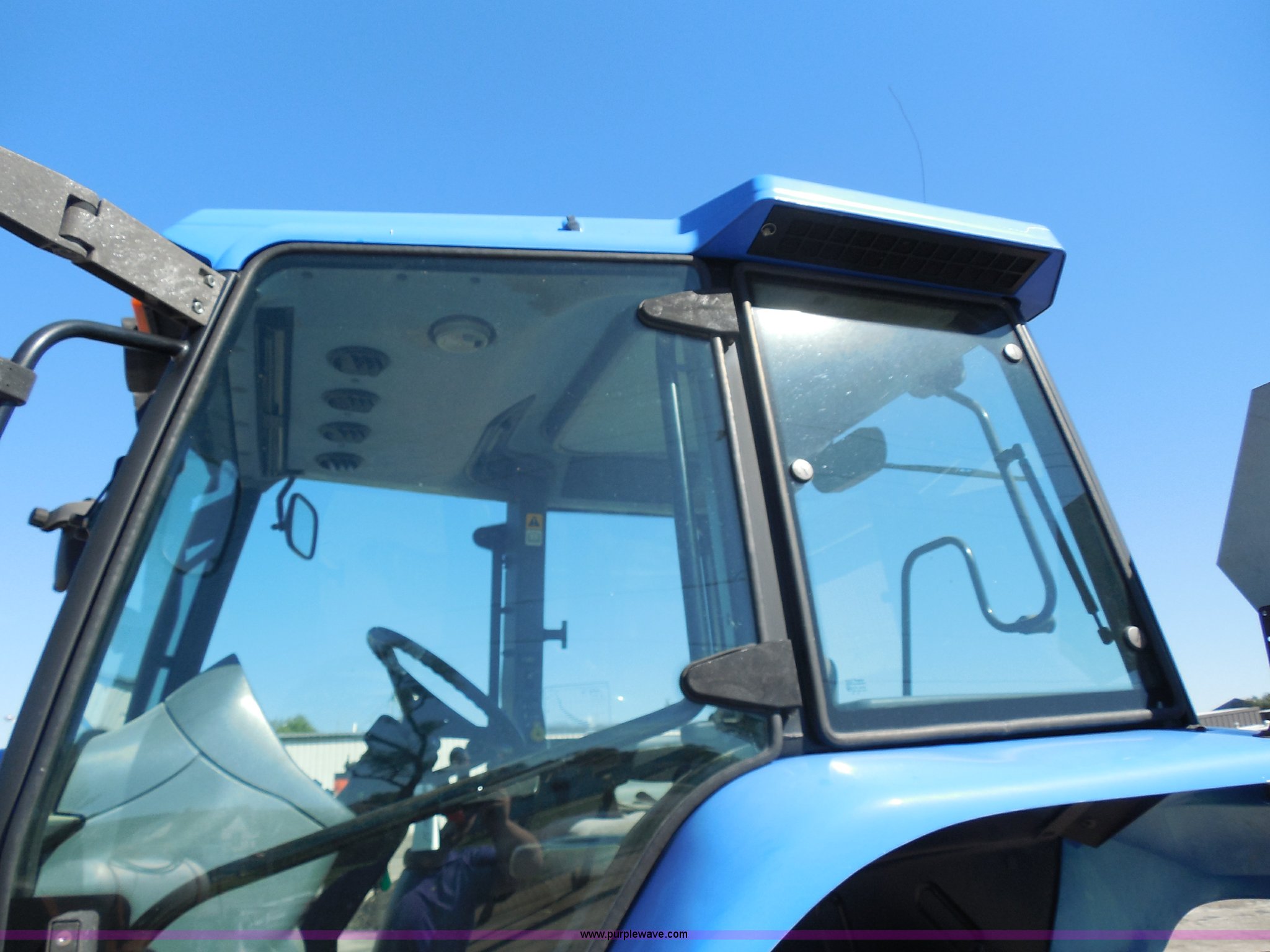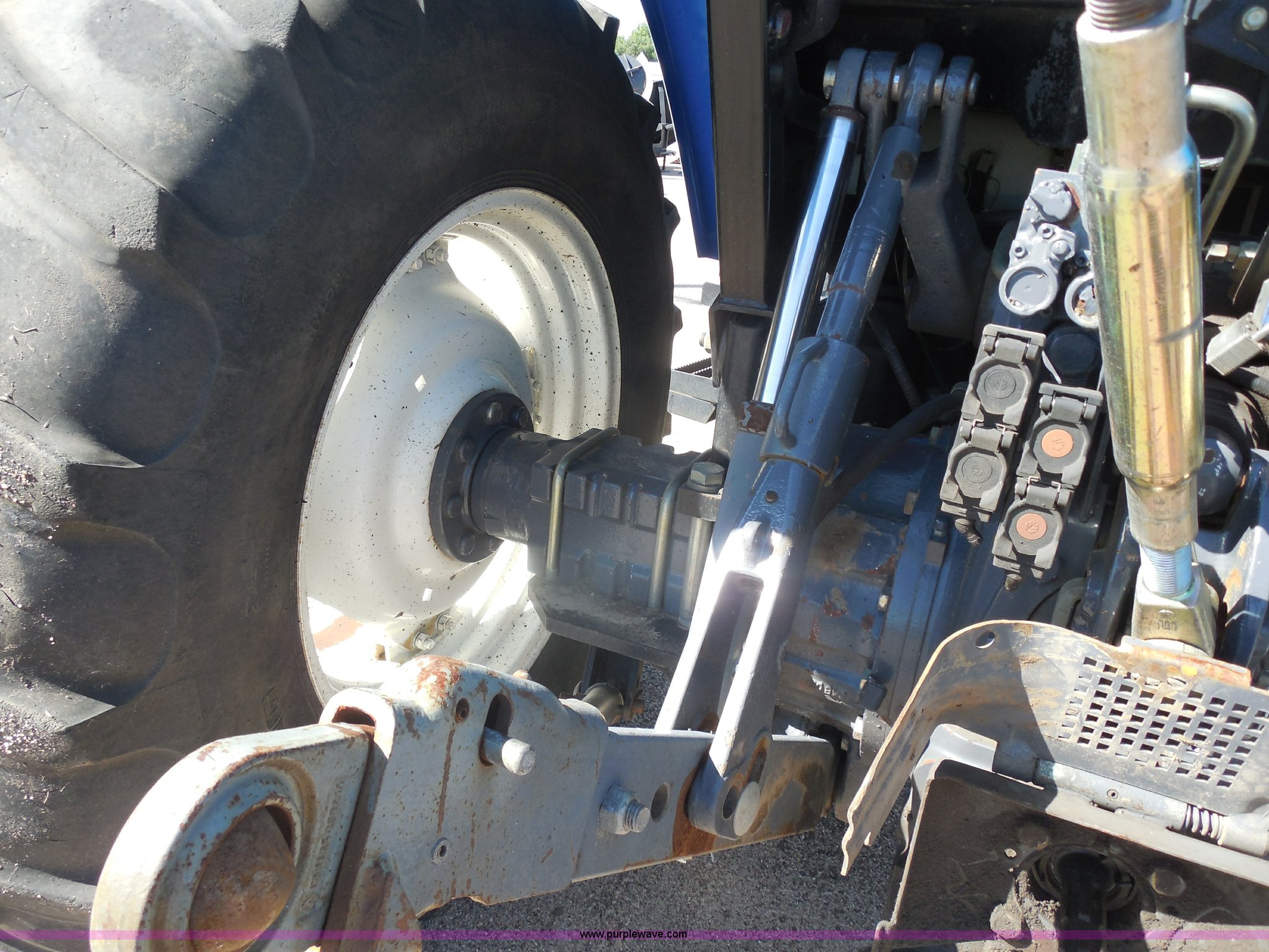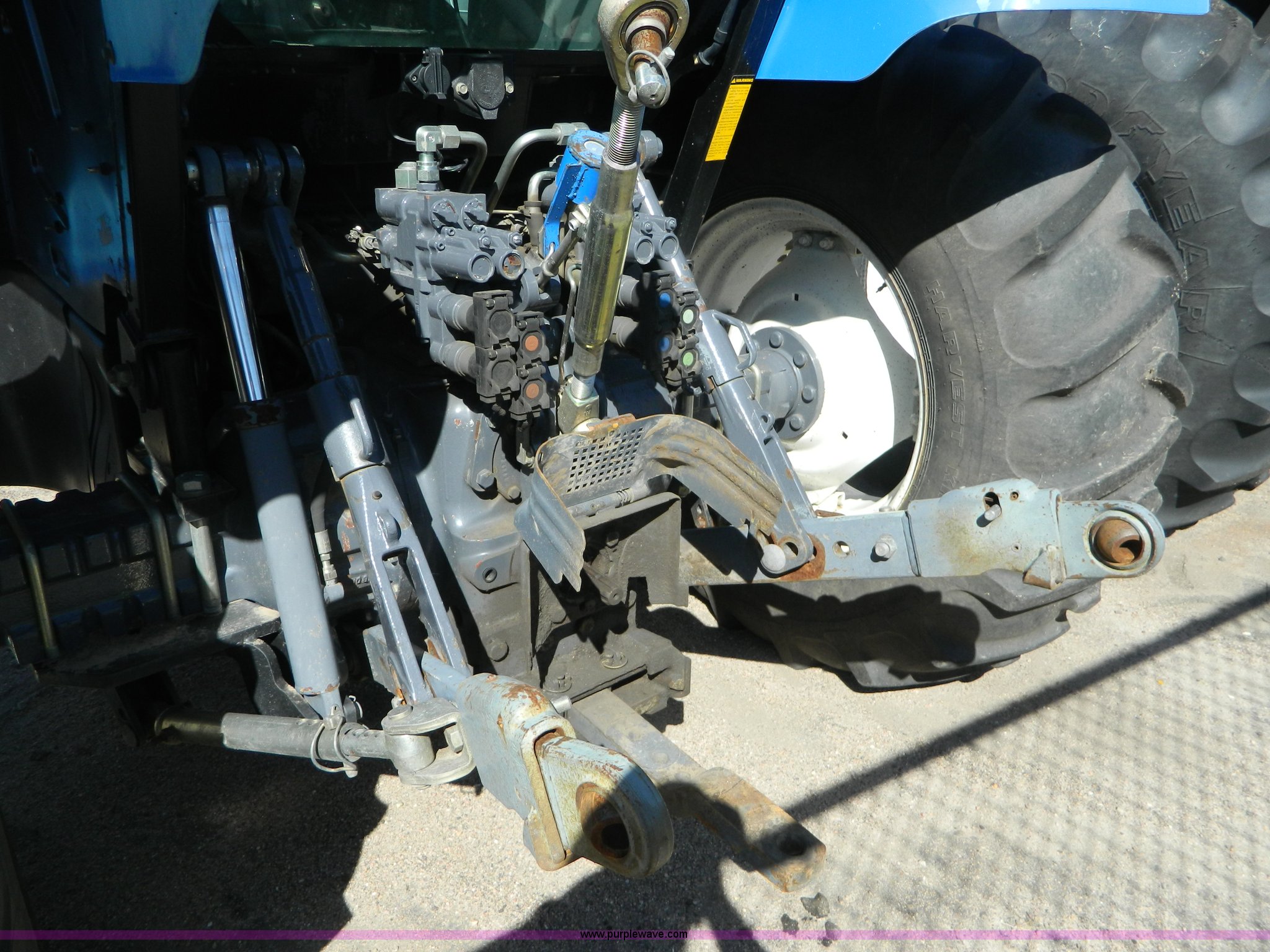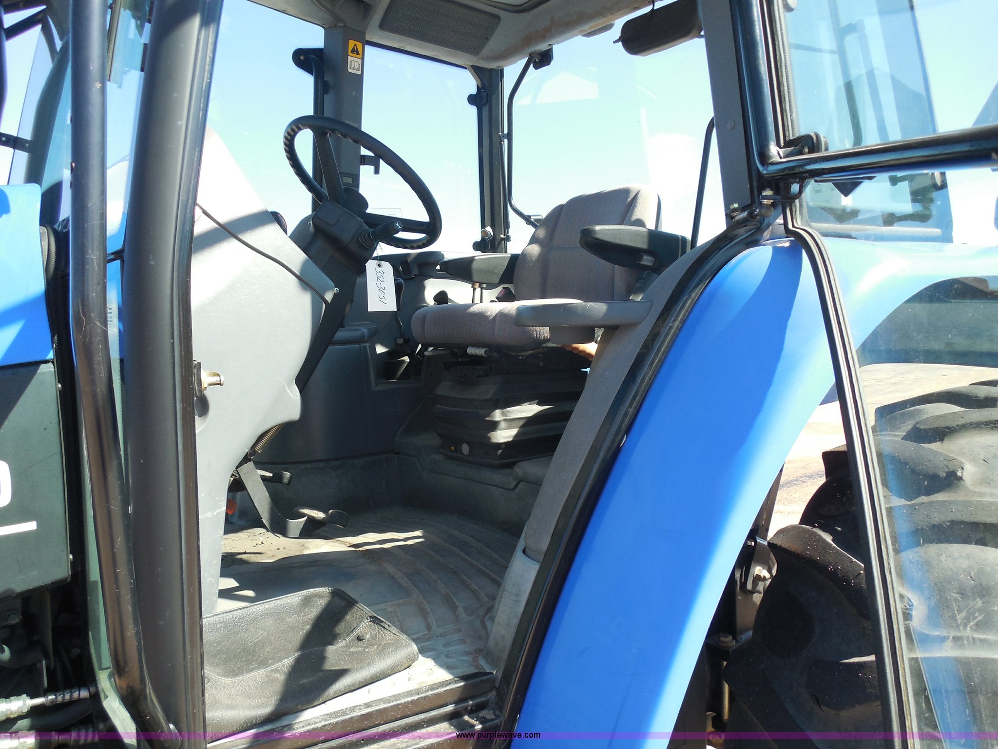 Purple Wave is selling a used Tractor in Kansas. This item is a 2001 Ford TS100 tractor with the following: 4,889 hours on meter, Genesis 5.0L four cylinder diesel engine, Turbocharger, 100 HP, Synchroshift transmission, 12F/12R, AC and heat, 540 PTO, 80 PTO HP, Three point, Draw bar, (4) rear hydraulic remotes, Electrical plugs, Seven and four way, 11L-16SL front tires, 18.4-30 rear tires, Paint faded and scratched, Non-operational rear cab lights, Serial 174197B, KDOT ID 352-3051