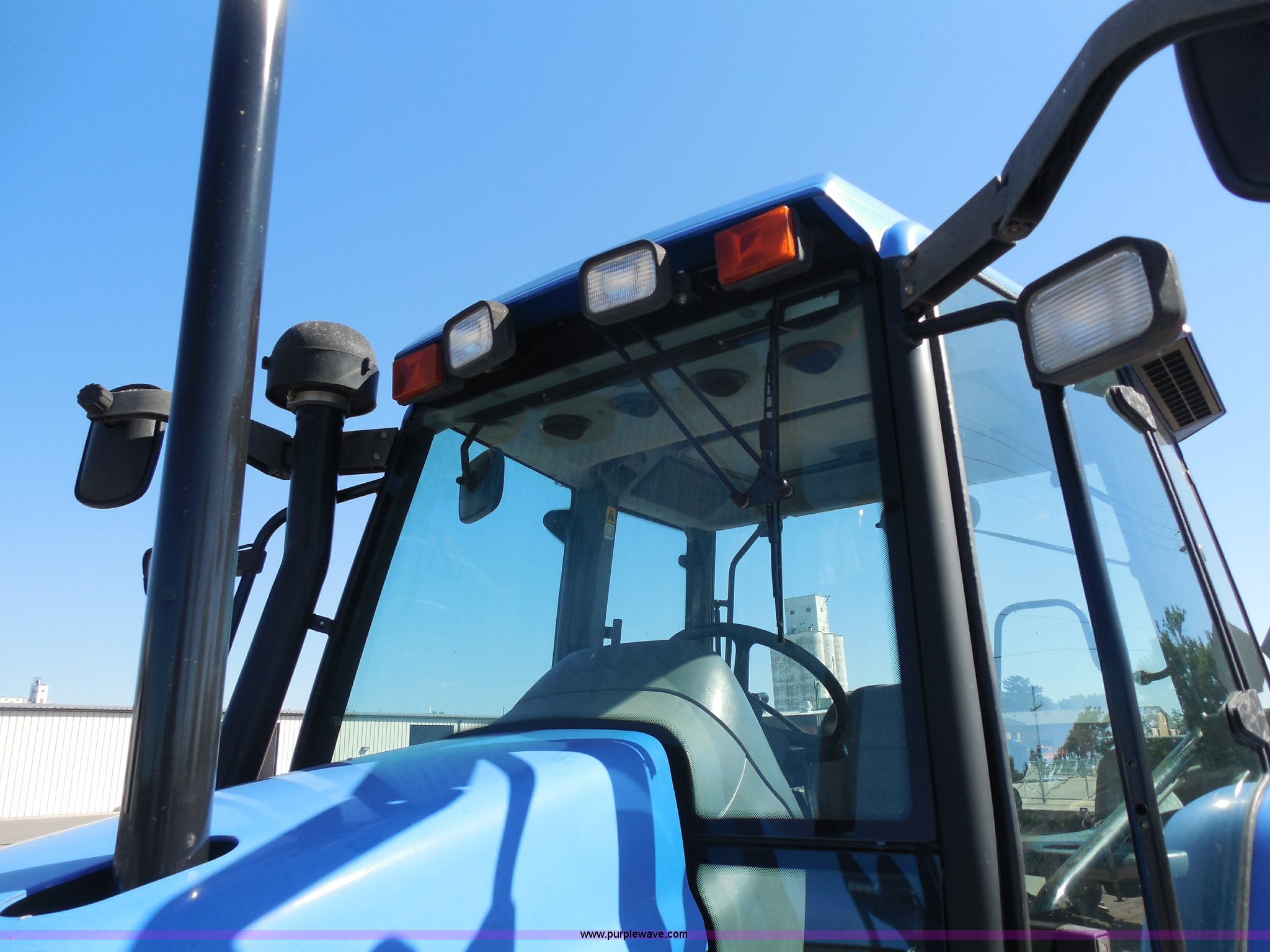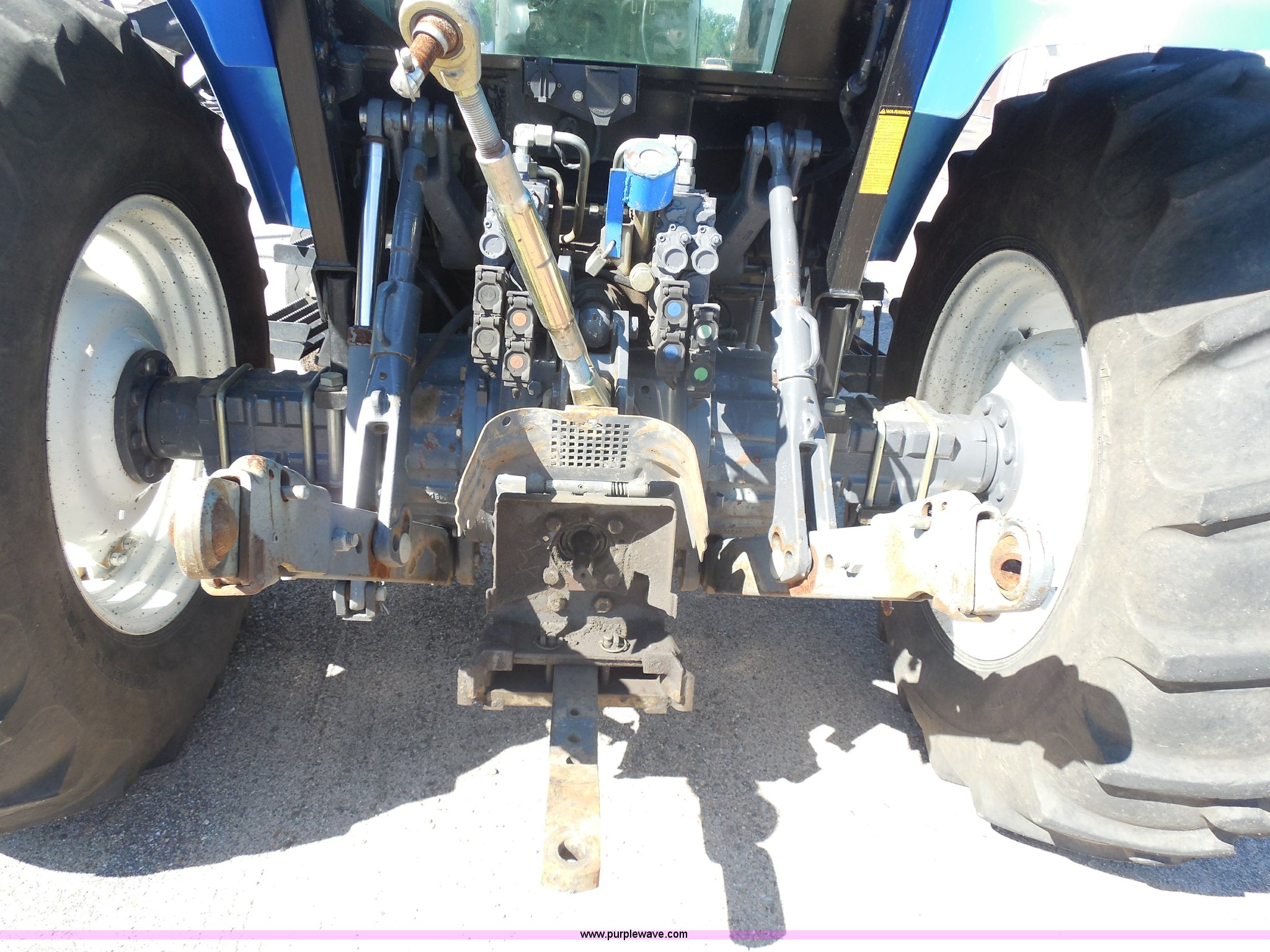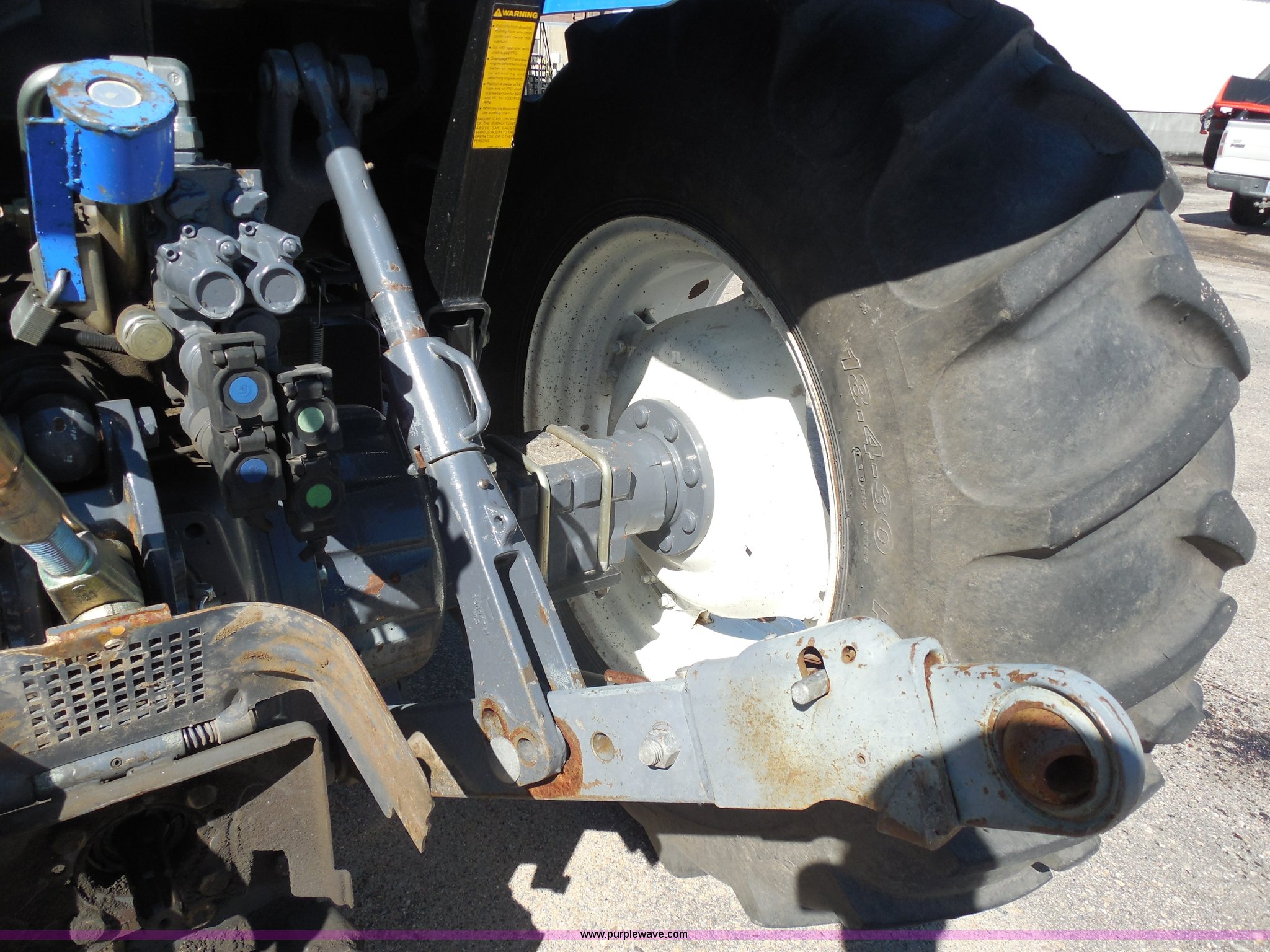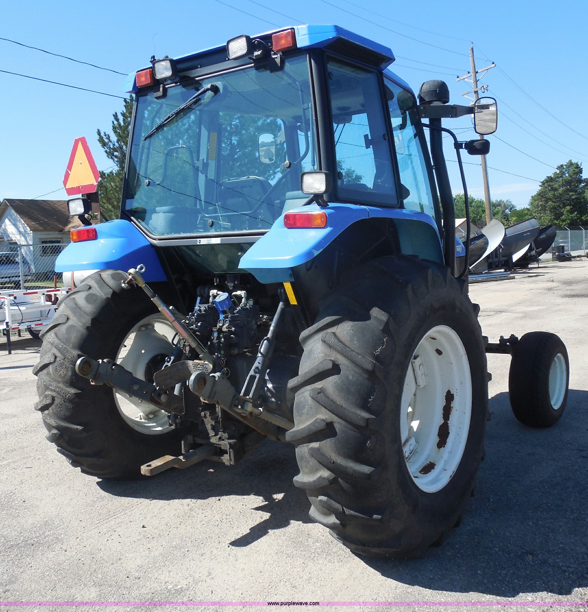 Purple Wave is selling a used Tractor in Kansas. This item is a 2001 Ford TS100 tractor with the following: 4,889 hours on meter, Genesis 5.0L four cylinder diesel engine, Turbocharger, 100 HP, Synchroshift transmission, 12F/12R, AC and heat, 540 PTO, 80 PTO HP, Three point, Draw bar, (4) rear hydraulic remotes, Electrical plugs, Seven and four way, 11L-16SL front tires, 18.4-30 rear tires, Paint faded and scratched, Non-operational rear cab lights, Serial 174197B, KDOT ID 352-3051