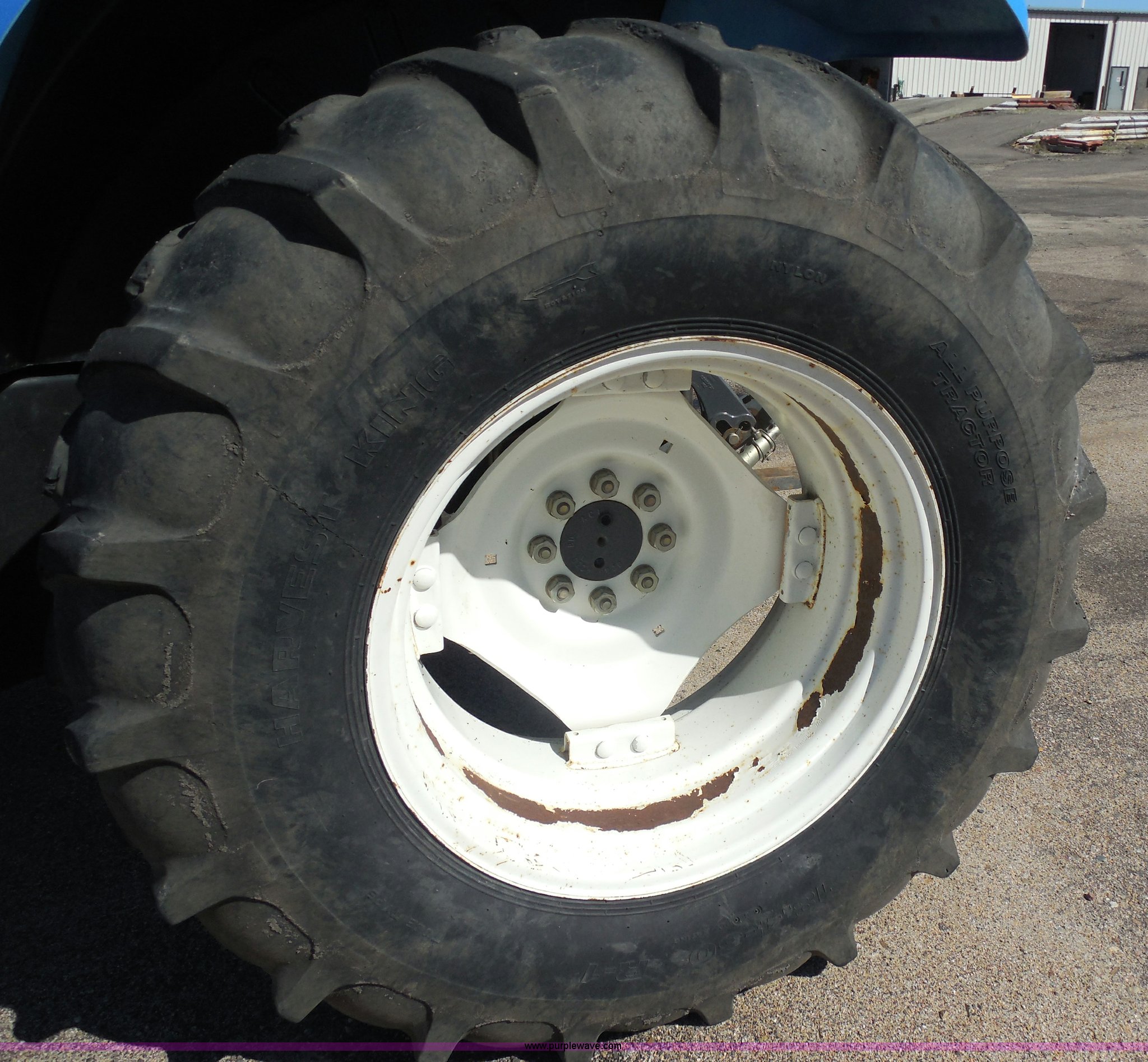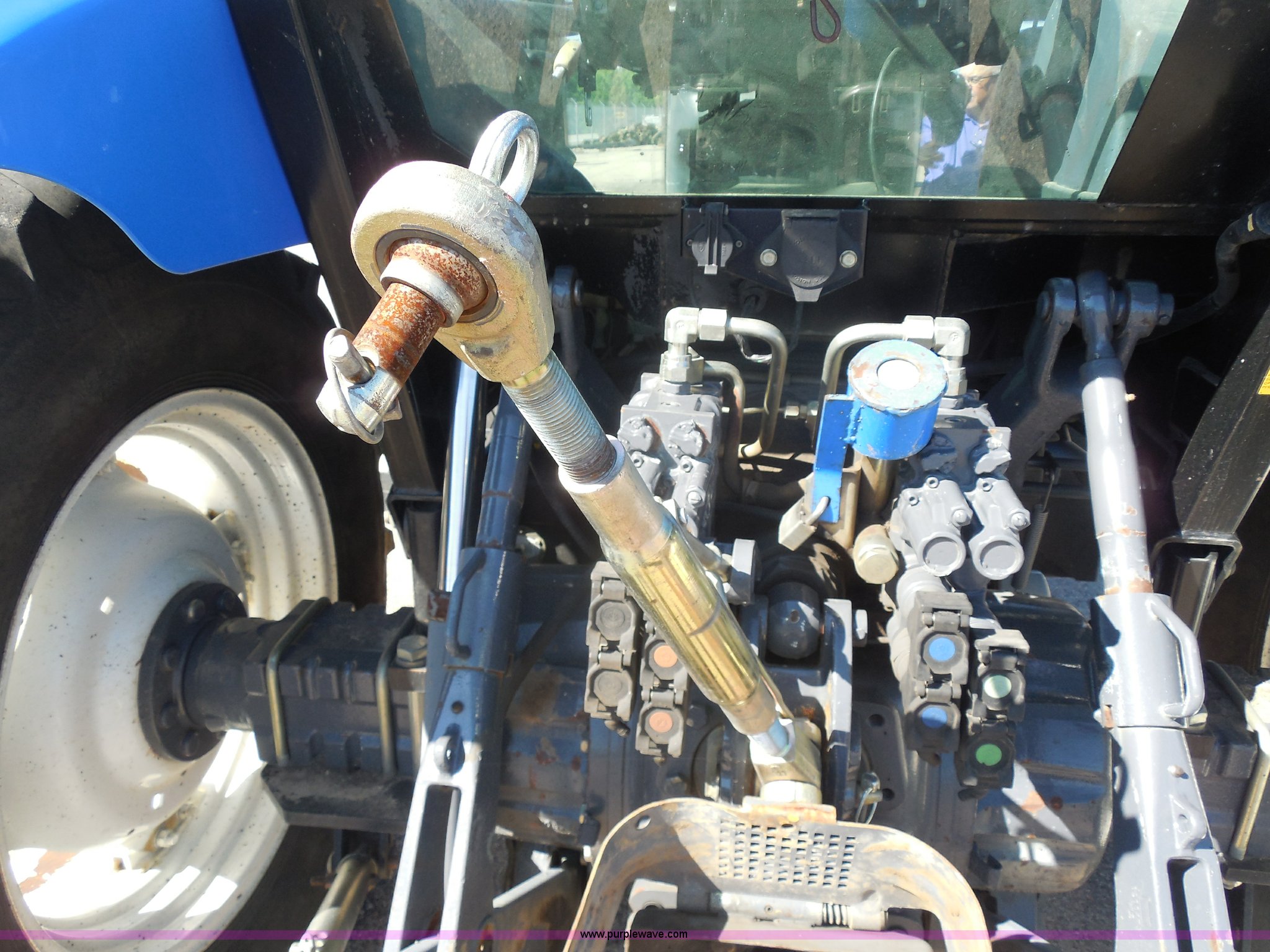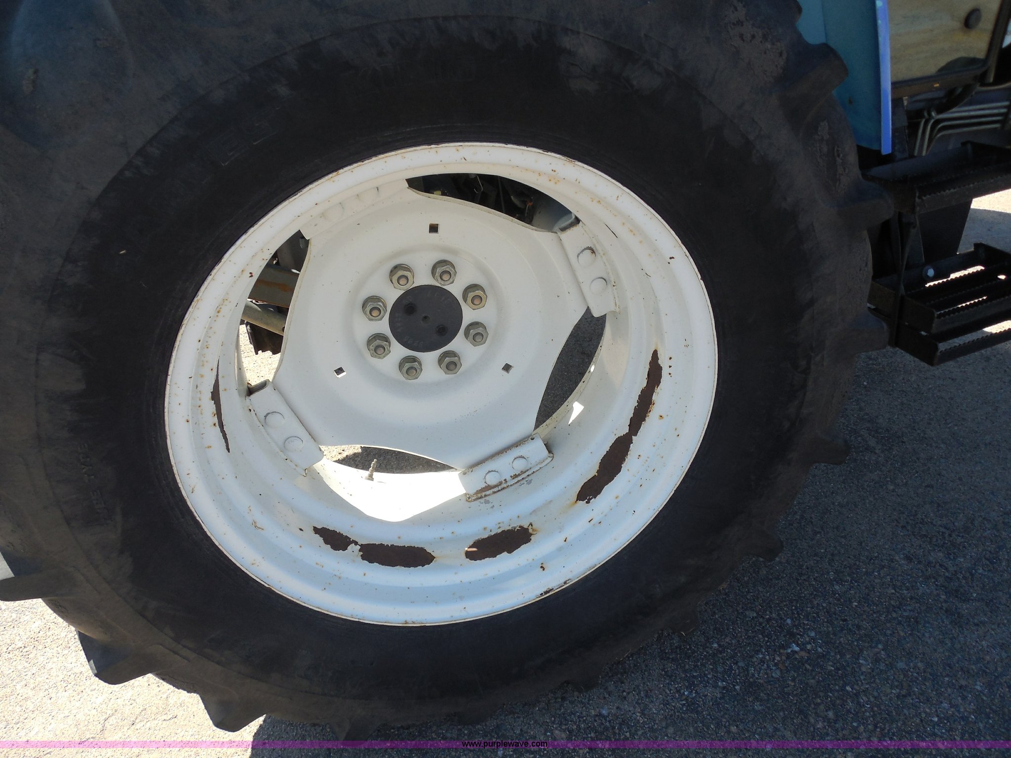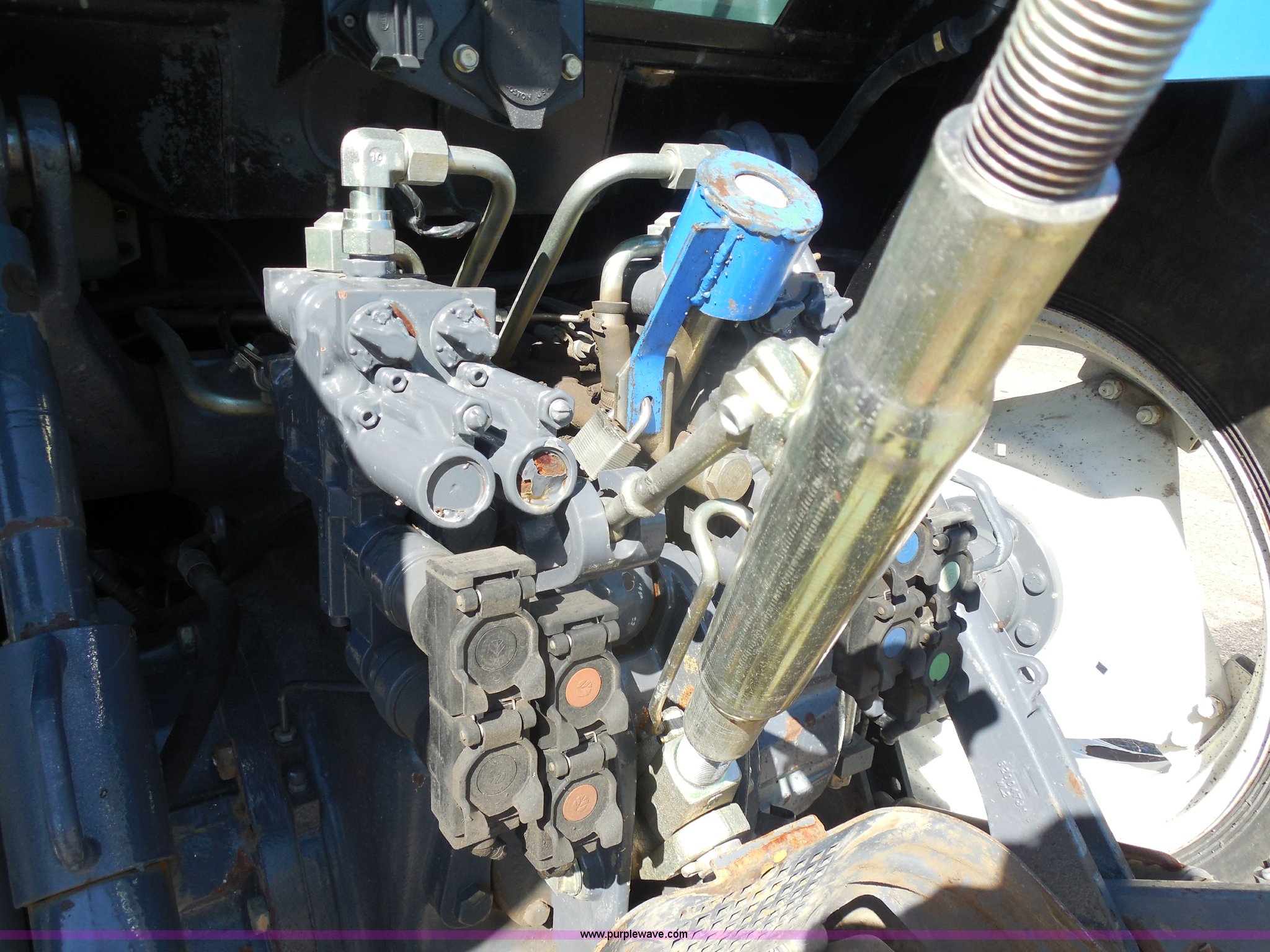 Purple Wave is selling a used Tractor in Kansas. This item is a 2001 Ford TS100 tractor with the following: 4,889 hours on meter, Genesis 5.0L four cylinder diesel engine, Turbocharger, 100 HP, Synchroshift transmission, 12F/12R, AC and heat, 540 PTO, 80 PTO HP, Three point, Draw bar, (4) rear hydraulic remotes, Electrical plugs, Seven and four way, 11L-16SL front tires, 18.4-30 rear tires, Paint faded and scratched, Non-operational rear cab lights, Serial 174197B, KDOT ID 352-3051