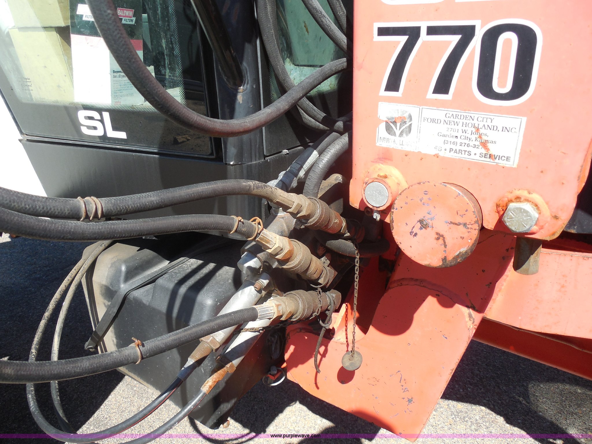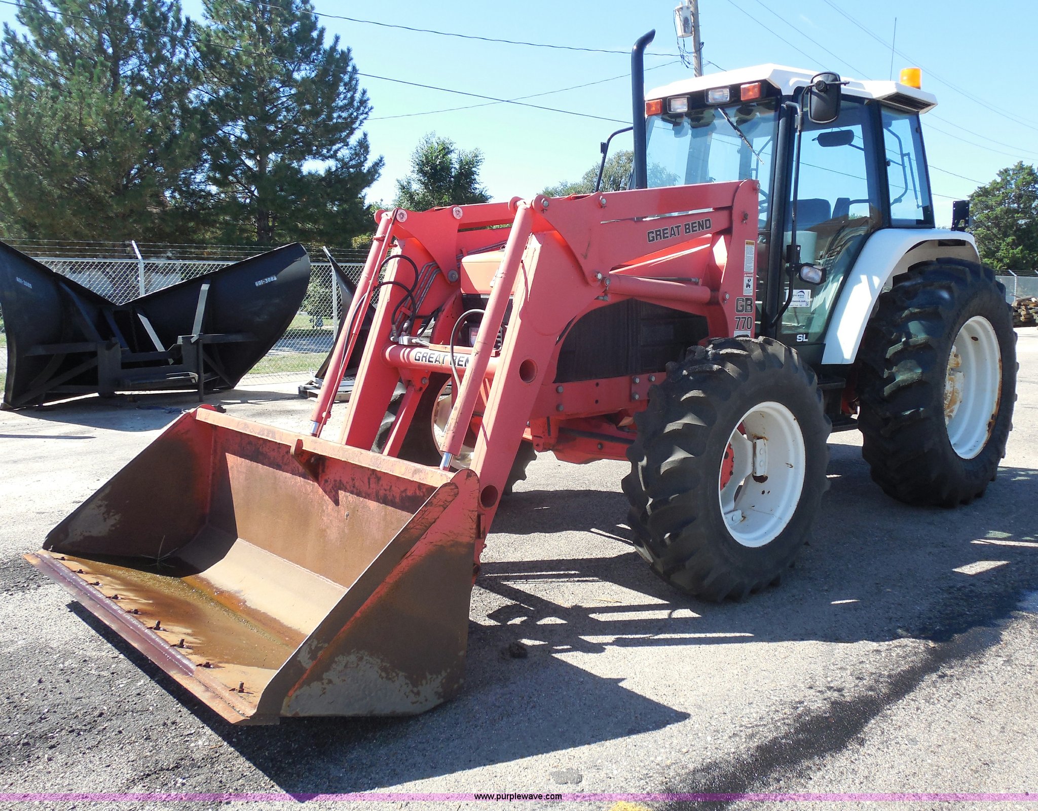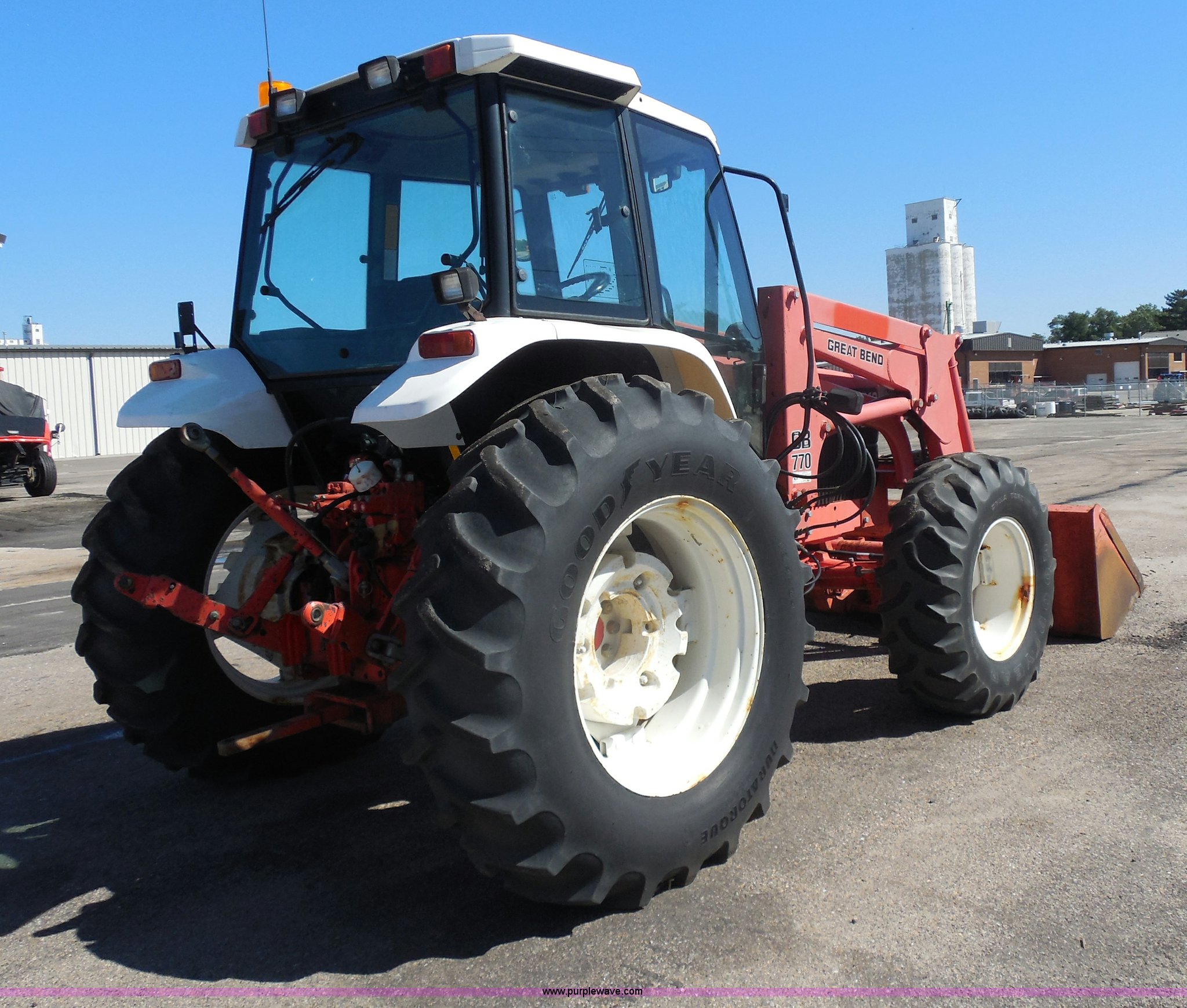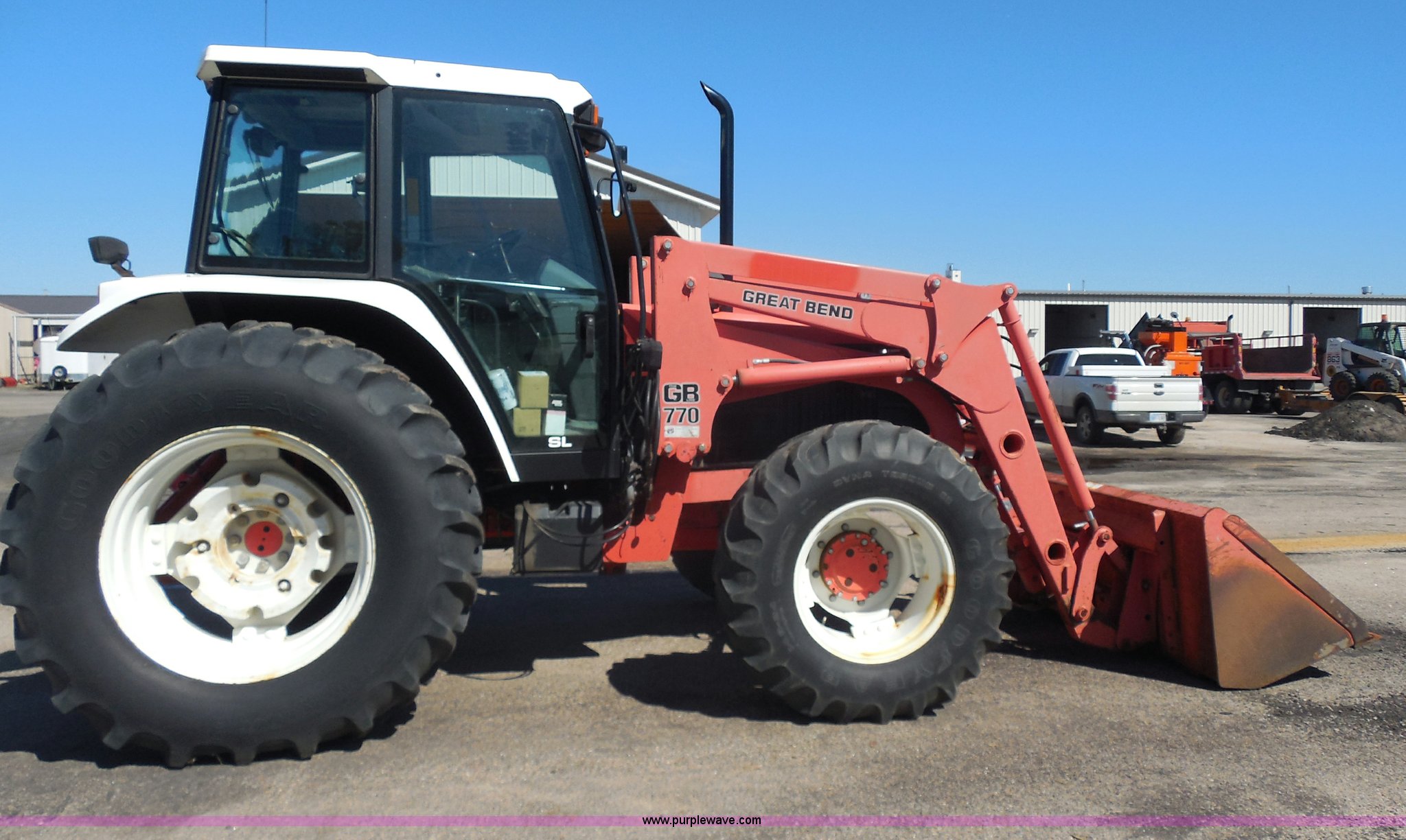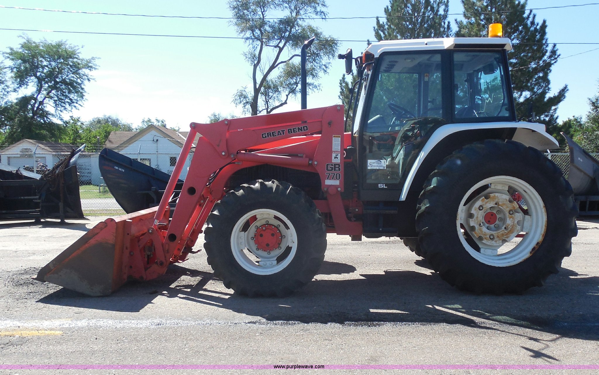 Purple Wave is selling a used Tractor in Kansas. This item is a 1998 Ford 7740SL MFWD tractor with the following: 3,329 hours on meter, Ford 5.0L four cylinder diesel engine, Synchroshift transmission, 12F-12R gears, Differential lock, AC and heat, AM/FM, Spring suspension seat, Tilt steering wheel, Great Bend 770 loader, 7' bucket, Bolt-on cutting edge, Quick attach, Joystick control, Serial 1673, Three point, Auxiliary outlet, 540 PTO, 86 PTO HP, Draw bar, (4) rear hydraulic remotes, Wheel weights, 94" wheelbase, 14.9-24 front tires, 18.4-34 rear tires, Paint faded and scratched, Transmission has dry clutch issues, Right side mirror missing, Serial 087700B, KDOT ID 366-3017