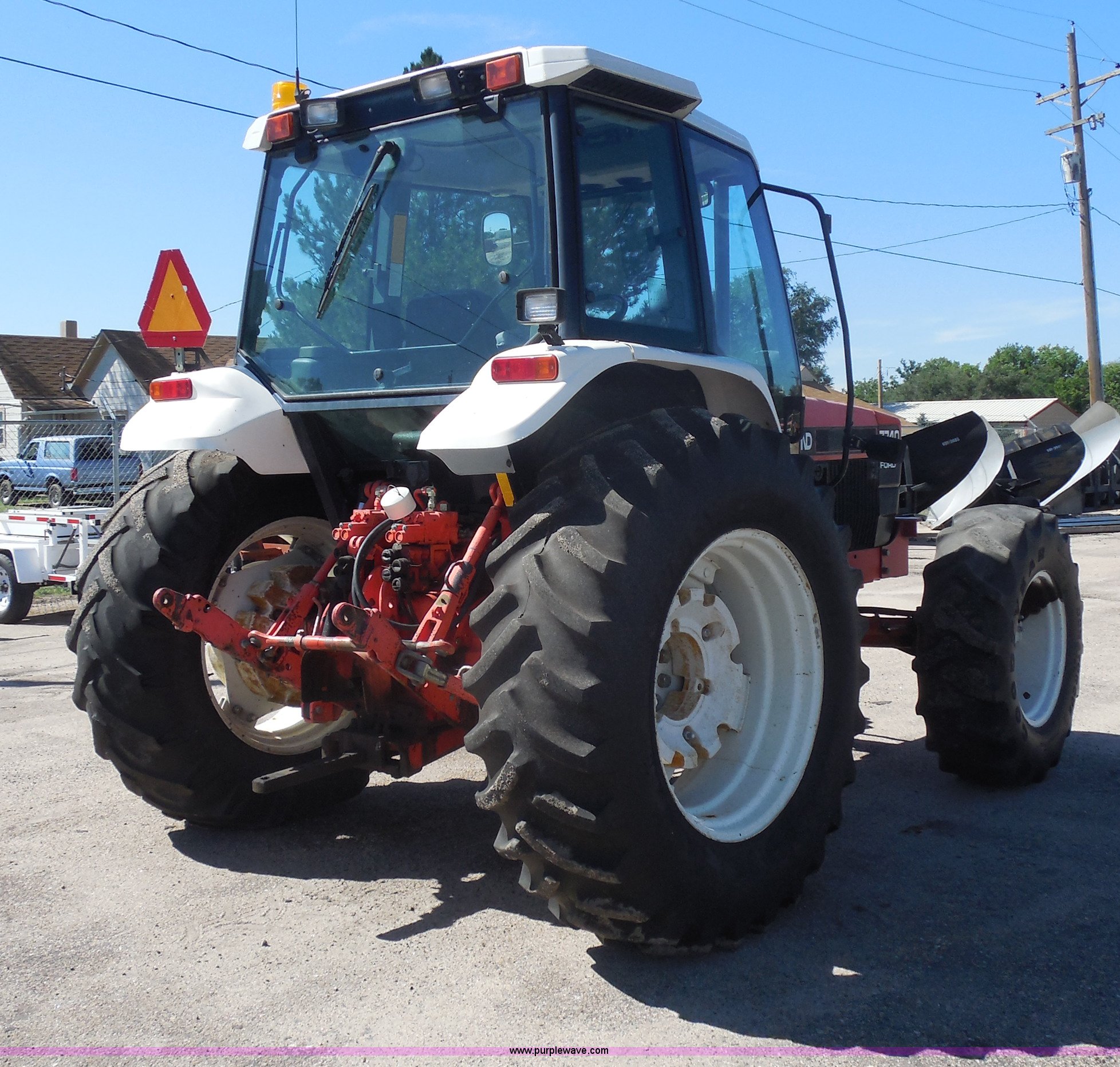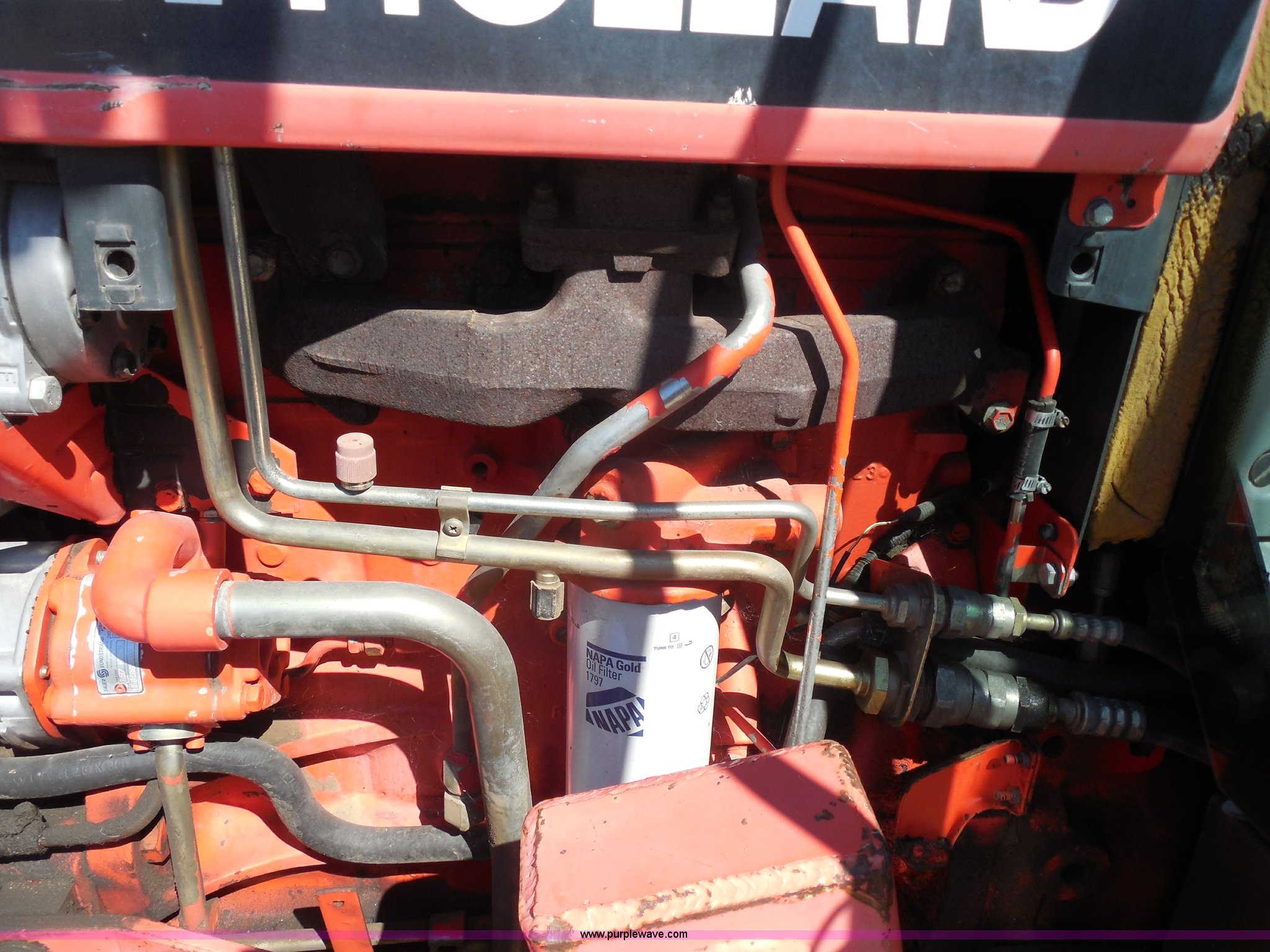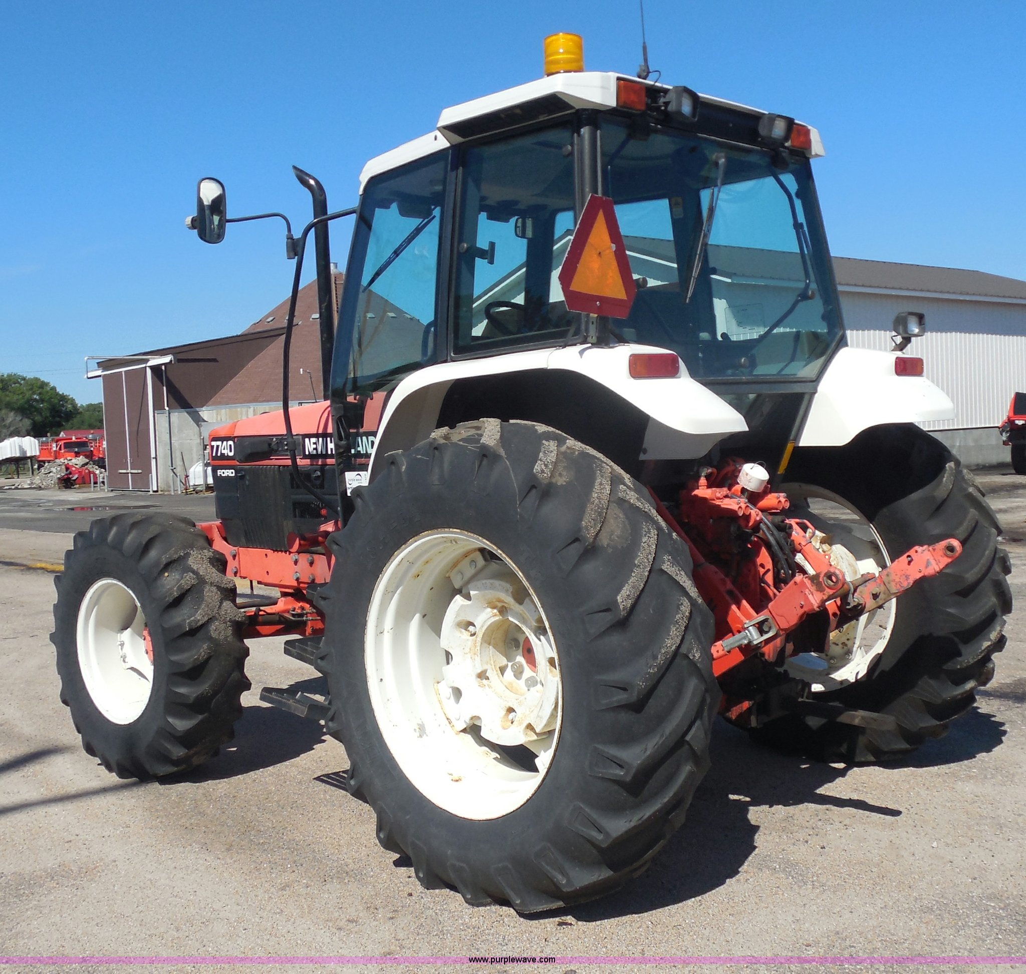 Purple Wave is selling a used Tractor in Kansas. This item is a 1998 Ford 7740SL MFWD tractor with the following: 5,371 hours on meter, Ford 5.0L four cylinder diesel engine, Synchroshift transmission, 12F-12R gears, Differential lock, AC and heat, AM/FM, Spring suspension seat, Tilt steering wheel, Great Bend 770 loader, 7' bucket, Bolt-on cutting edge, Quick attach, Joystick control, Serial 1676, Three point, Auxiliary outlet, 540 PTO, 86 PTO HP, Draw bar, (4) rear hydraulic remotes, Wheel weights, 94" wheelbase, 14.9-24 front tires, 18.4-34 rear tires, Paint faded and scratched, Front main seal leaks, Hydraulic leaks on rear of tractor, Serial 087748B, KDOT ID 366-3027