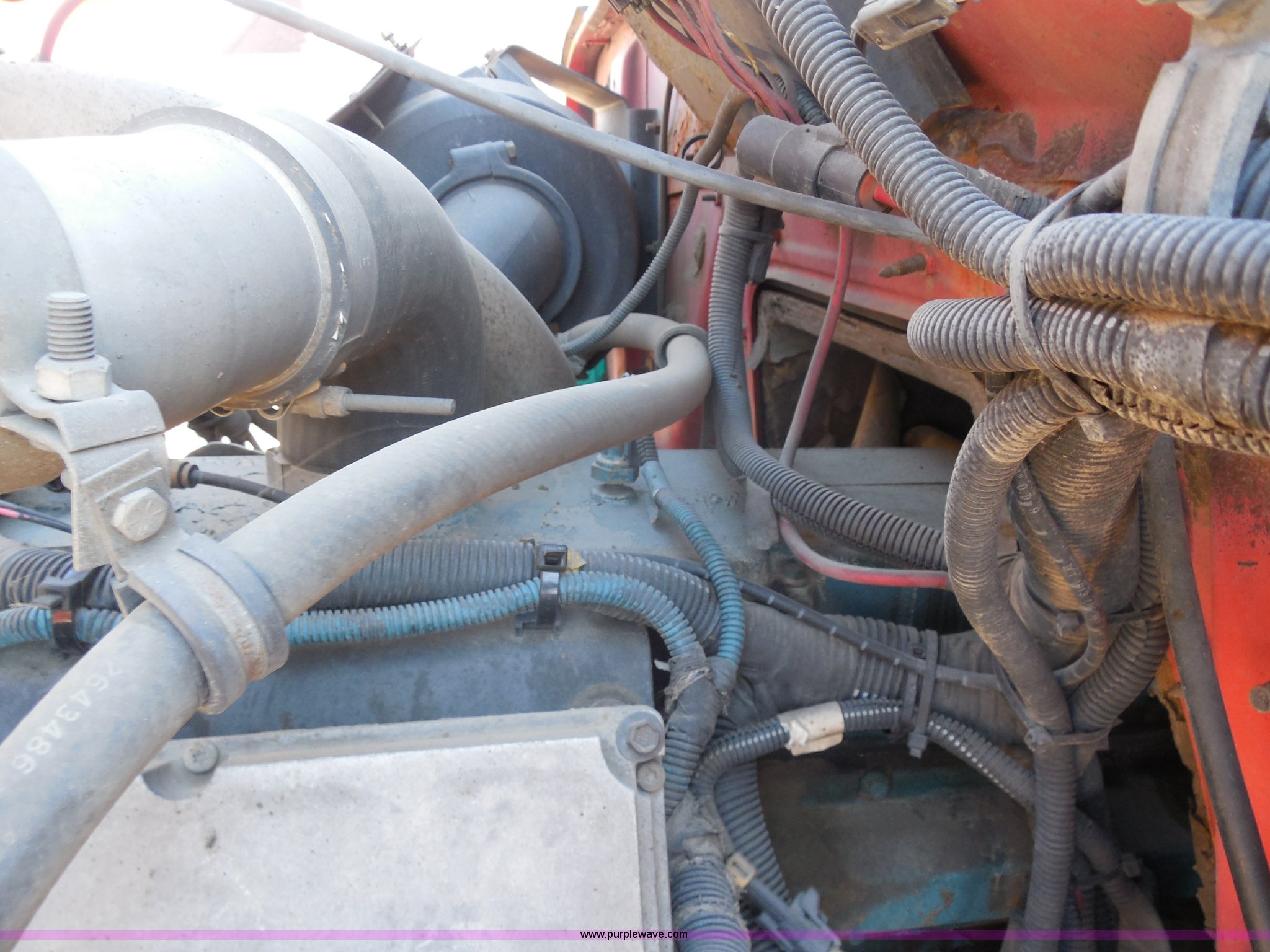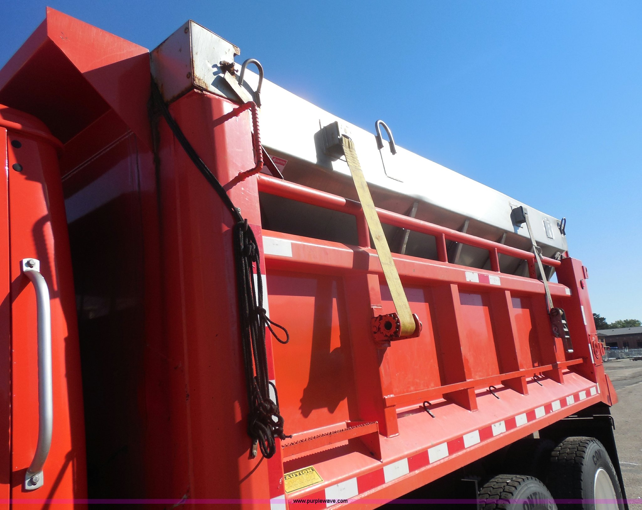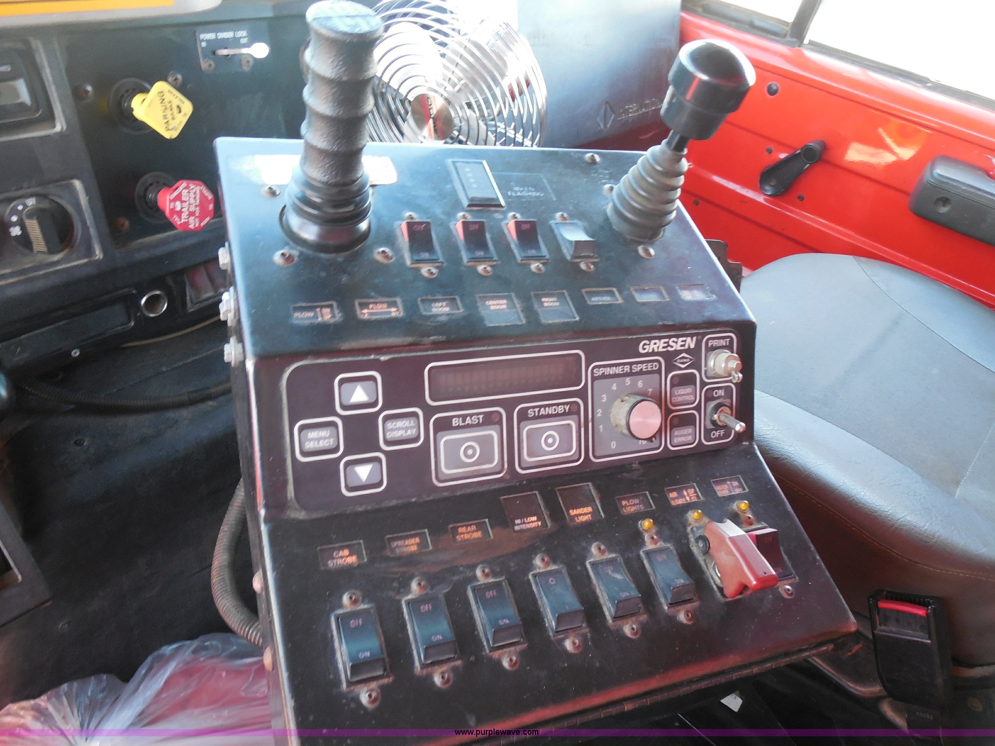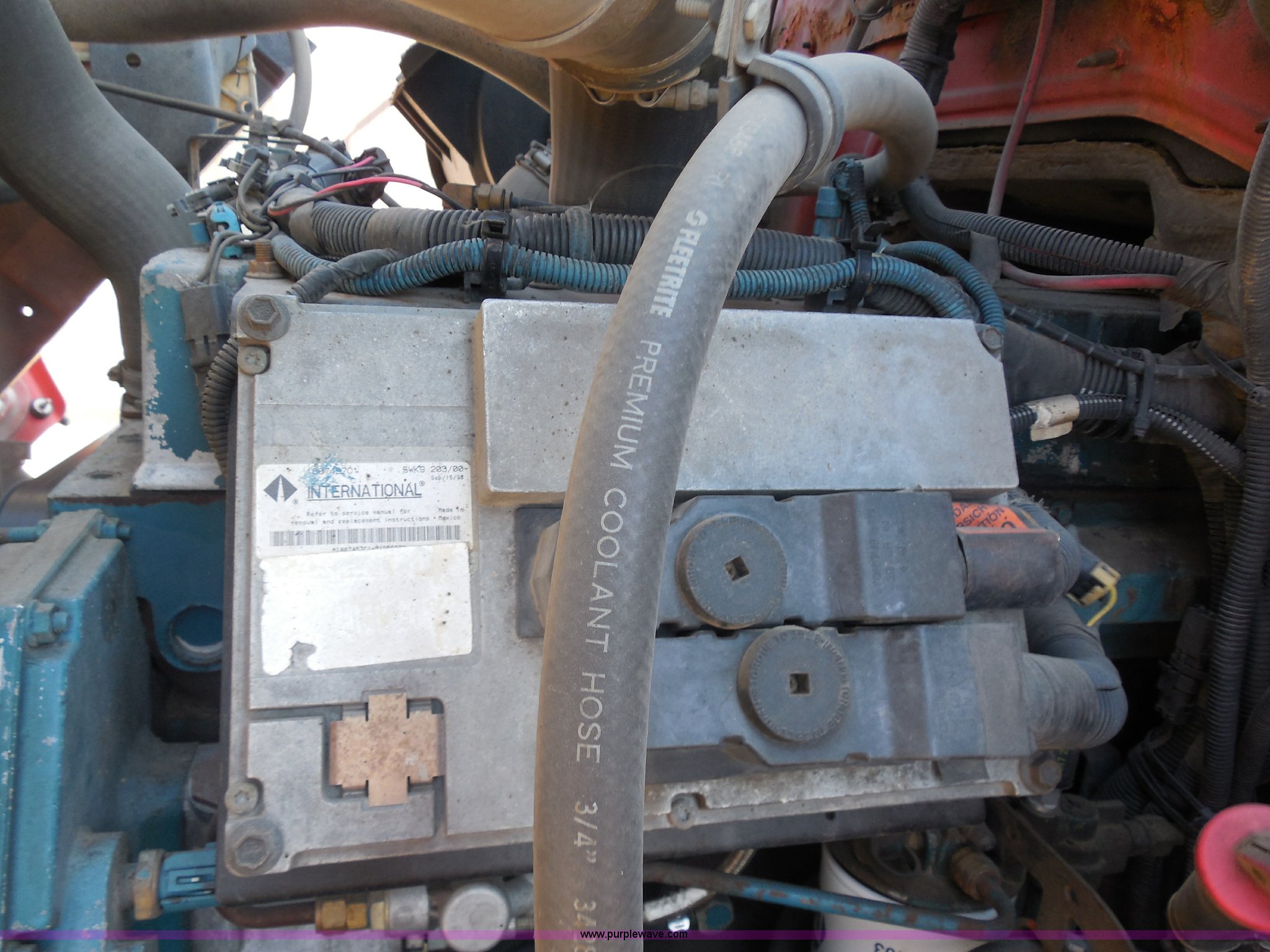 Purple Wave is selling a used Construction Dump Truck in Kansas. This item is a 1999 International 4900 dump truck with the following: 166,616 miles on odometer, International DT530 8.7L L6 diesel engine, Allison MD3060-CR automatic transmission, Nine cu. yd. spreader, 11' snow plow, 275/80R22.5 front tires, 295/75R22.5 rear tires, Paint faded and scratched, Engine misfire, Engine weak, Rust, Right front fender damaged, KDOT ID 264-3119