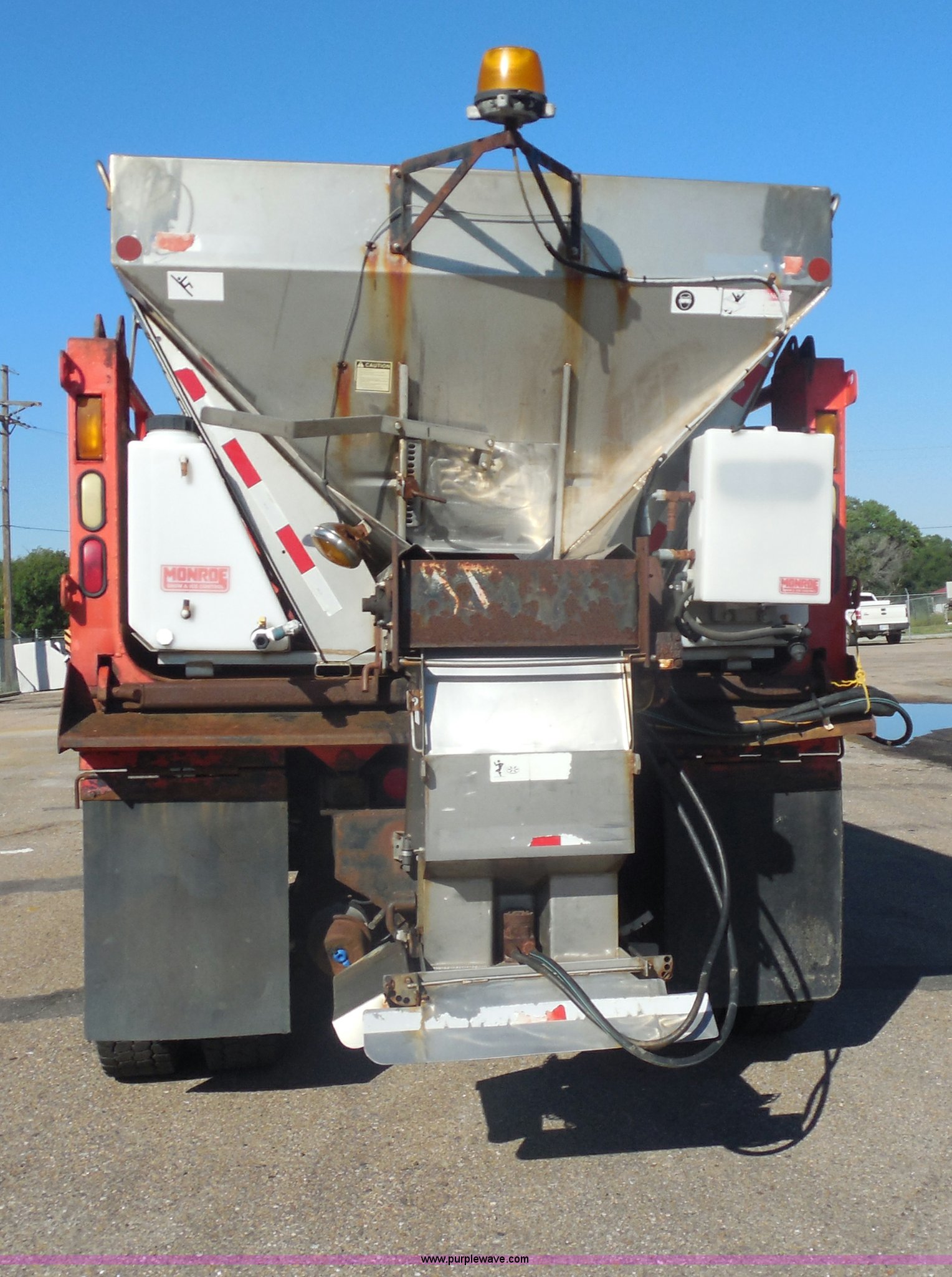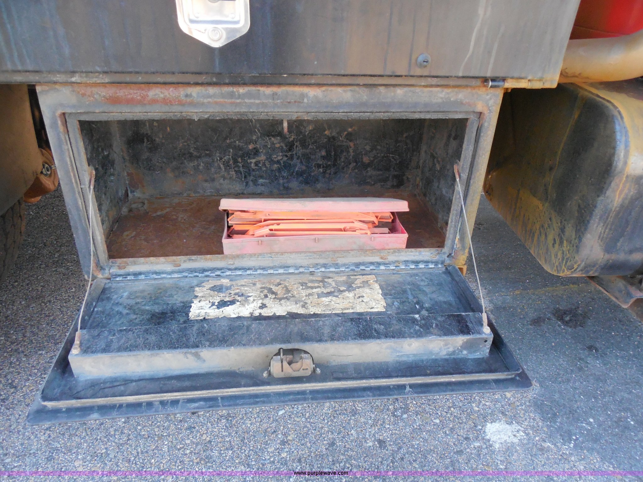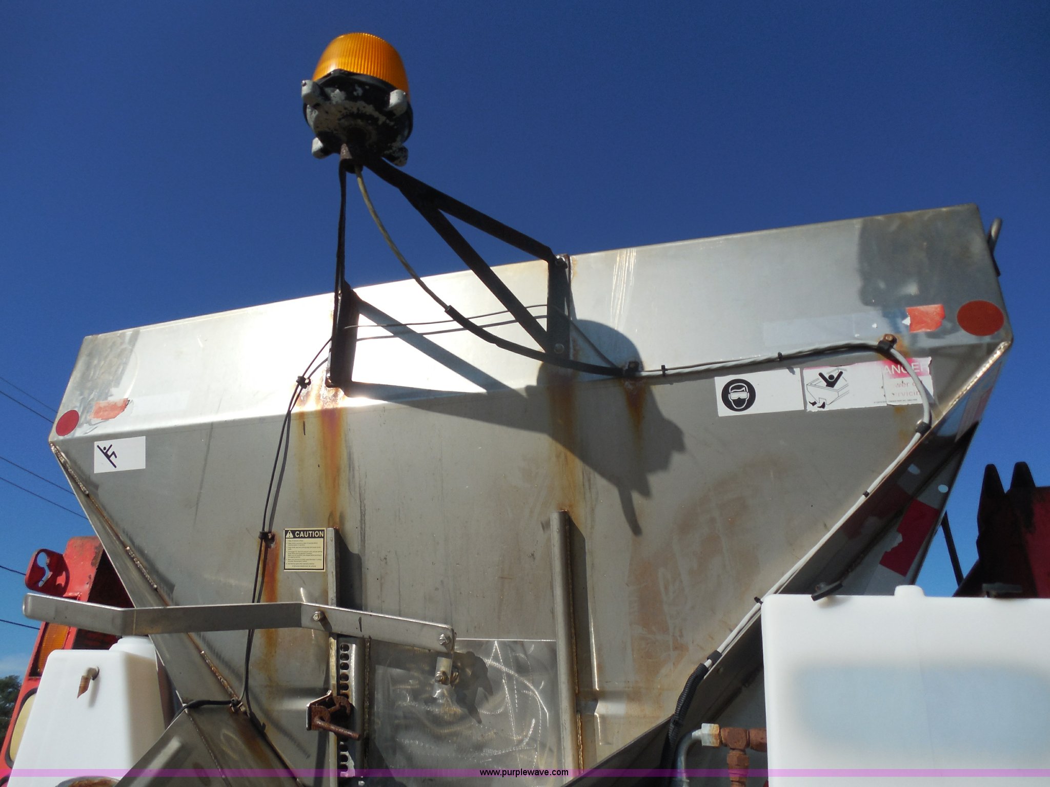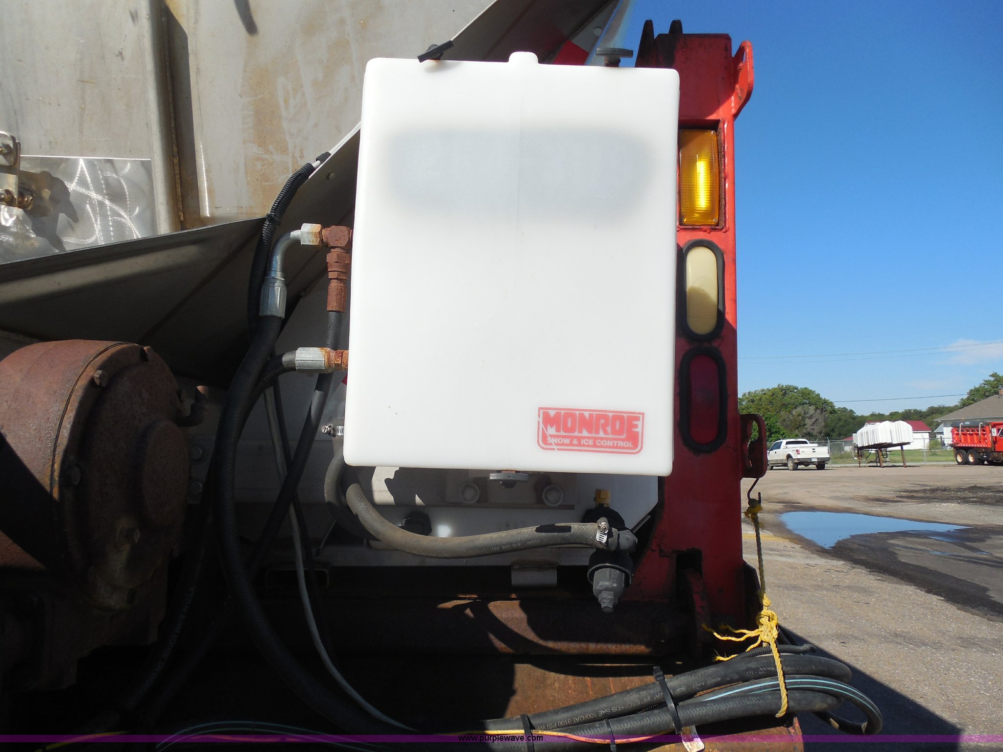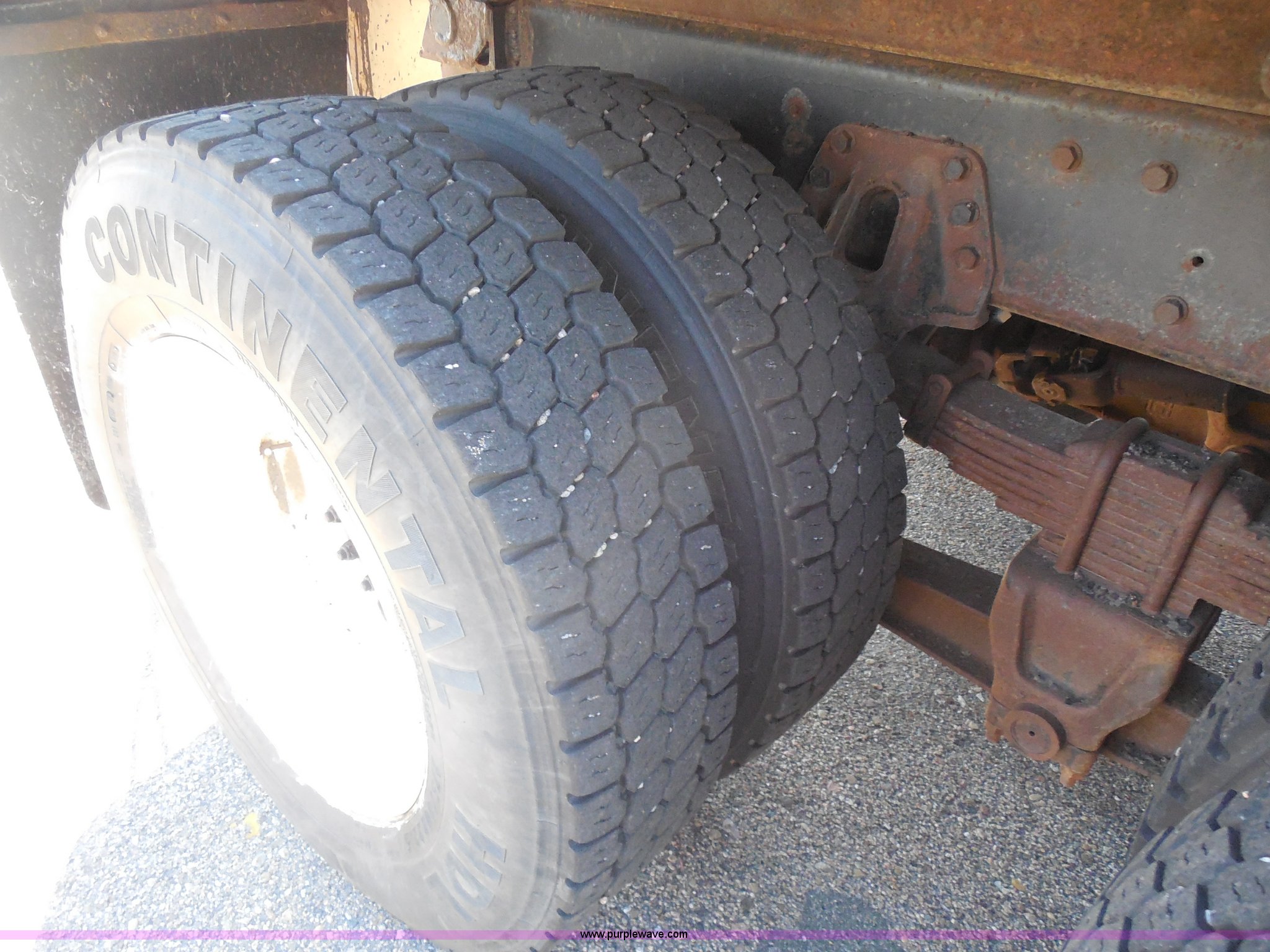 Purple Wave is selling a used Construction Dump Truck in Kansas. This item is a 1999 International 4900 dump truck with the following: 166,616 miles on odometer, International DT530 8.7L L6 diesel engine, Allison MD3060-CR automatic transmission, Nine cu. yd. spreader, 11' snow plow, 275/80R22.5 front tires, 295/75R22.5 rear tires, Paint faded and scratched, Engine misfire, Engine weak, Rust, Right front fender damaged, KDOT ID 264-3119