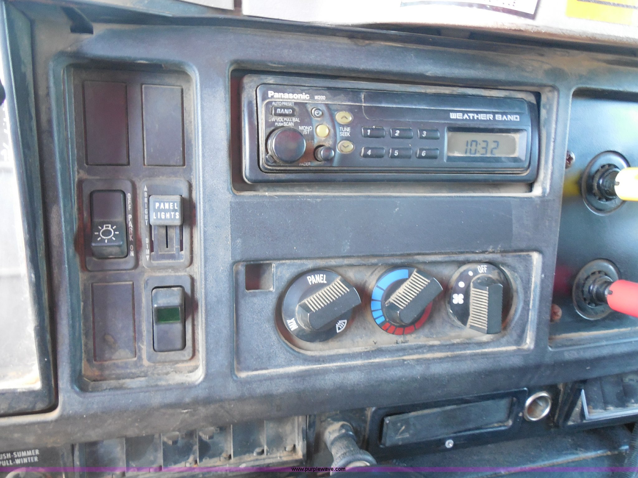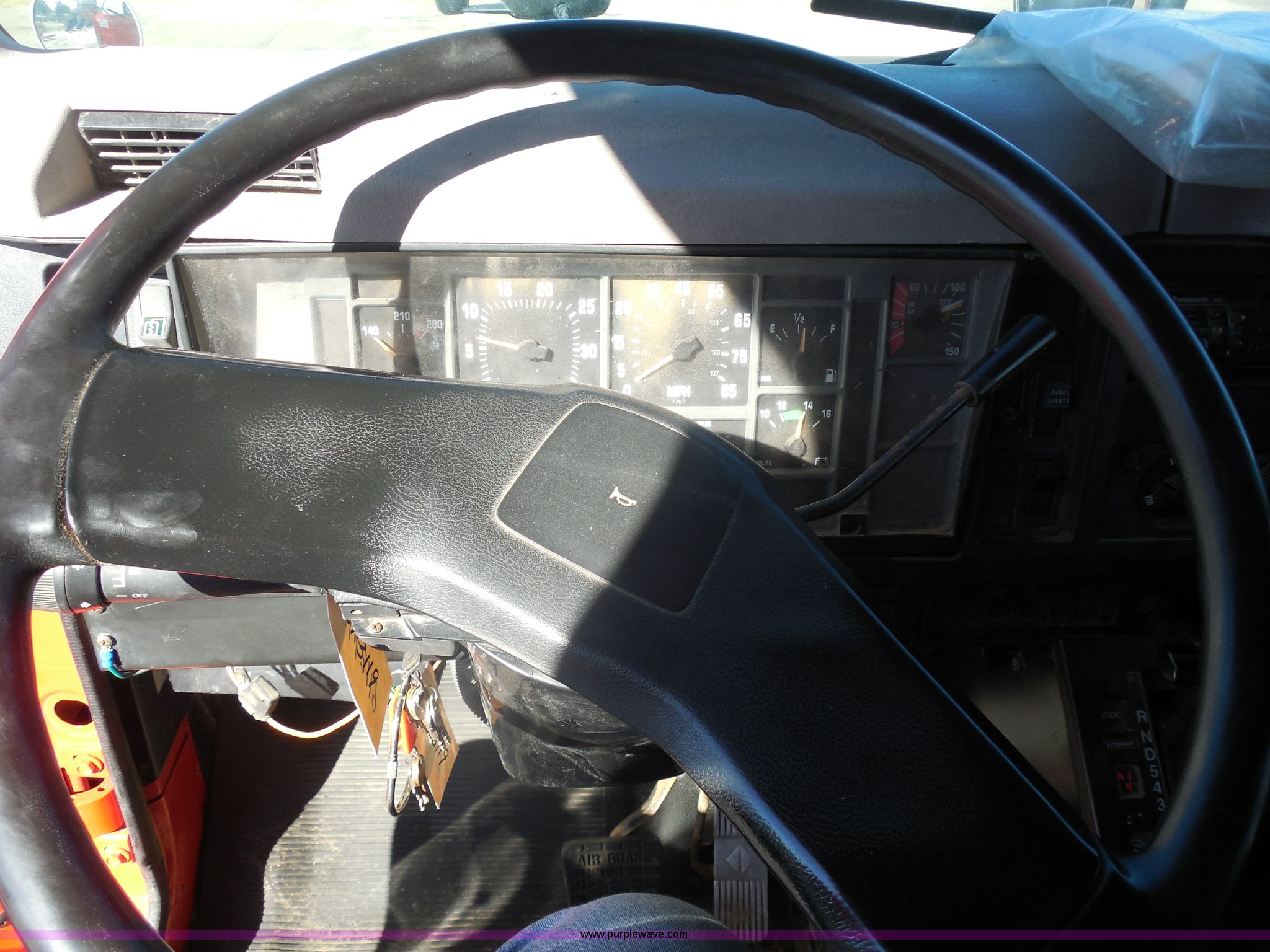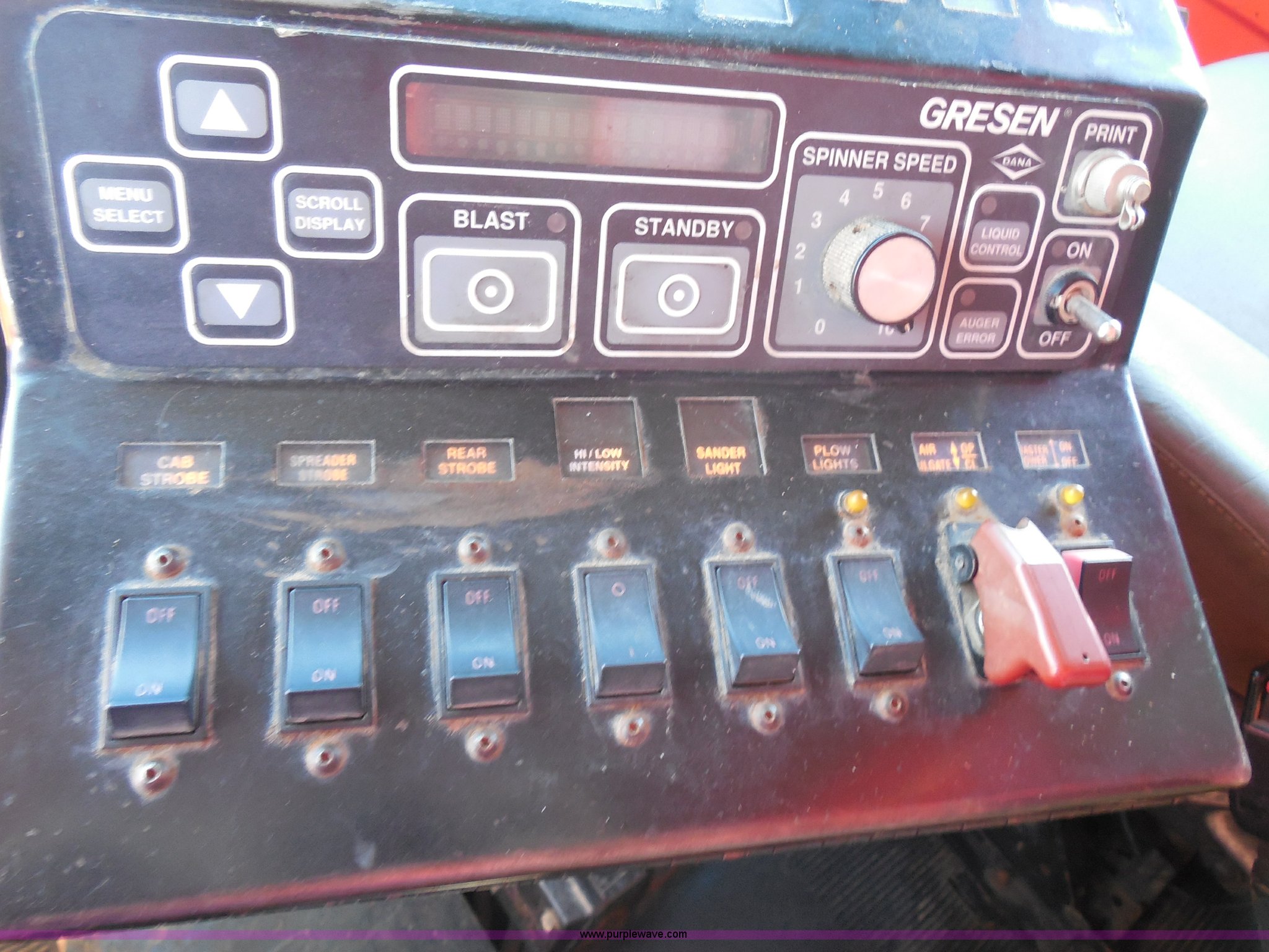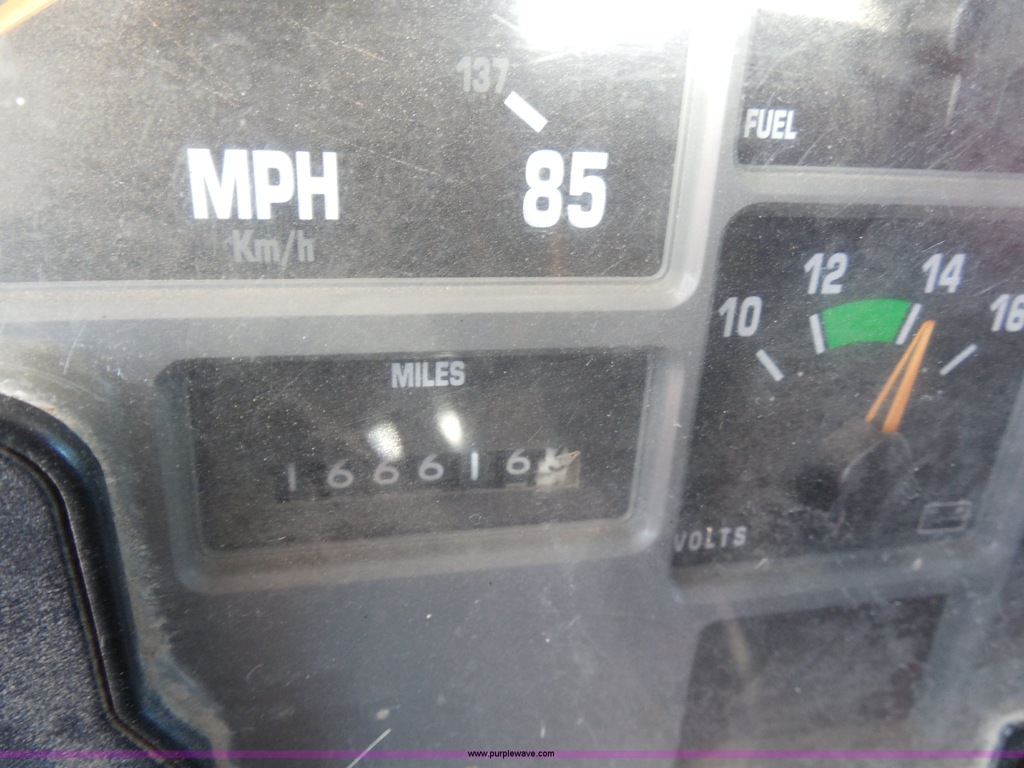 Purple Wave is selling a used Construction Dump Truck in Kansas. This item is a 1999 International 4900 dump truck with the following: 166,616 miles on odometer, International DT530 8.7L L6 diesel engine, Allison MD3060-CR automatic transmission, Nine cu. yd. spreader, 11' snow plow, 275/80R22.5 front tires, 295/75R22.5 rear tires, Paint faded and scratched, Engine misfire, Engine weak, Rust, Right front fender damaged, KDOT ID 264-3119