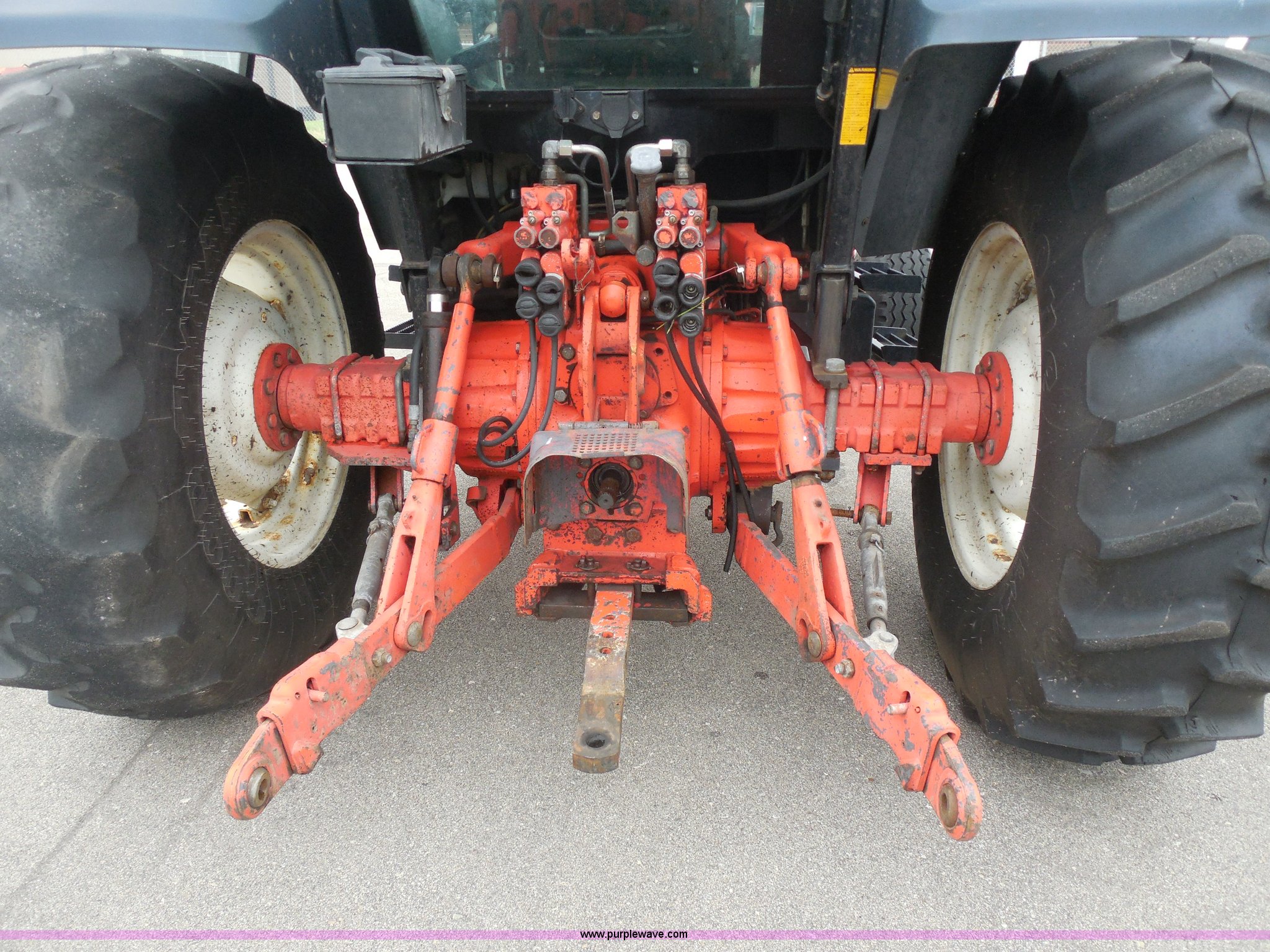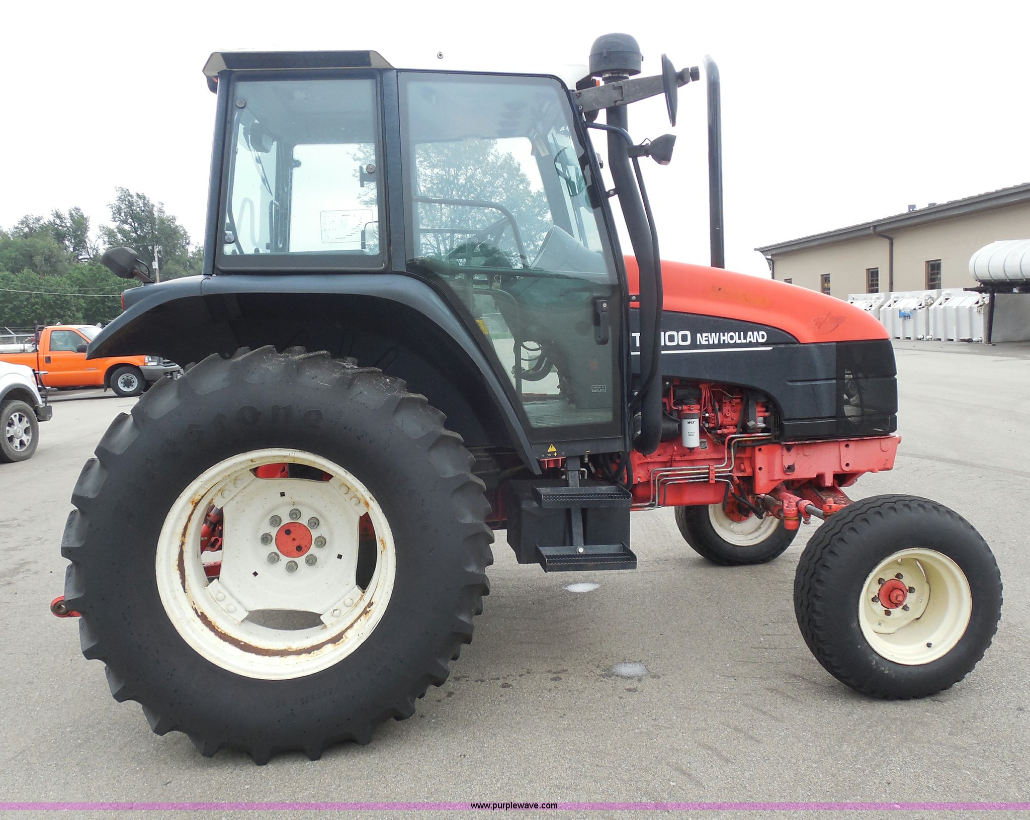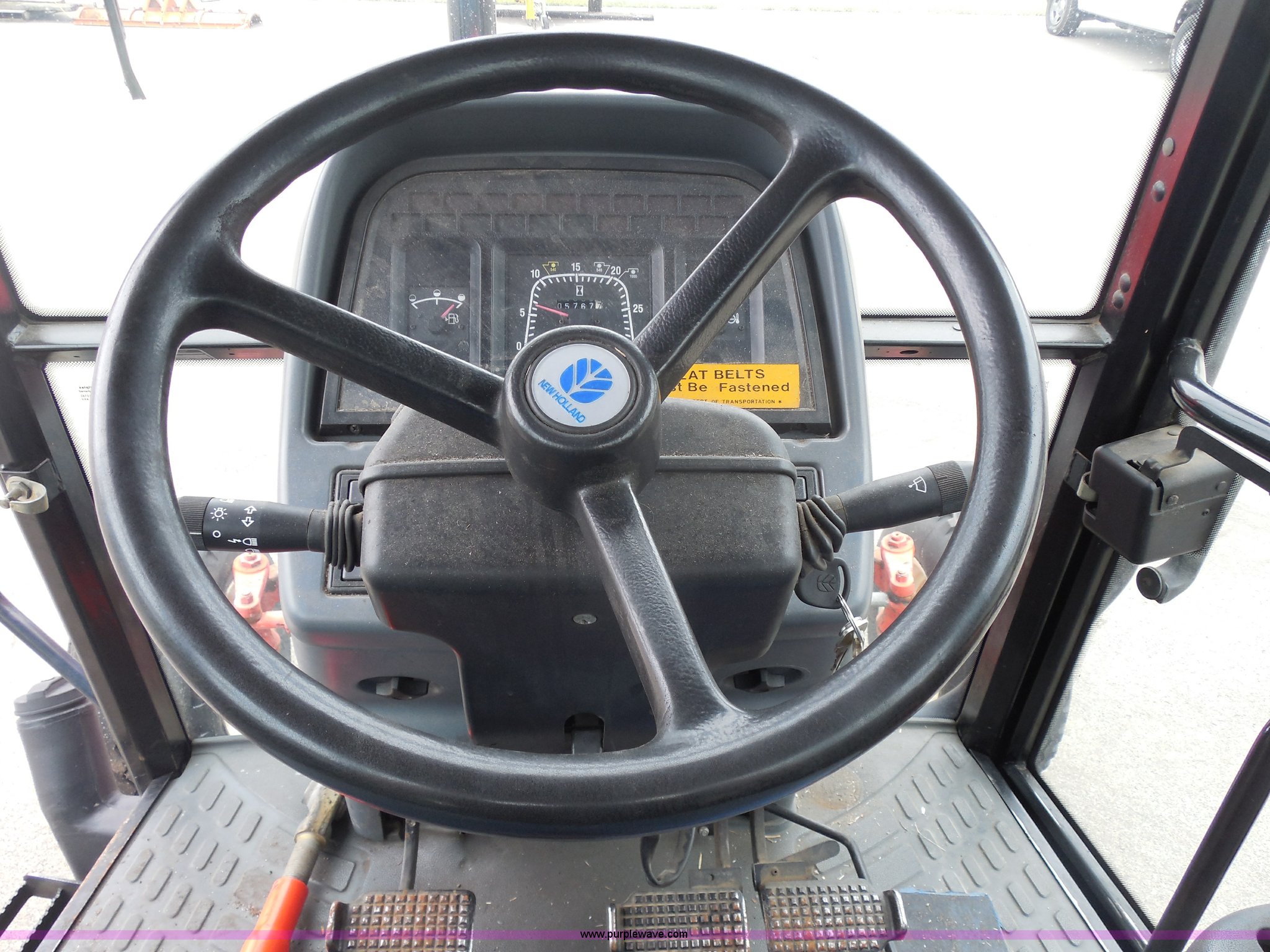 Purple Wave is selling a used Tractor in Kansas. This item is a 1999 Ford TS100 tractor with the following: 5,232 hours on meter, Genesis 5.0L four cylinder diesel engine, Turbocharger, 100 HP, Synchroshift transmission, 12F/12R, AC and heat, 540/1000 PTO, 80 PTO HP, Three point, Draw bar, (4) rear hydraulic remotes, Electrical plugs, Seven and four way, 16" front tires, 11L-16 front tires, 18.4-30 rear tires, Paint faded and scratched, Broken mirror, Three point arms missing, Worn left rear tire, Low hydraulic pressure, Clutch slips, Serial 138724B, KDOT ID 352-2080