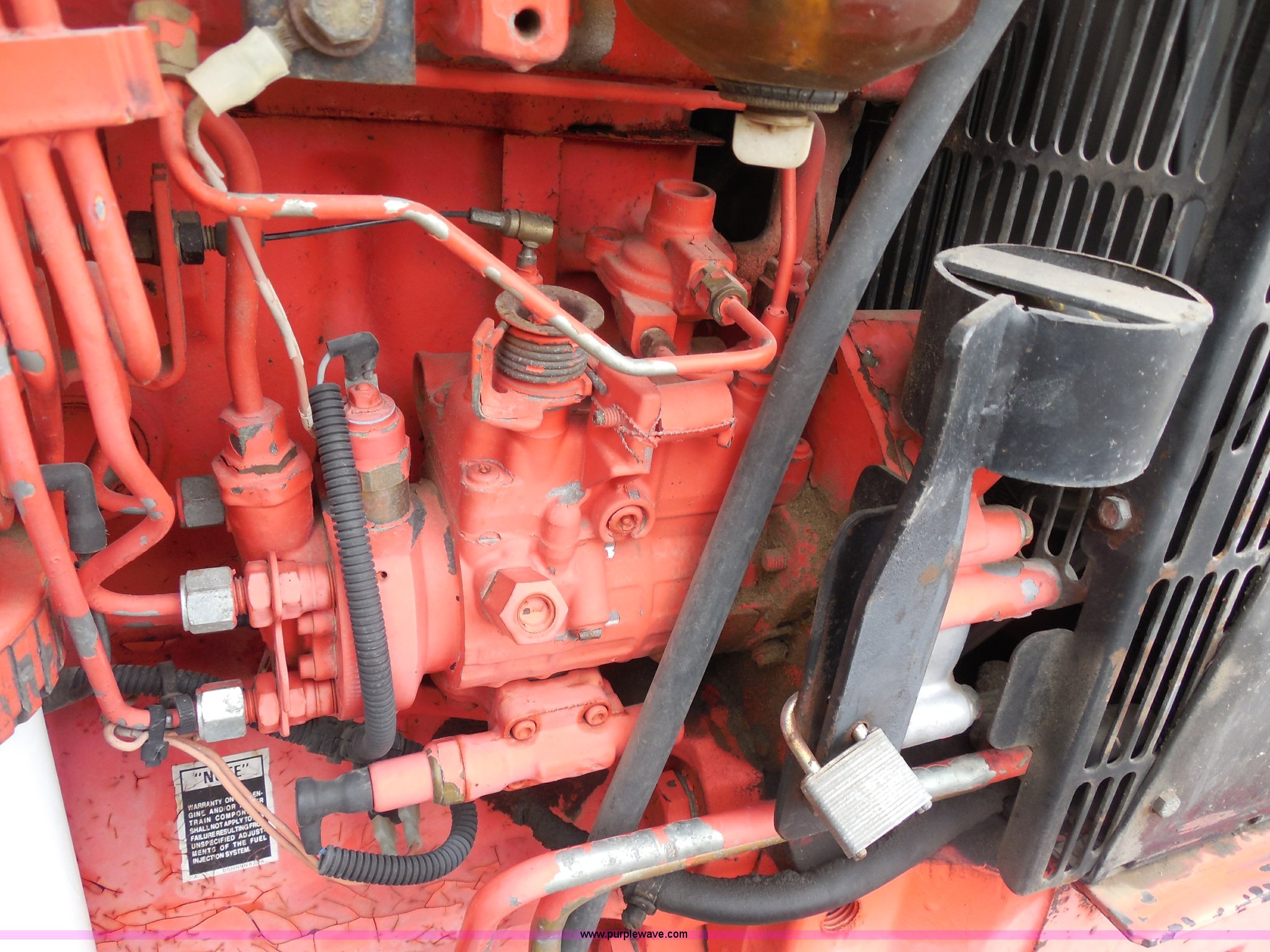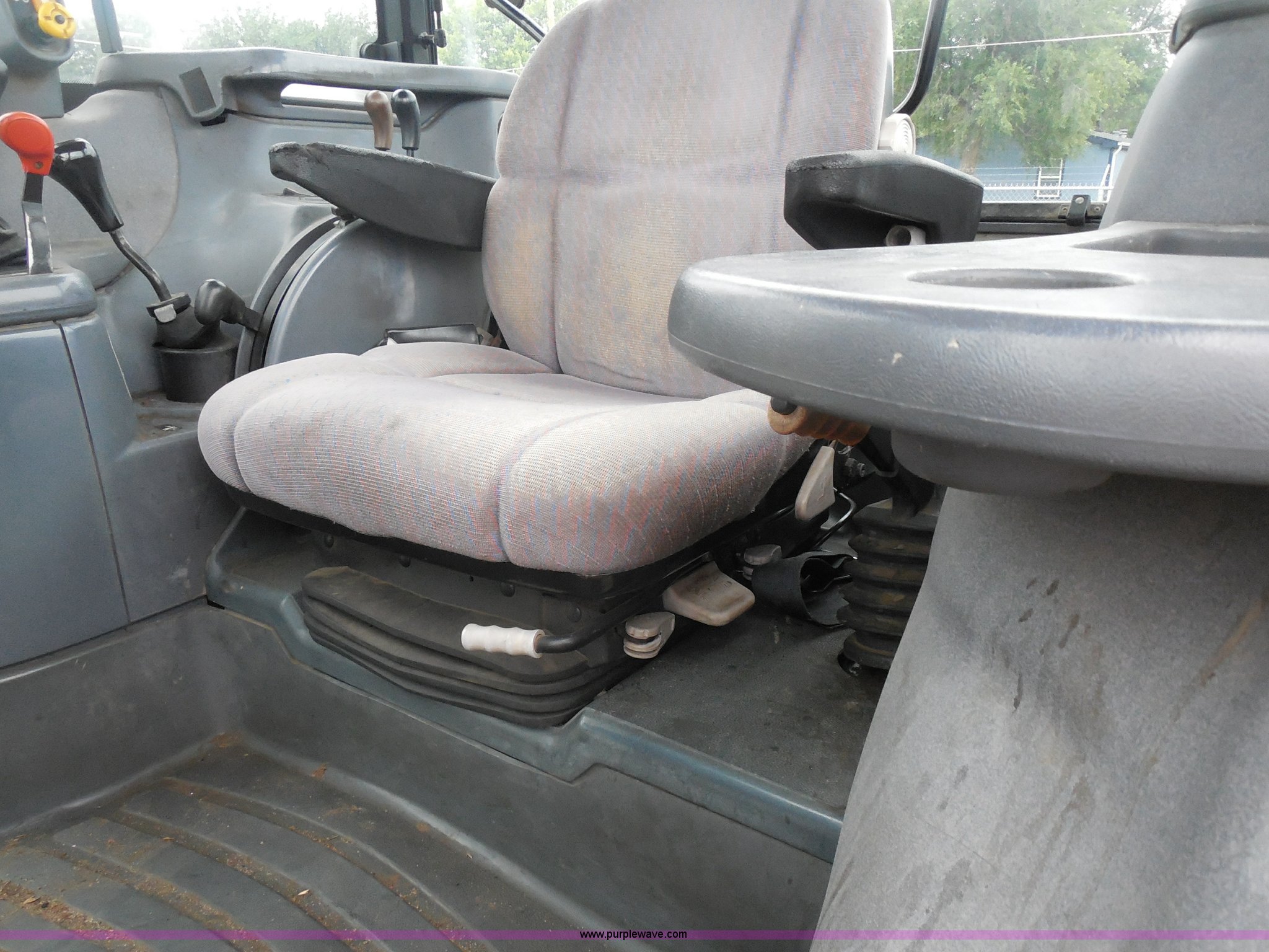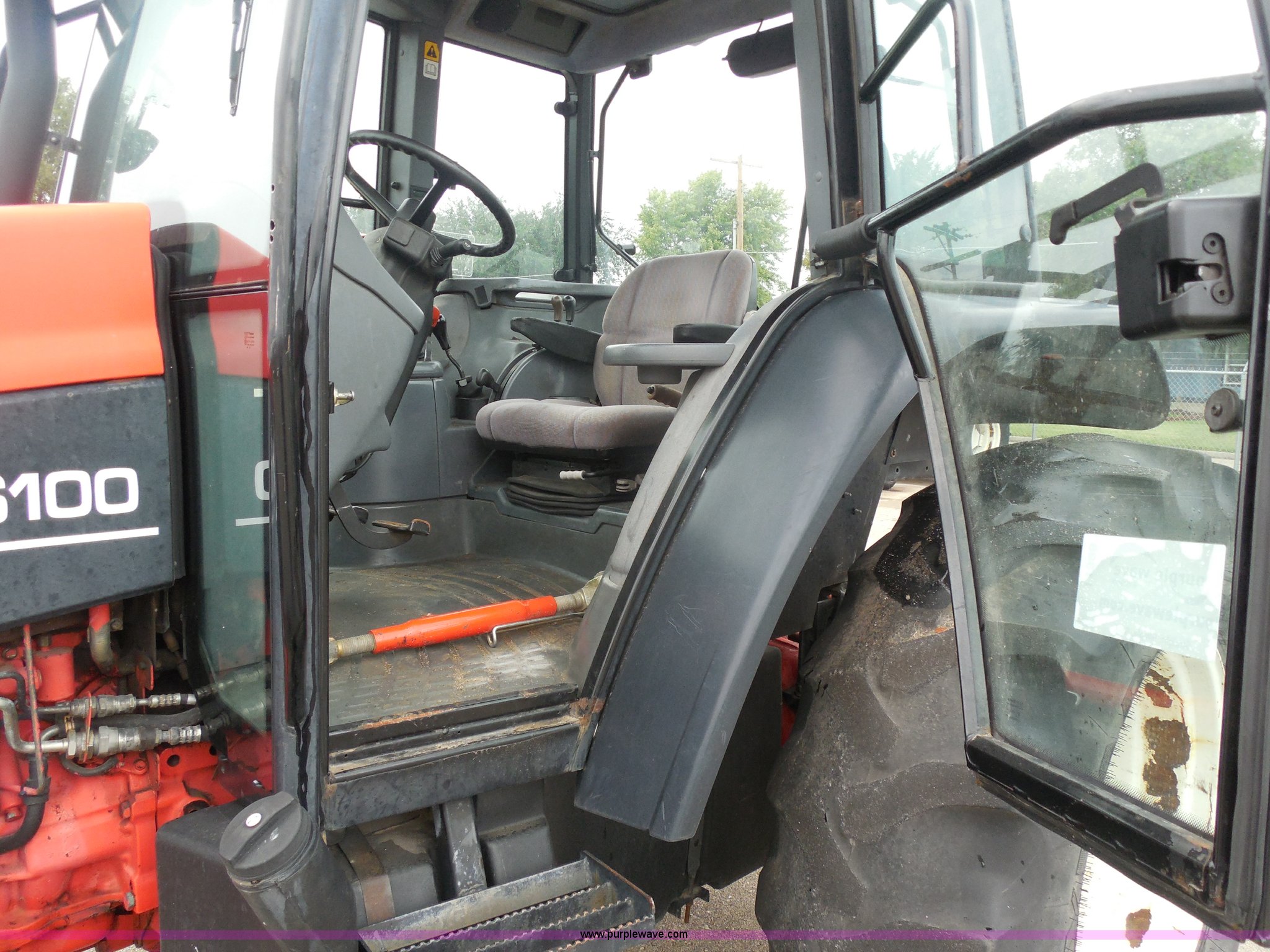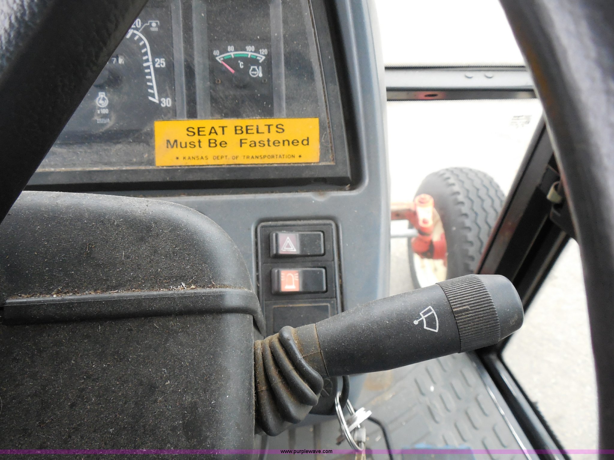 Purple Wave is selling a used Tractor in Kansas. This item is a 1999 Ford TS100 tractor with the following: 5,232 hours on meter, Genesis 5.0L four cylinder diesel engine, Turbocharger, 100 HP, Synchroshift transmission, 12F/12R, AC and heat, 540/1000 PTO, 80 PTO HP, Three point, Draw bar, (4) rear hydraulic remotes, Electrical plugs, Seven and four way, 16" front tires, 11L-16 front tires, 18.4-30 rear tires, Paint faded and scratched, Broken mirror, Three point arms missing, Worn left rear tire, Low hydraulic pressure, Clutch slips, Serial 138724B, KDOT ID 352-2080