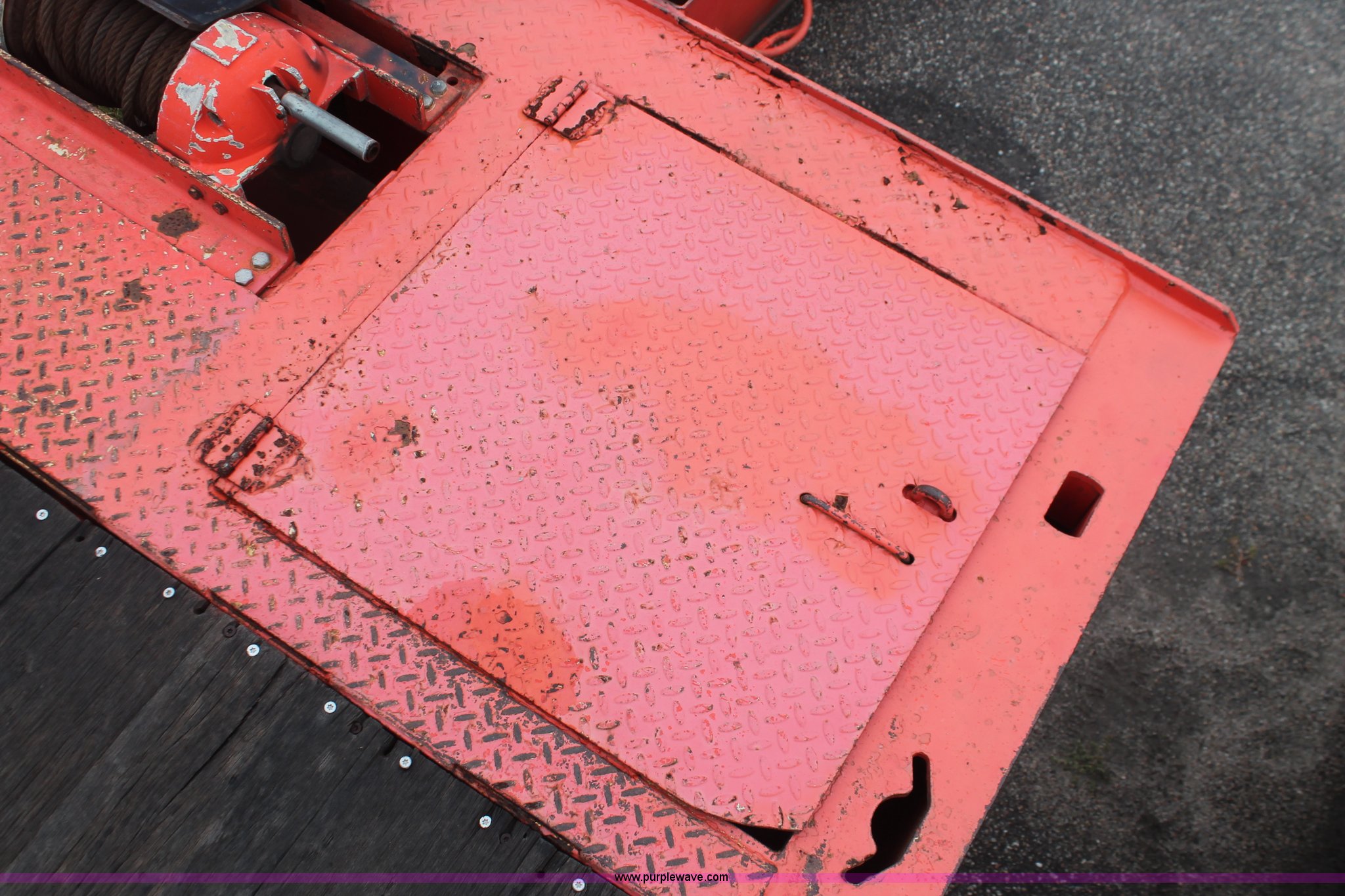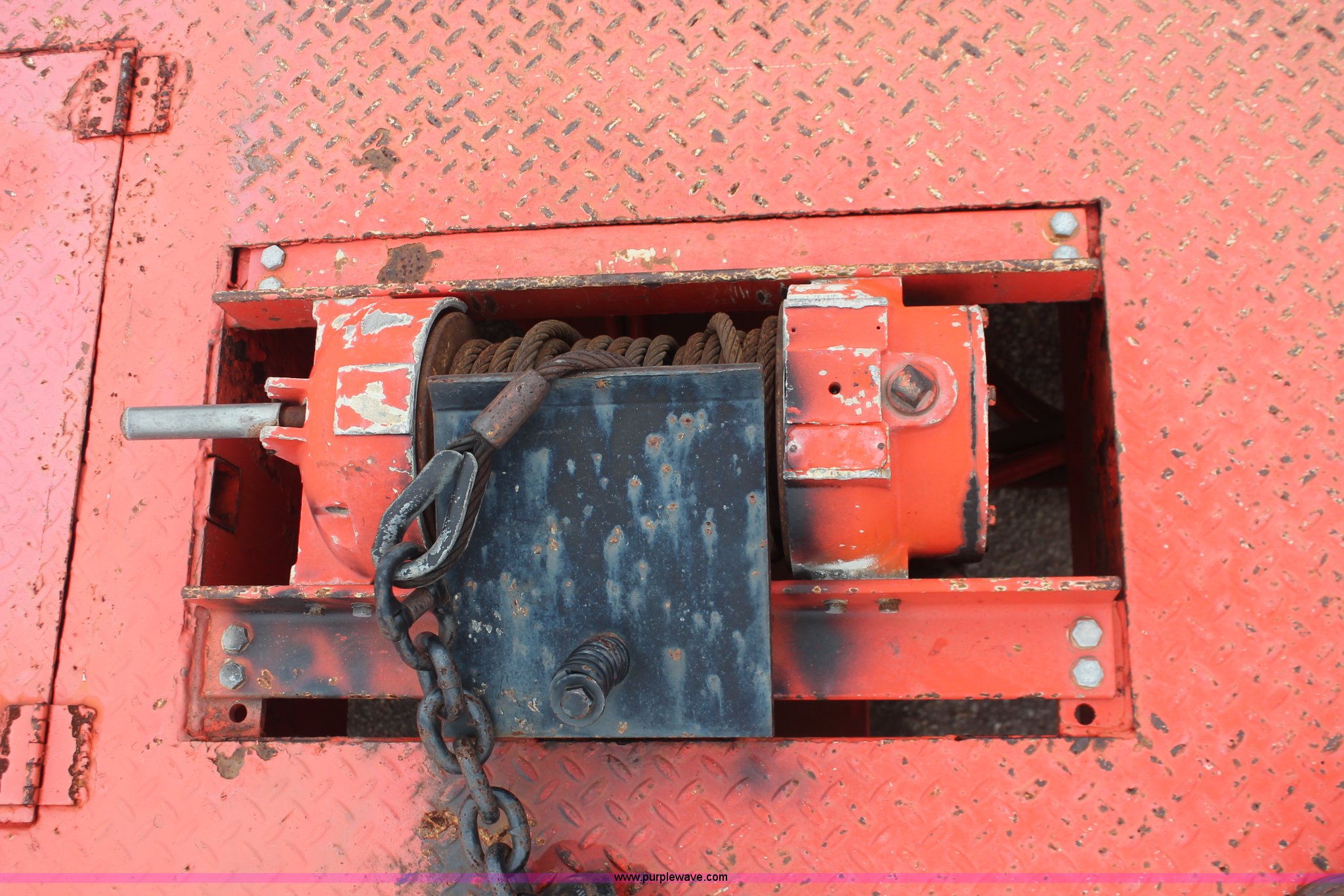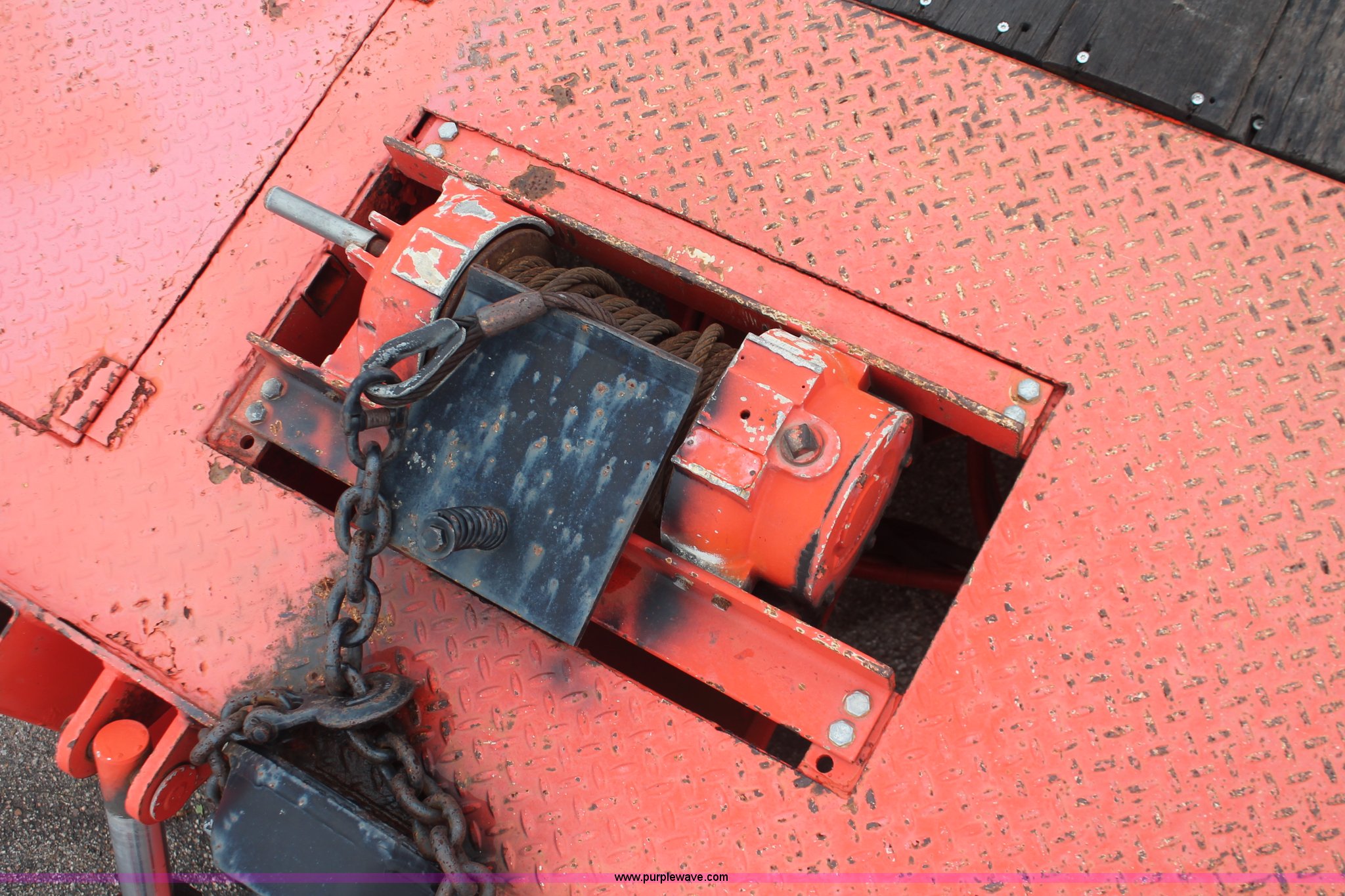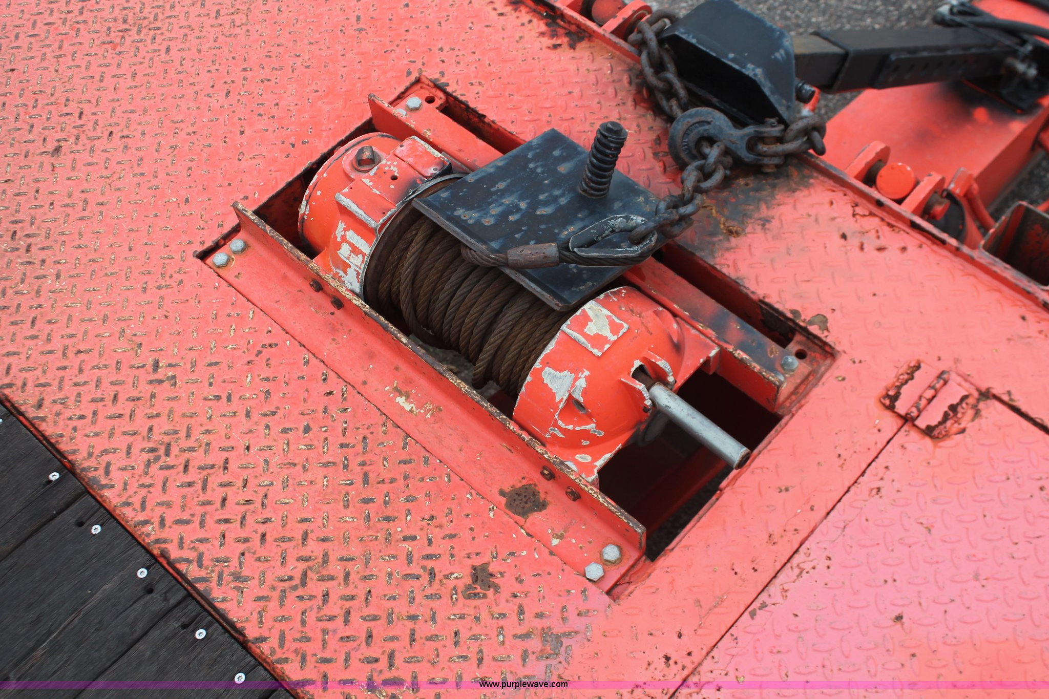 Purple Wave is selling a used Equip. Trailer in Kansas. This item is a 1994 Landoll 345-31 trailer with the following: 15 ton capacity, Wood tilt deck, Braden front mount winch, Recessed floor compartment, Stake pockets, Chain pockets, D-ring tie downs, Tandem slide axle, 10R17.5 tires, Frame cross members rusted, KDOT ID 777-5044