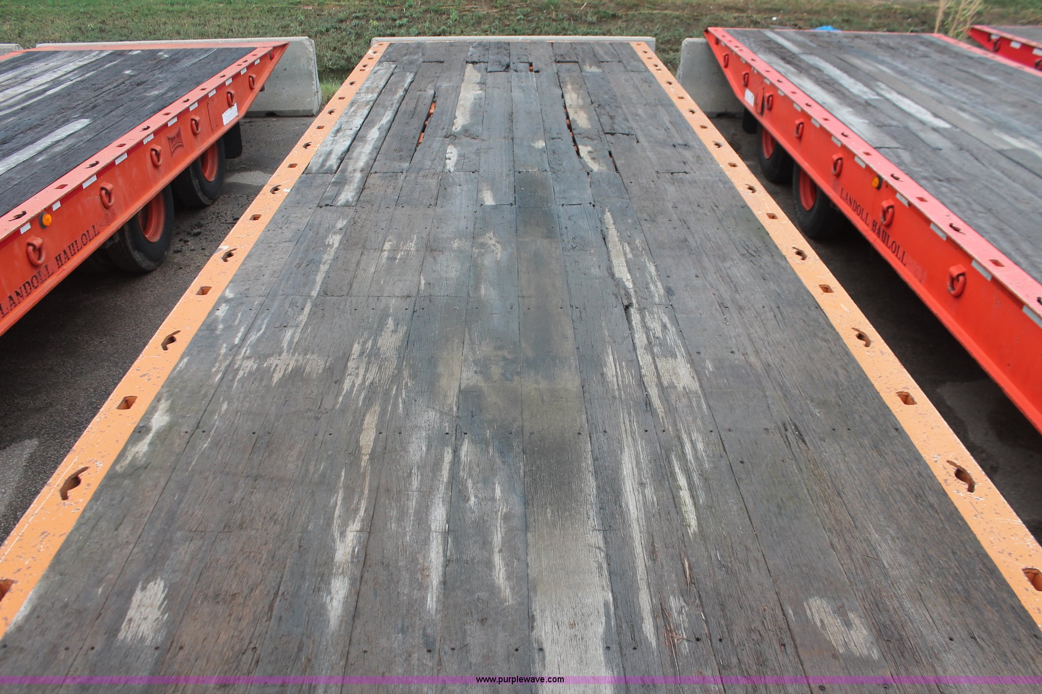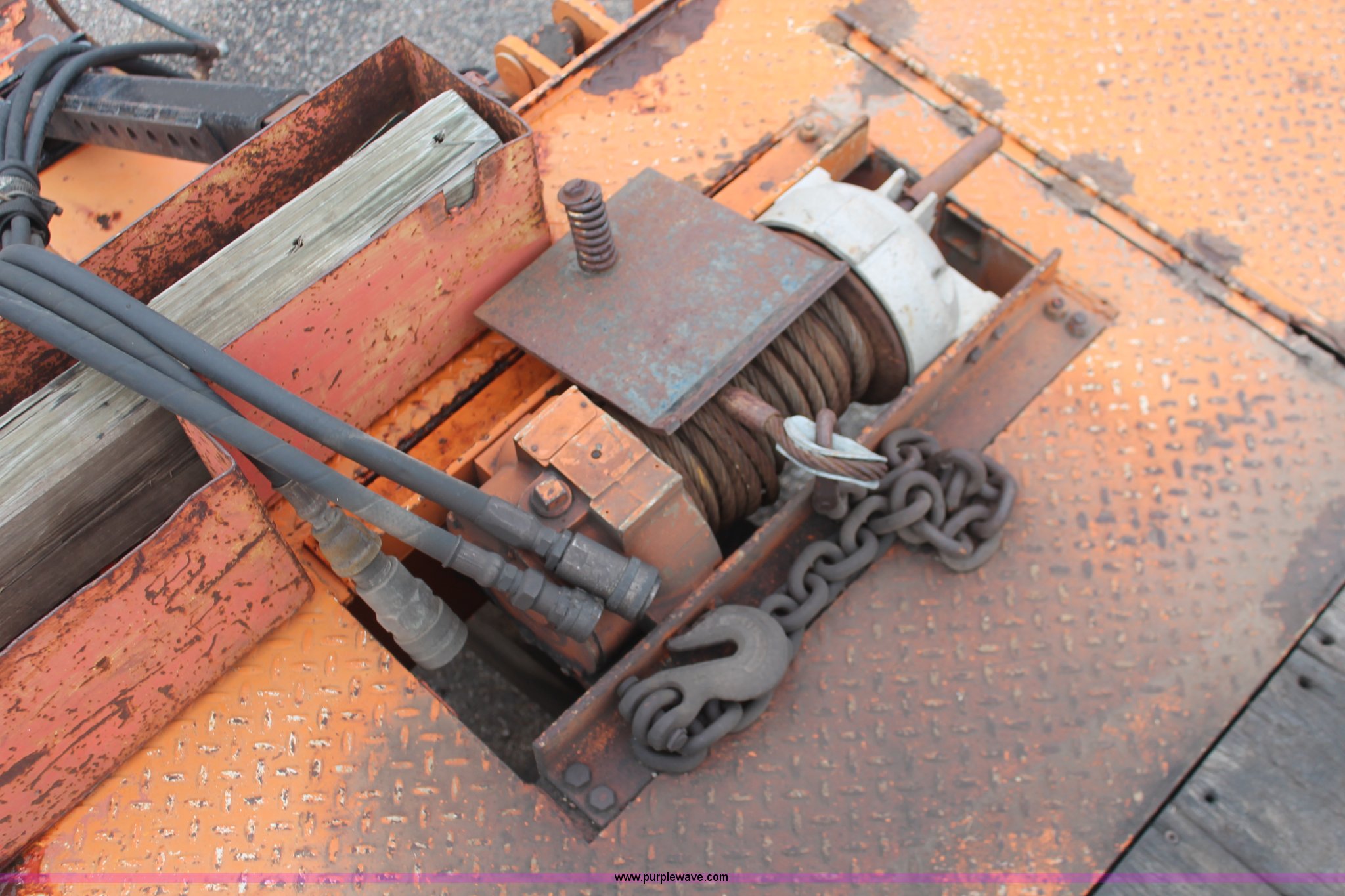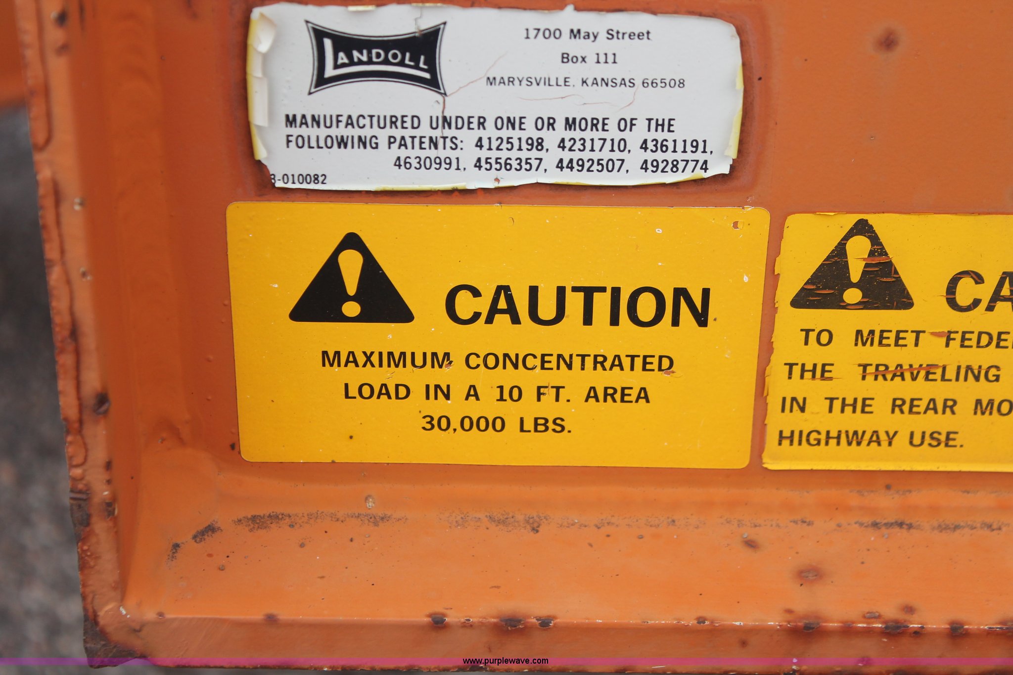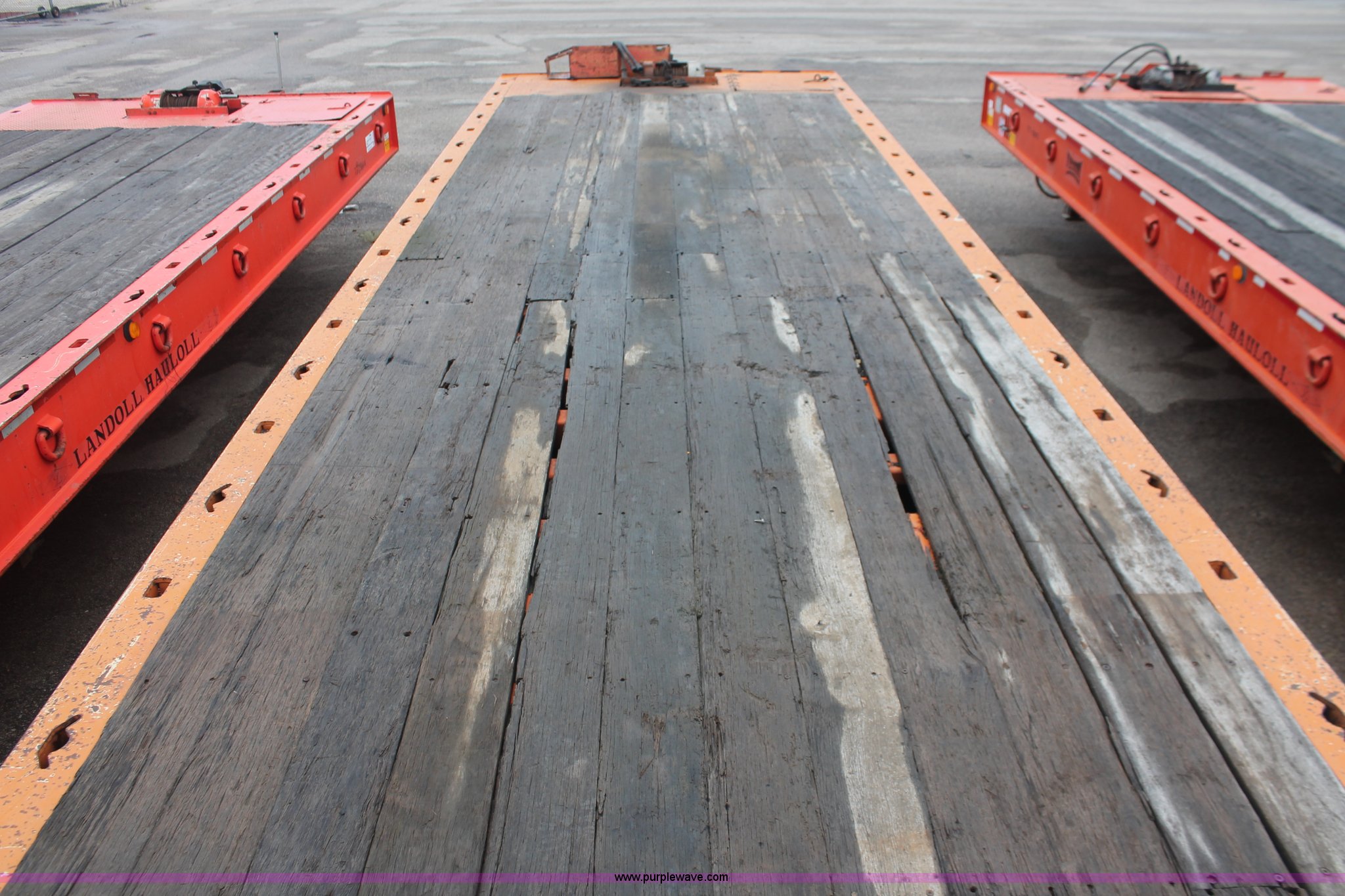 Purple Wave is selling a used Equip. Trailer in Kansas. This item is a 1993 Landoll 345-31 trailer with the following: 15 ton capacity, Wood tilt deck, Braden front mount winch, Recessed floor compartment, Stake pockets, Chain pockets, D-ring tie downs, Tandem slide axle, 10R17.5 tires, Frame strings rusted, KDOT ID 777-5034