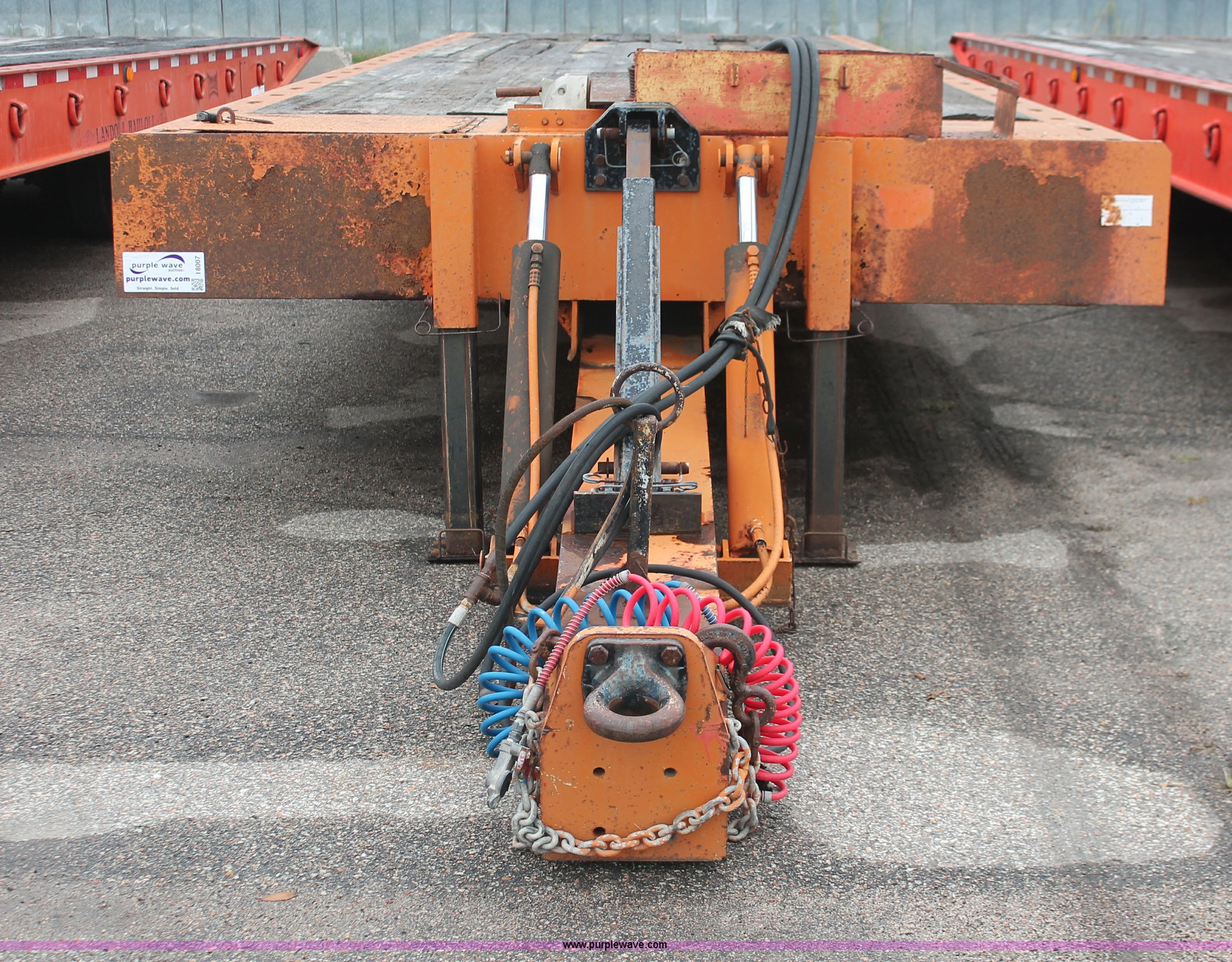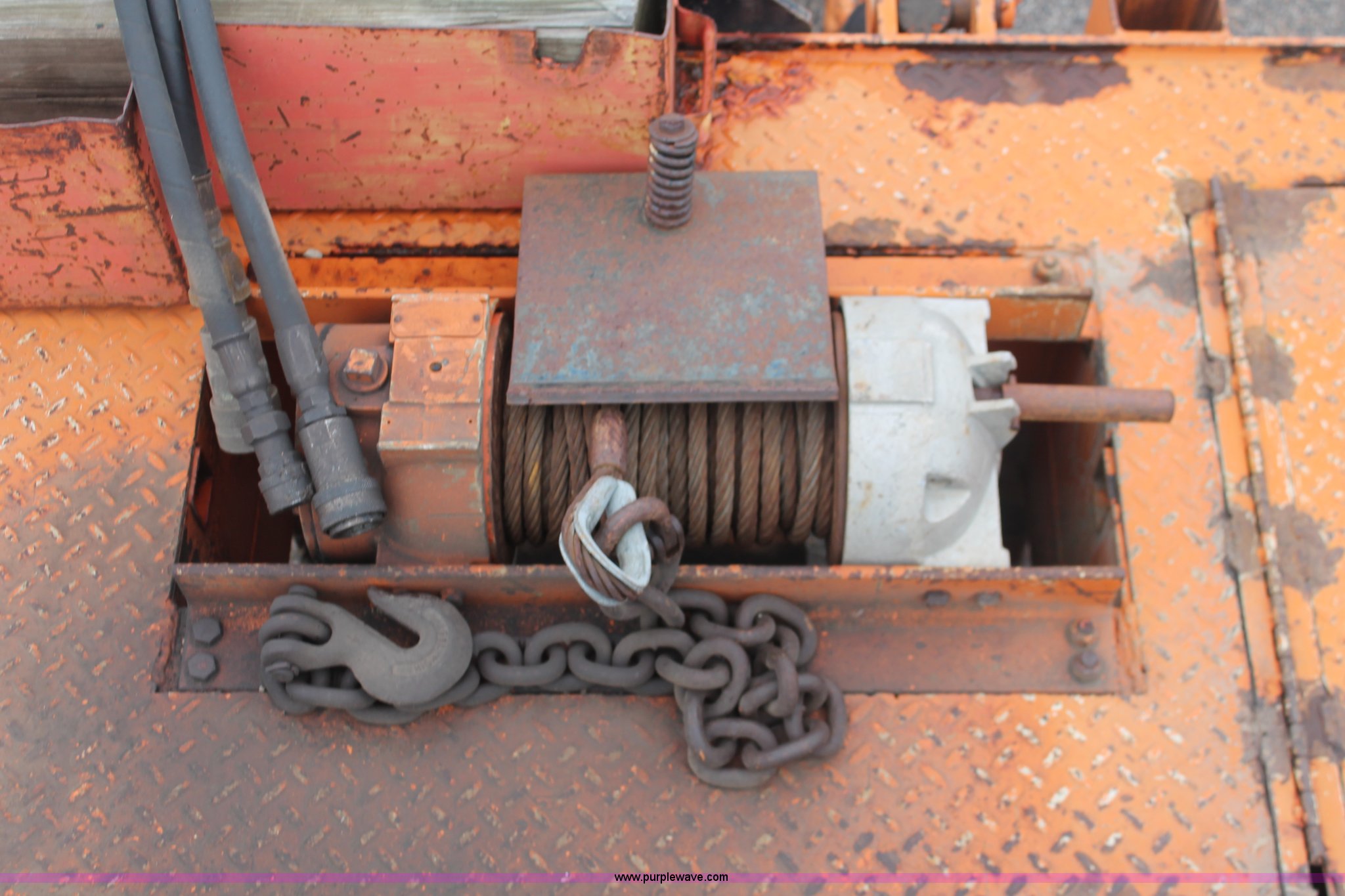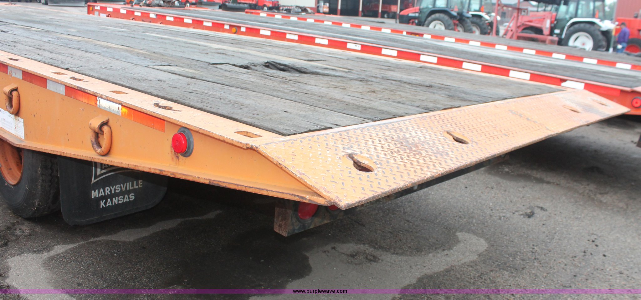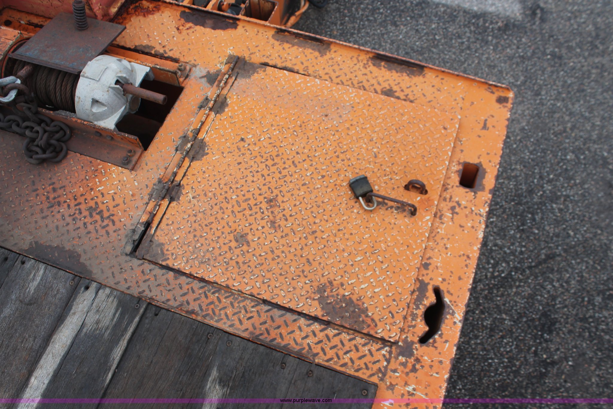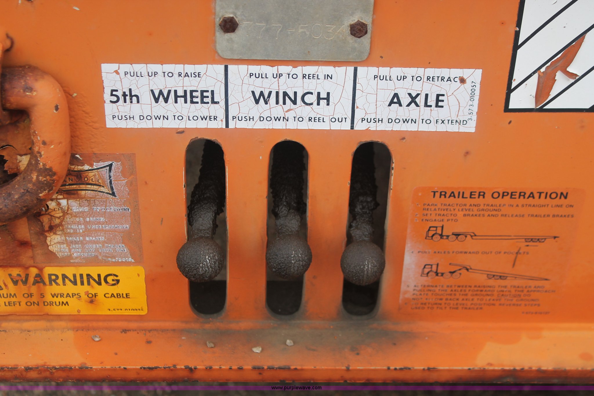 Purple Wave is selling a used Equip. Trailer in Kansas. This item is a 1993 Landoll 345-31 trailer with the following: 15 ton capacity, Wood tilt deck, Braden front mount winch, Recessed floor compartment, Stake pockets, Chain pockets, D-ring tie downs, Tandem slide axle, 10R17.5 tires, Frame strings rusted, KDOT ID 777-5034