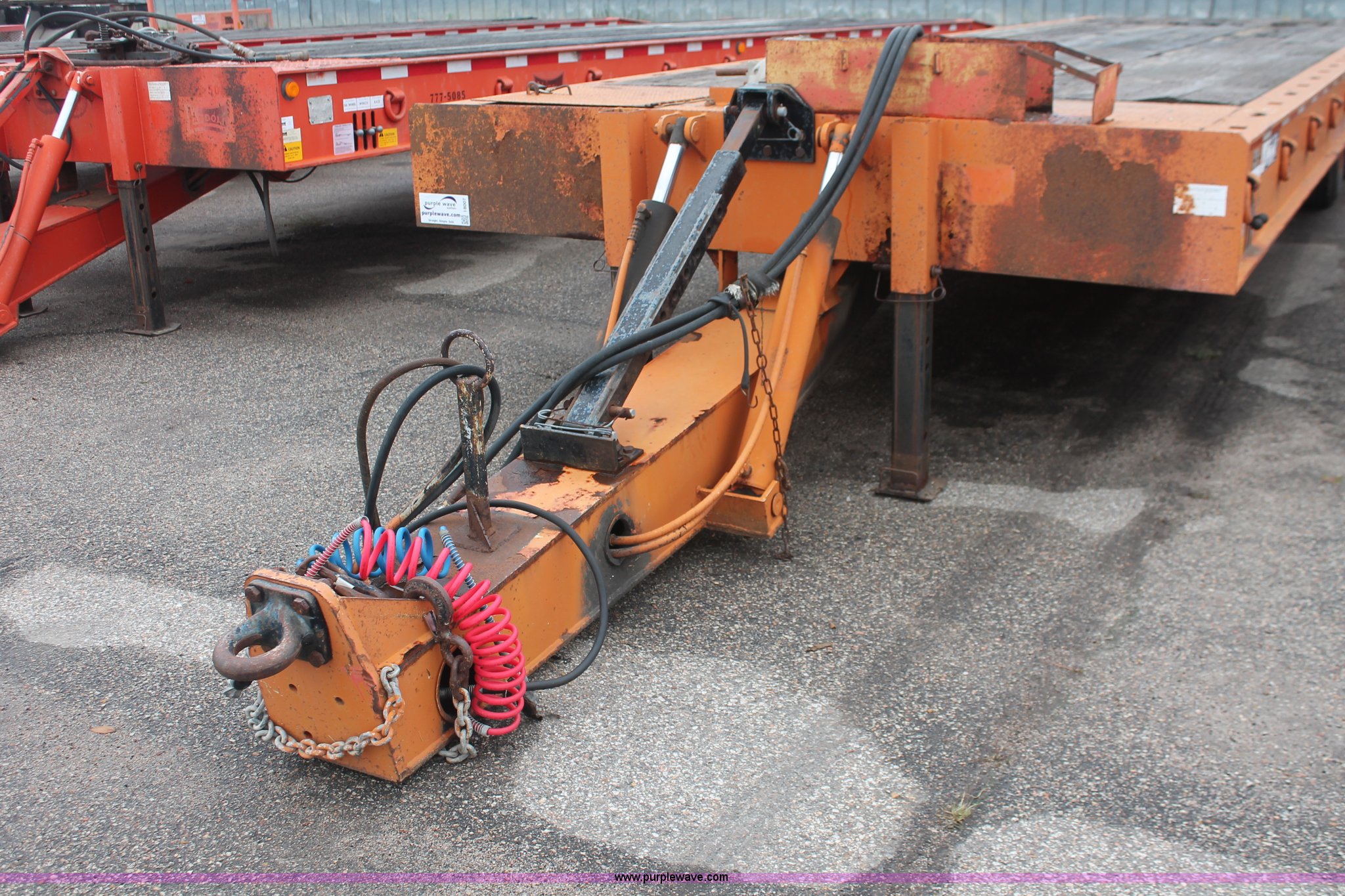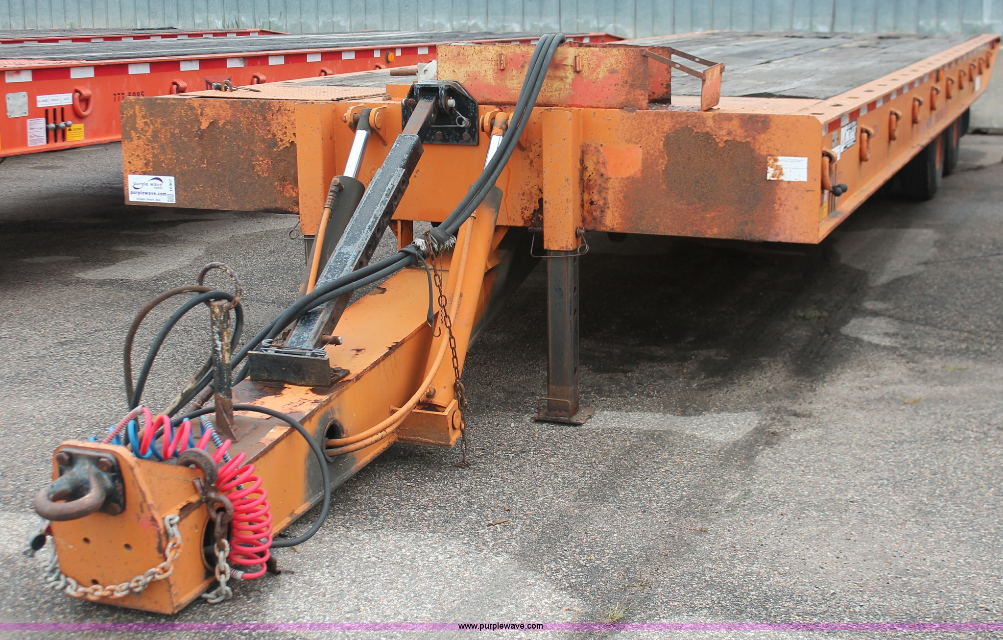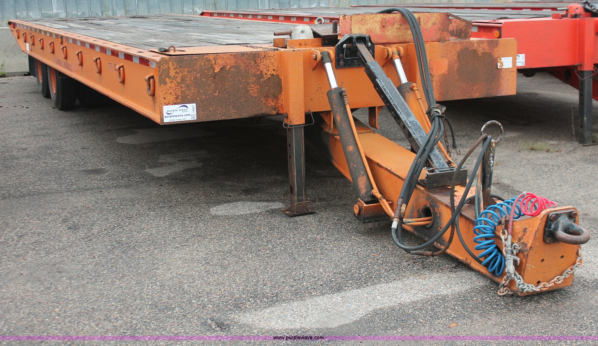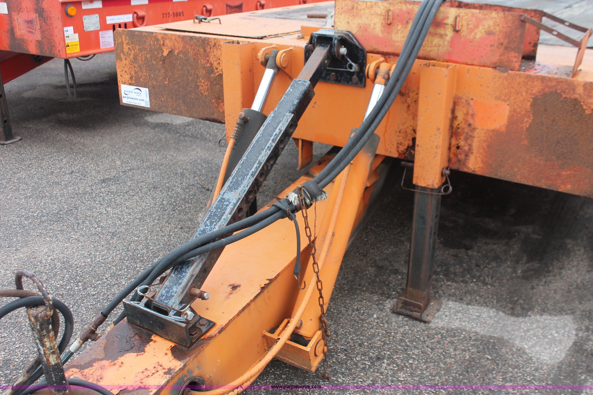 Purple Wave is selling a used Equip. Trailer in Kansas. This item is a 1993 Landoll 345-31 trailer with the following: 15 ton capacity, Wood tilt deck, Braden front mount winch, Recessed floor compartment, Stake pockets, Chain pockets, D-ring tie downs, Tandem slide axle, 10R17.5 tires, Frame strings rusted, KDOT ID 777-5034