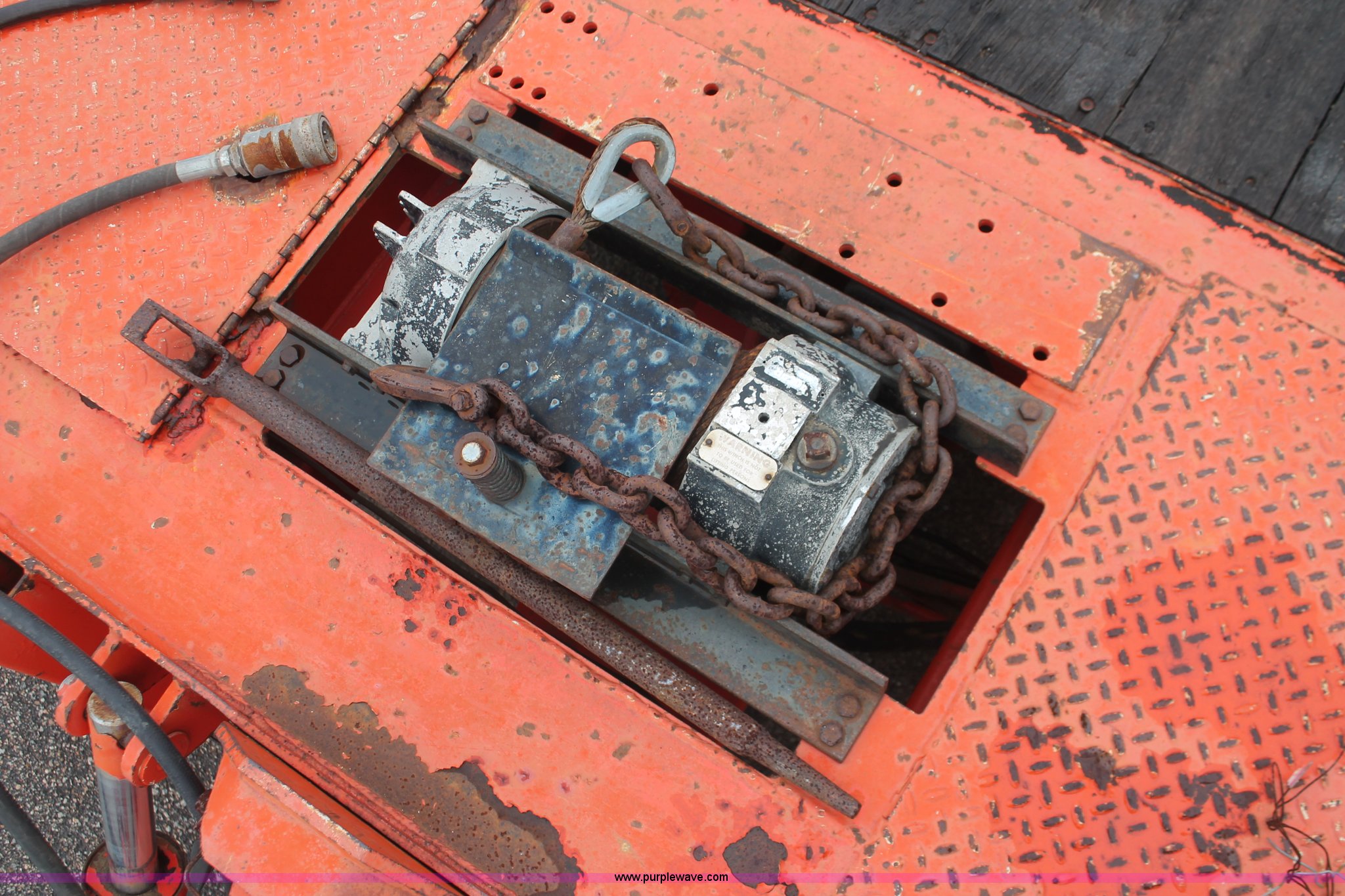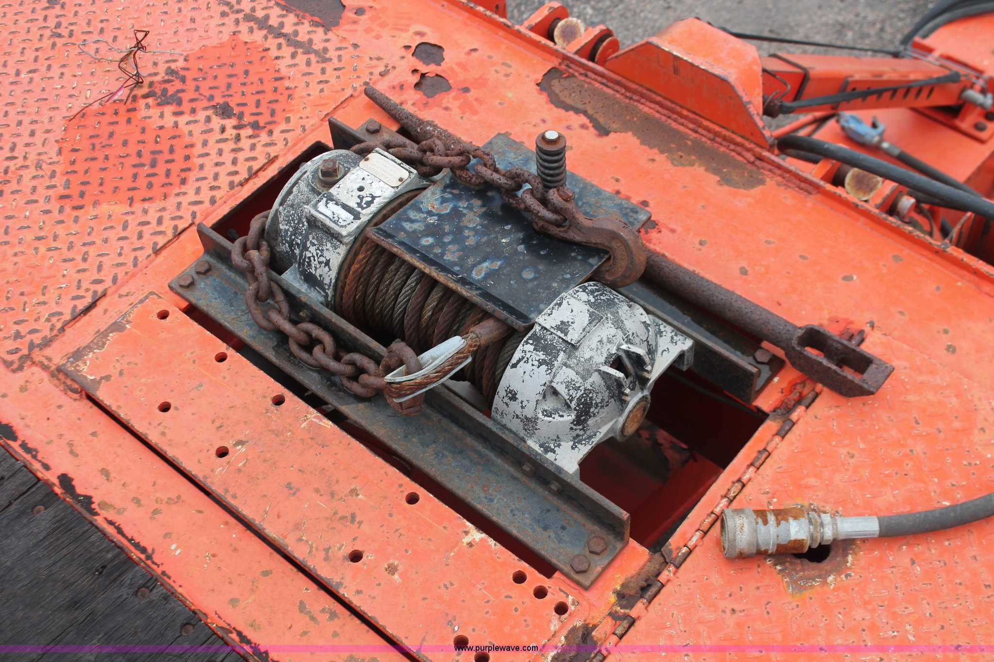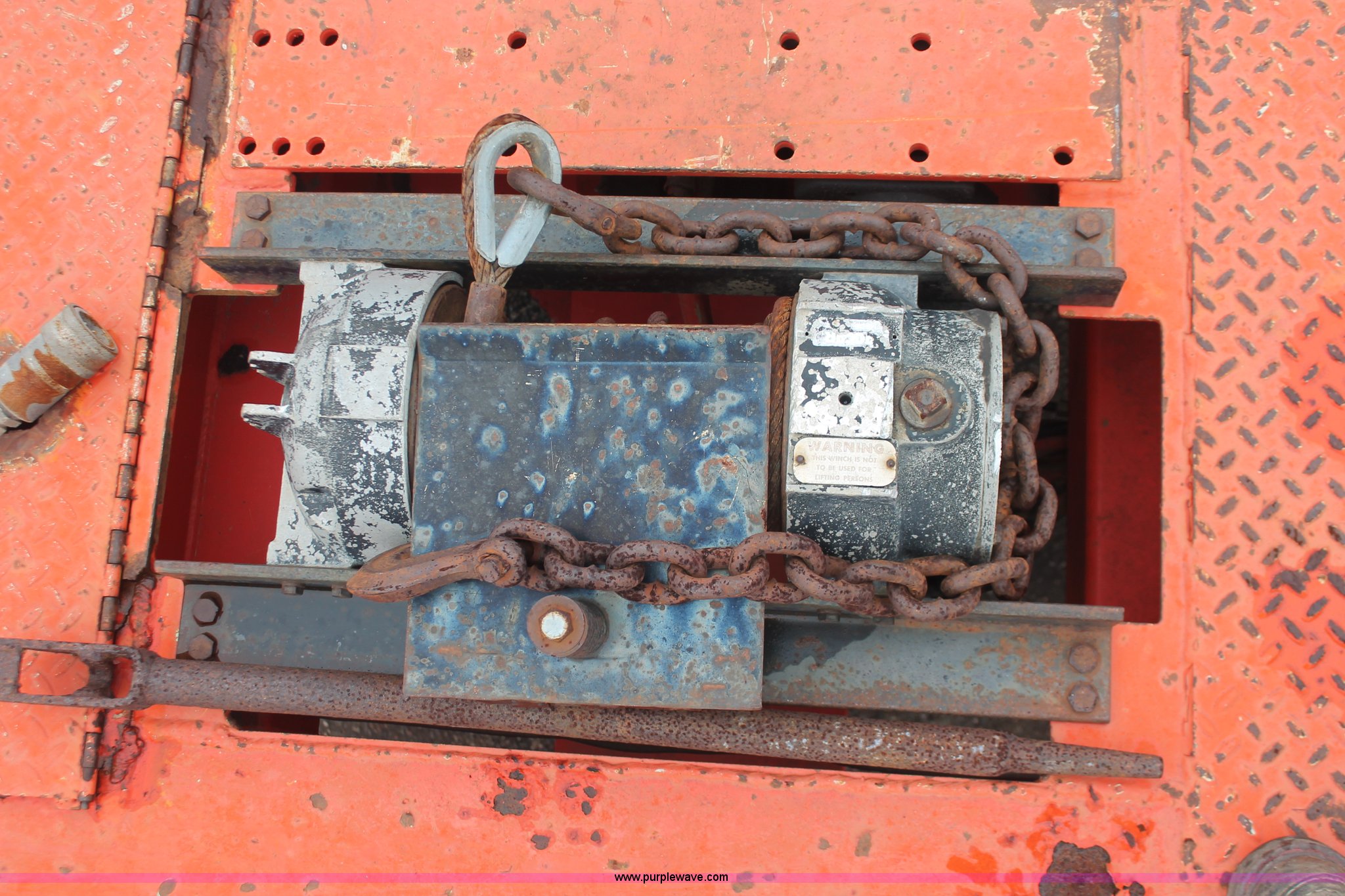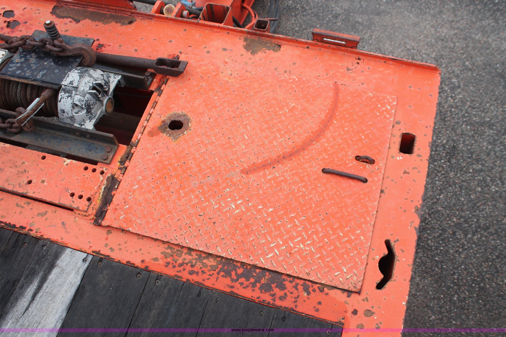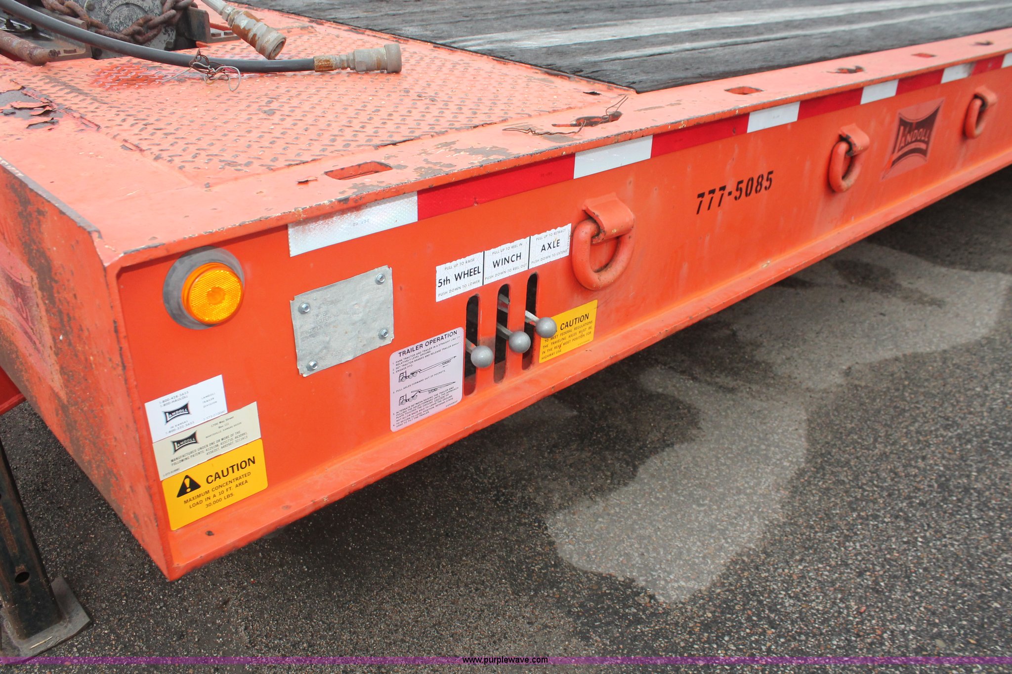 Purple Wave is selling a used Equip. Trailer in Kansas. This item is a 1996 Landoll 345-31 trailer with the following: 15 ton capacity, Wood tilt deck, Braden front mount winch, Recessed floor compartment, Stake pockets, Chain pockets, D-ring tie downs, Tandem slide axle, 10R17.5 tires, Frame strings rusted, Deck damaged, KDOT ID 777-5085