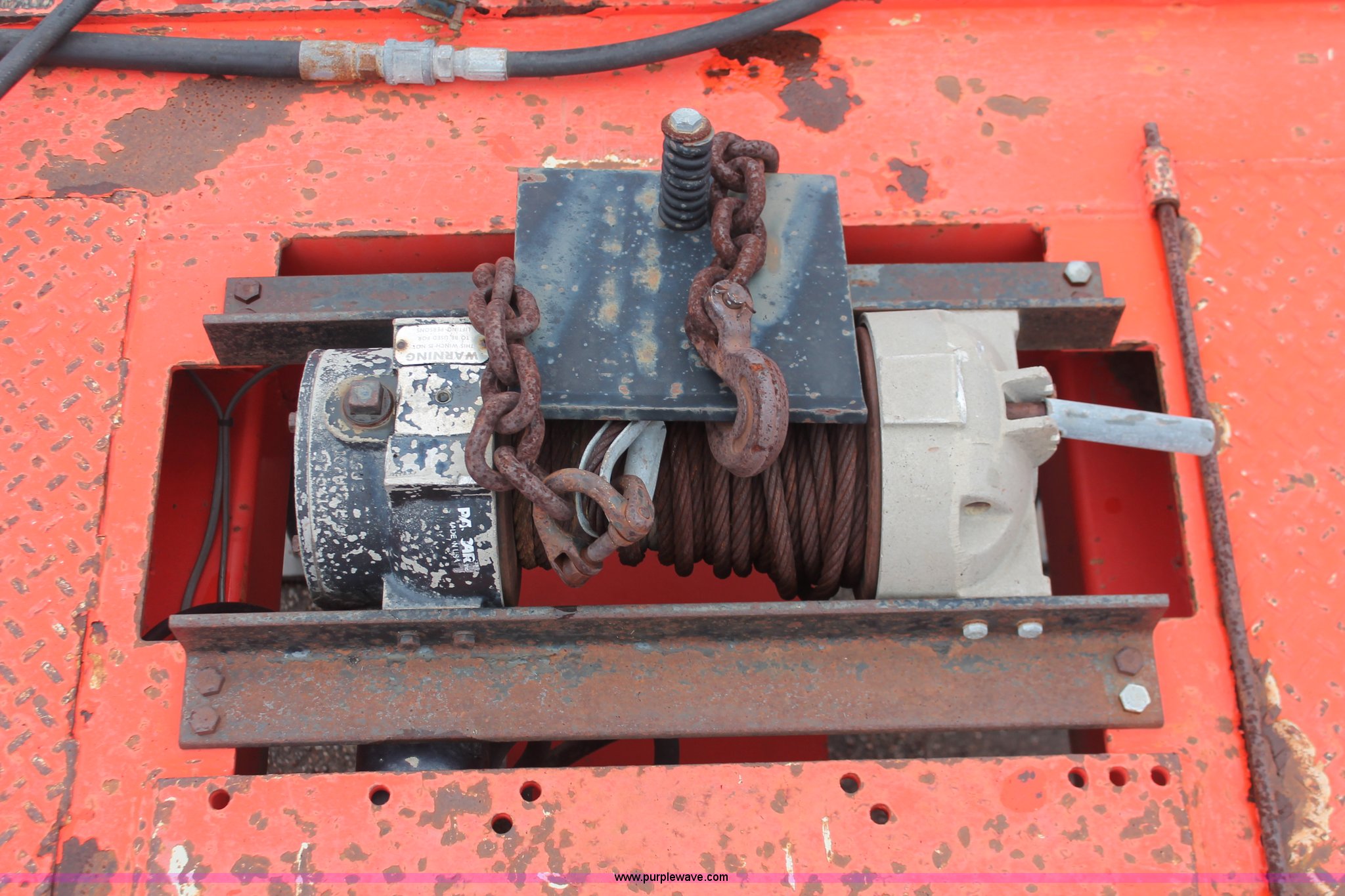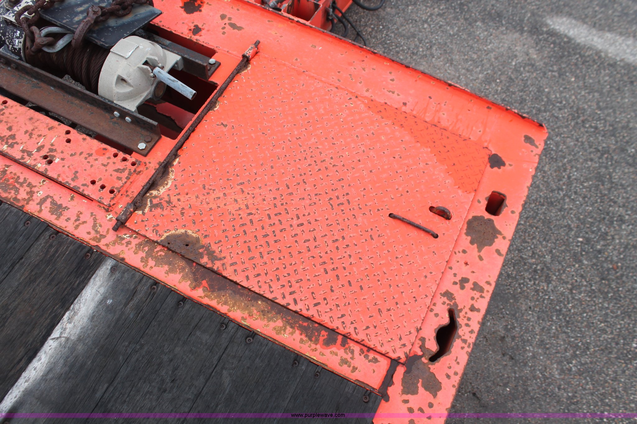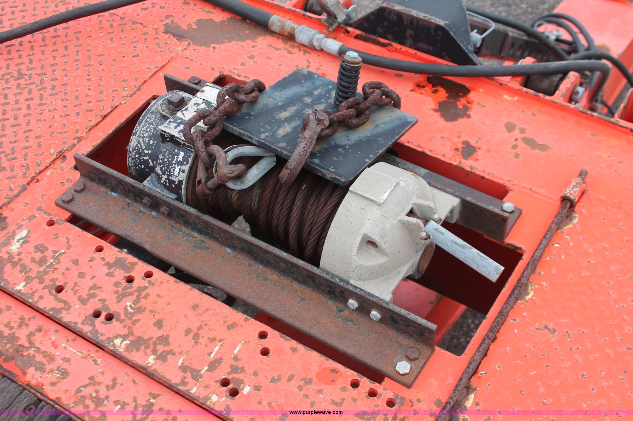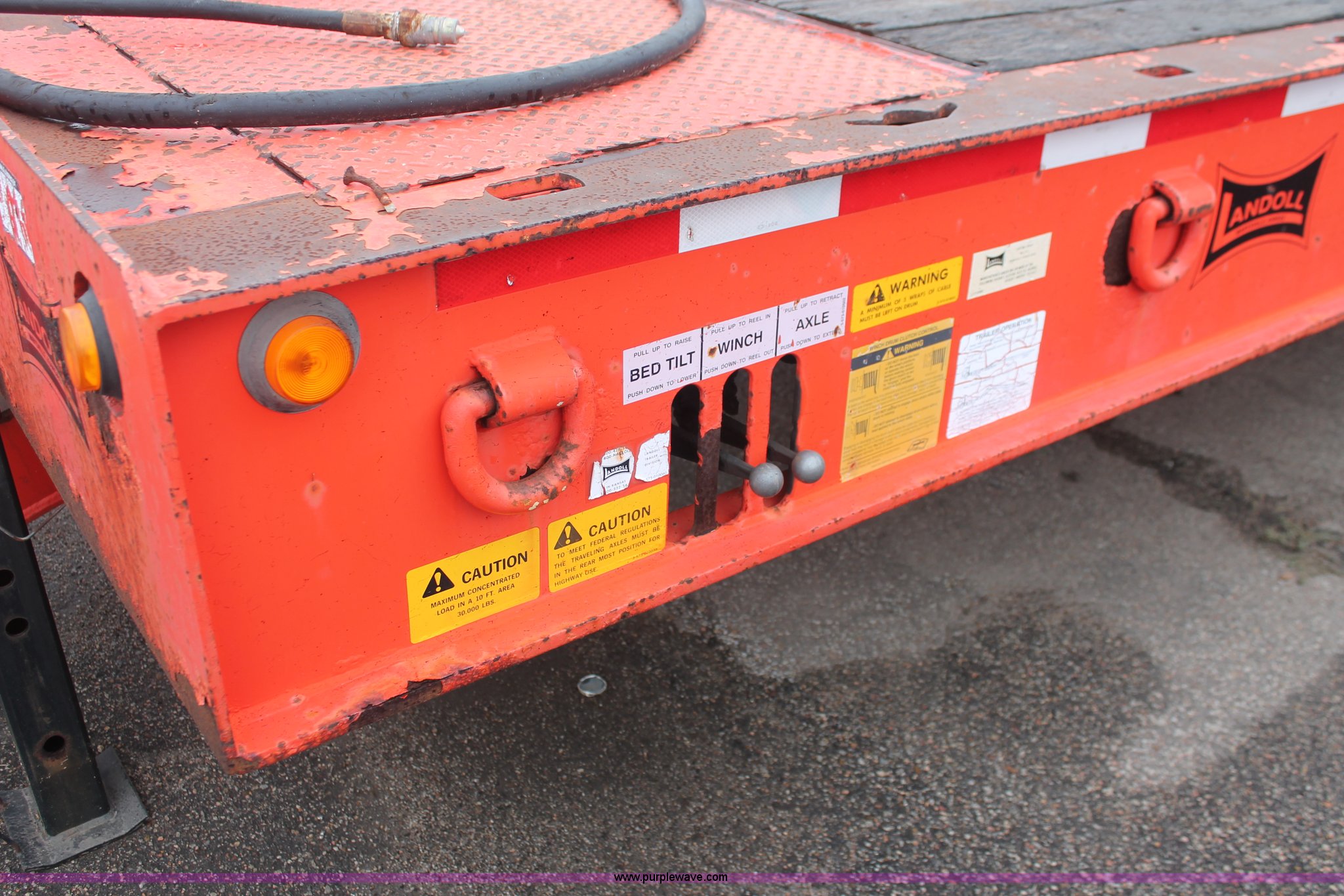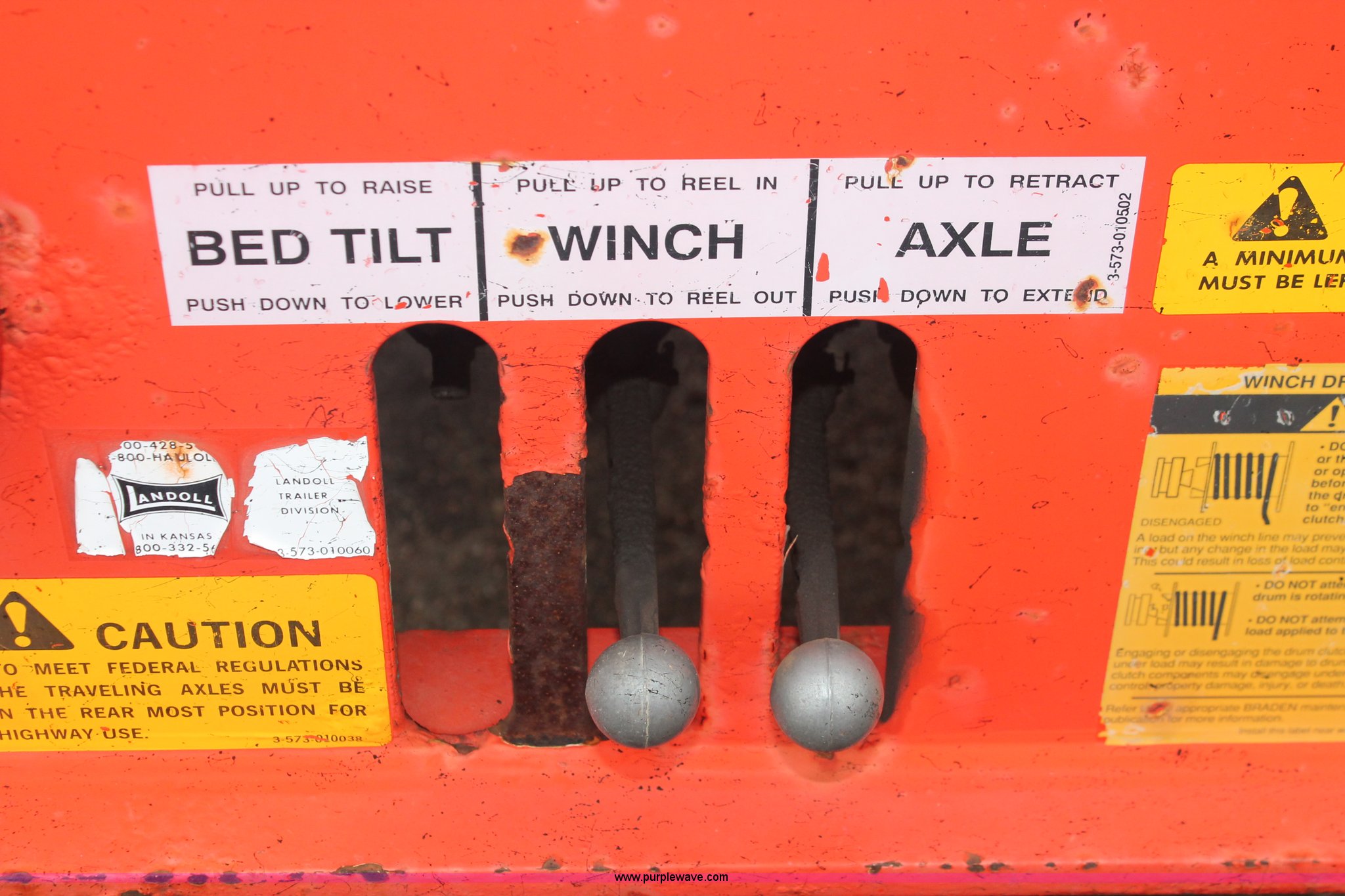 Purple Wave is selling a used Equip. Trailer in Kansas. This item is a 1998 Landoll 345-31 trailer with the following: 15 ton capacity, Wood tilt deck, Braden front mount winch, Recessed floor compartment, Stake pockets, Chain pockets, D-ring tie downs, Tandem slide axle, 10R17.5 tires, Frame strings rusted, KDOT ID 777-5057