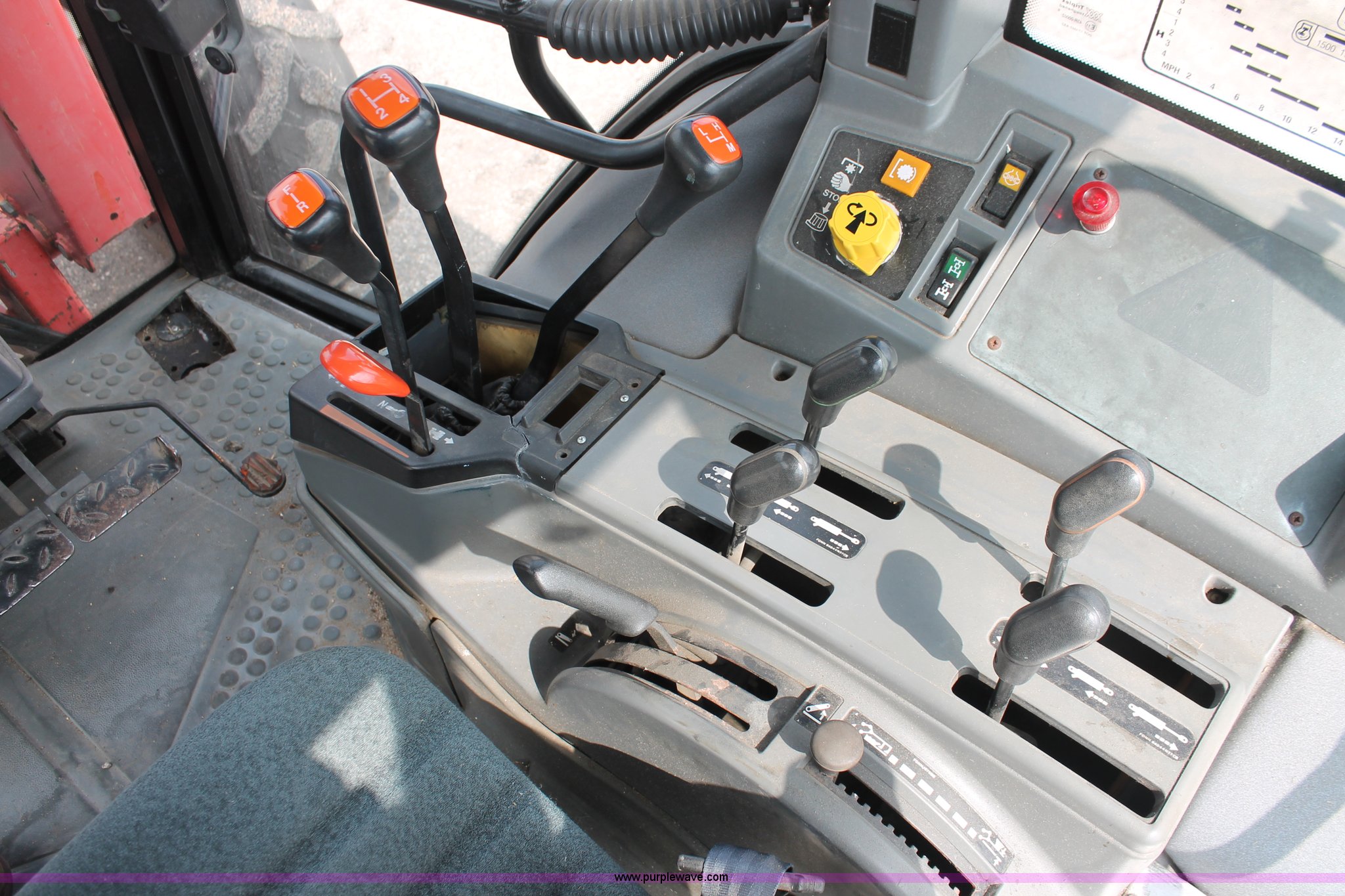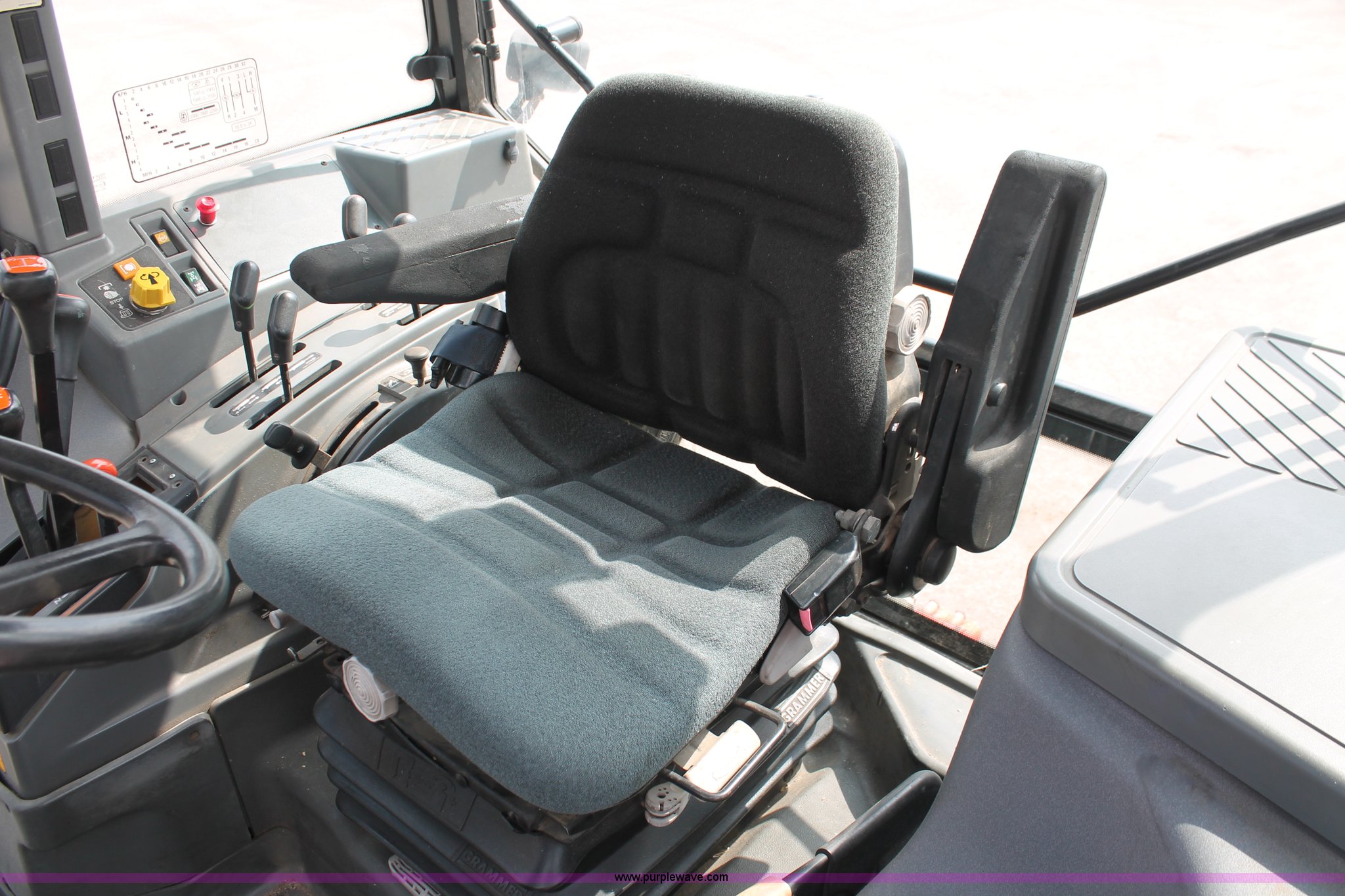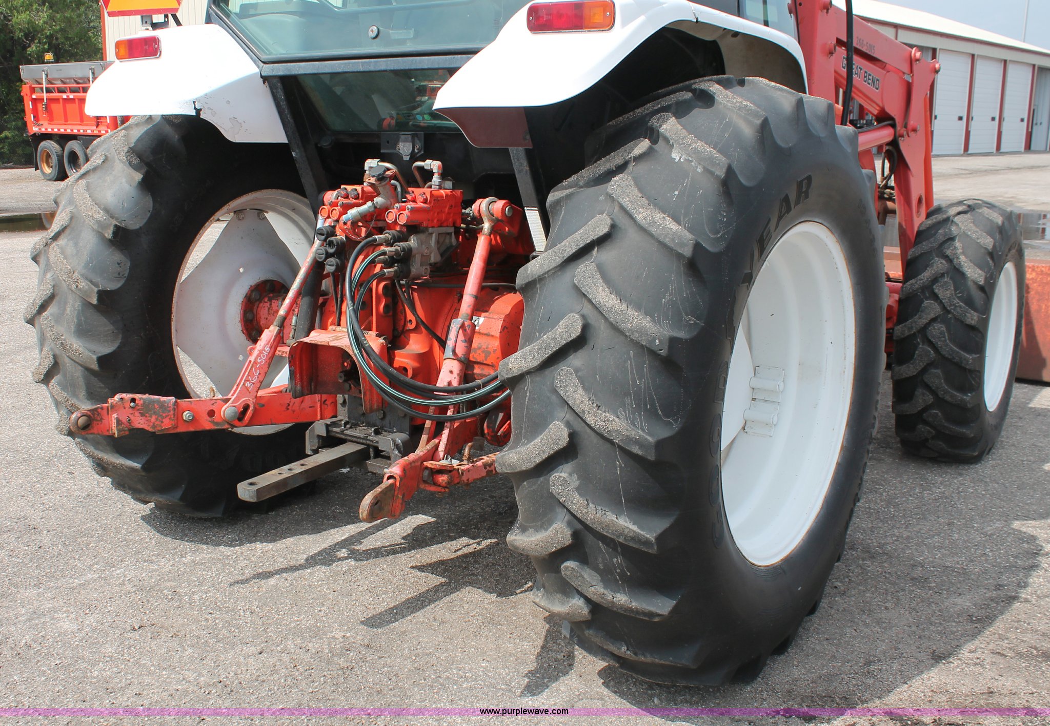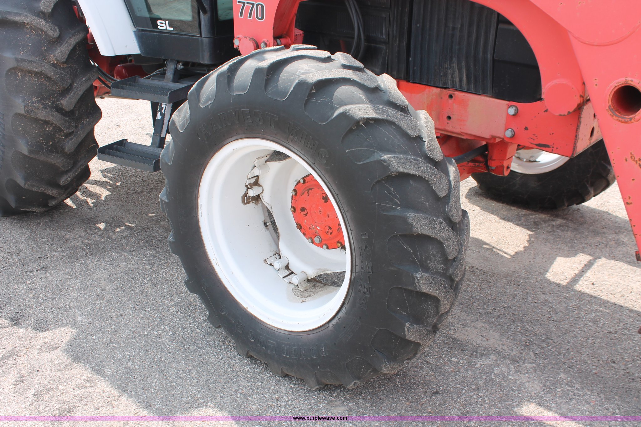 Purple Wave is selling a used Tractor in Kansas. This item is a 1995 Ford New Holland 7740 MFWD tractor with the following: 5,261 hours on meter, New Holland four cylinder diesel engine, 72 HP, Serial PA592273-5M07, Powershift three range transmission, 12F-12R gears, Serial 5M08B, AC and heat, AM/FM, Air suspension seat, Tilt steering wheel, Shades and visors, Tip out side and rear windows, Great Bend 770 loader, 8' bucket, Bolt-on edge, Quick attach, Three point, Draw bar, Auxiliary outlet, 540 PTO, (6) rear hydraulic remotes, (2) capped, 14.9-24 front tires, 18.4-34 rear tires, Paint faded and scratched, Battery dead, Serial 021186B, KDOT ID 366-5015