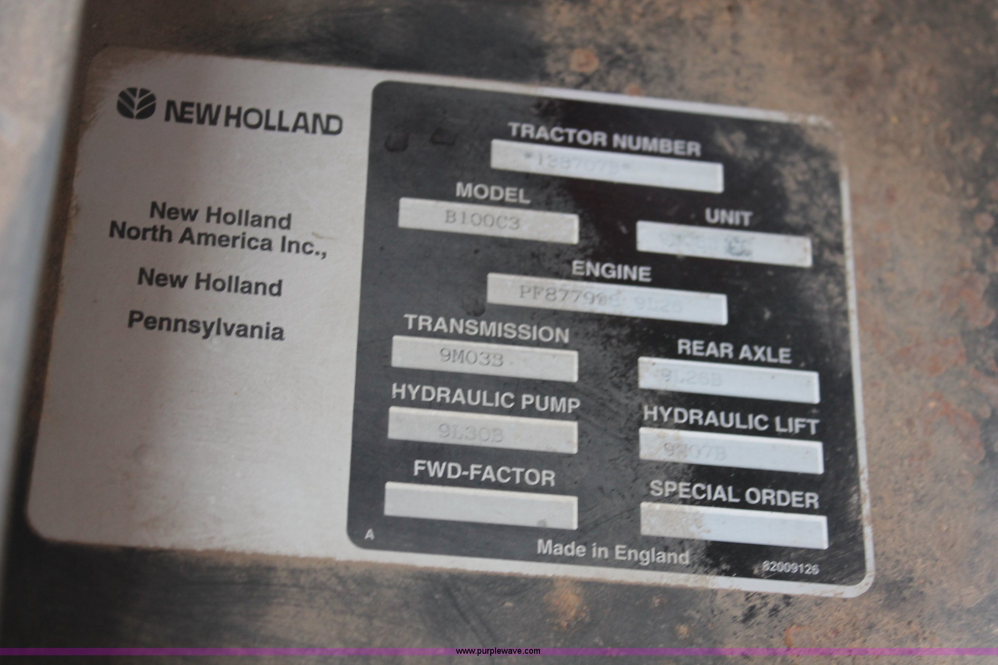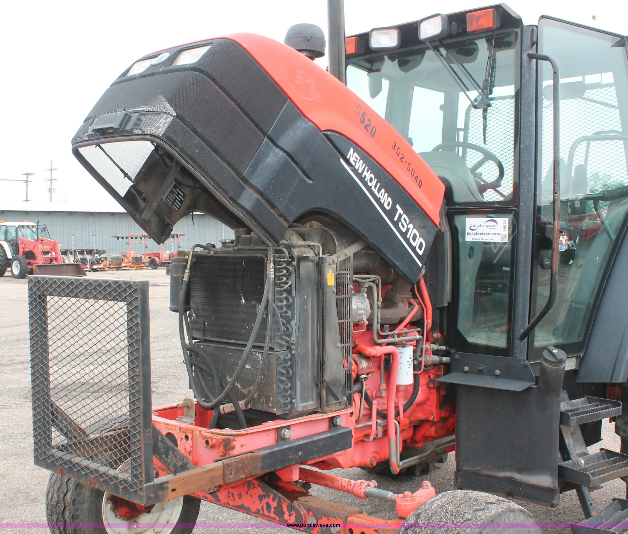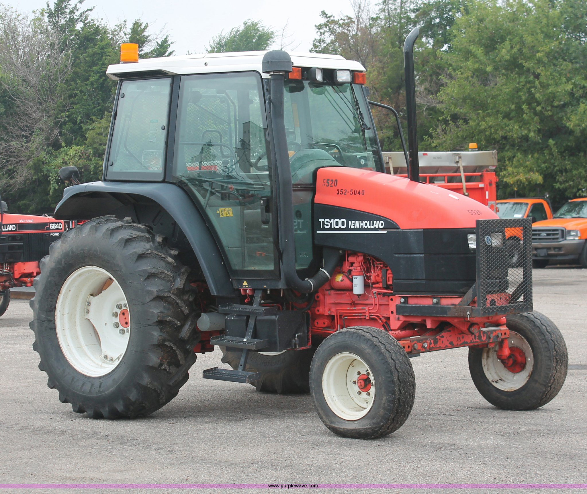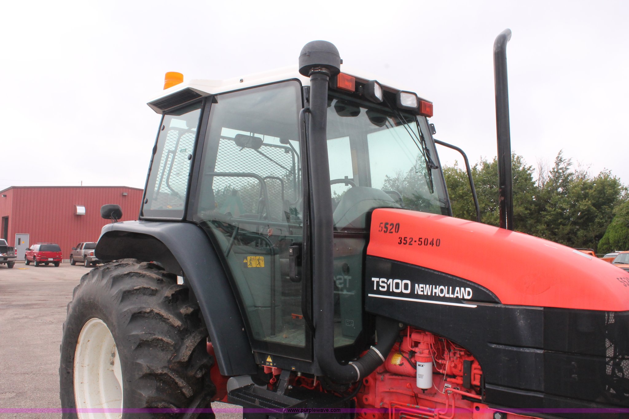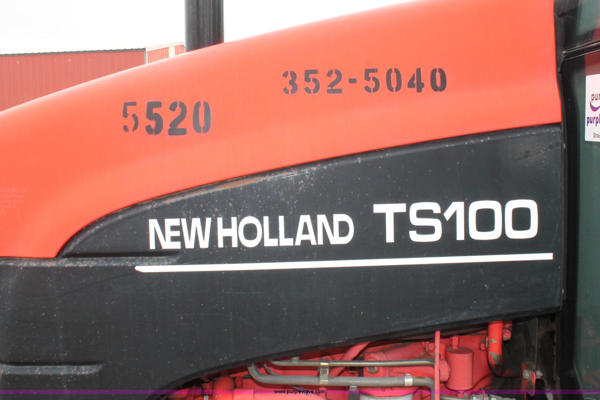 Purple Wave is selling a used Tractor in Kansas. This item is a 1999 Ford New Holland TS100 tractor with the following: 5,269 hours on meter, Genesis 5.0L four cylinder diesel engine, Turbocharger, 100HP, Synchroshift transmission, 12F/12R, AC and heat, AM/FM, Air suspension seat, Tilt steering wheel, Shades and visors, Rear window cage protection, Tip out side and rear windows, Three point, Unattached, Draw bar, Auxiliary outlet, 540/1000 PTO, 80 PTO HP, (4) rear hydraulic remotes, 11L-16SL front tires, 18.4-30 rear tires, Battery dead, Tires worn, Paint faded and scratched, Serial 138707B, KDOT ID 352-5040