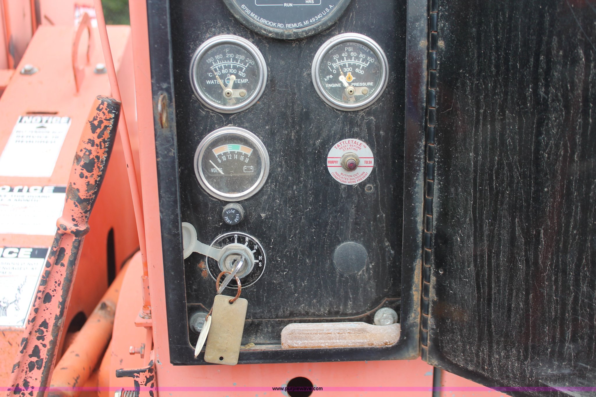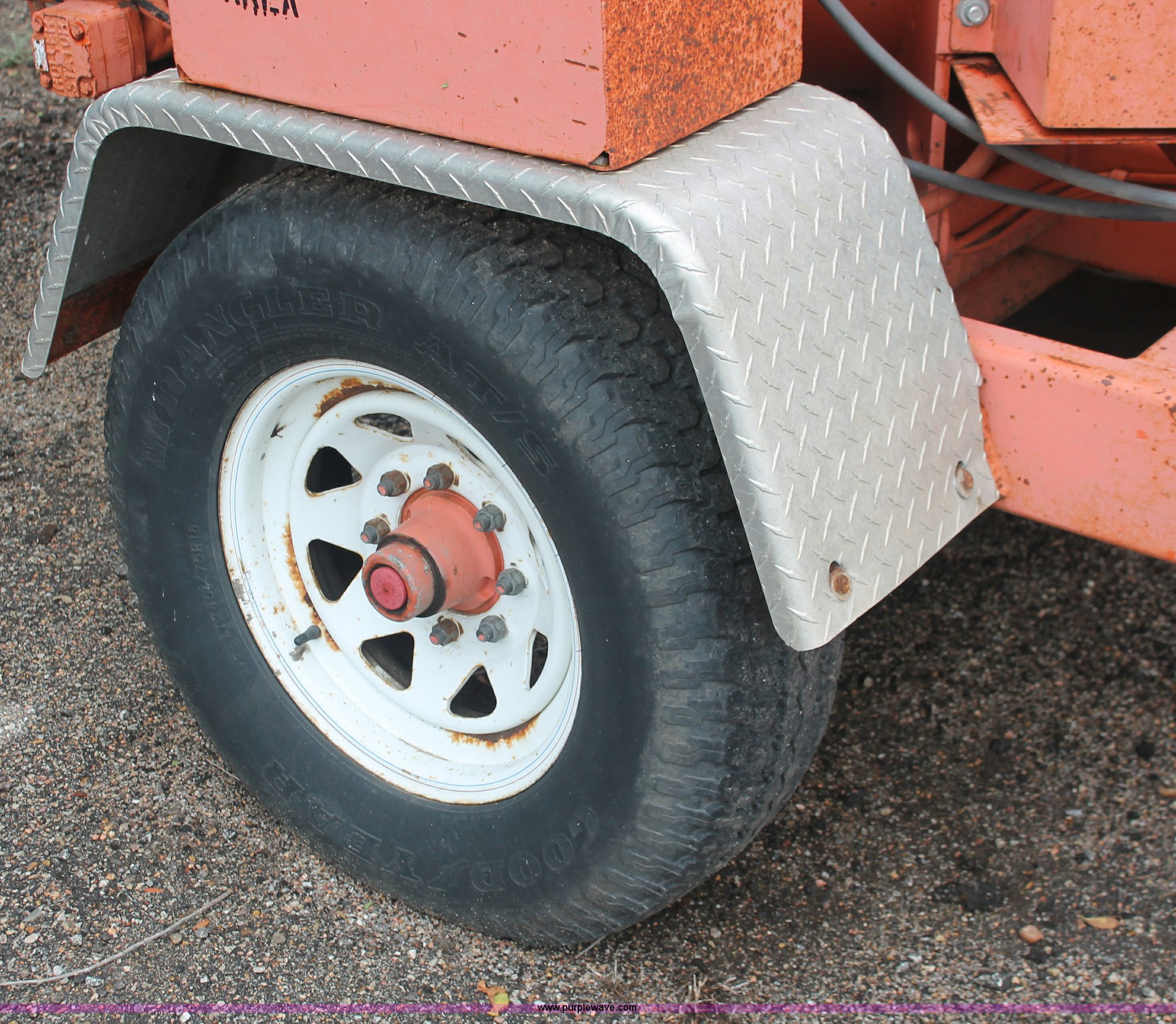 Purple Wave is selling a used Wood Chipper or Stump Grinder in Kansas. This item is a 2001 Brush Bandit 200+ wood chipper with the following: 1,944 hours on meter, Perkins four cylinder diesel engine, Key ignition, Auto HD1300D hand clutch, Approximately 16"W feeder house, 42" feed tray, 360 degree adjustable discharge chute, Single axle trailer, Eight lug 16" wheels, Adjustable height pintle hitch, Seven pin trailer wiring, LT245/75R16 tires, Battery dead, Serial 017154/27185, KDOT ID 442-5021