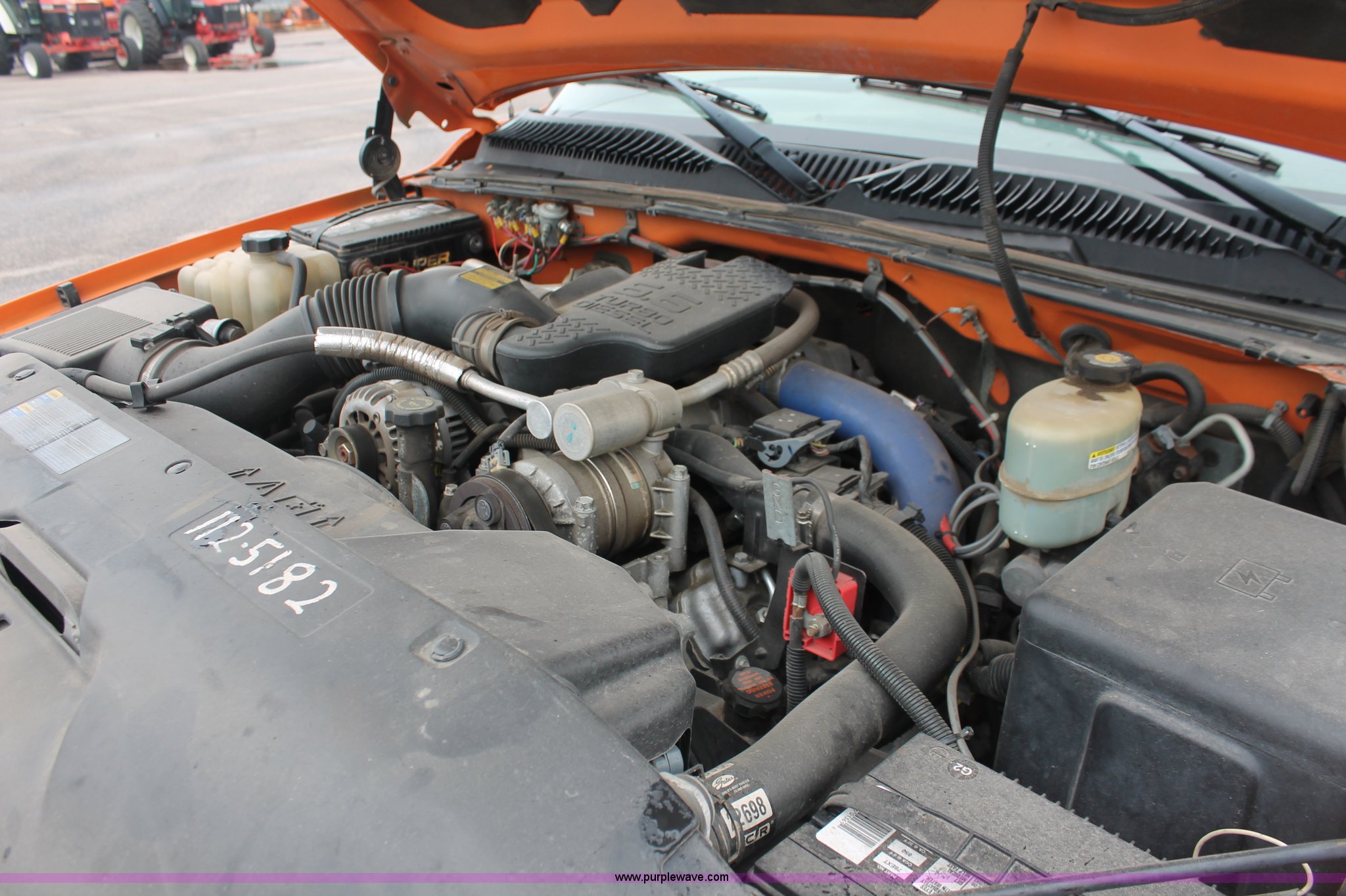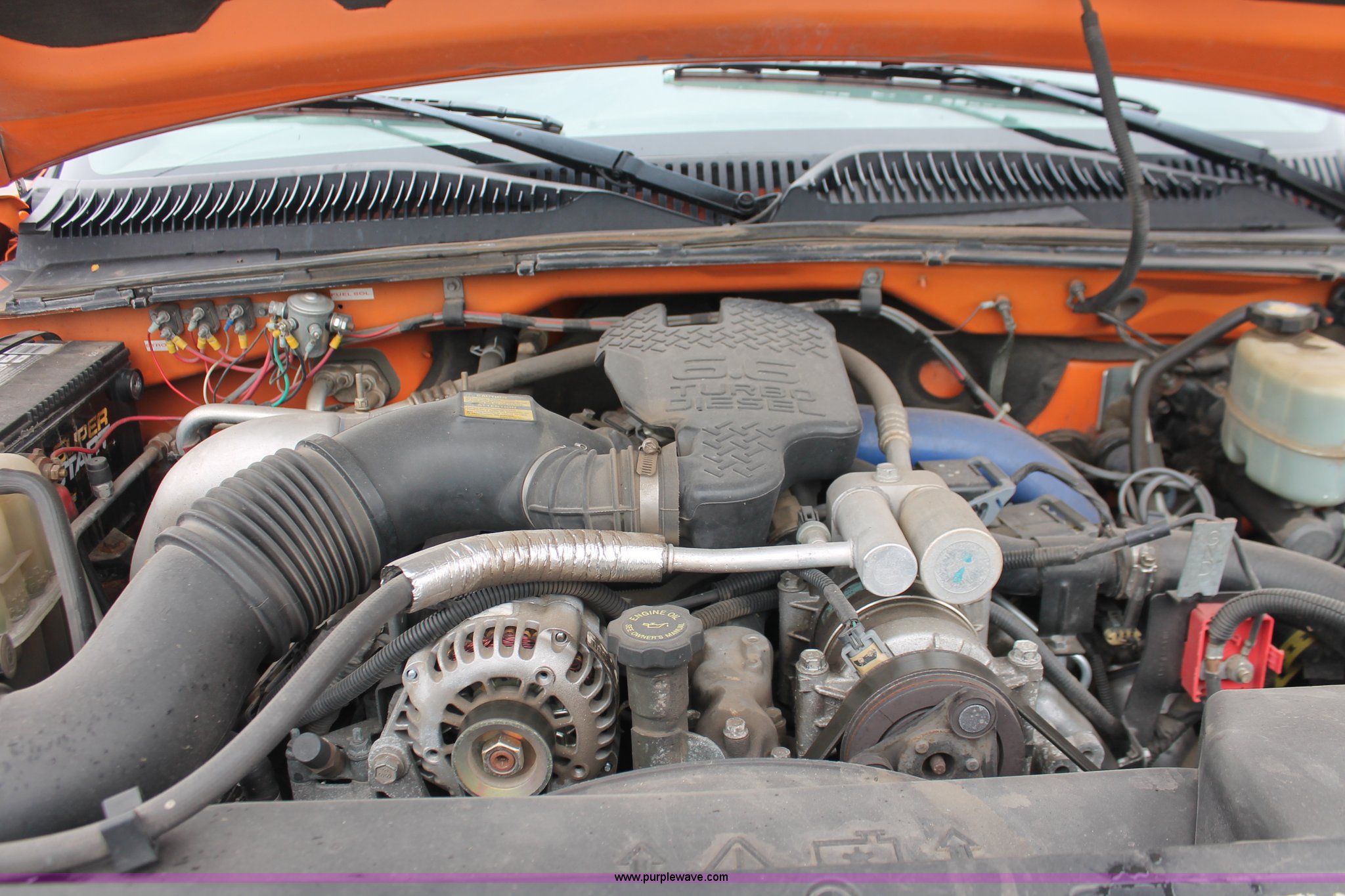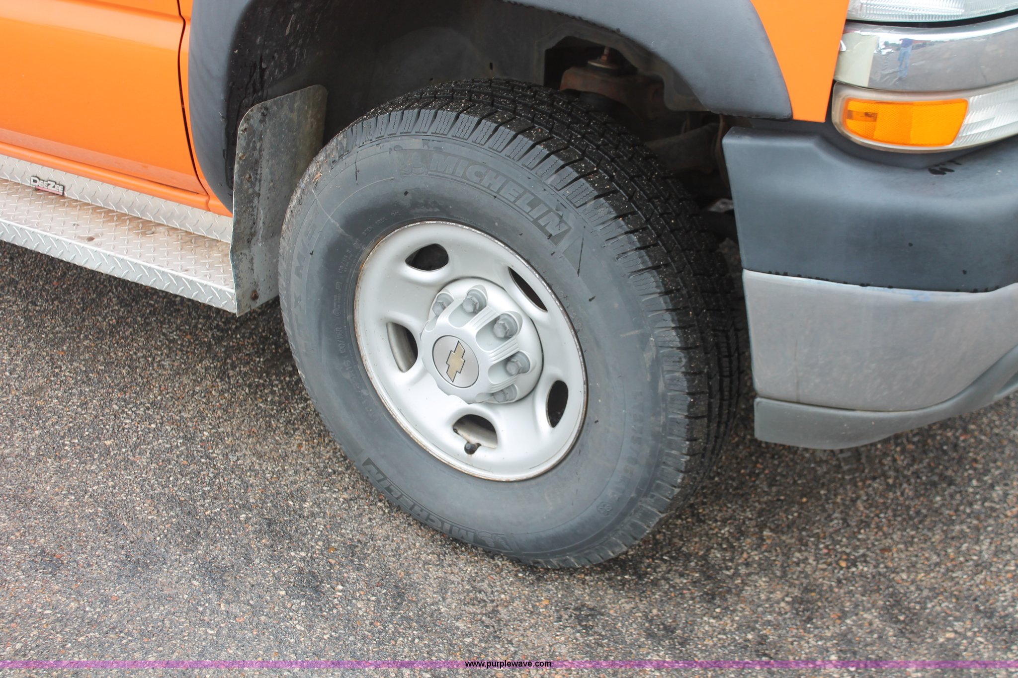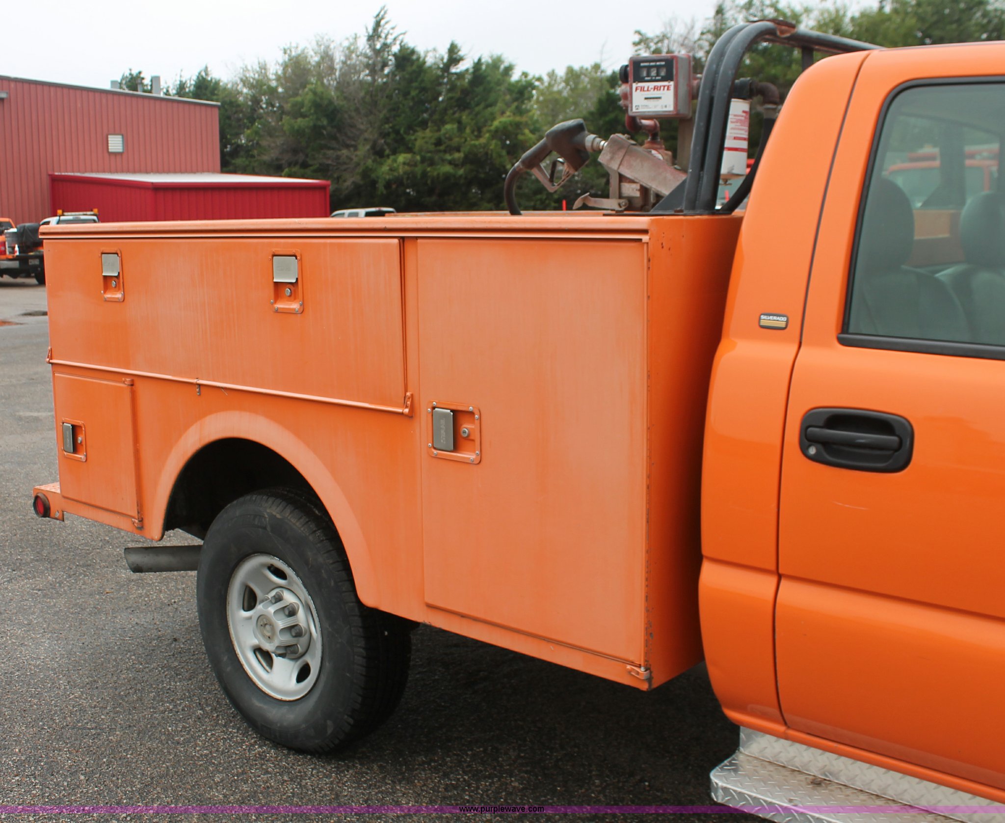 Purple Wave is selling a used Service Truck in Kansas. This item is a 2002 Chevrolet 2500 utility truck with the following: 220,620 miles on odometer, 6.6L V8 OHV 32V turbo diesel engine, Automatic transmission, AC and heat, Tilt, Cruise, AM/FM, Manual windows and locks, Vinyl interior, Stahl utility bed, (6) compartments, Auxiliary fule tank, Fill-Rite pump and meter,, DeeZee running boards, Front tow hooks, Receiver hitch, Trailer wiring, 255/85R16 tires, Paint faded and scratched, KDOT ID 112-5182