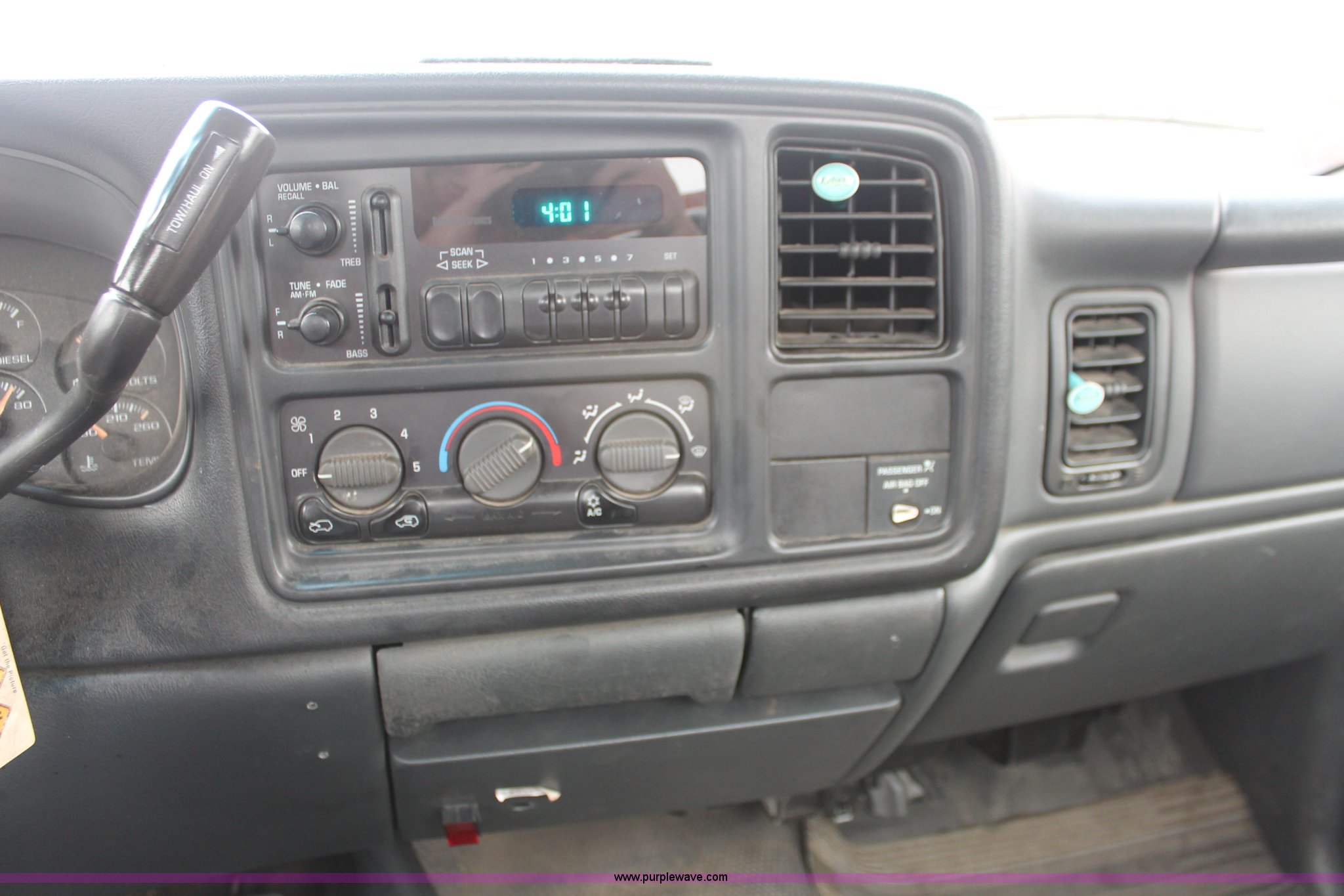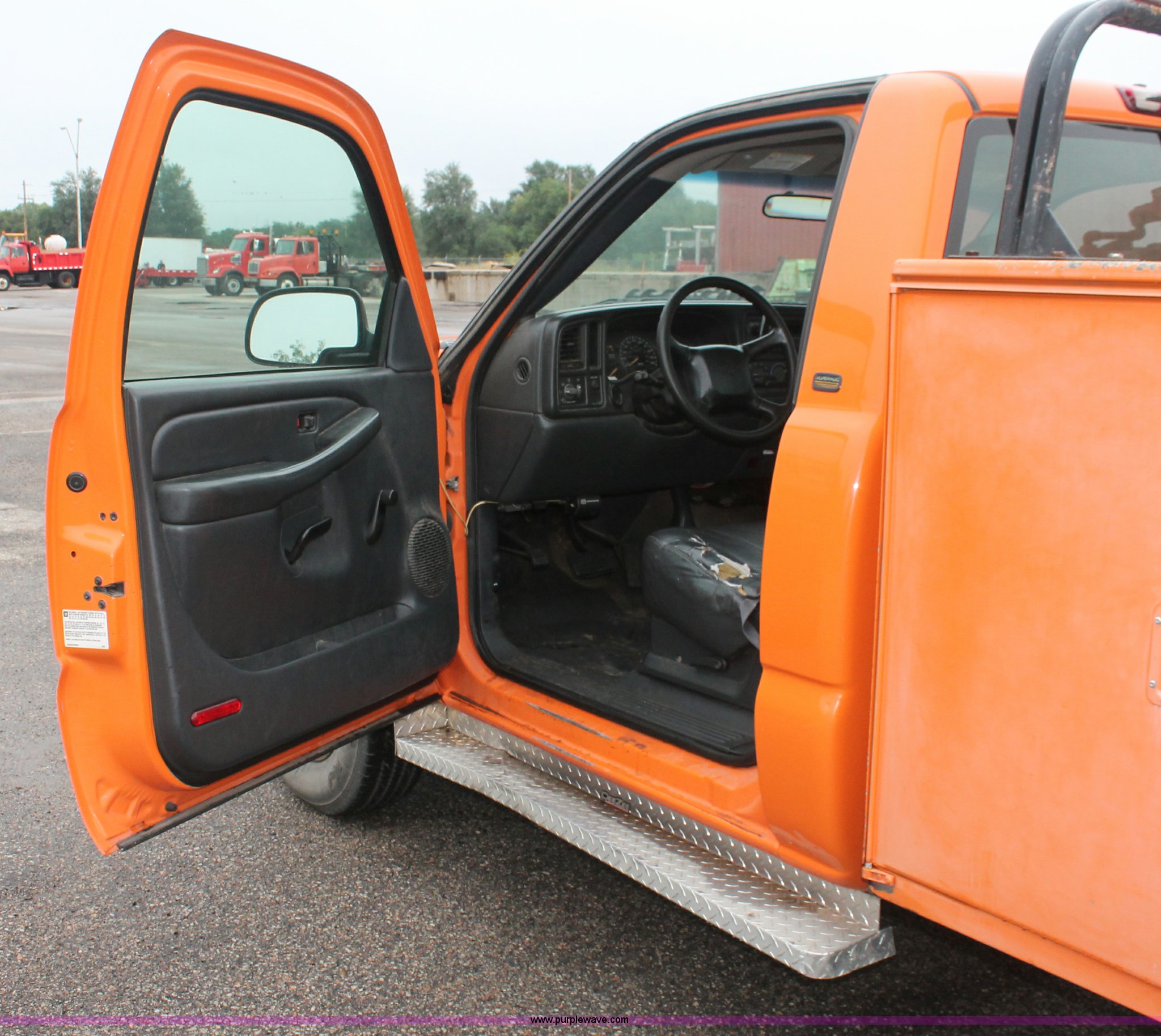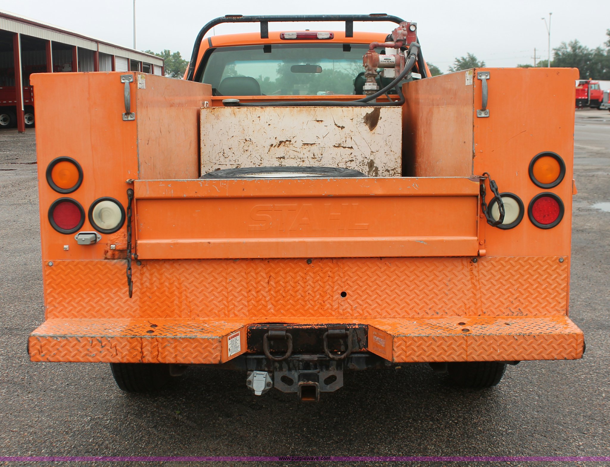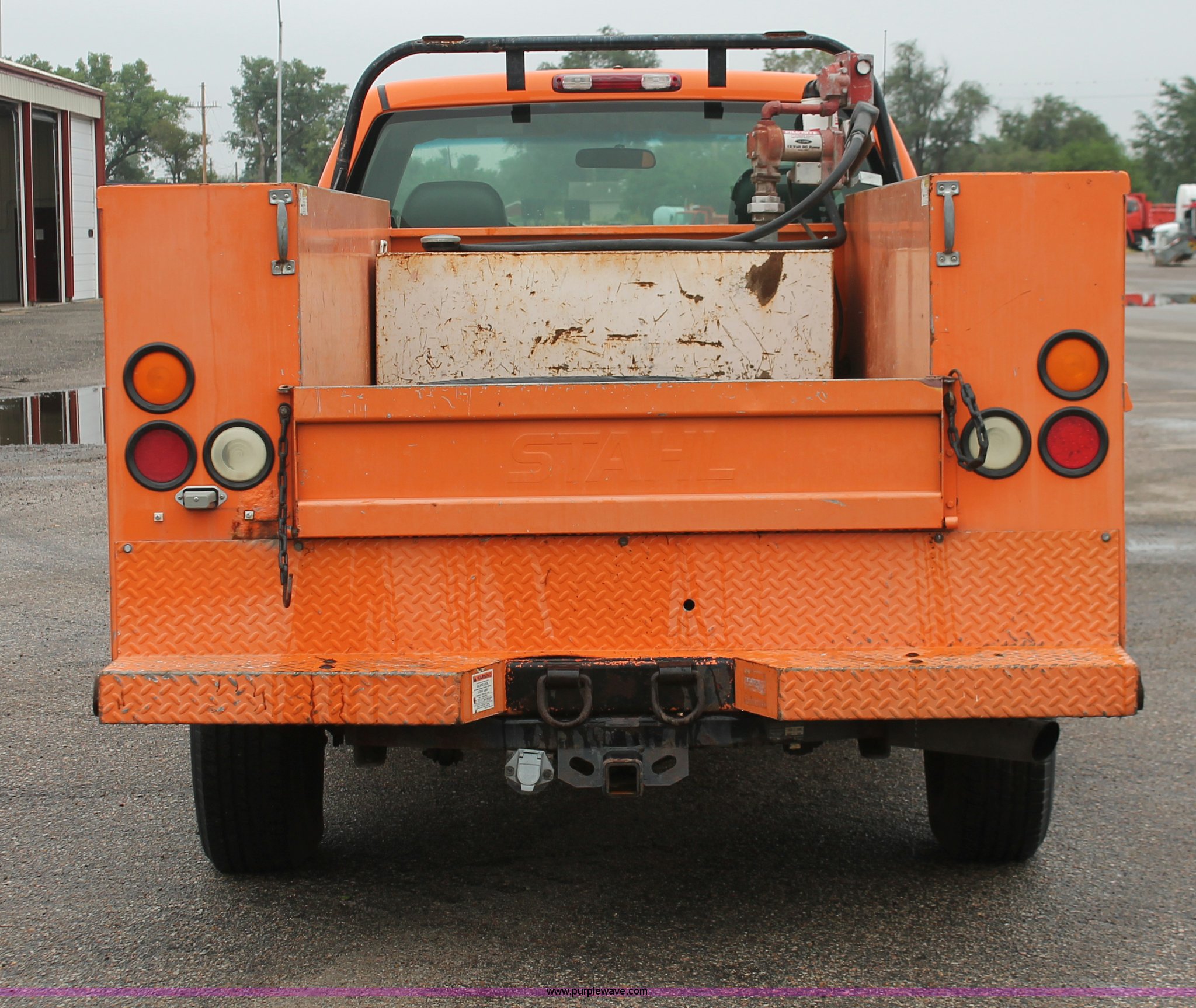 Purple Wave is selling a used Service Truck in Kansas. This item is a 2002 Chevrolet 2500 utility truck with the following: 220,620 miles on odometer, 6.6L V8 OHV 32V turbo diesel engine, Automatic transmission, AC and heat, Tilt, Cruise, AM/FM, Manual windows and locks, Vinyl interior, Stahl utility bed, (6) compartments, Auxiliary fule tank, Fill-Rite pump and meter,, DeeZee running boards, Front tow hooks, Receiver hitch, Trailer wiring, 255/85R16 tires, Paint faded and scratched, KDOT ID 112-5182