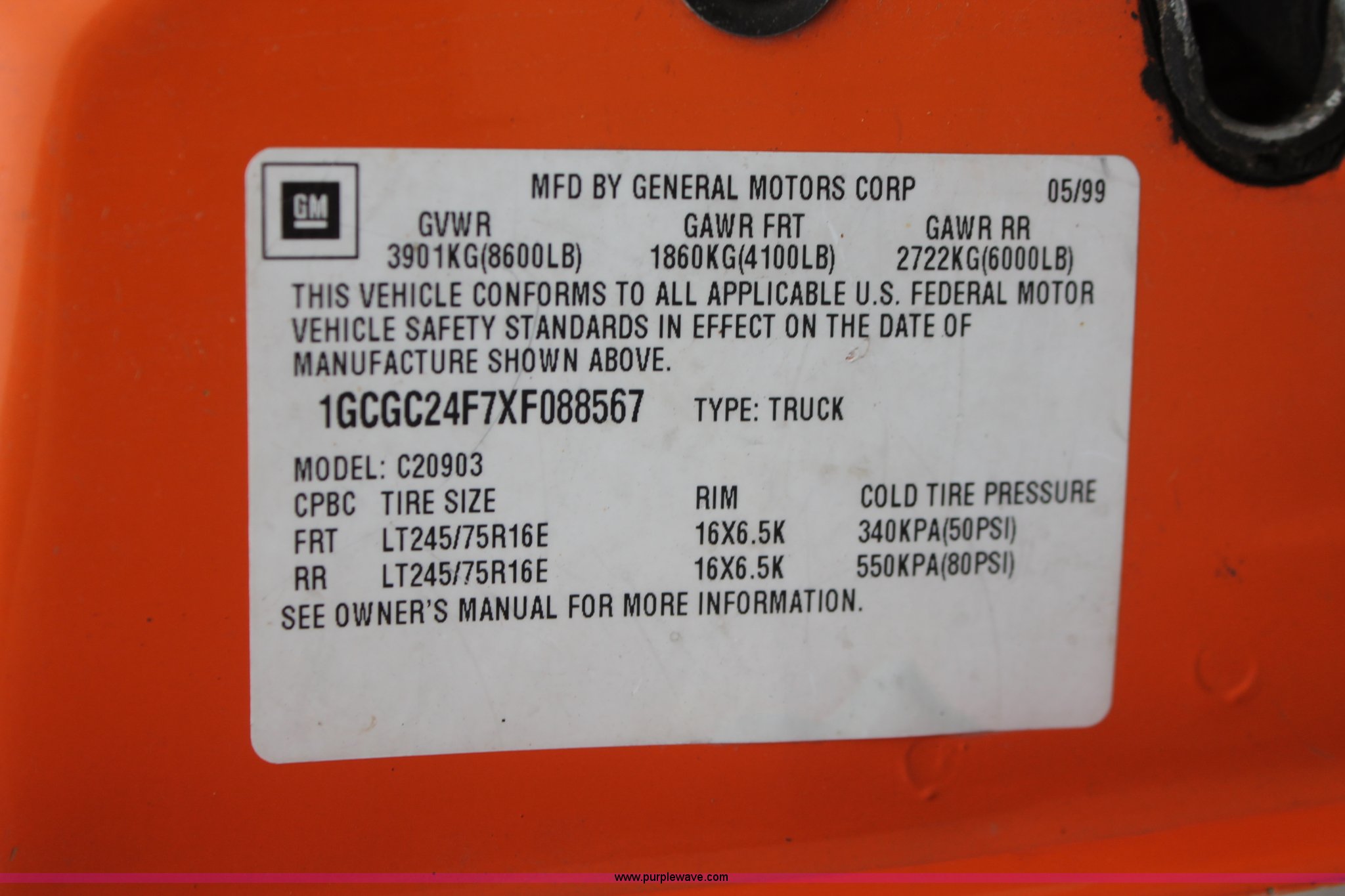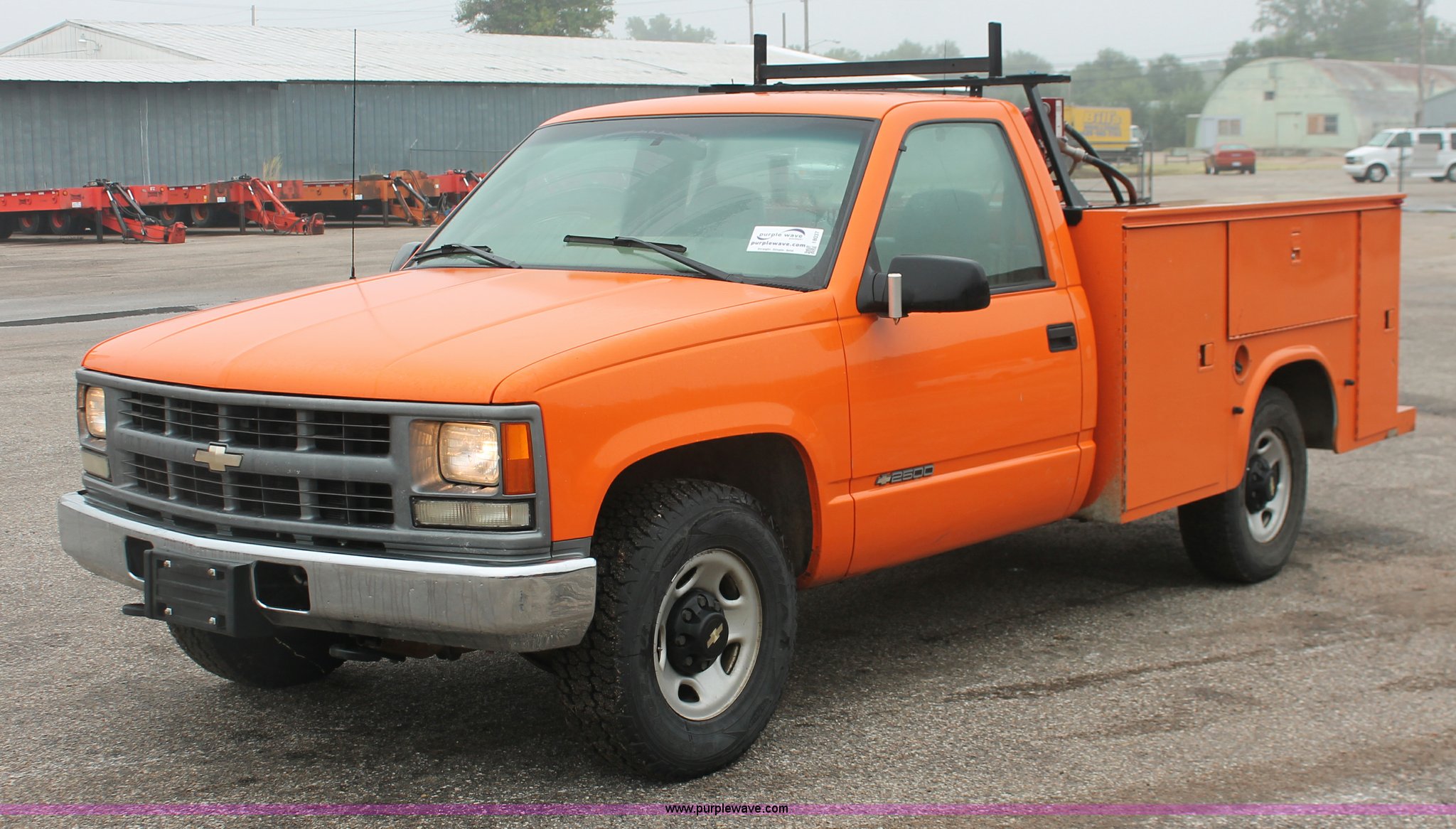 Purple Wave is selling a used 3/4 or 1 Ton Pickup or Van in Kansas. This item is a 1999 Chevrolet 2500 utility truck with the following: 164,596 miles on odometer, 6.5L V8 OHV 16V turbo diesel engine, Automatic transmission, AC and heat, AM/FM, Manual windows and locks, Vinyl interior, Knapeide utility bed, 8'L x 78"W, Step-up bumper, Diamond plate floor, (6) side tool compartments, 140 gallon fuel tank, Metered fuel pump, Hose, Nozzle, Pintle/ball hitch, Trailer wiring, LT245/75R16 tires, Interior cosmetic damage, Paint faded and scratched, KDOT ID 112-5039