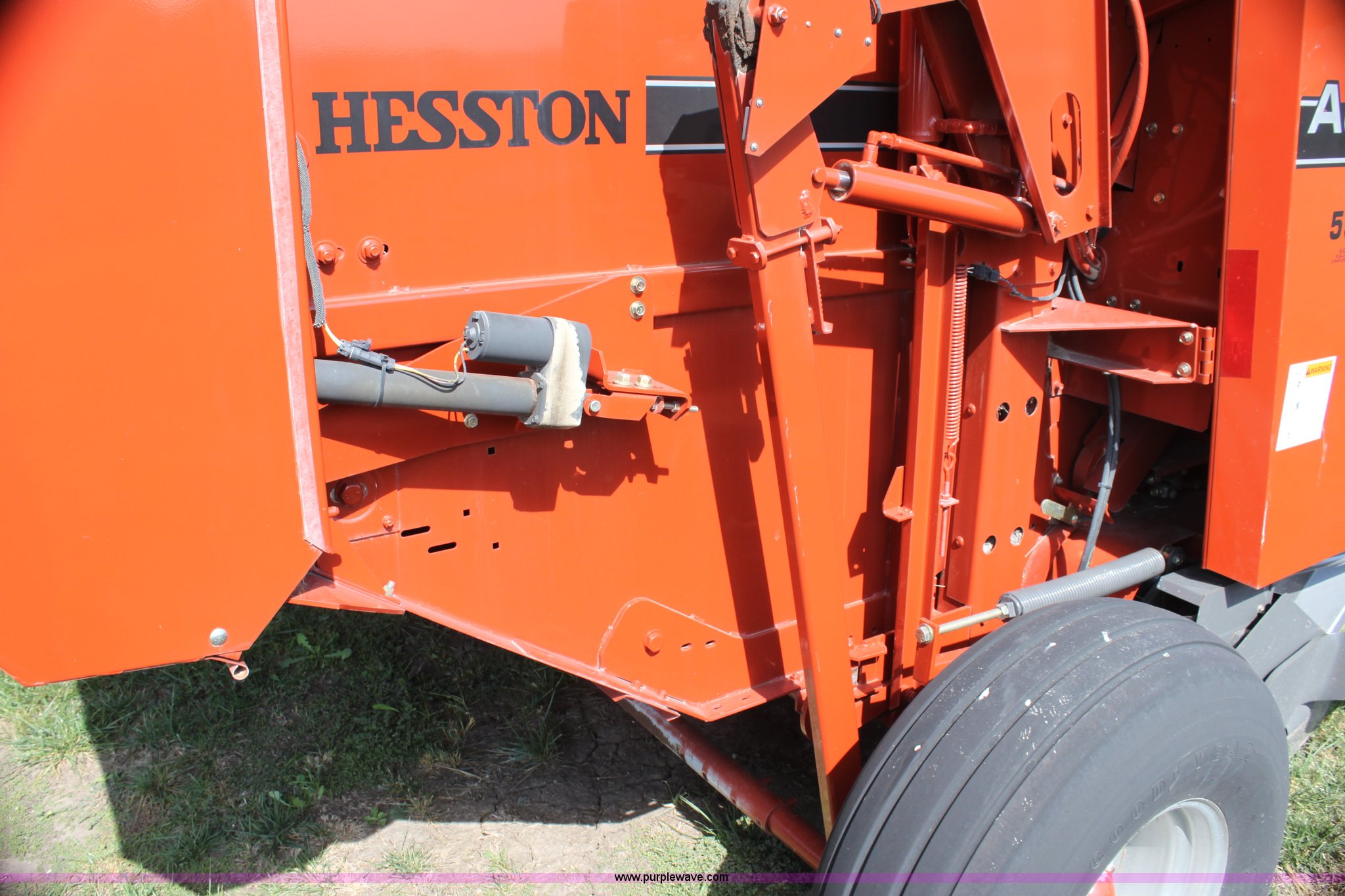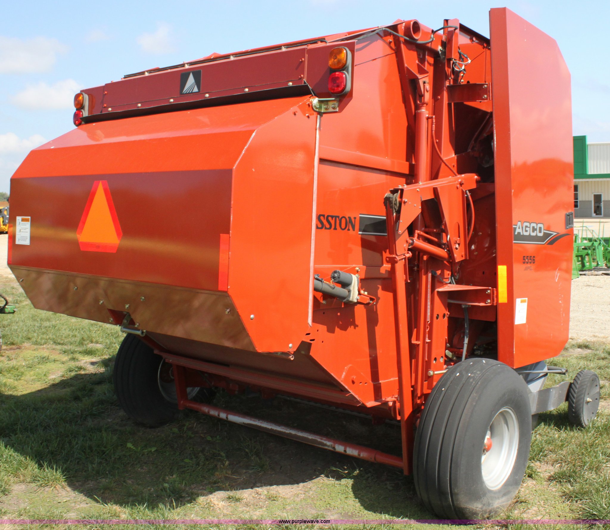 Purple Wave is selling a used Round Baler in Kansas. This item is a 2007 AGCO Hesston 5556 round baler with the following: 5' x 6' bale capacity, Twine tie and mesh wrap, Auto tie, 540 PTO, Bale kicker, Bale monitor, 2,309 bales, Wide pickup, 14-16.1SL tires, Stored inside, Serial HS48184