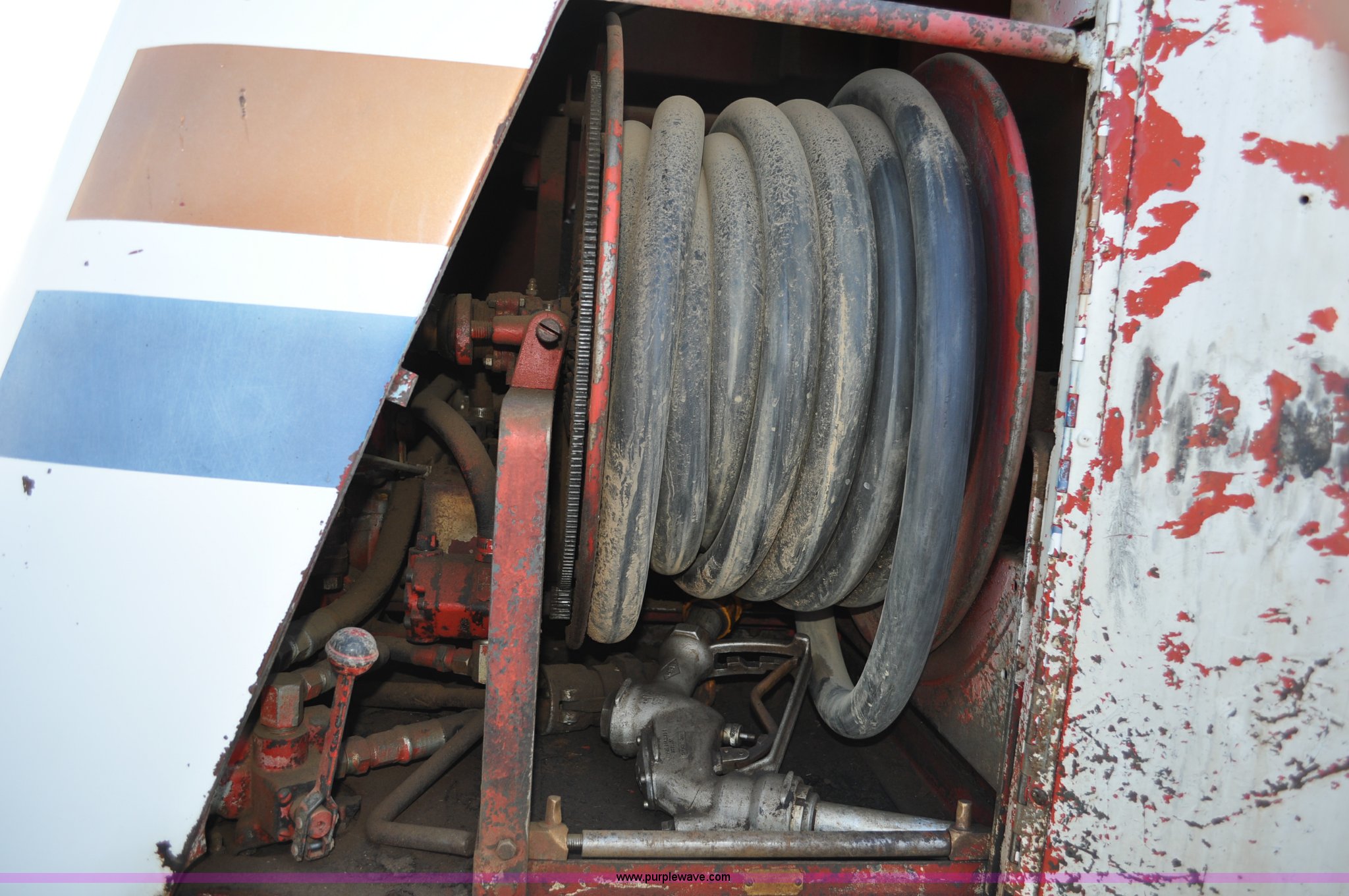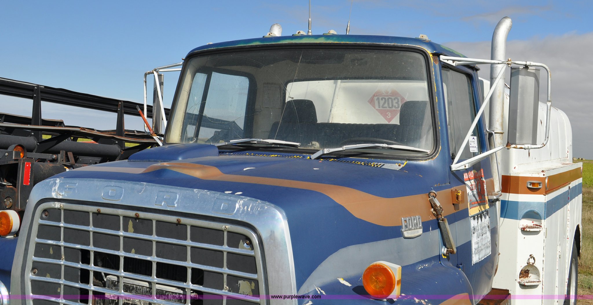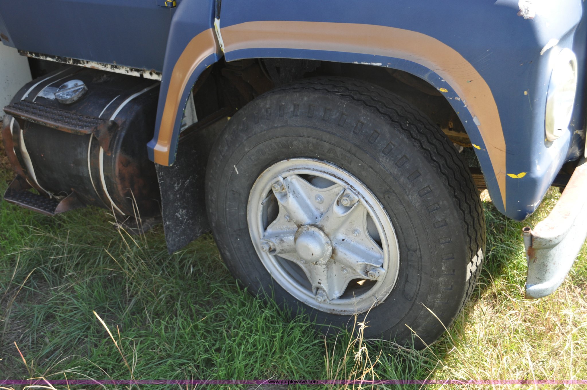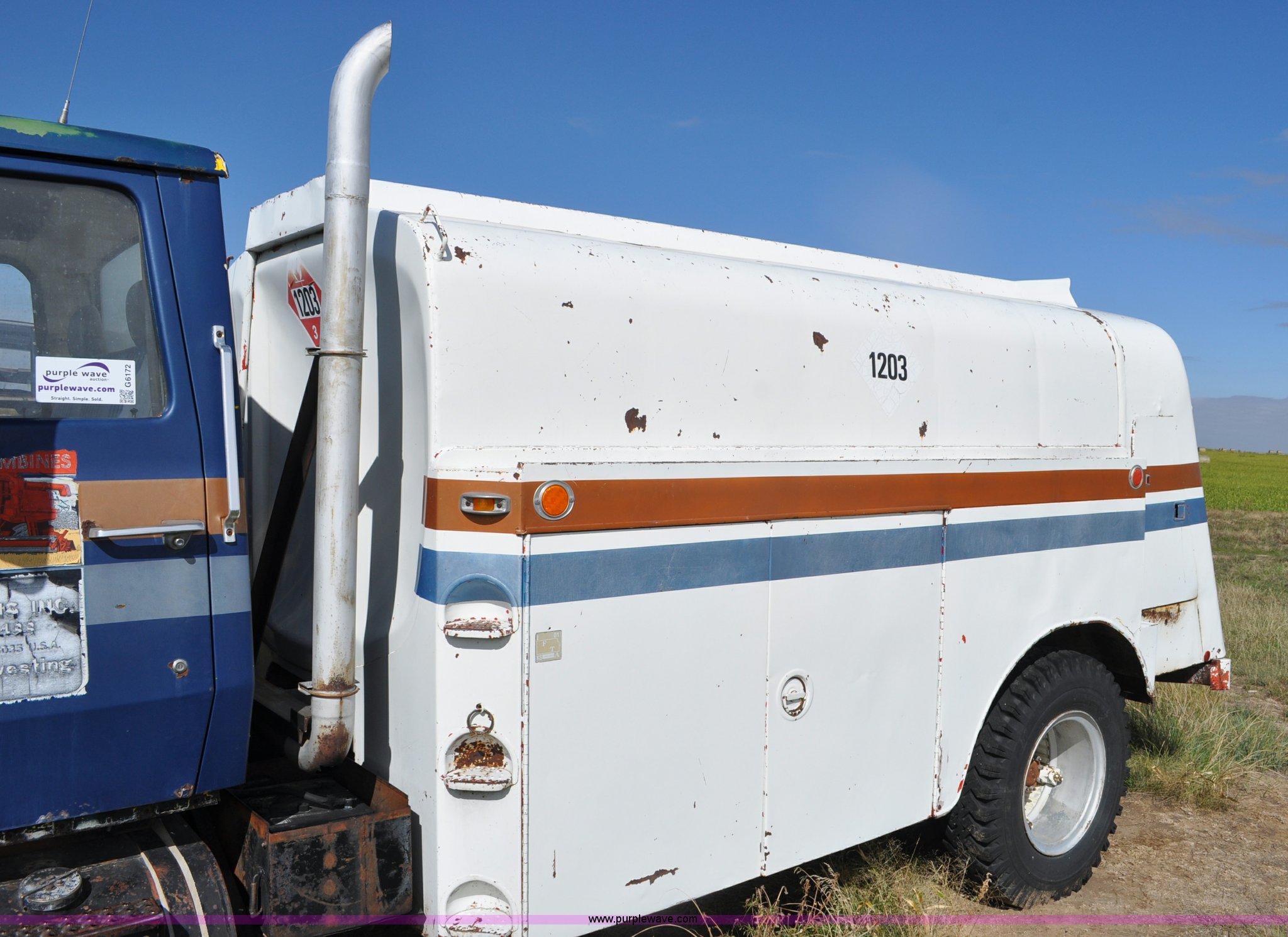 Purple Wave is selling a used Fuel Truck in Colorado. This item is a 1976 Ford 7000 fuel truck with the following: 44,724 miles on odometer, Caterpillar 3206 diesel engine, Five speed manual transmission, Two speed rear end, (5) compartment fuel tank, 400 gallon tank capacities, Neptune fuel meters, (2) hydraulic retractable hose reels, (2) tools storage compartments, 50 gallon fuel tank, Dual rear exhaust stacks, PTO, Spring suspension, Hydraulic brakes, 10.00-20 tires, GVWR 23,000 lbs