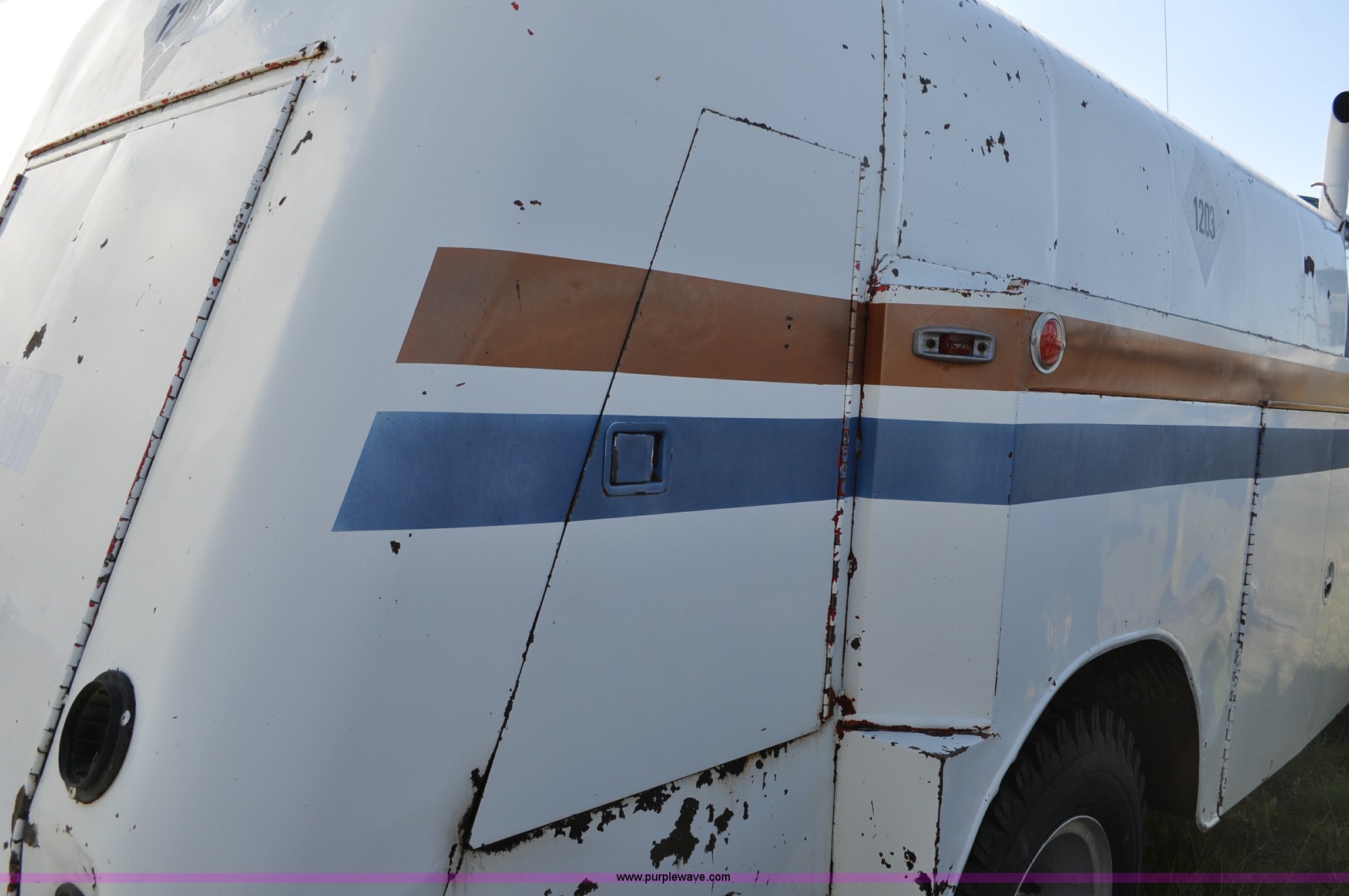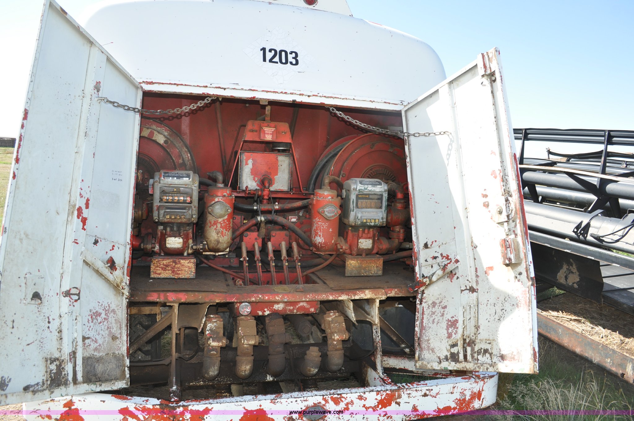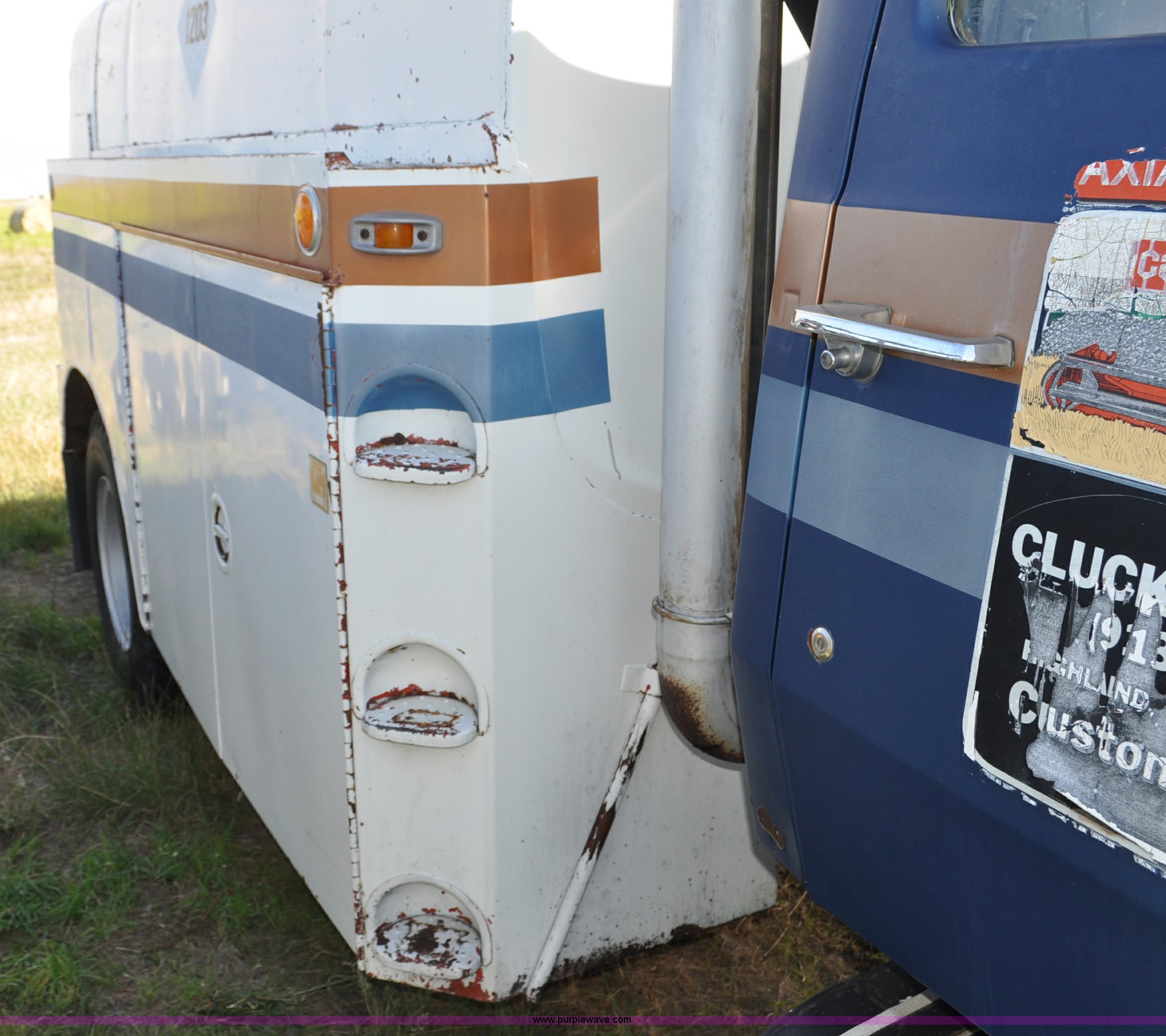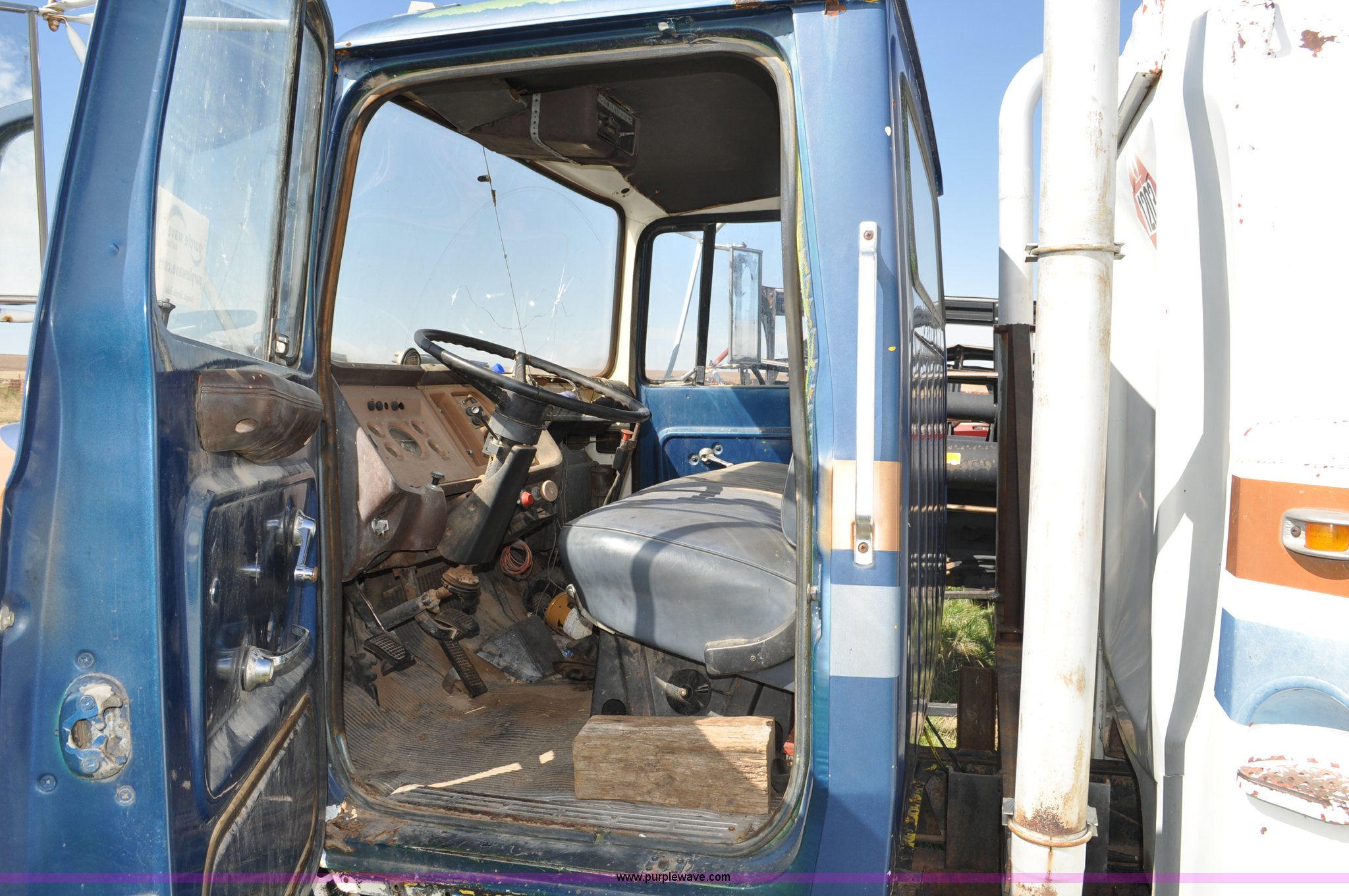 Purple Wave is selling a used Fuel Truck in Colorado. This item is a 1976 Ford 7000 fuel truck with the following: 44,724 miles on odometer, Caterpillar 3206 diesel engine, Five speed manual transmission, Two speed rear end, (5) compartment fuel tank, 400 gallon tank capacities, Neptune fuel meters, (2) hydraulic retractable hose reels, (2) tools storage compartments, 50 gallon fuel tank, Dual rear exhaust stacks, PTO, Spring suspension, Hydraulic brakes, 10.00-20 tires, GVWR 23,000 lbs