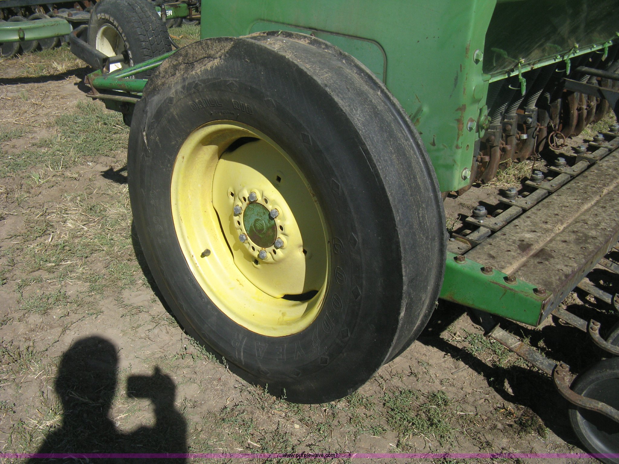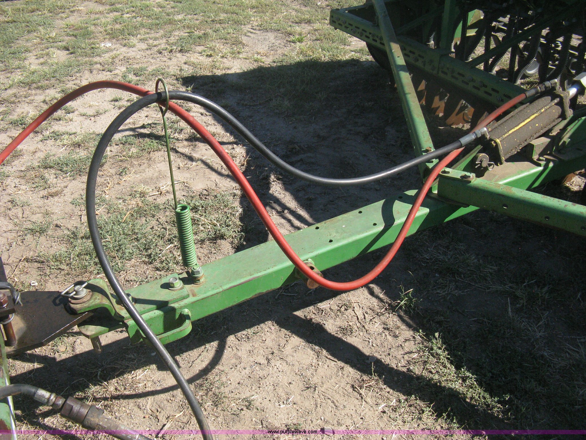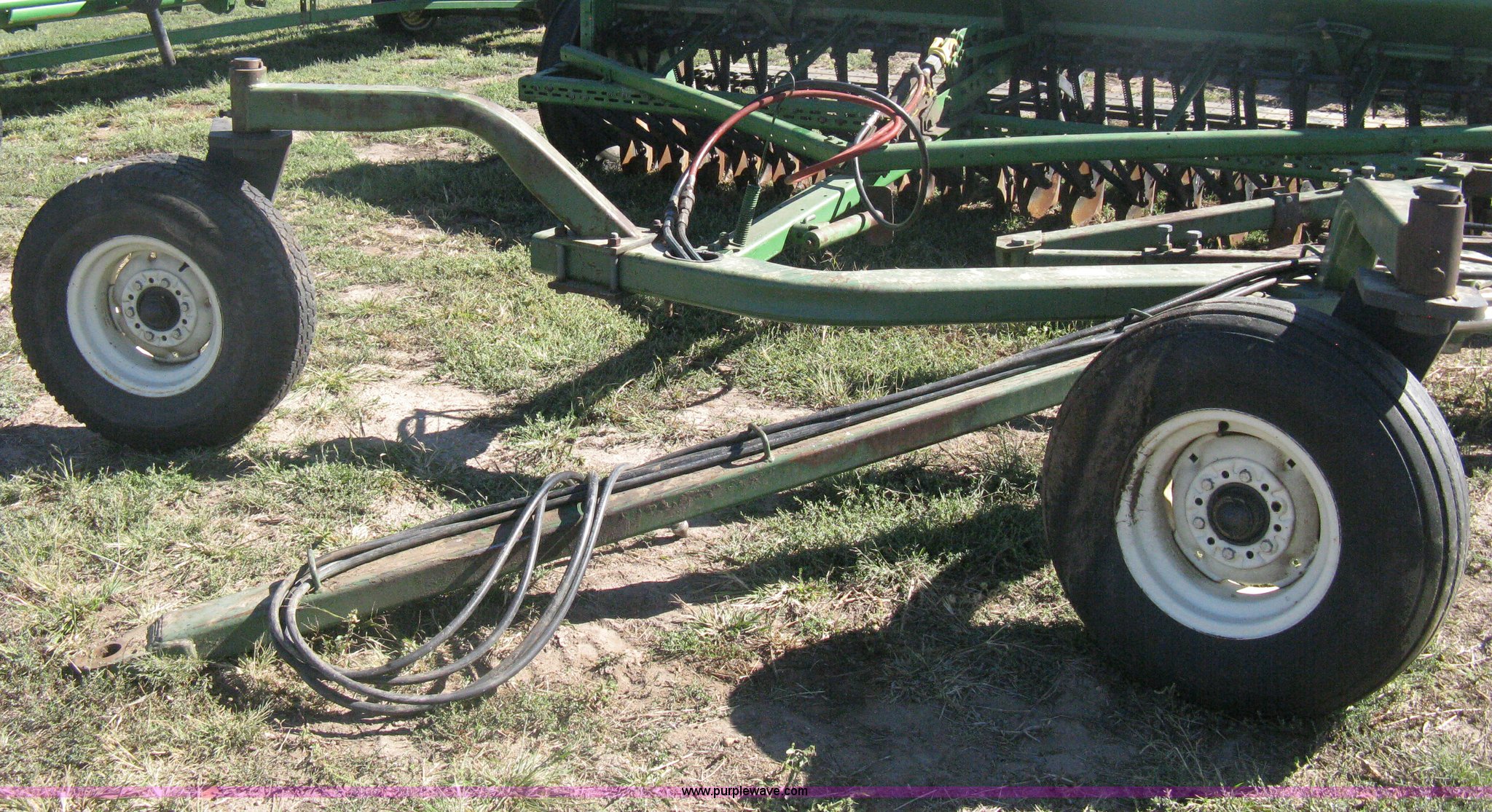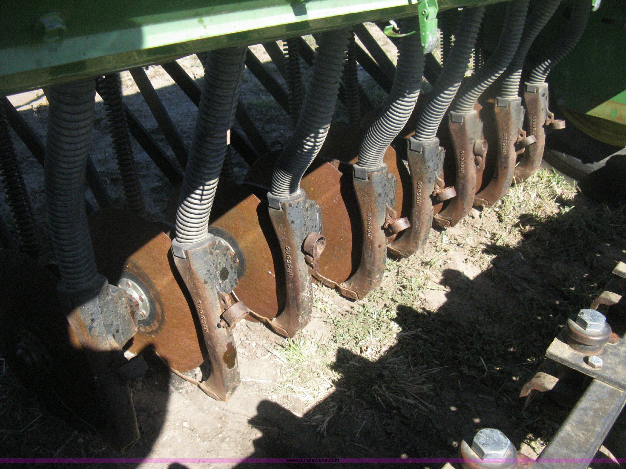 Purple Wave is selling a used Grain Drill or Seeder in Kansas. This item is a (2) John Deere 8350 grain drills with the following: 13' work width, 20 drops, 8" spacing, Seed and fertilizer boxes, Hydraulic lift, Single disk coulters, Six lug wheels, 7.50-20 tires, Baker 2200 tandem drill hitch, Hydraulic fold out, Serial 28849, Serial N08000X058943,
