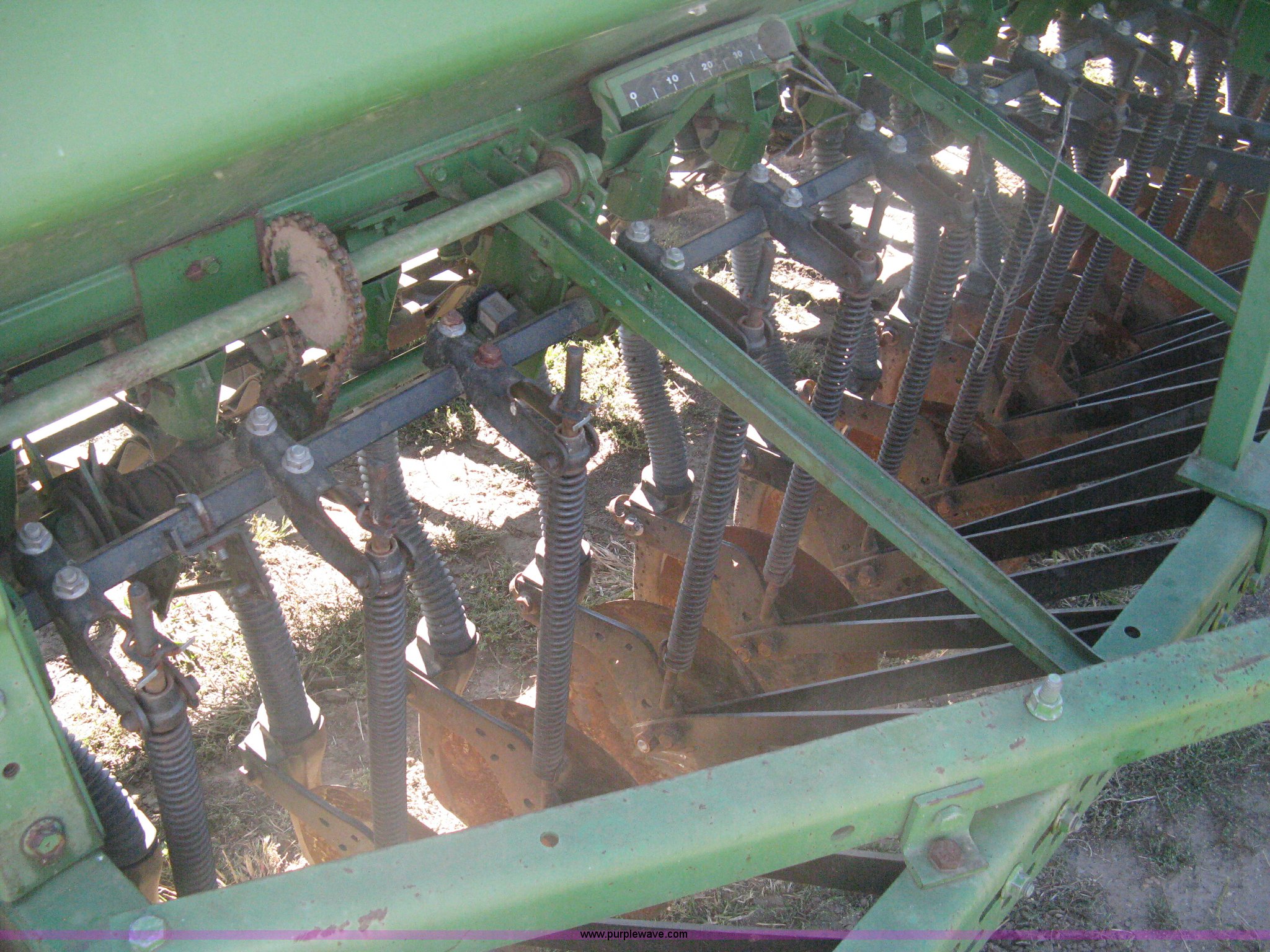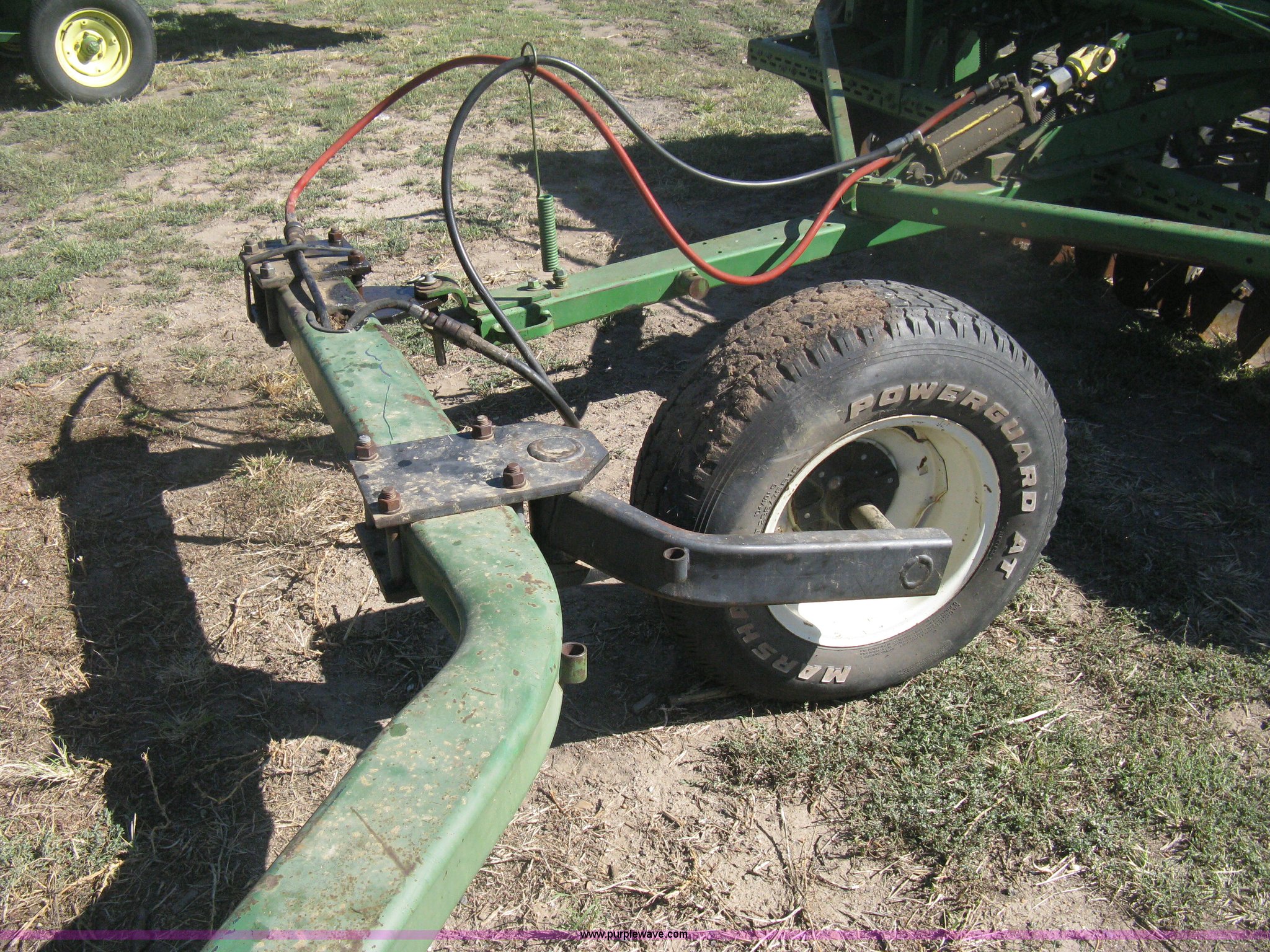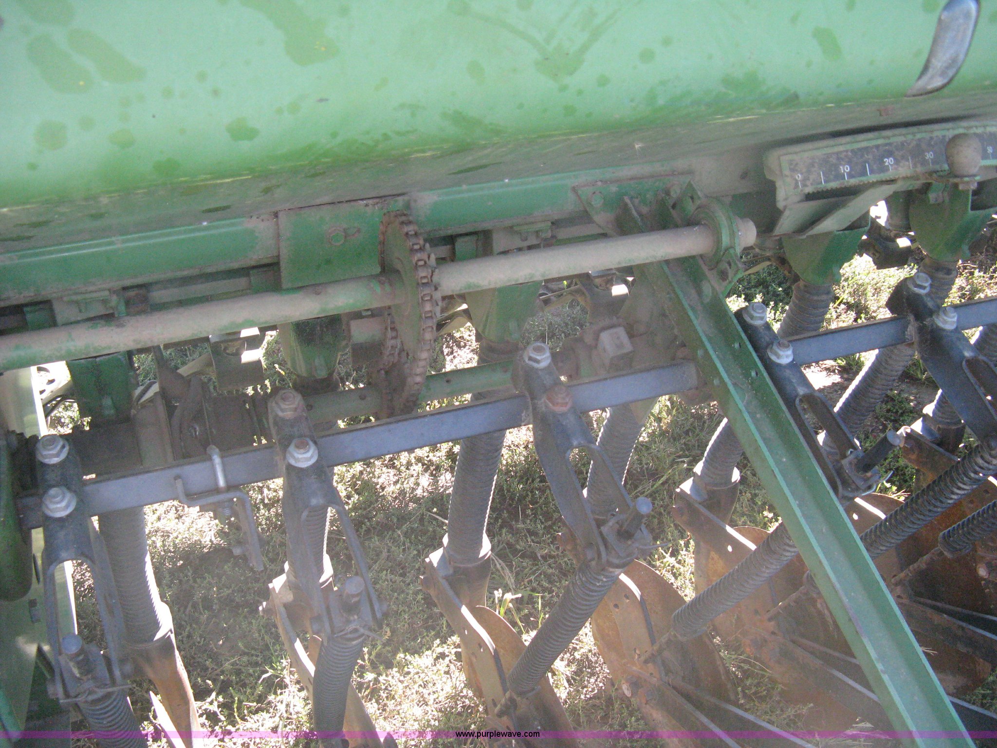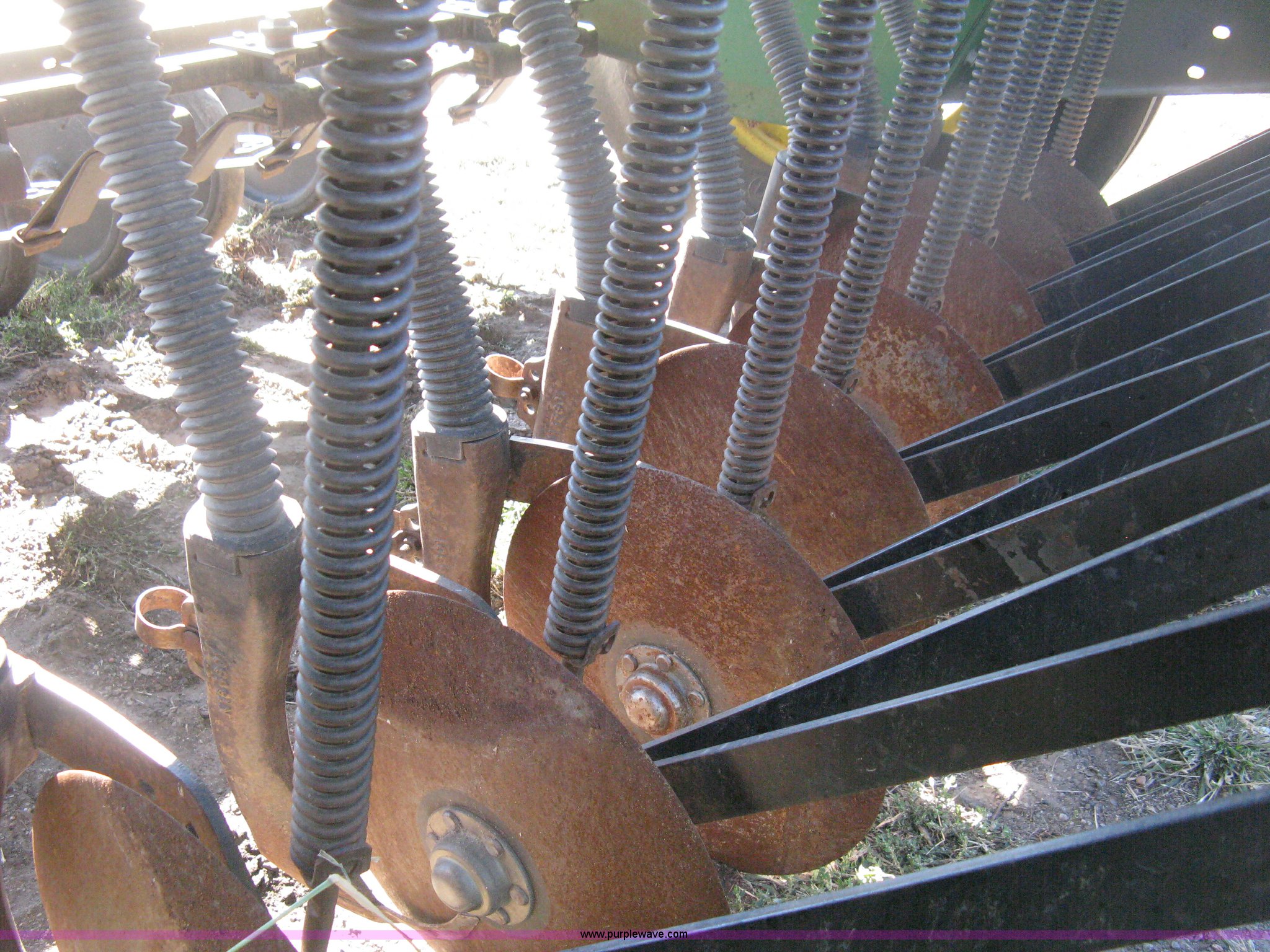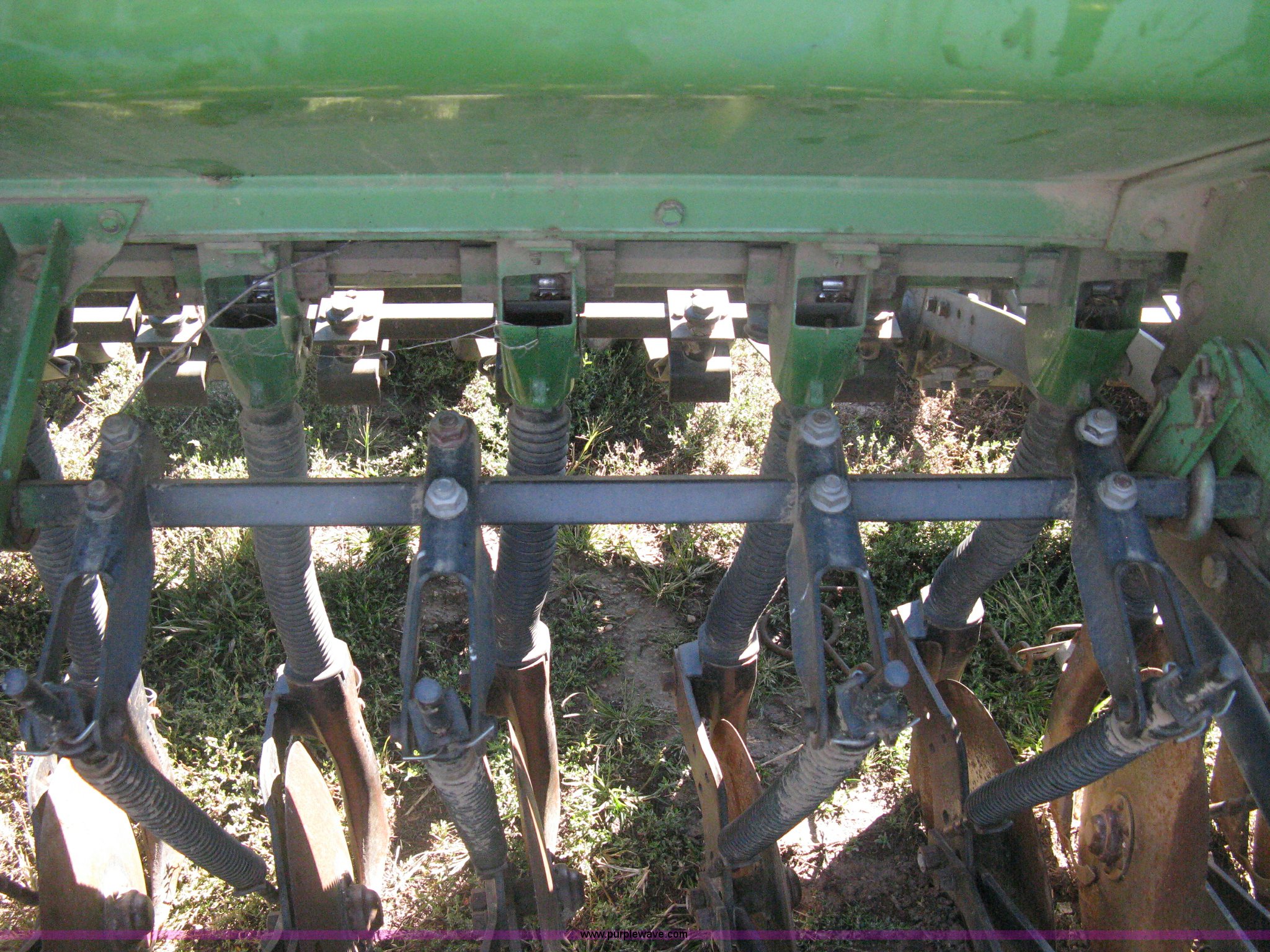 Purple Wave is selling a used Grain Drill or Seeder in Kansas. This item is a (2) John Deere 8350 grain drills with the following: 13' work width, 20 drops, 8" spacing, Seed and fertilizer boxes, Hydraulic lift, Single disk coulters, Six lug wheels, 7.50-20 tires, Baker 2200 tandem drill hitch, Hydraulic fold out, Serial 28849, Serial N08000X058943,